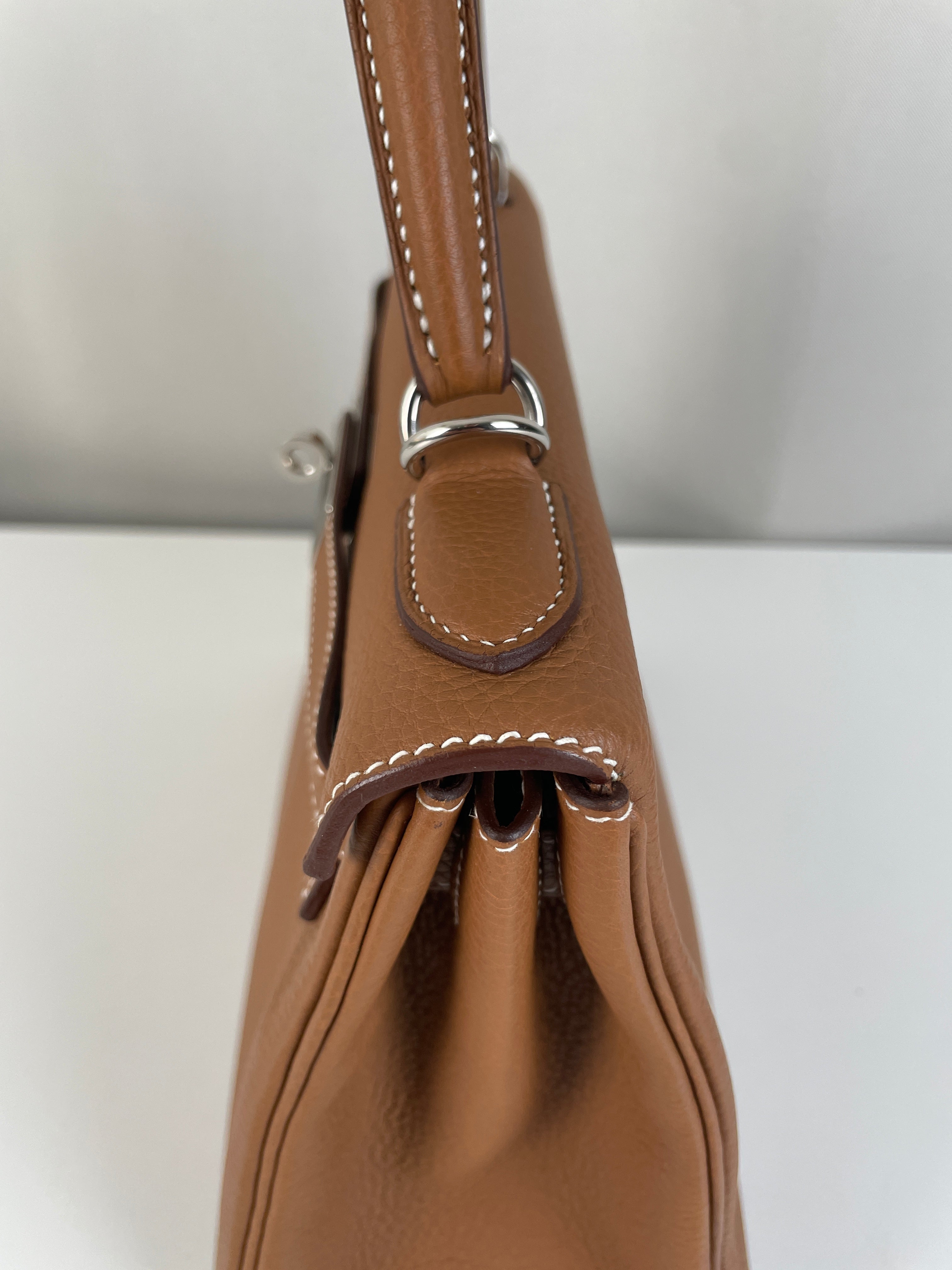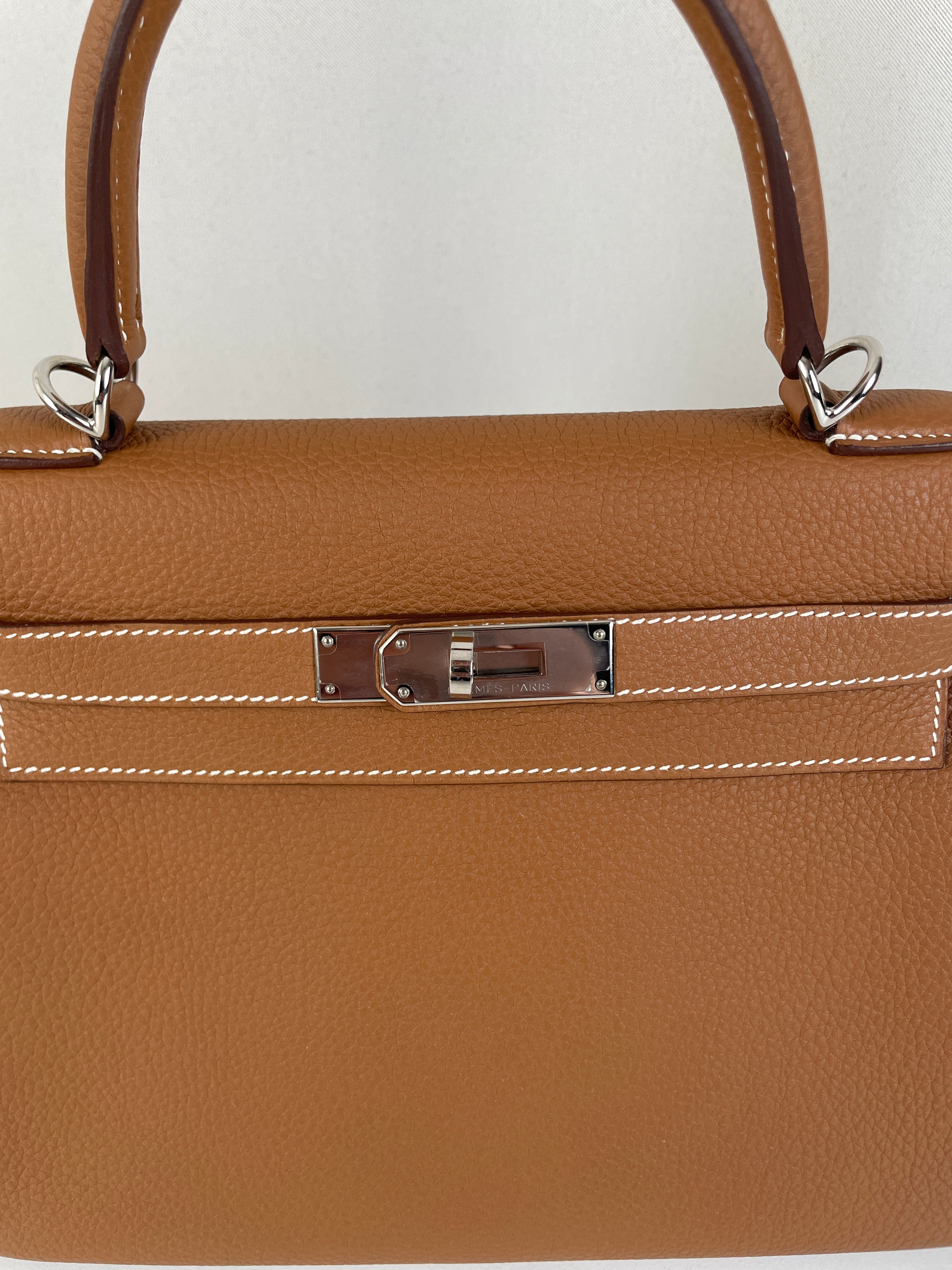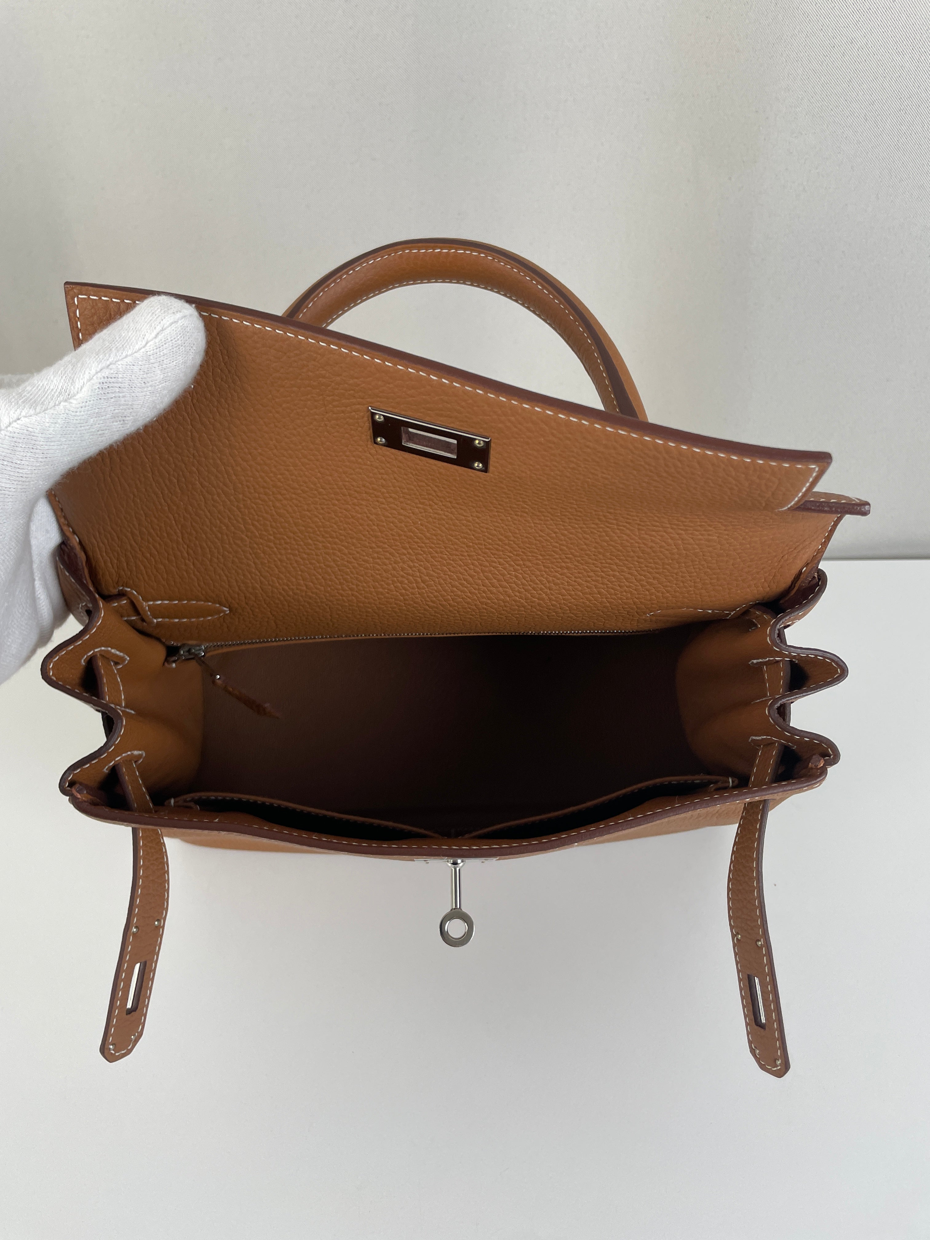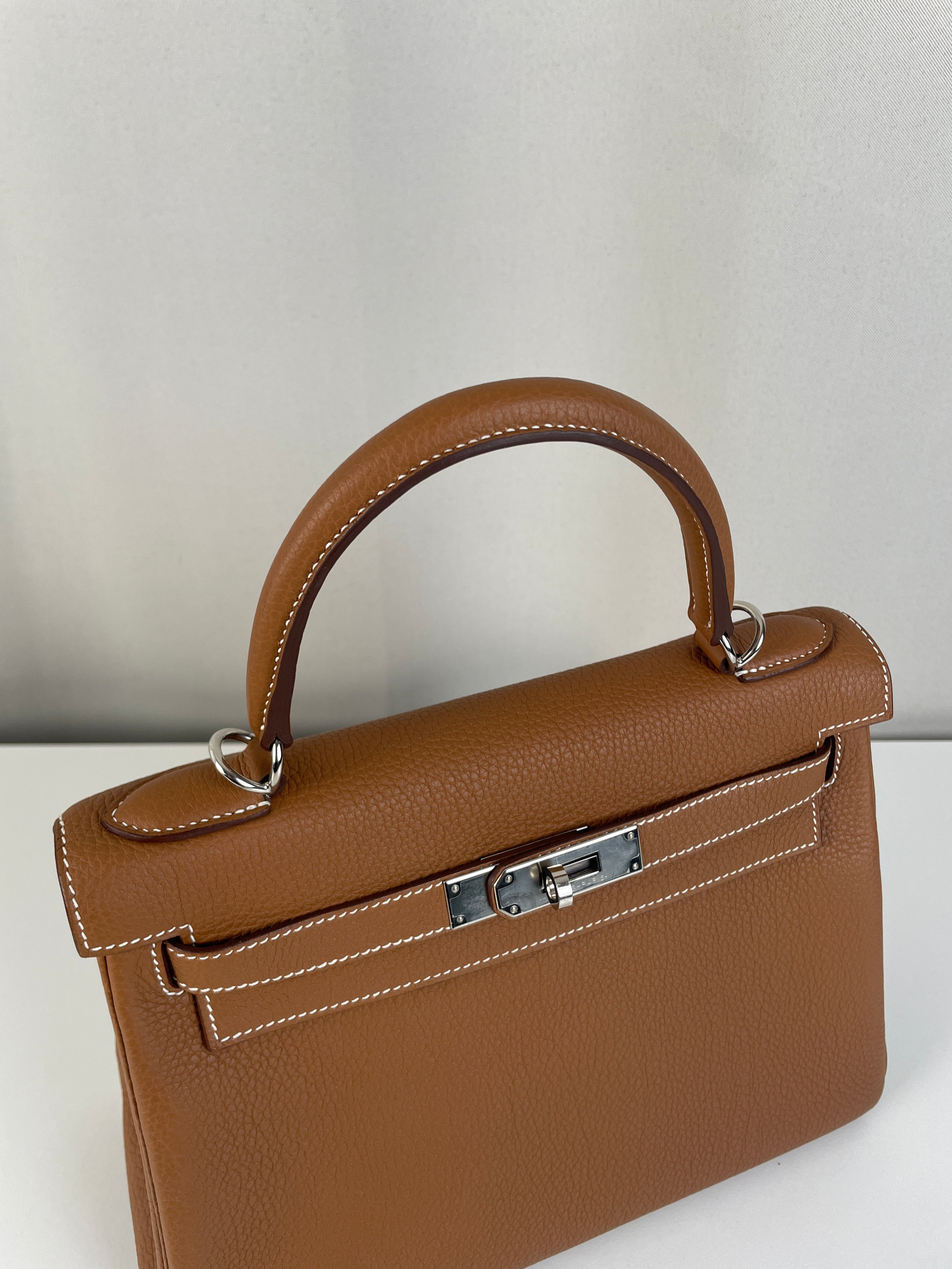 Hermès kelly 28 gold brown togo retourné leather
