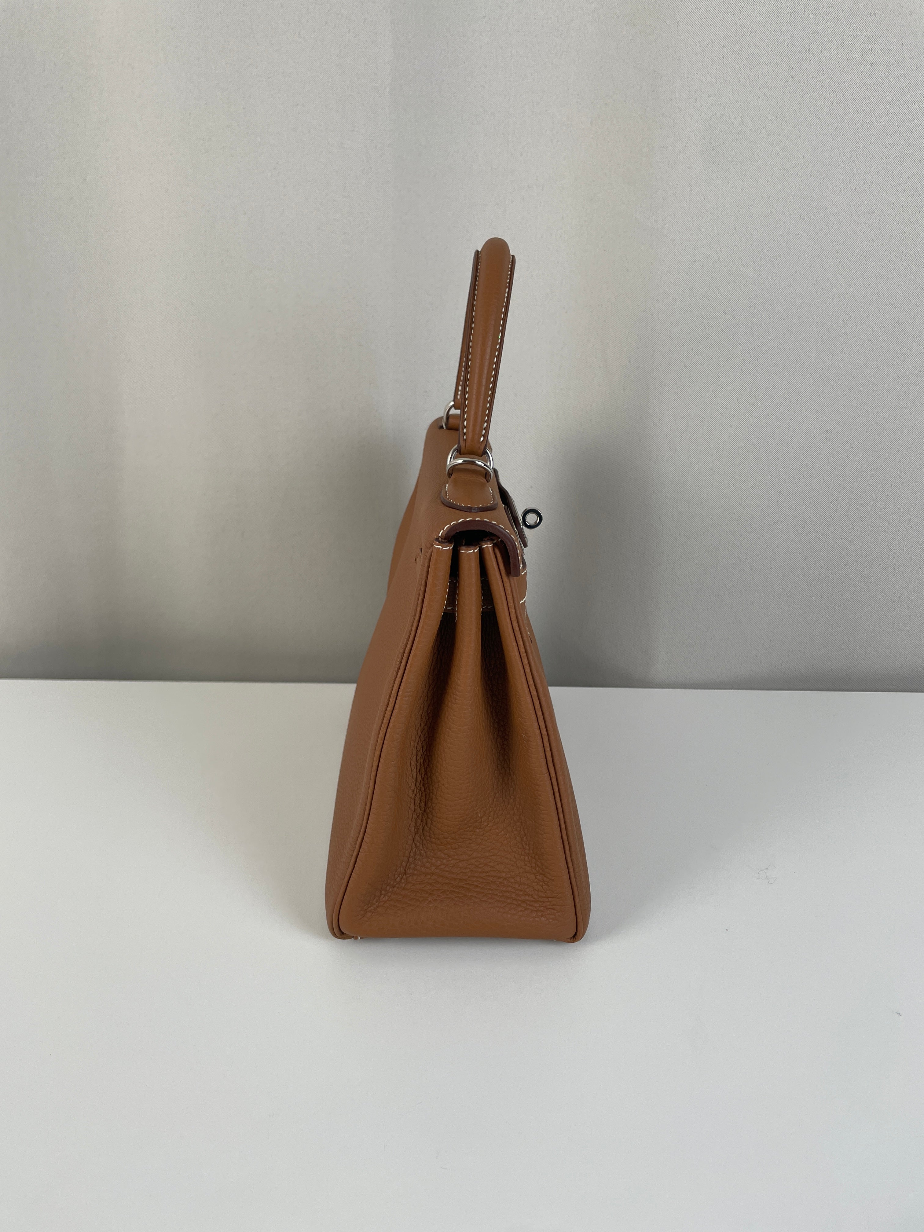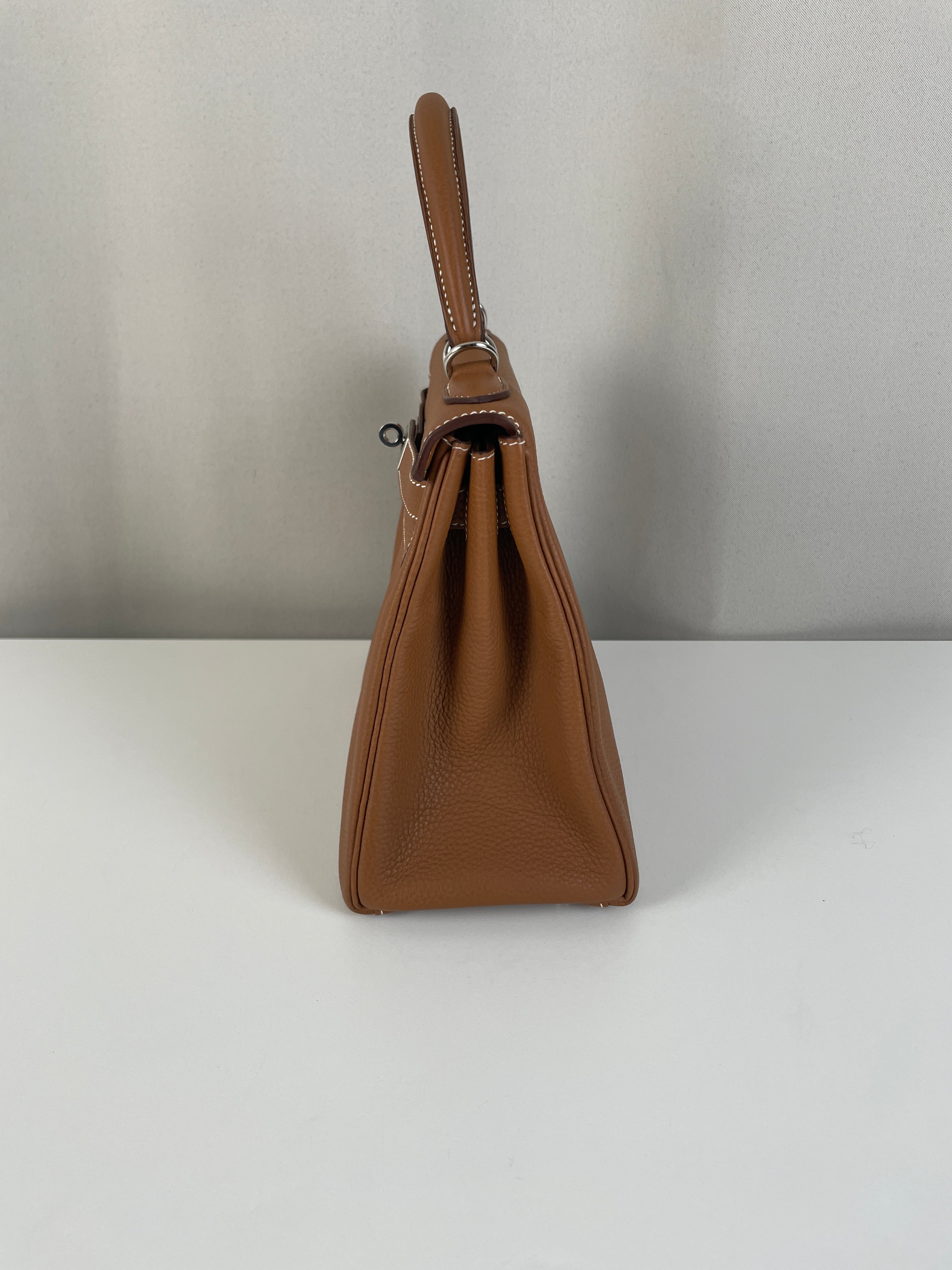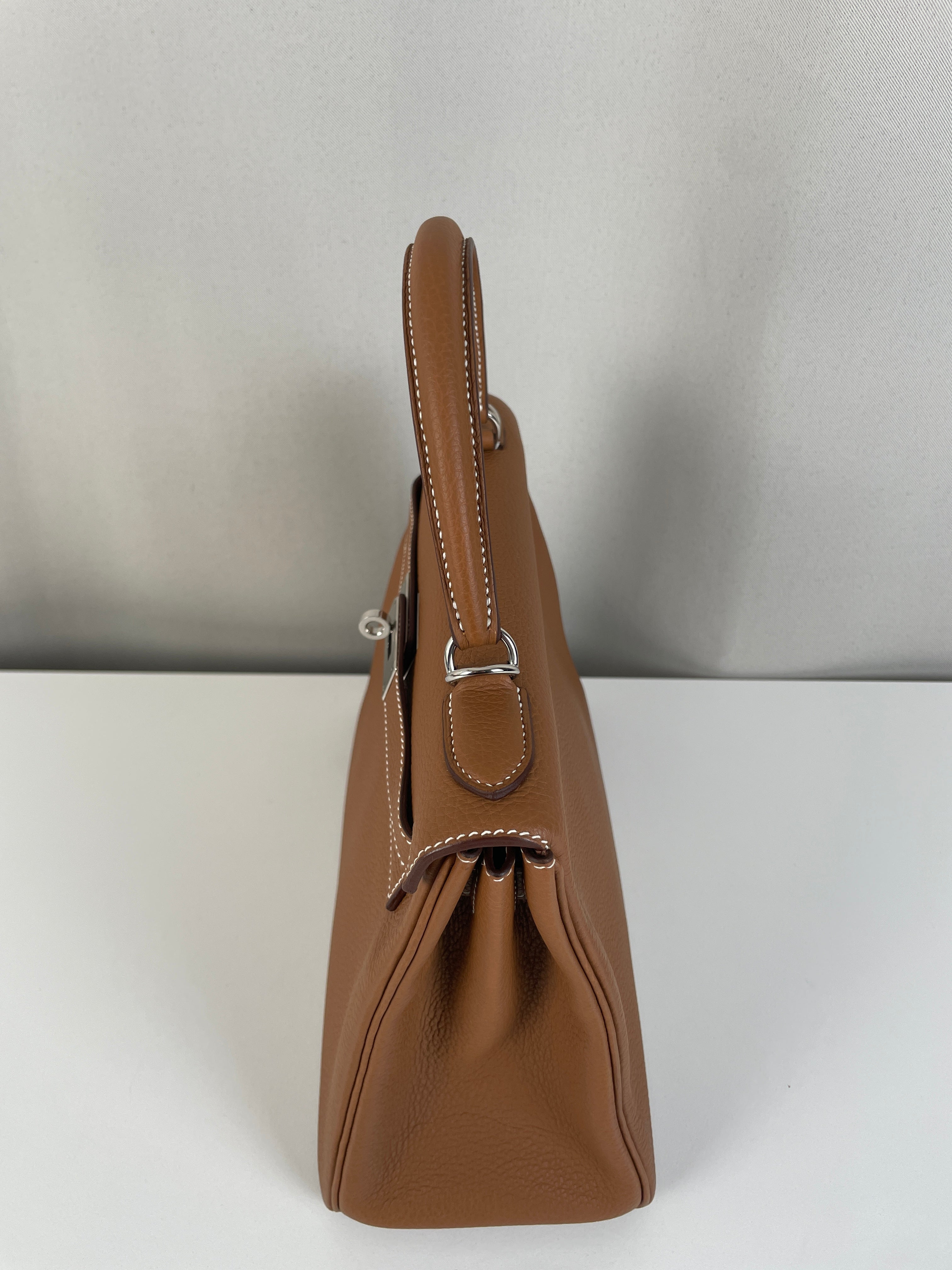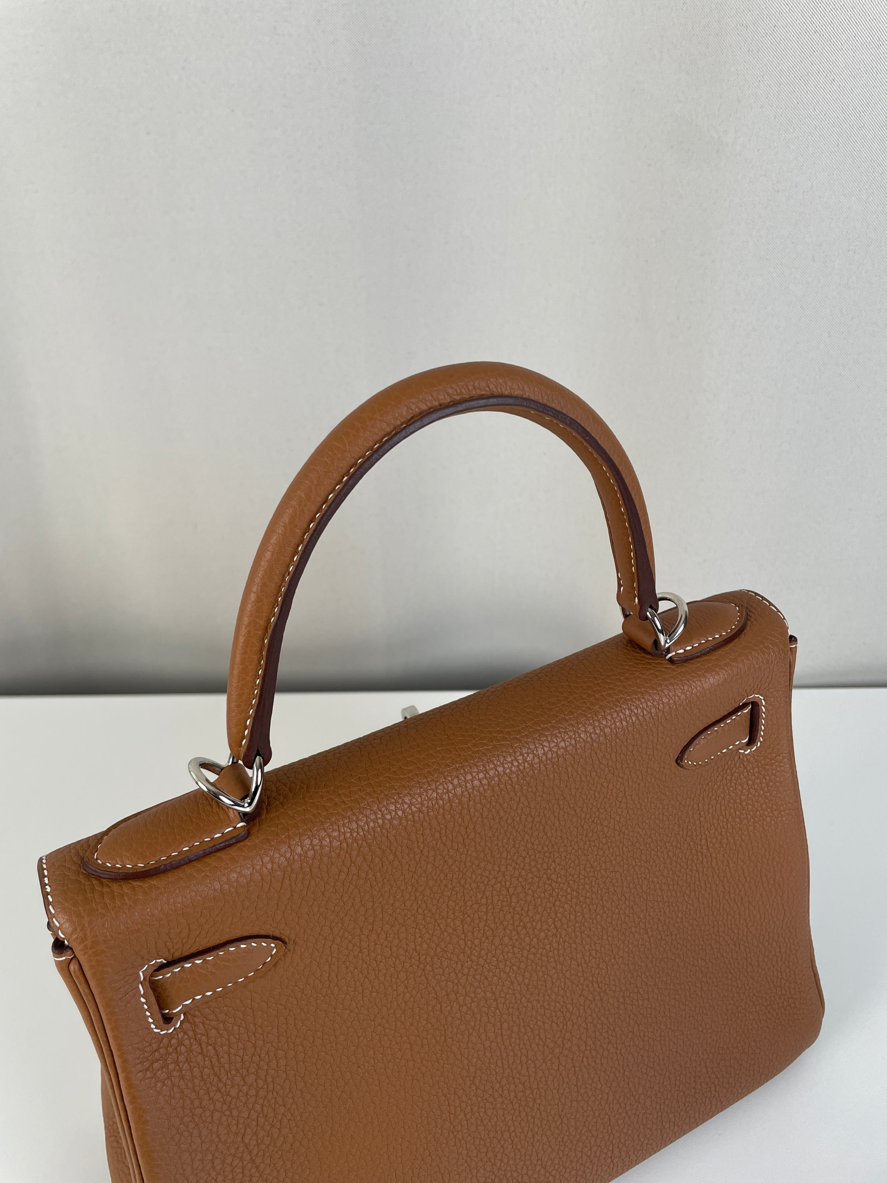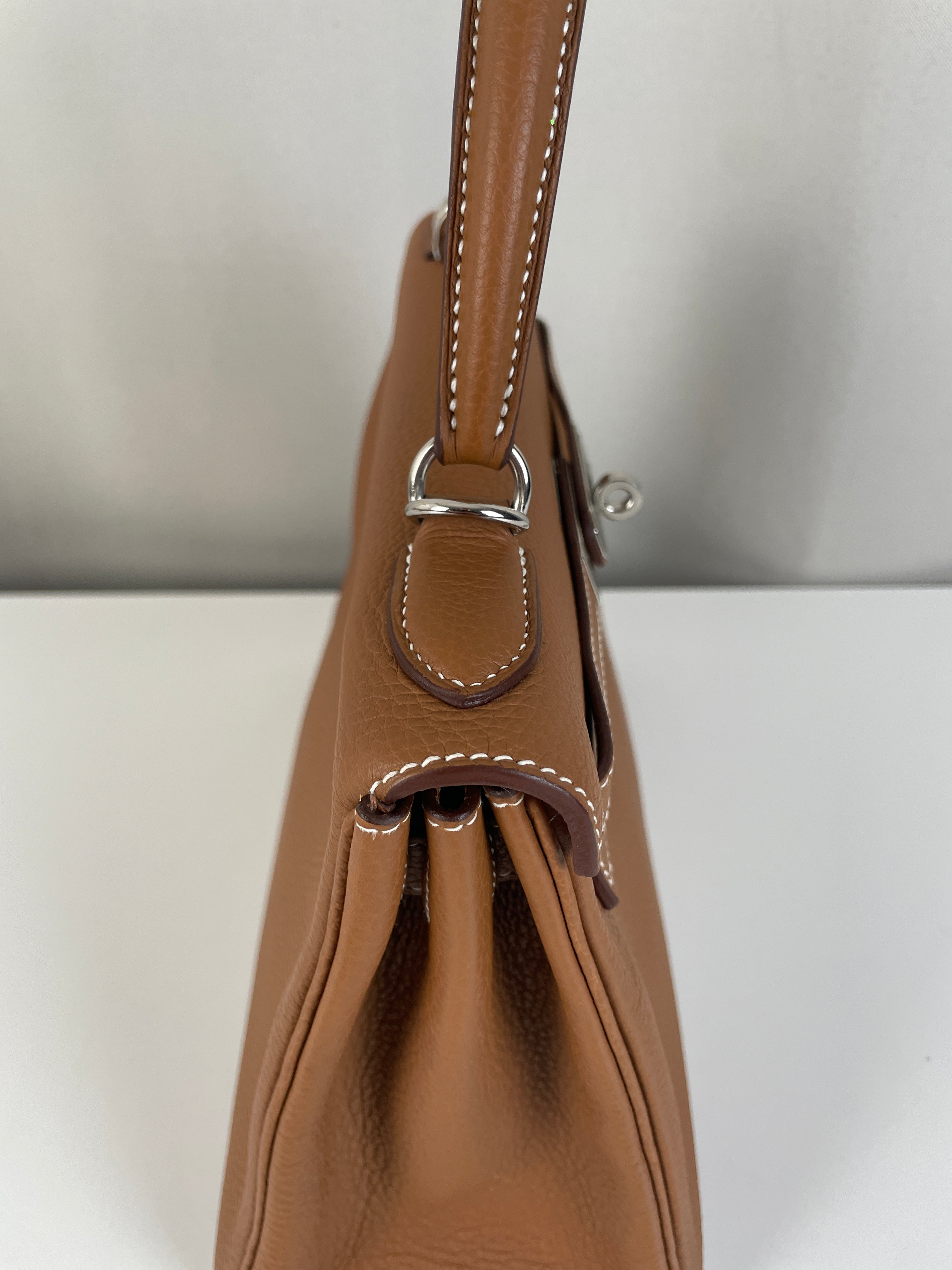 Hermès kelly 28 gold brown togo retourné leather
