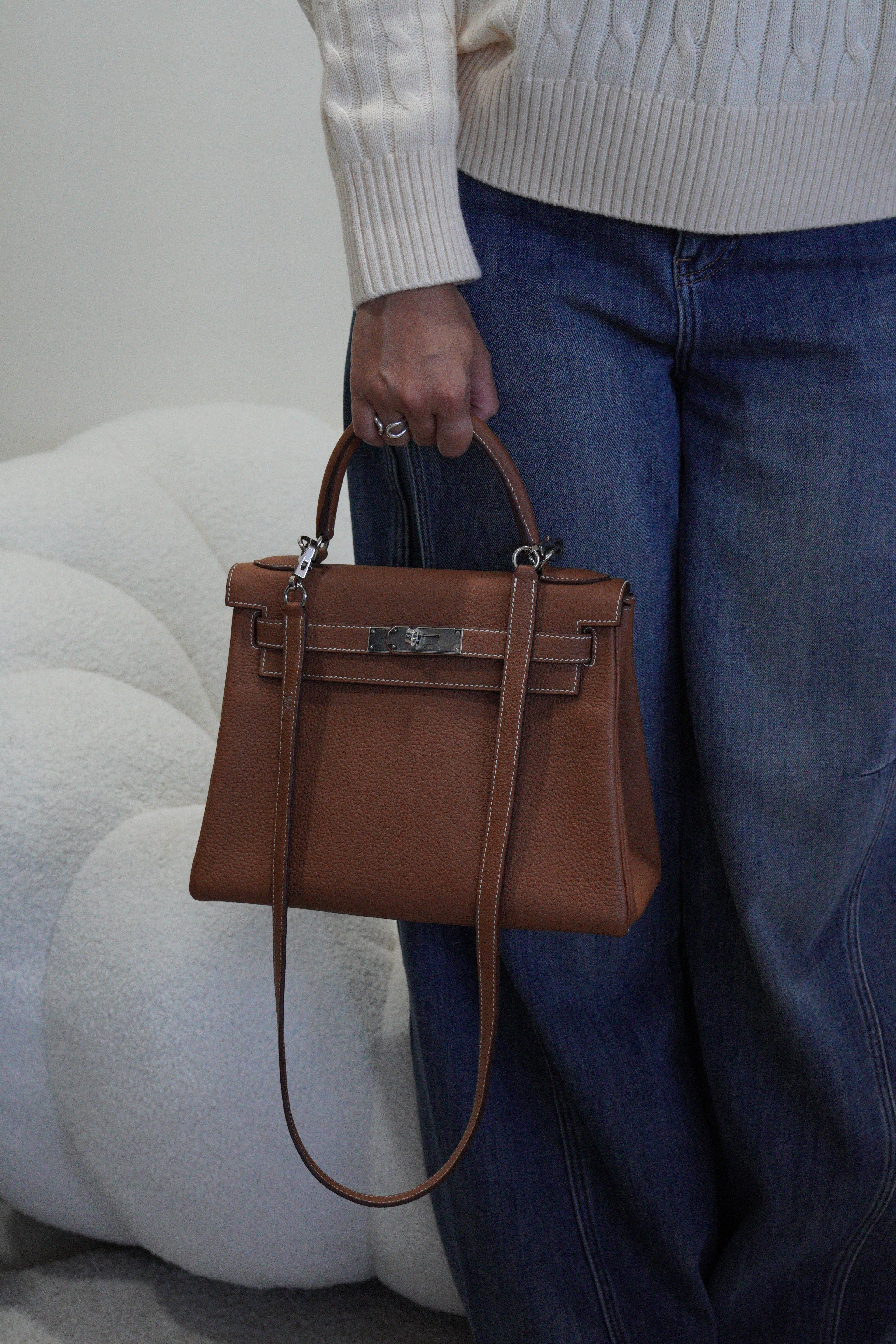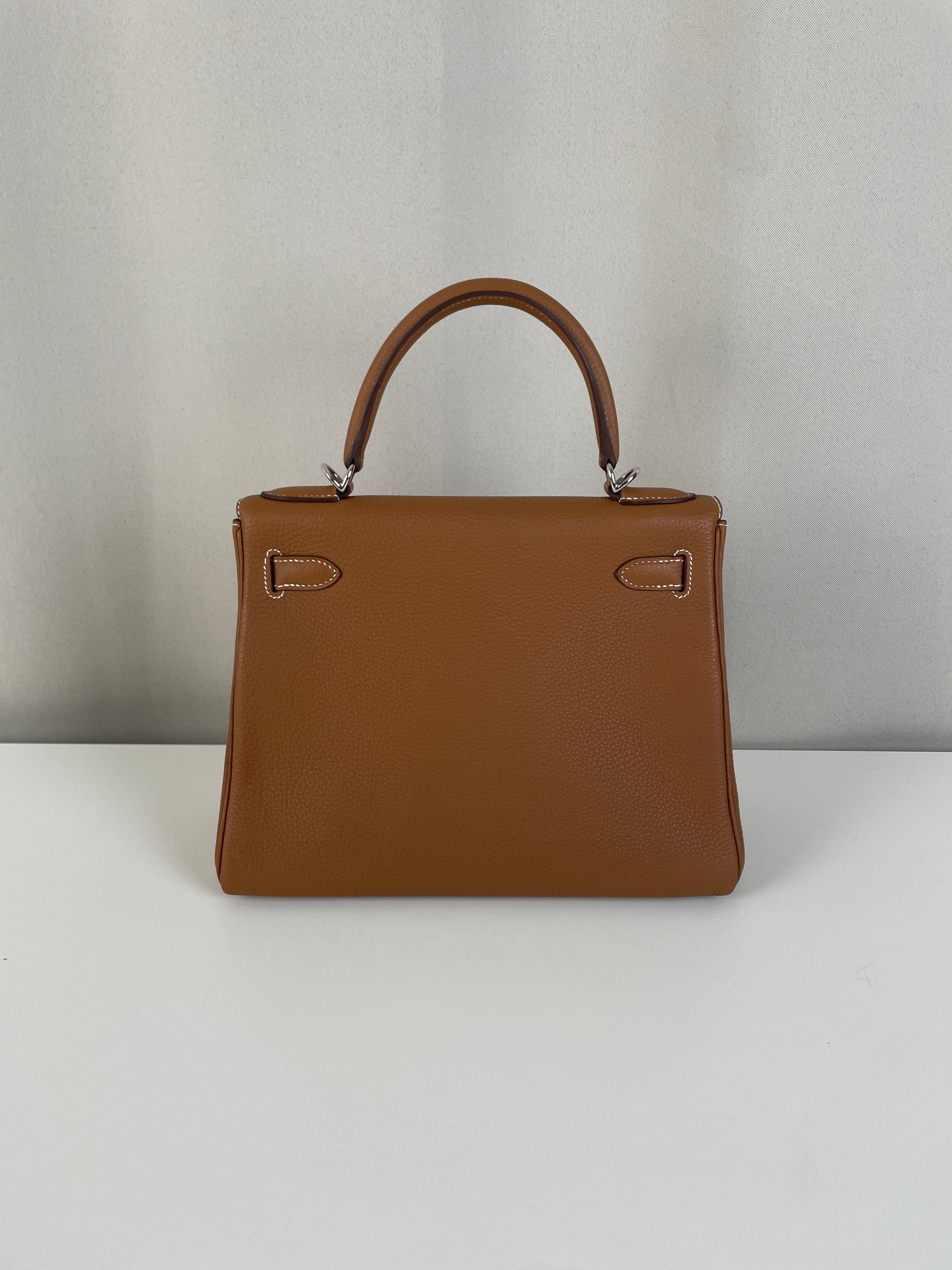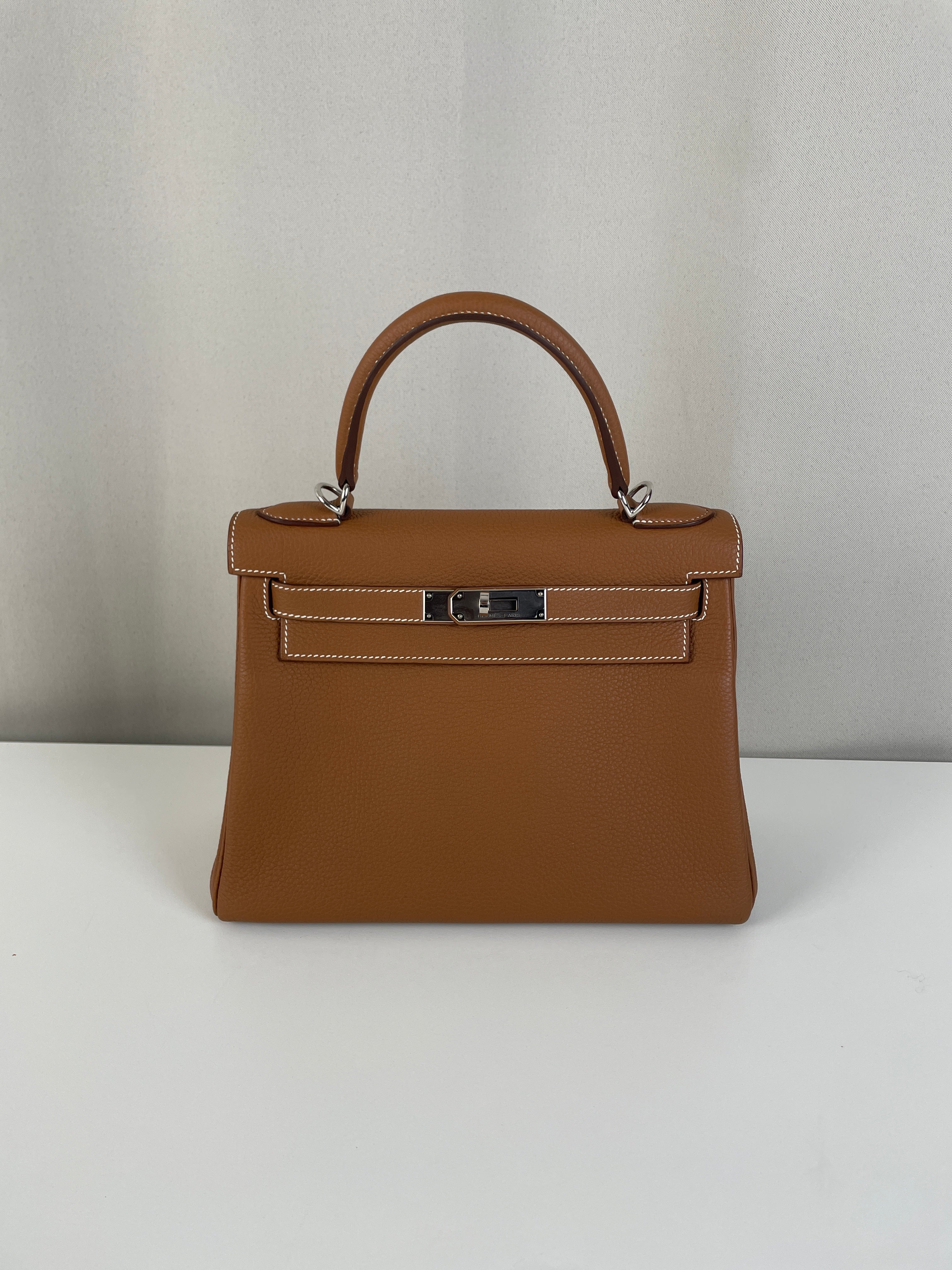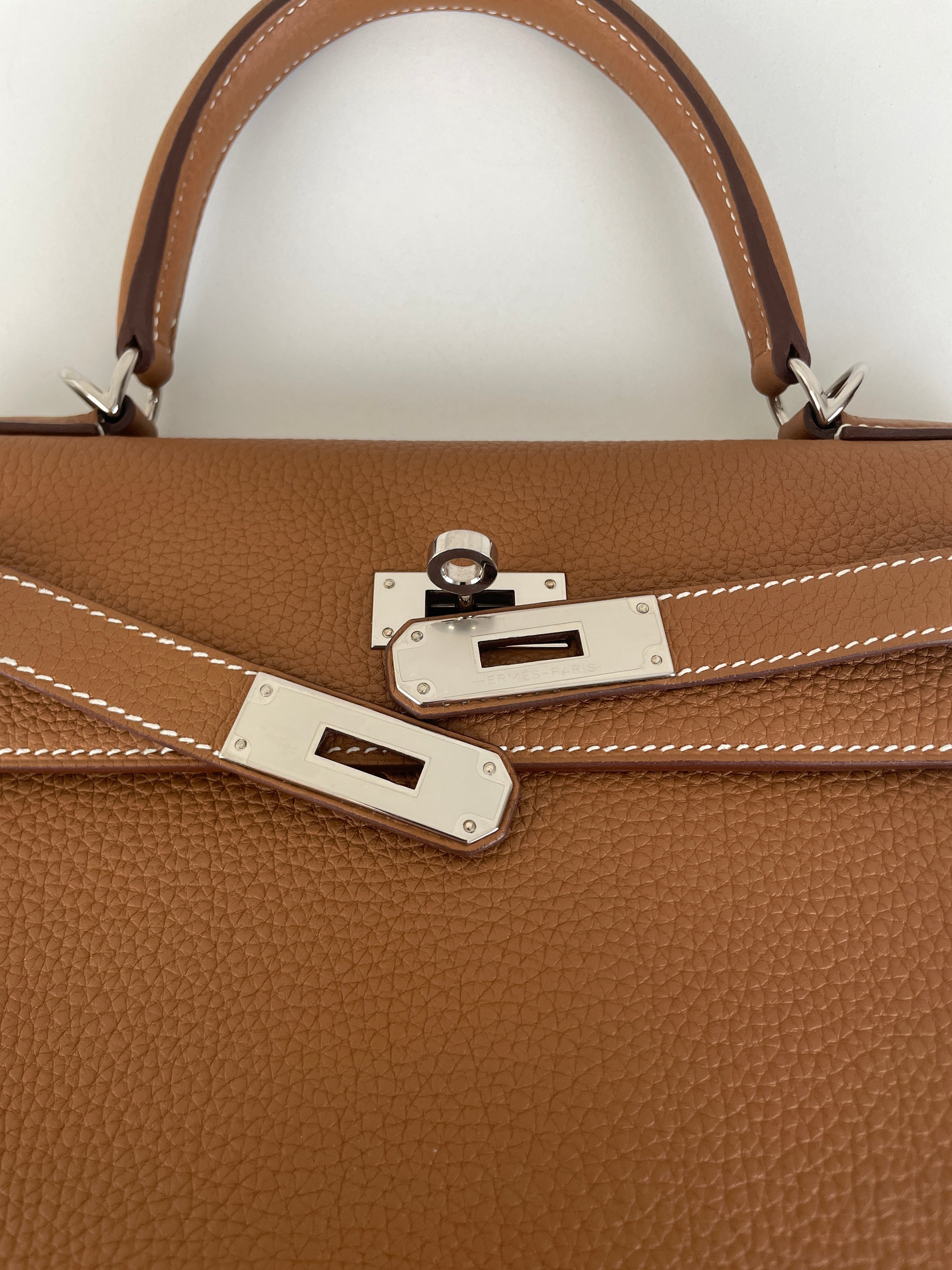 Hermès kelly 28 gold brown togo retourné leather