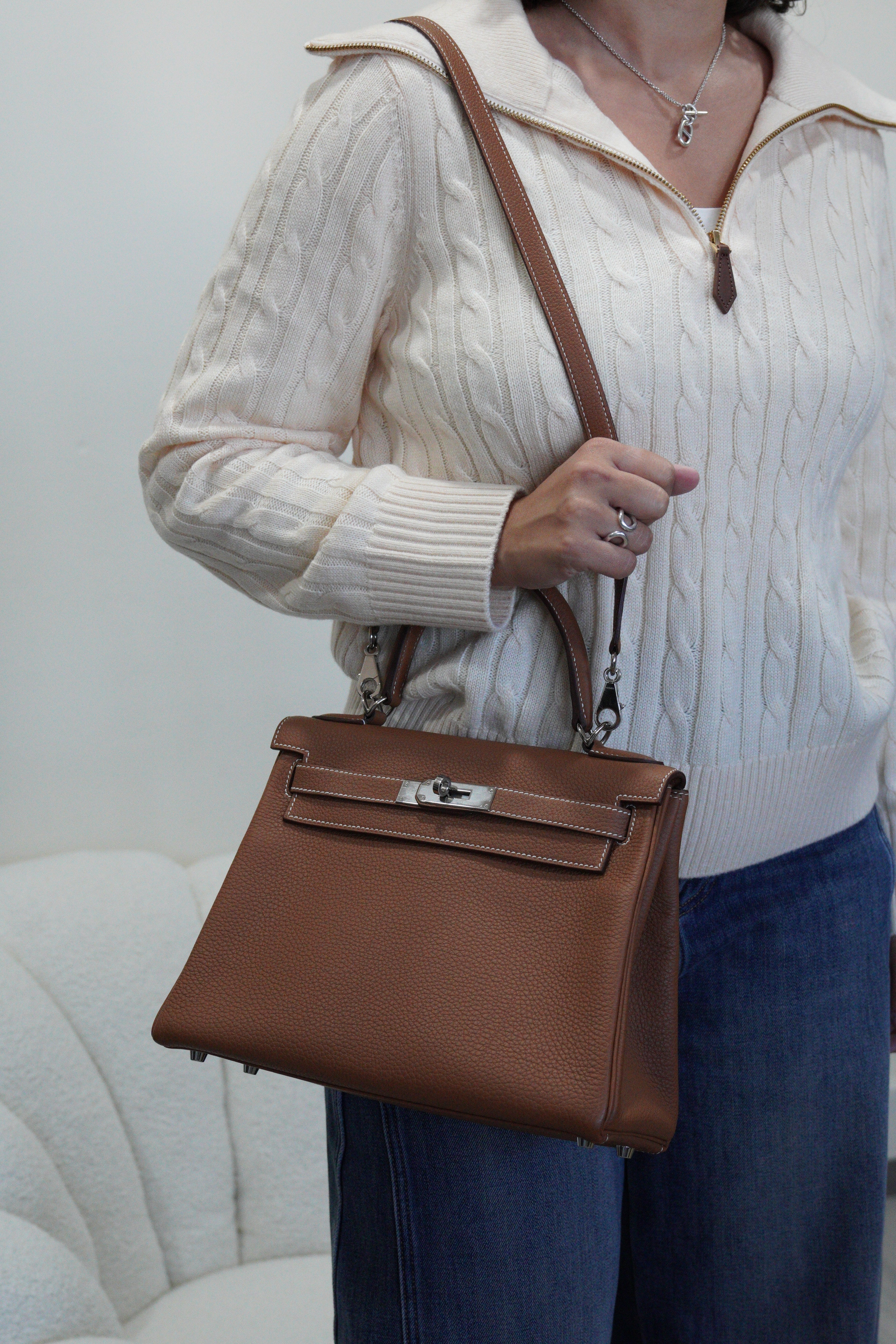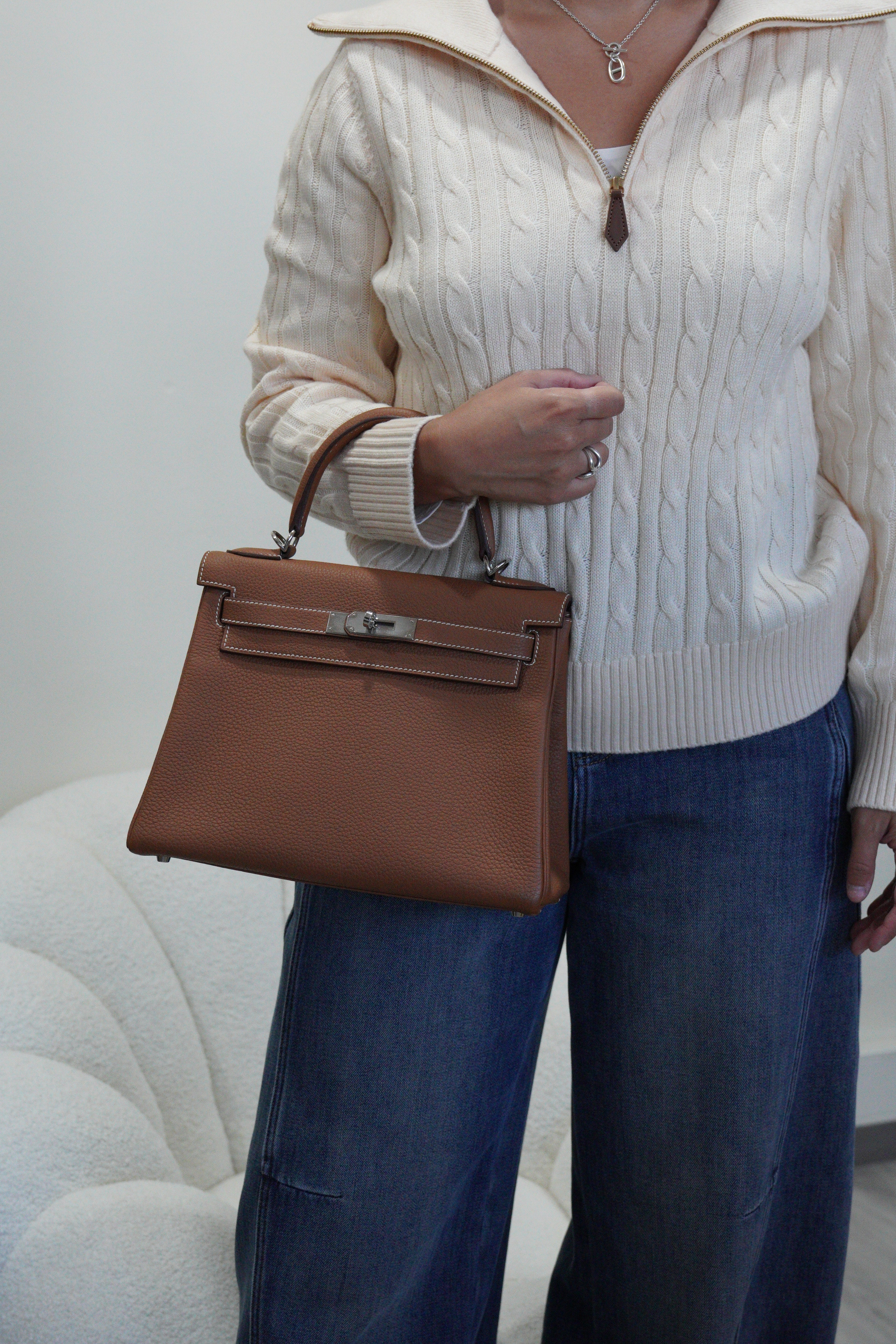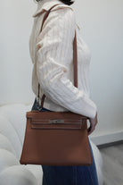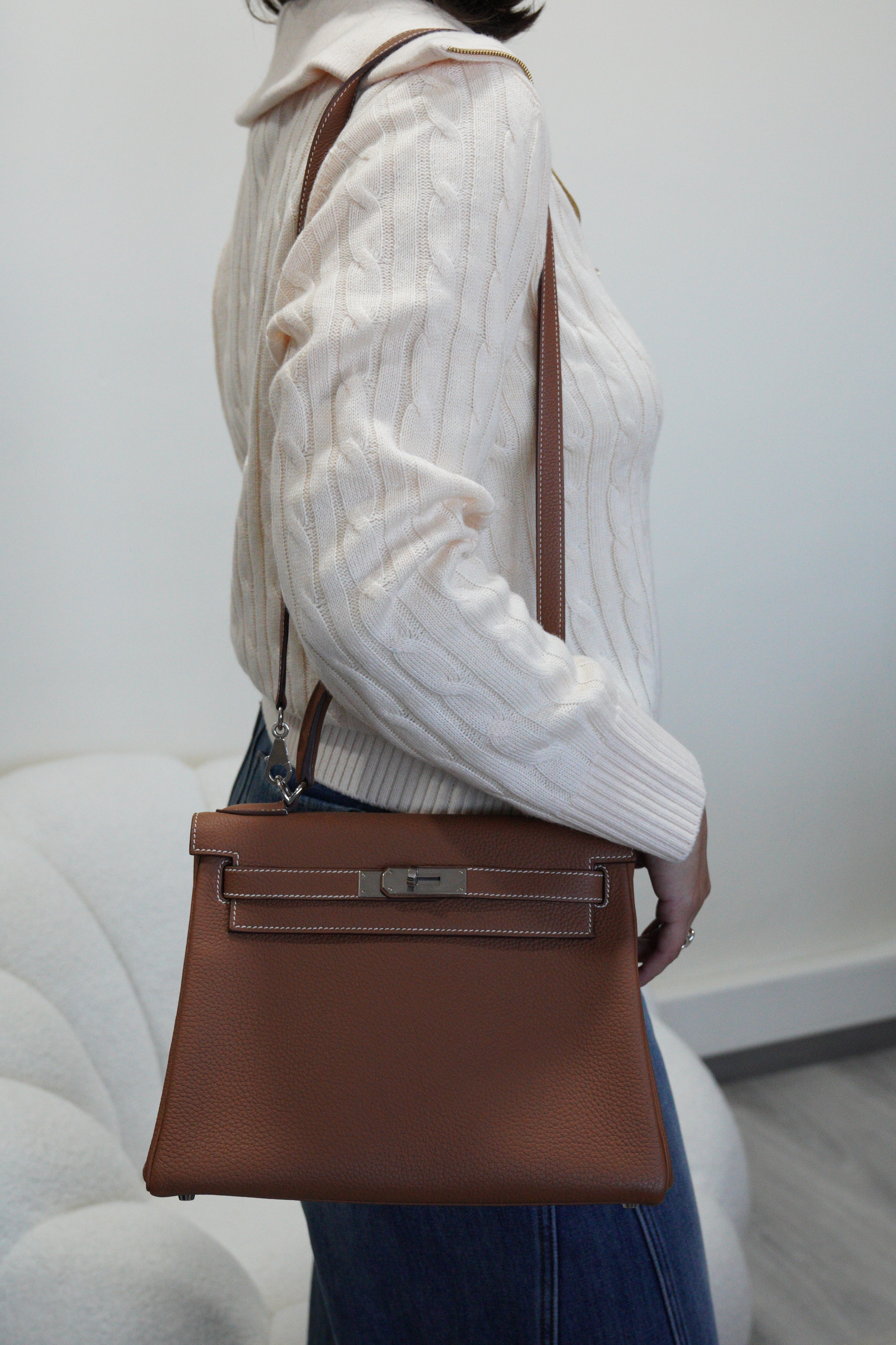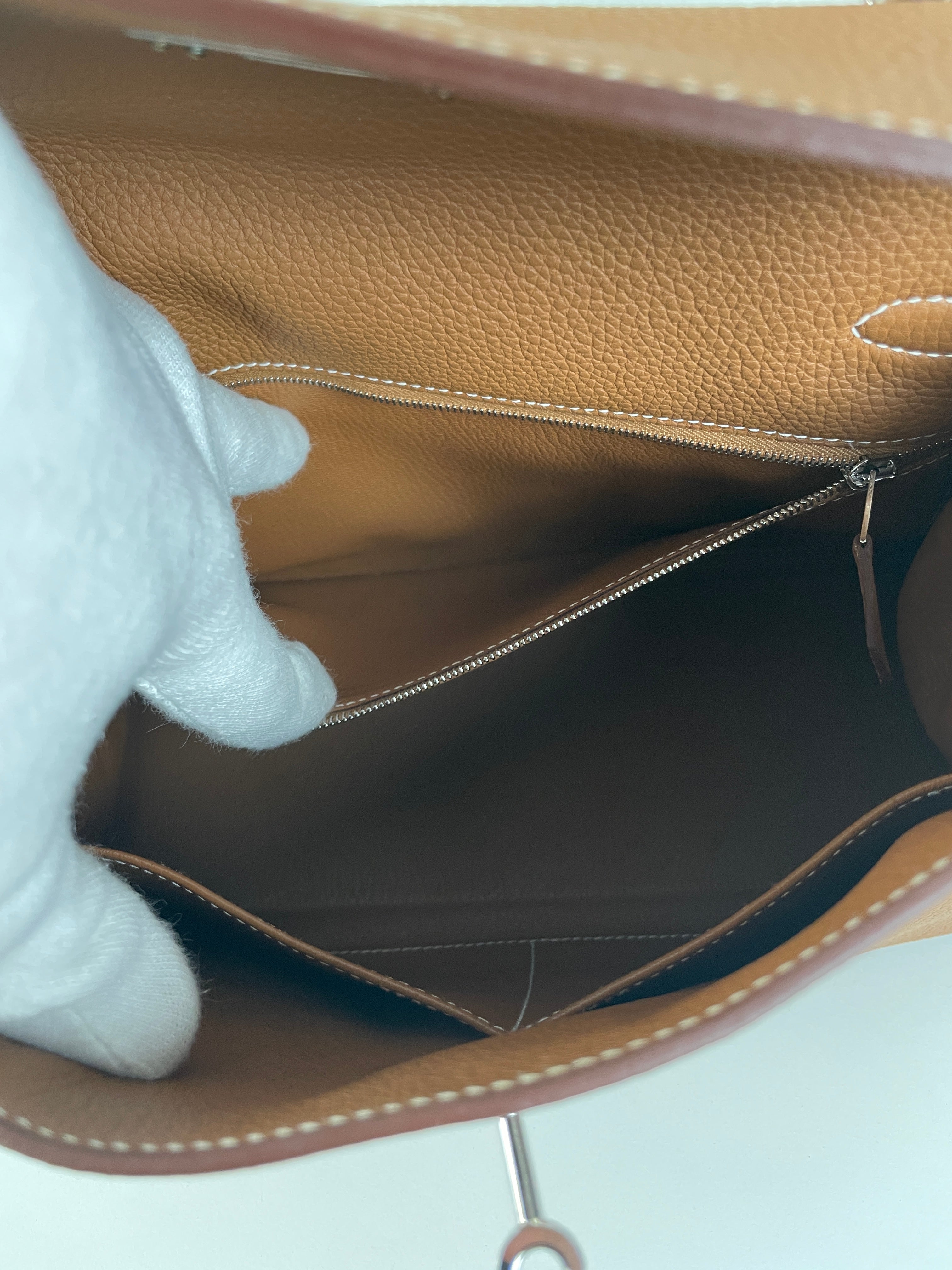 Hermès kelly 28 gold brown togo retourné leather