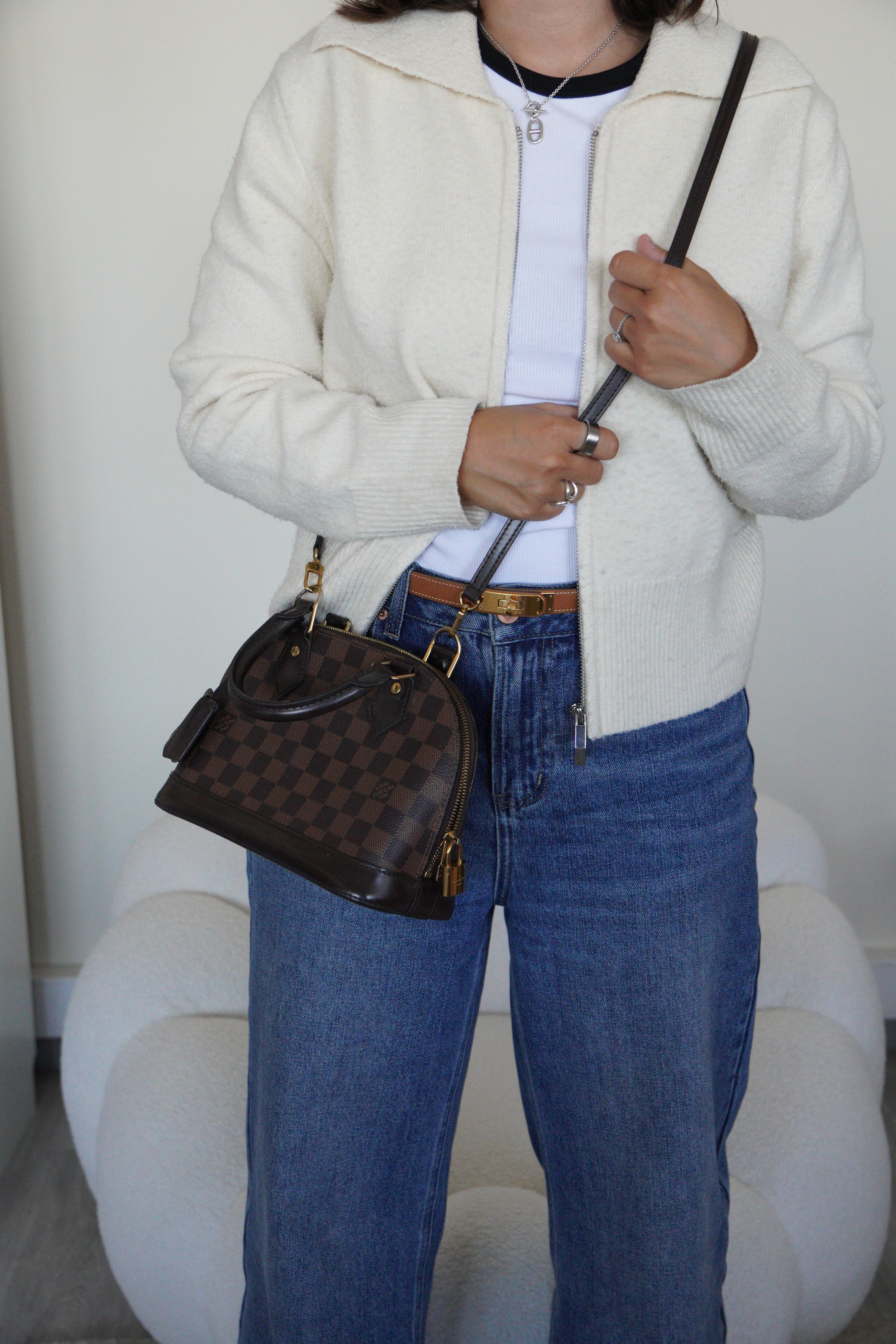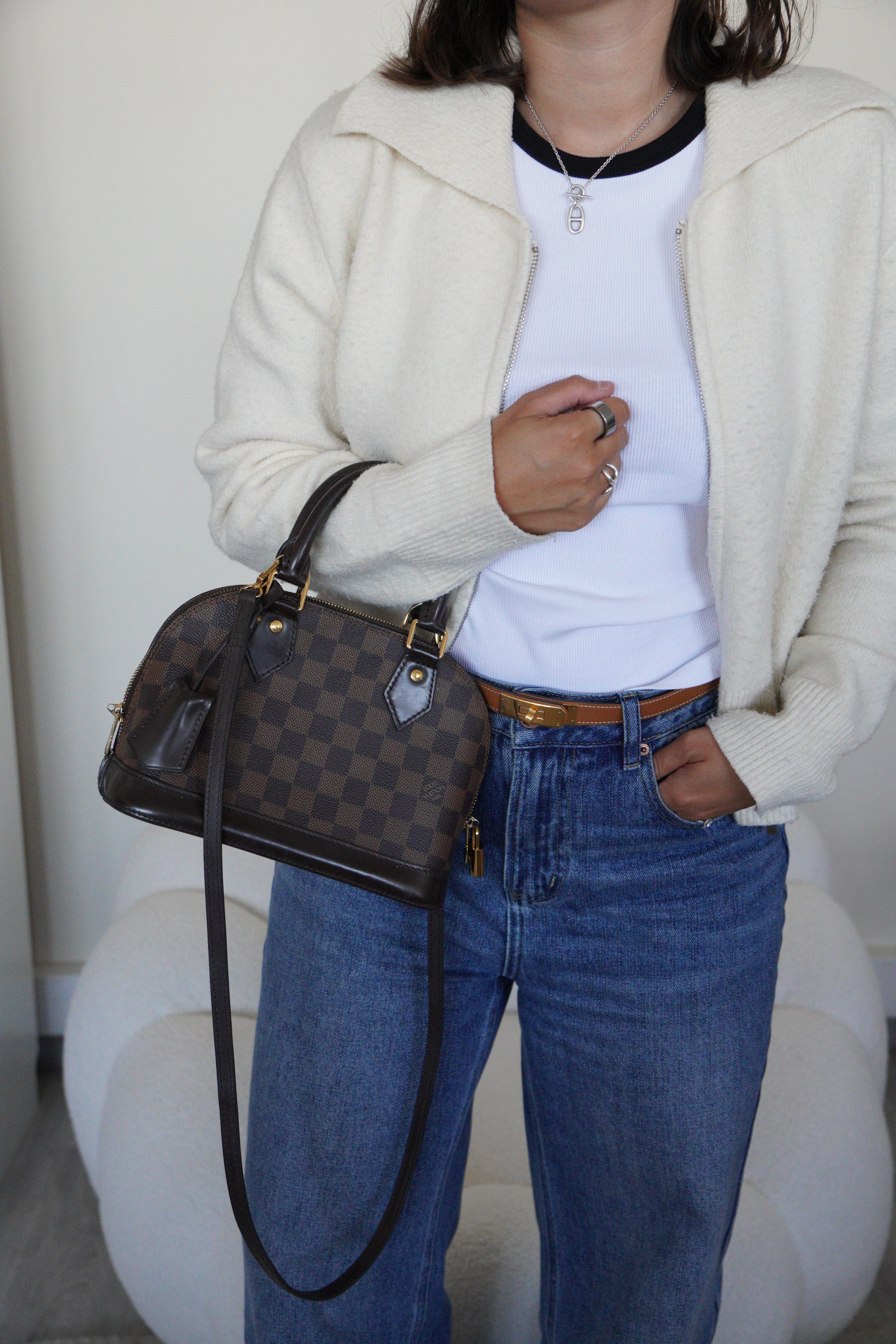 This Louis Vuitton Alma BB in Damier Ebene is a compact and iconic model, ideal for daily wear or elegant evenings. Structured and timeless, this piece comes with its full set of accessories and shows only light signs of use. A classic that never goes out of style.