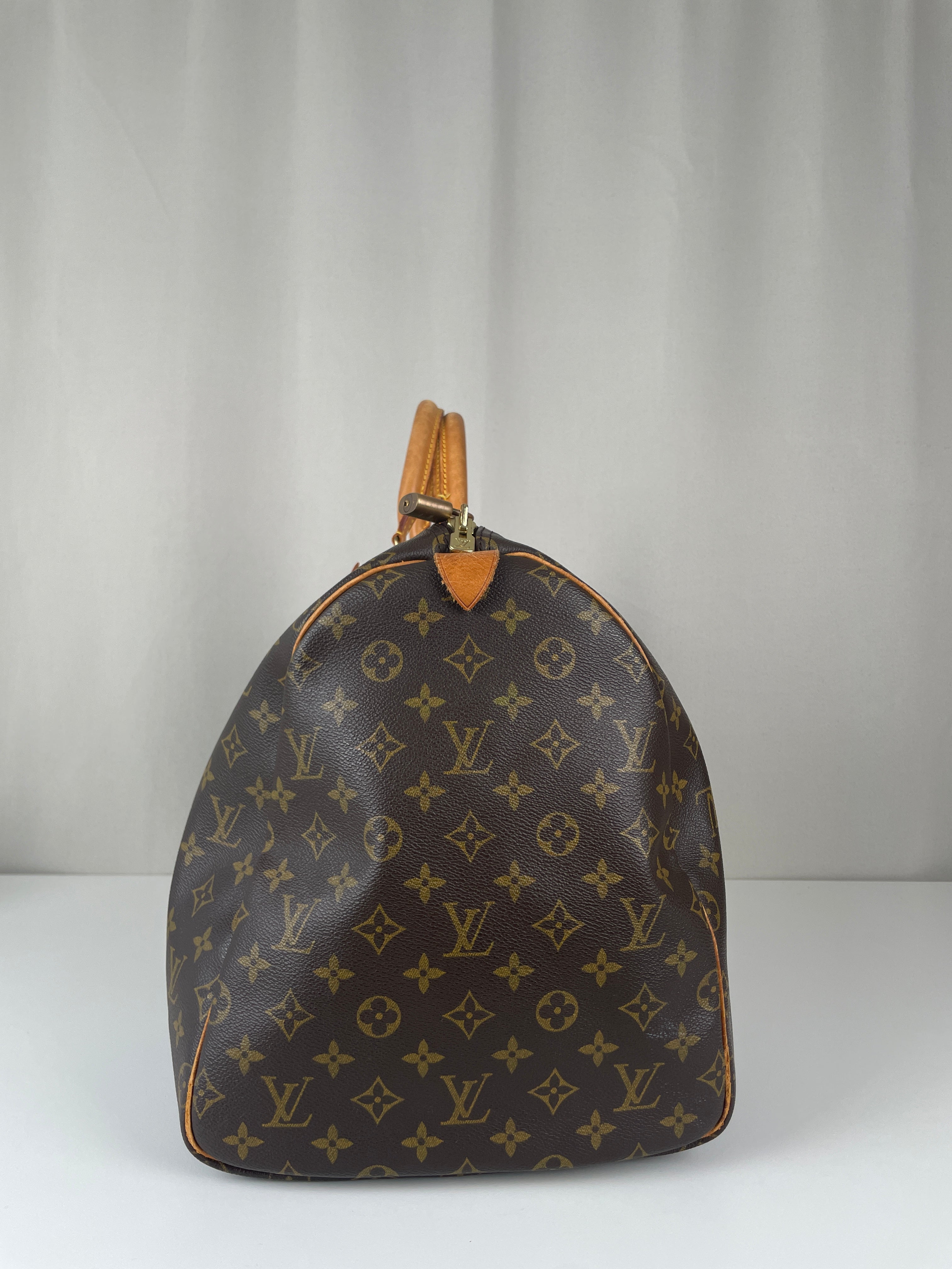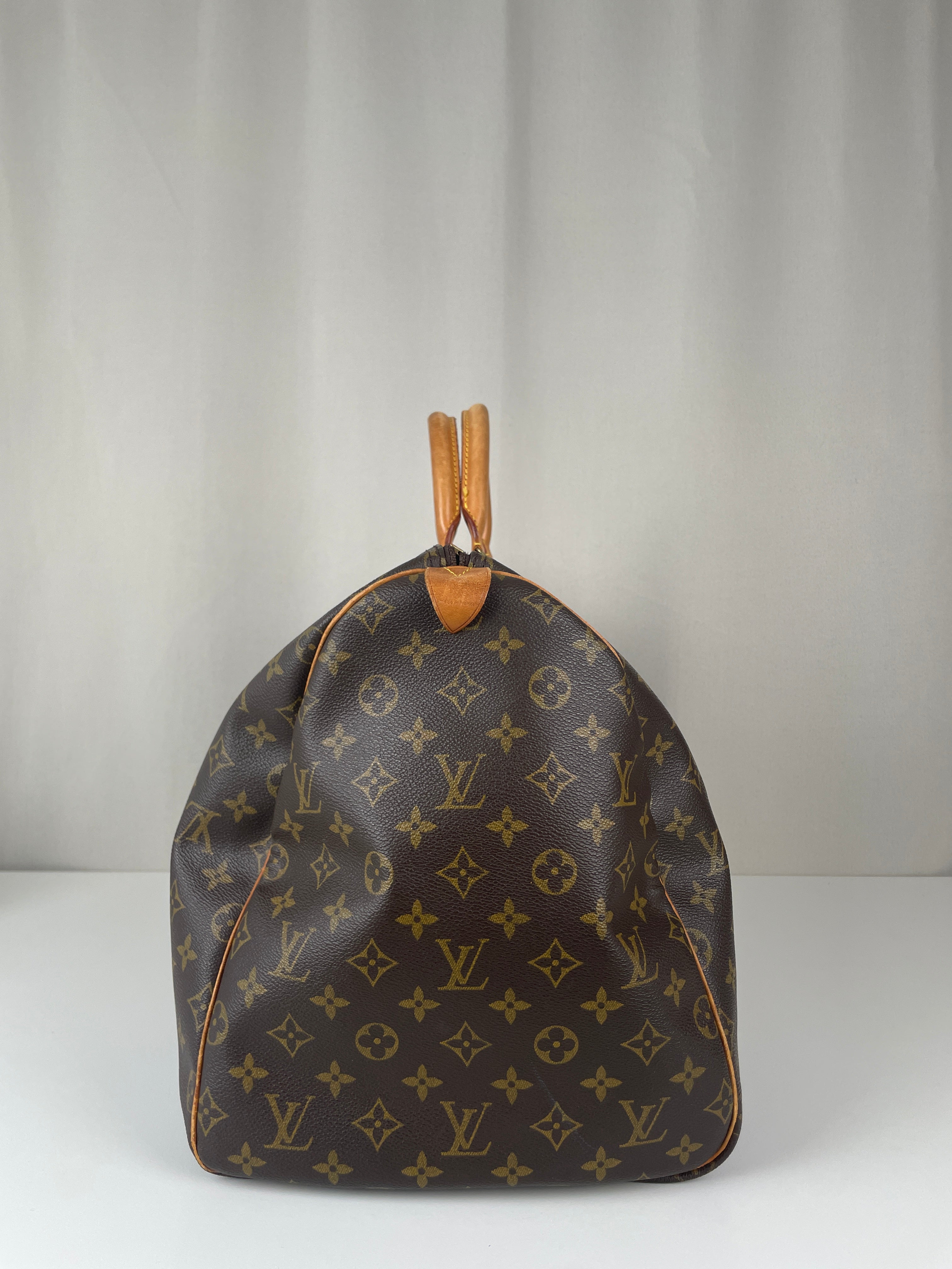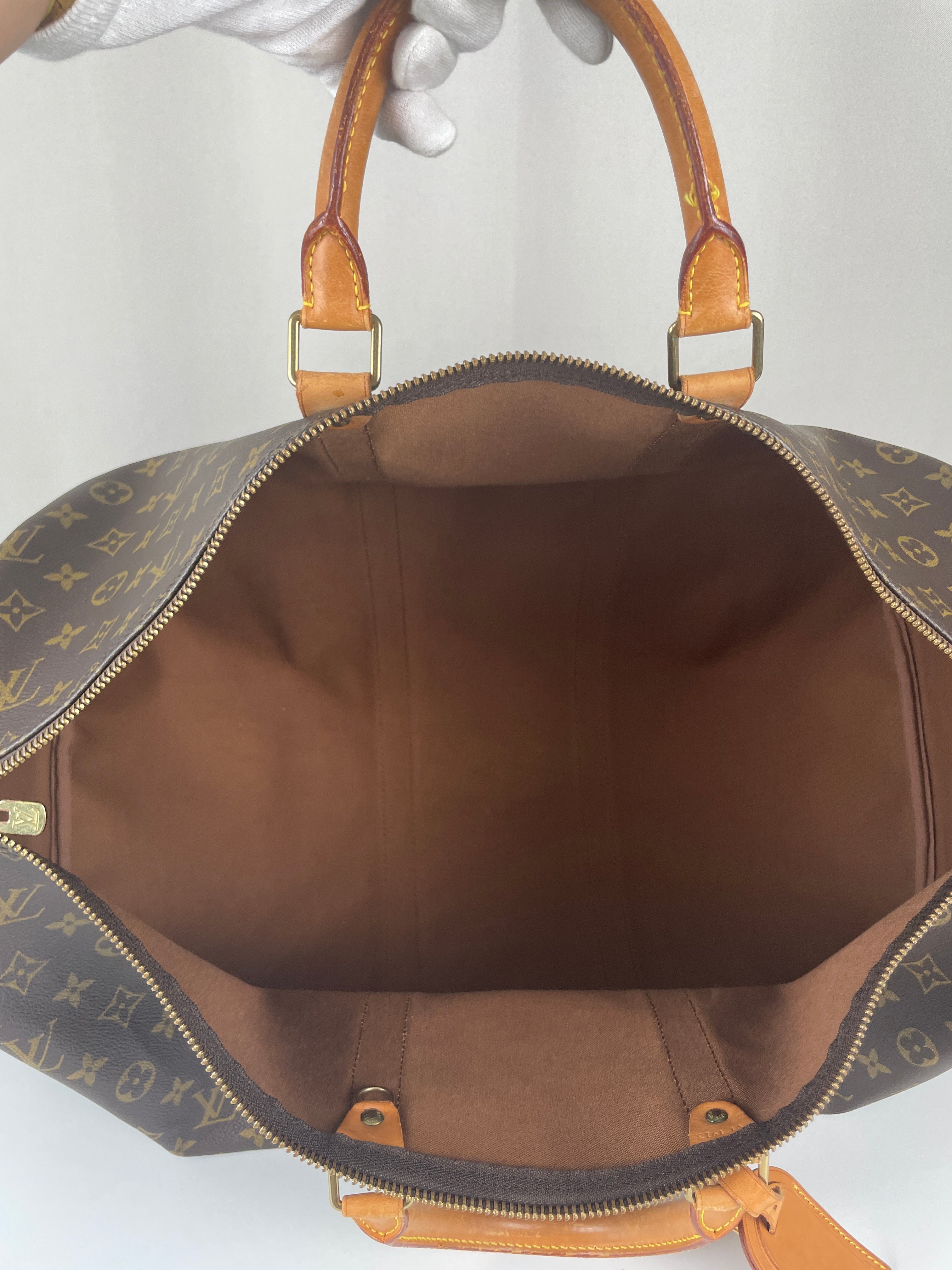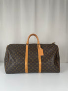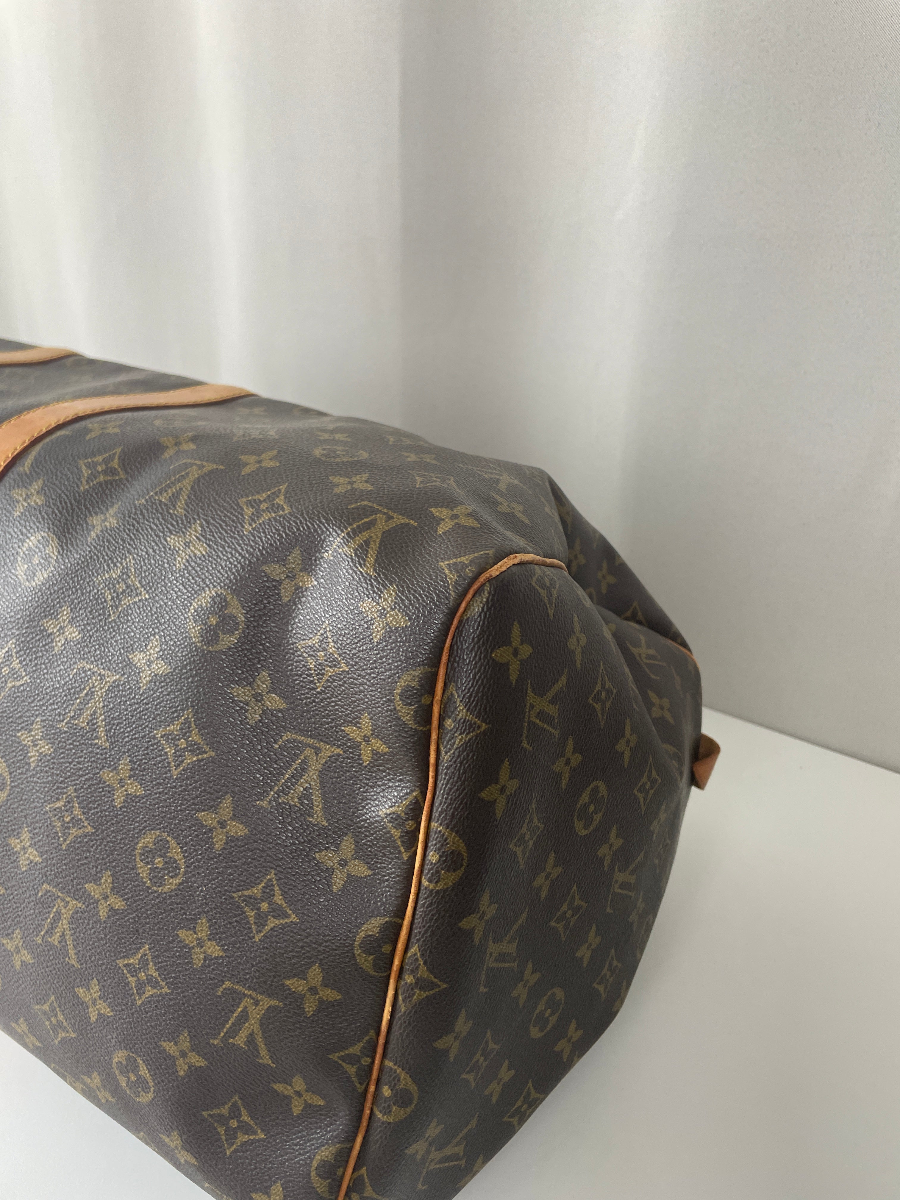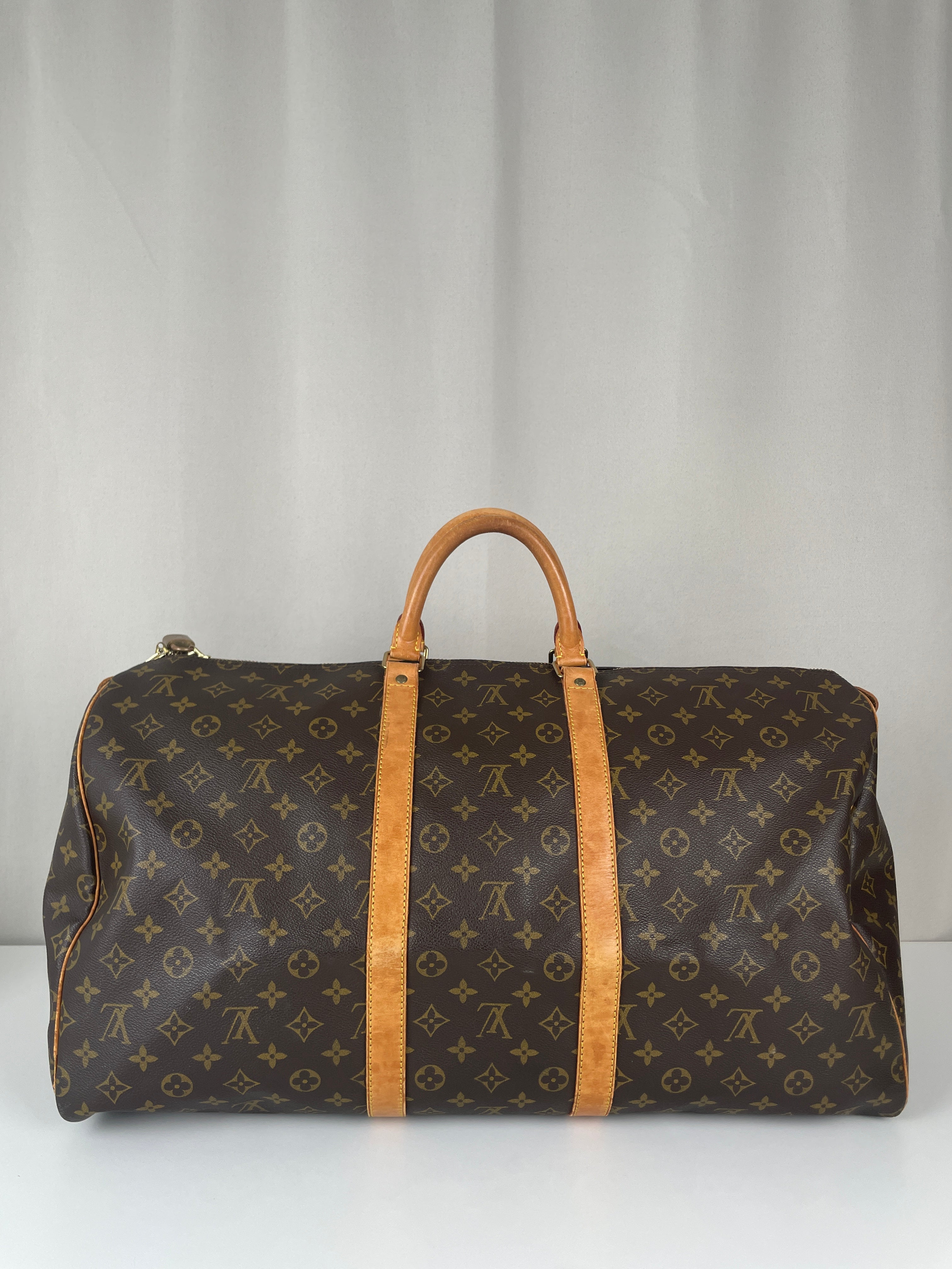 The Louis Vuitton Keepall 55 in Monogram canvas with shoulder strap is a cult classic in the world of luxury travel. Its flexible structure and cabin-friendly size make it the ideal partner for getaways and business trips alike. The naturally aged leather gives it character, and despite light signs of wear, this piece remains elegant, durable, and endlessly functional.