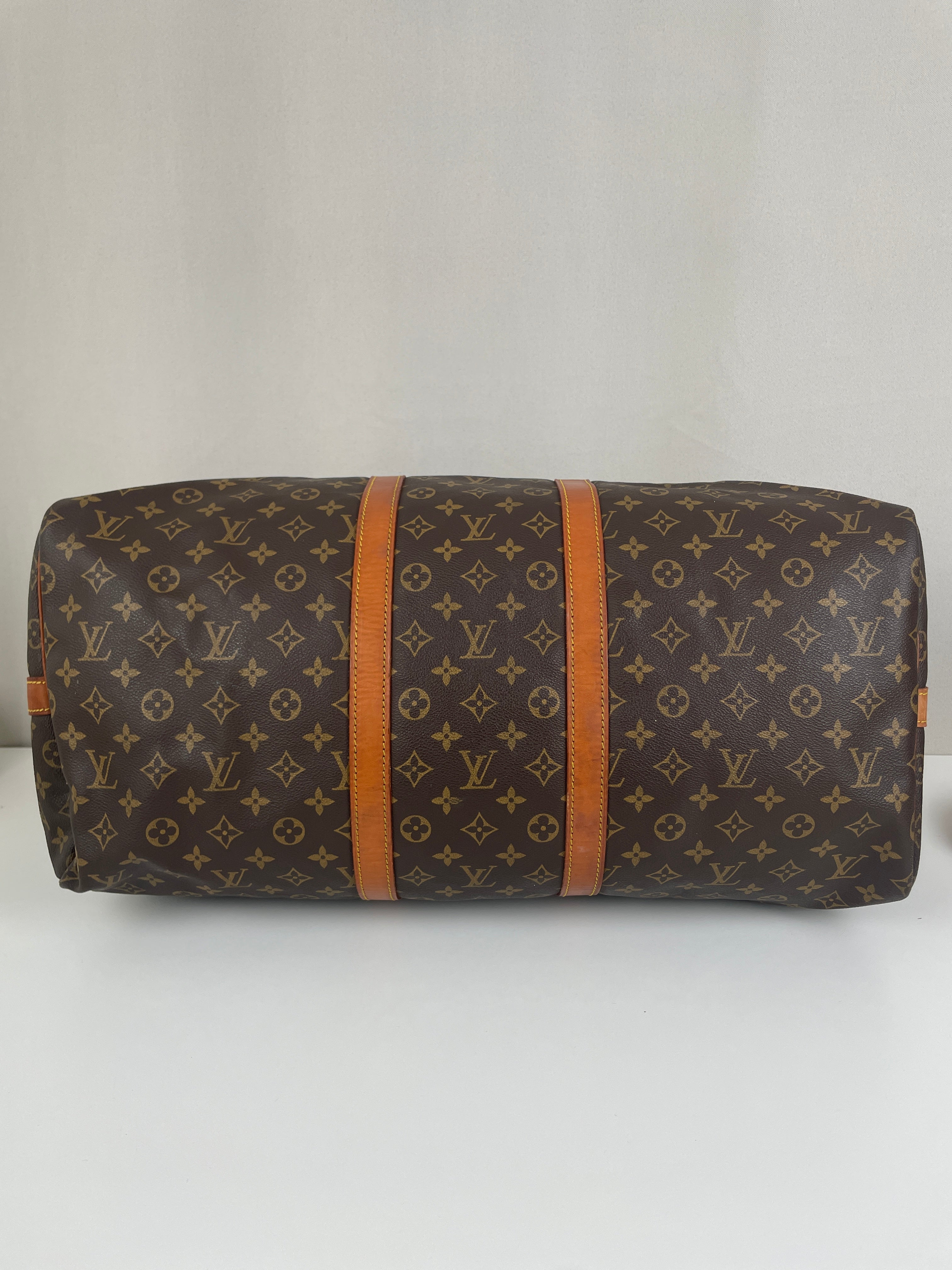 The Louis Vuitton Keepall 55 is one of the most iconic travel bags in the world. Crafted in Monogram canvas with natural leather trim, it's the perfect size for cabin use on plane trips. Lightweight, flexible and stylish, it blends functionality with timeless elegance.