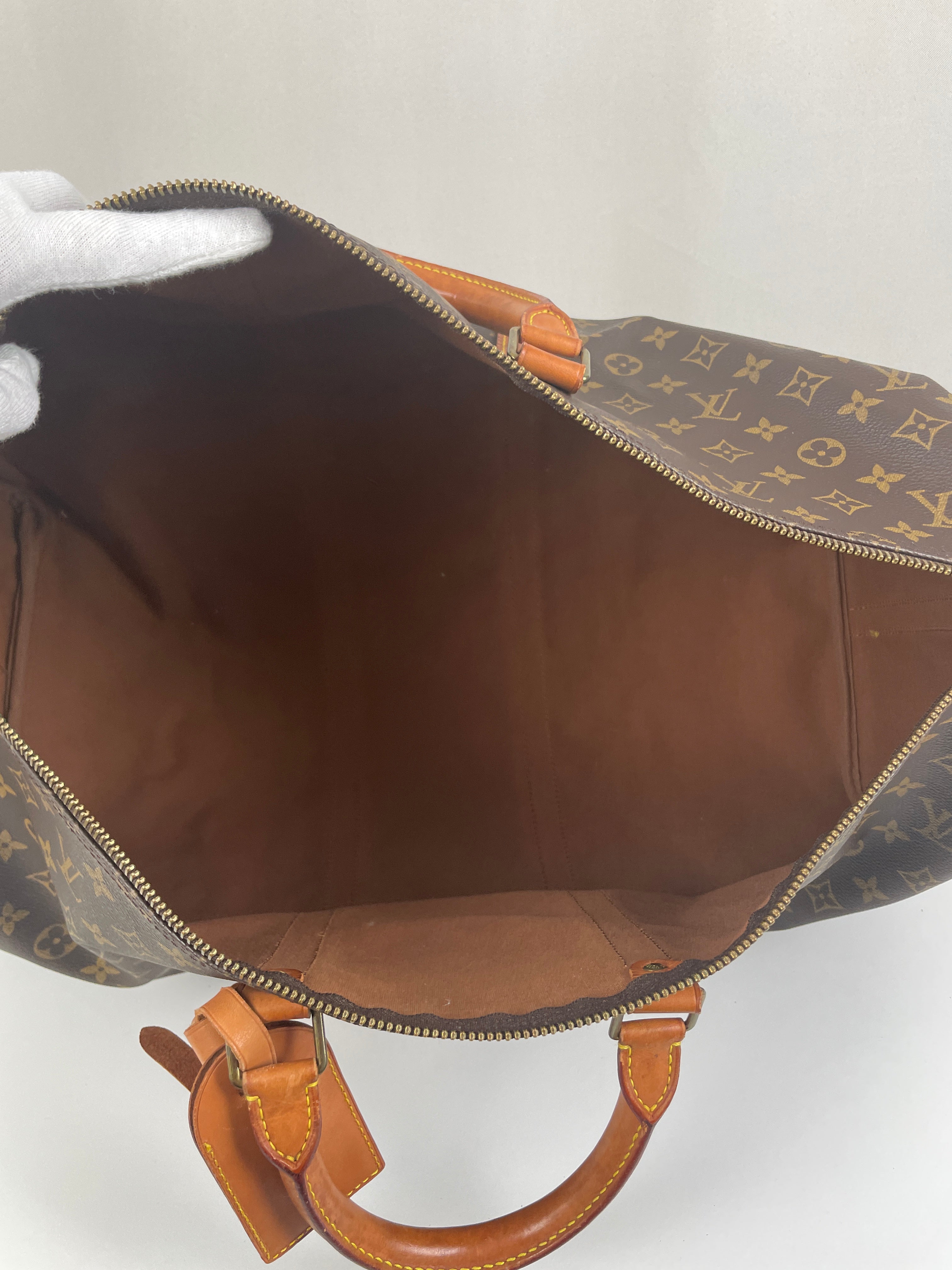 This piece is in good vintage condition: the leather shows typical signs of age and patina with some stains, the hardware is gently worn, and the corners are slightly rubbed — but the structure and interior are well preserved. A luxury travel essential for lovers of classic Louis Vuitton heritage.