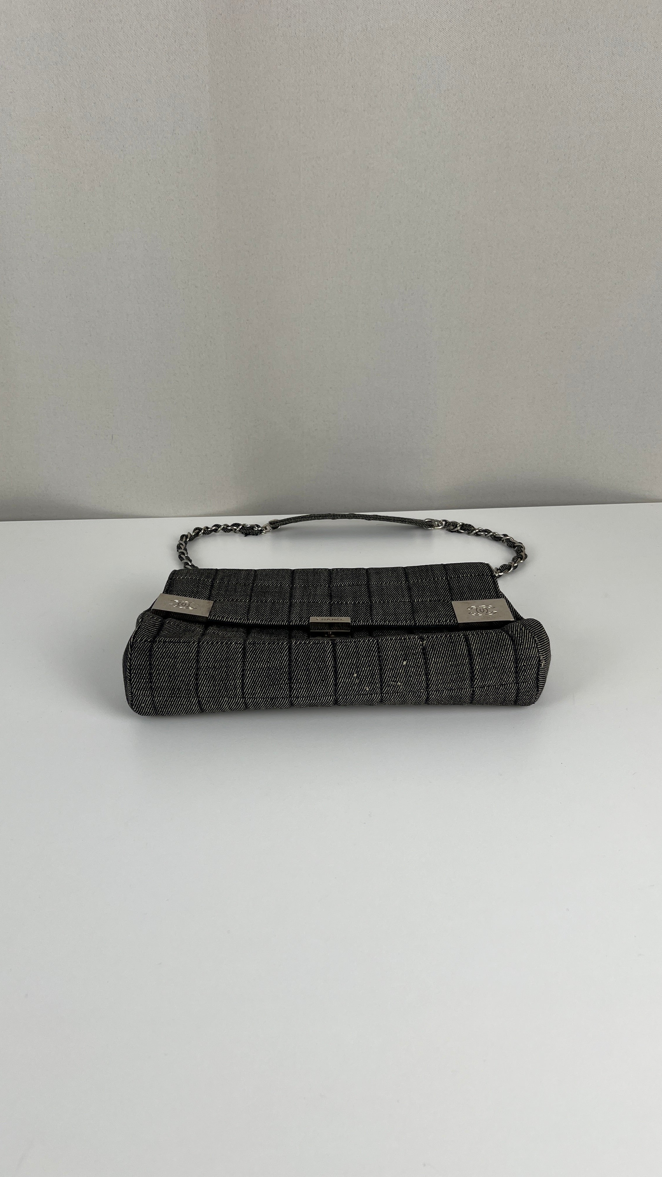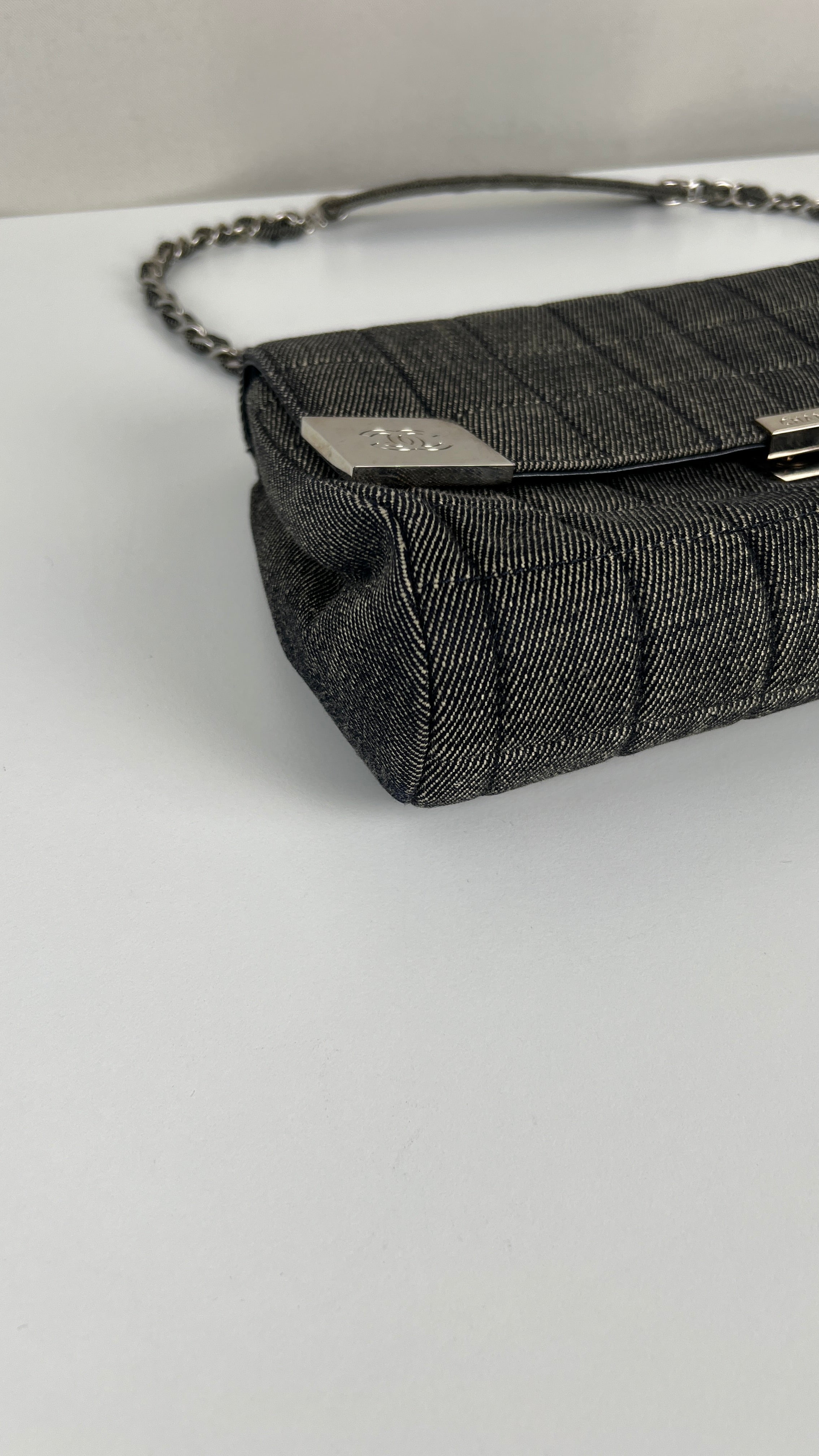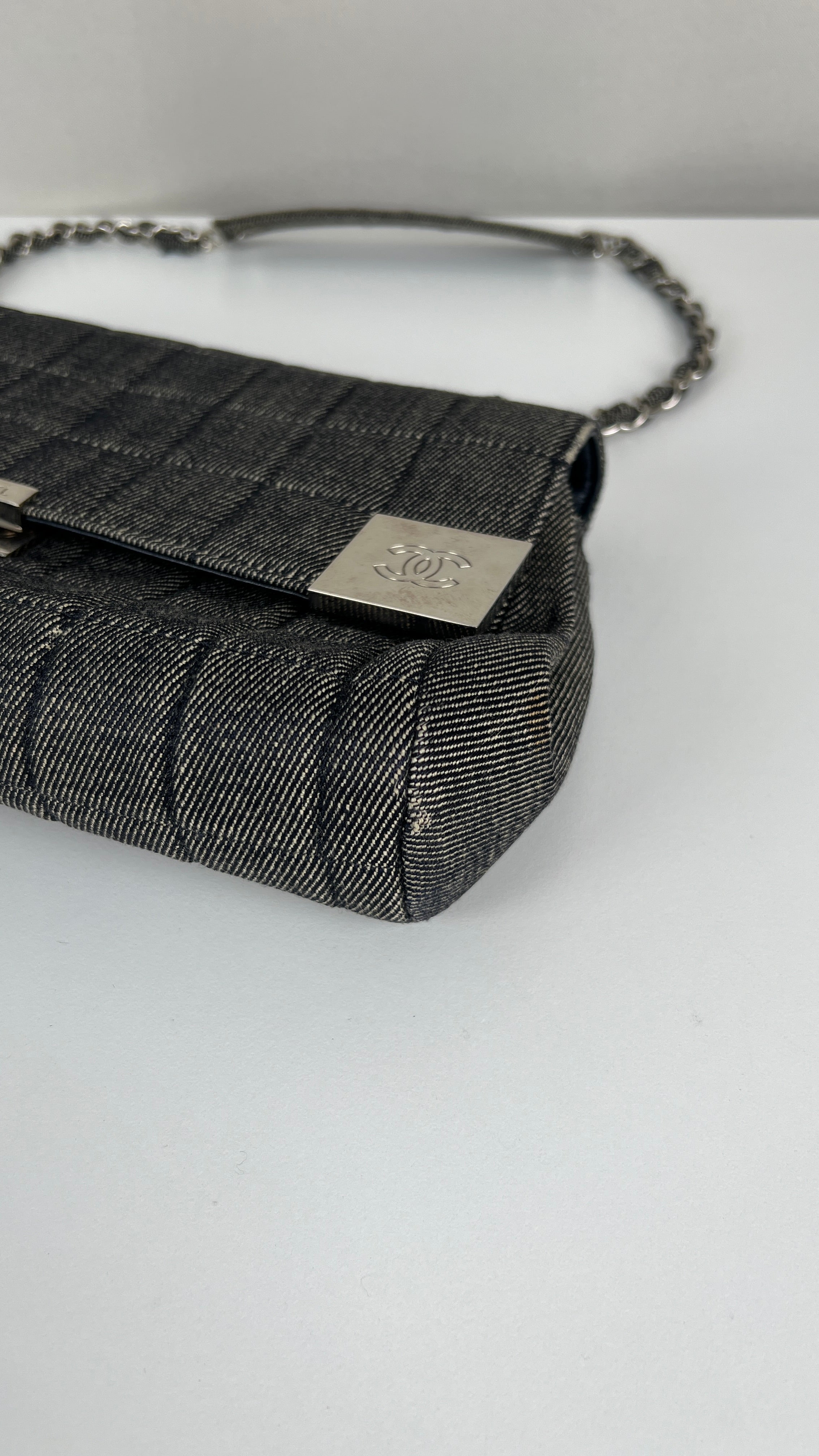 Chanel blue grey denim shoulder bag