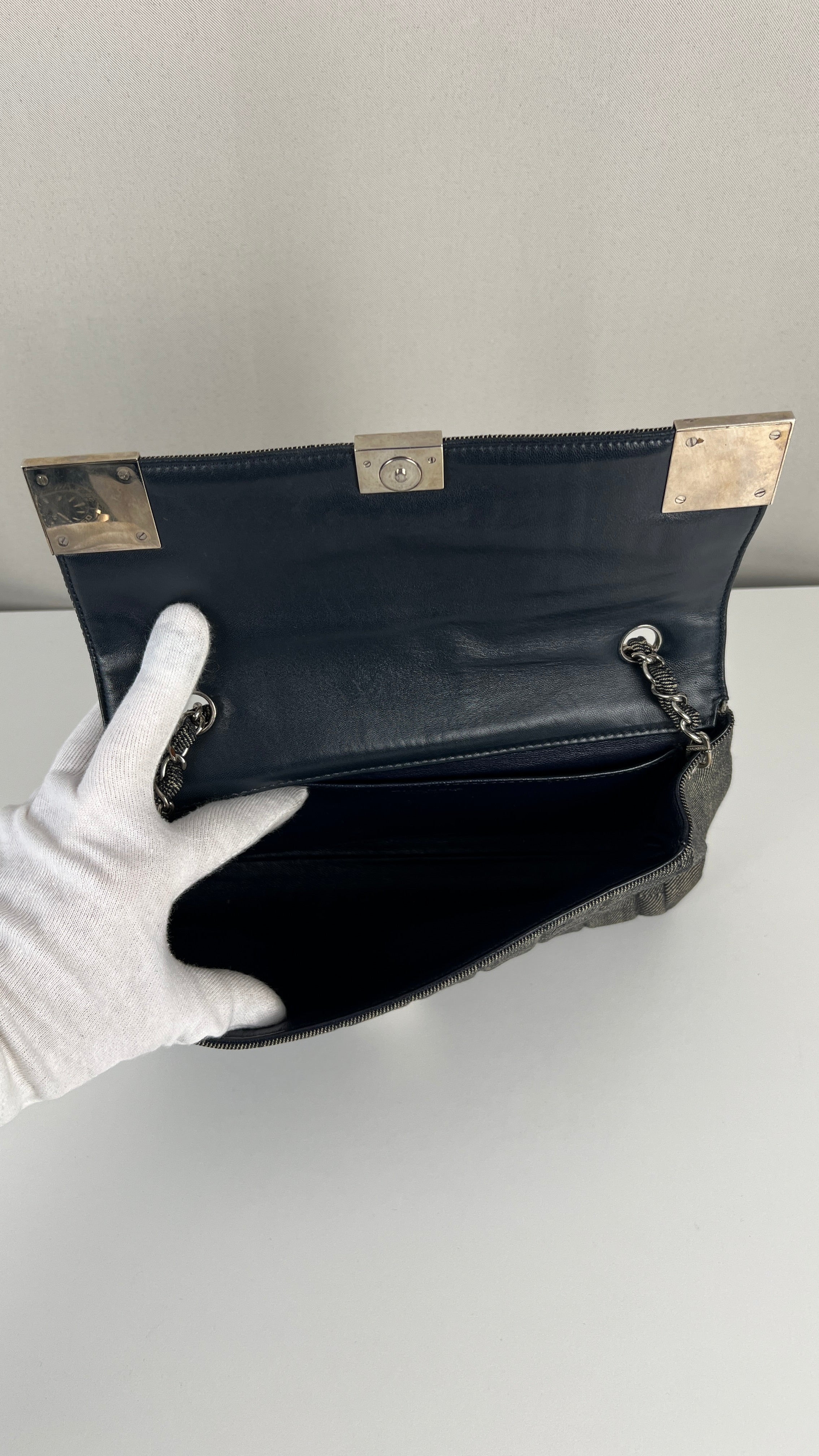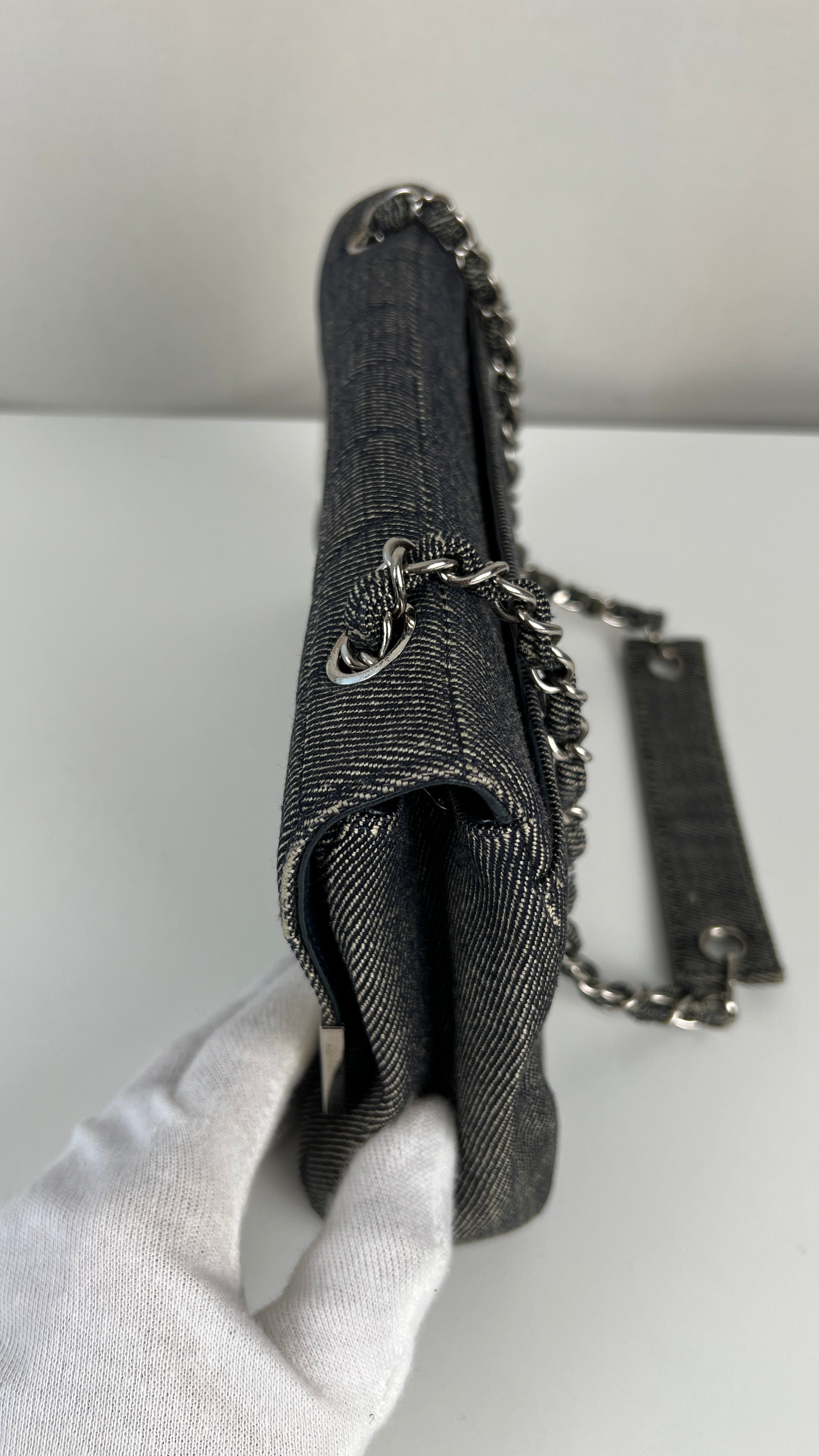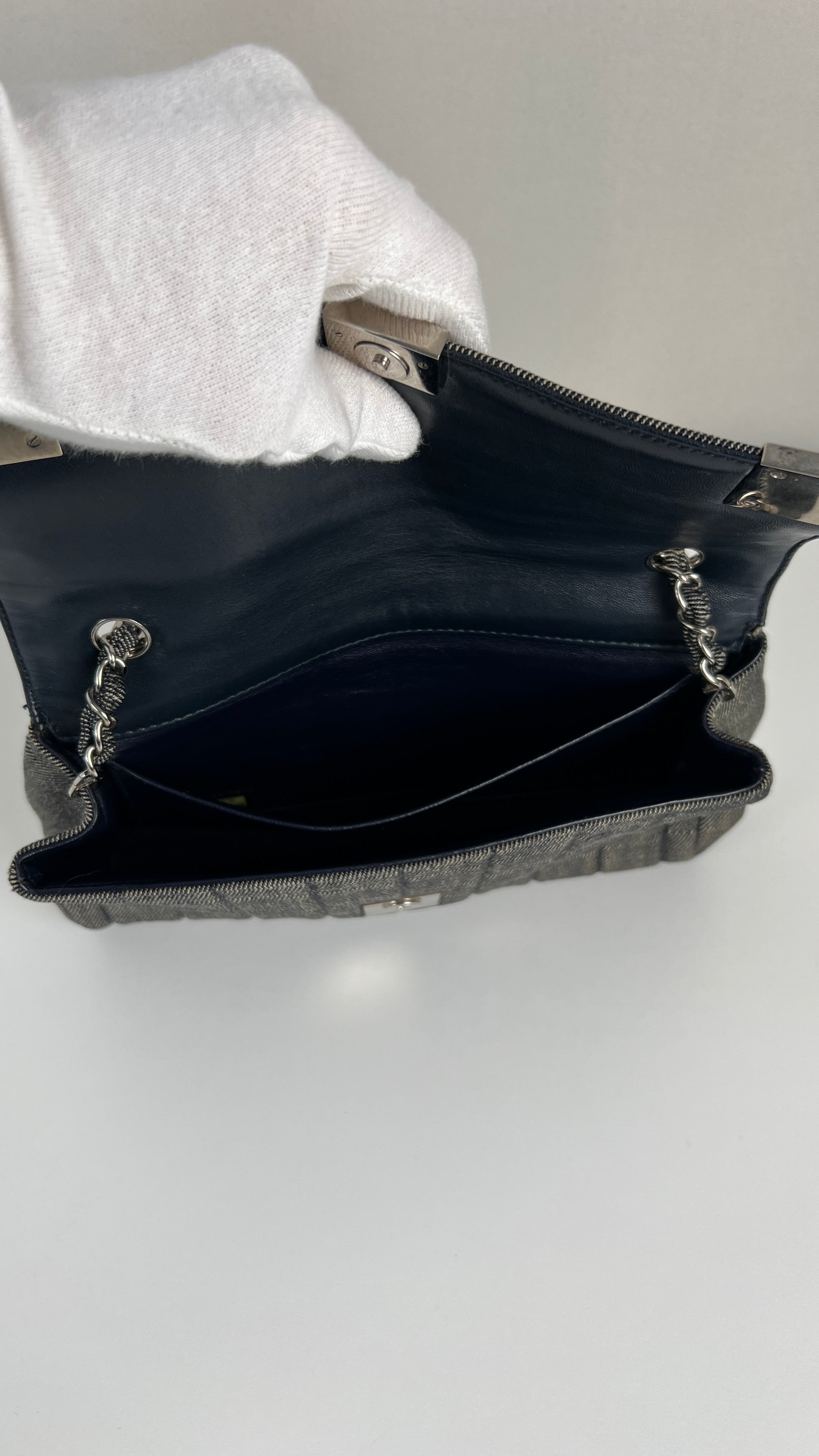 Chanel blue grey denim shoulder bag