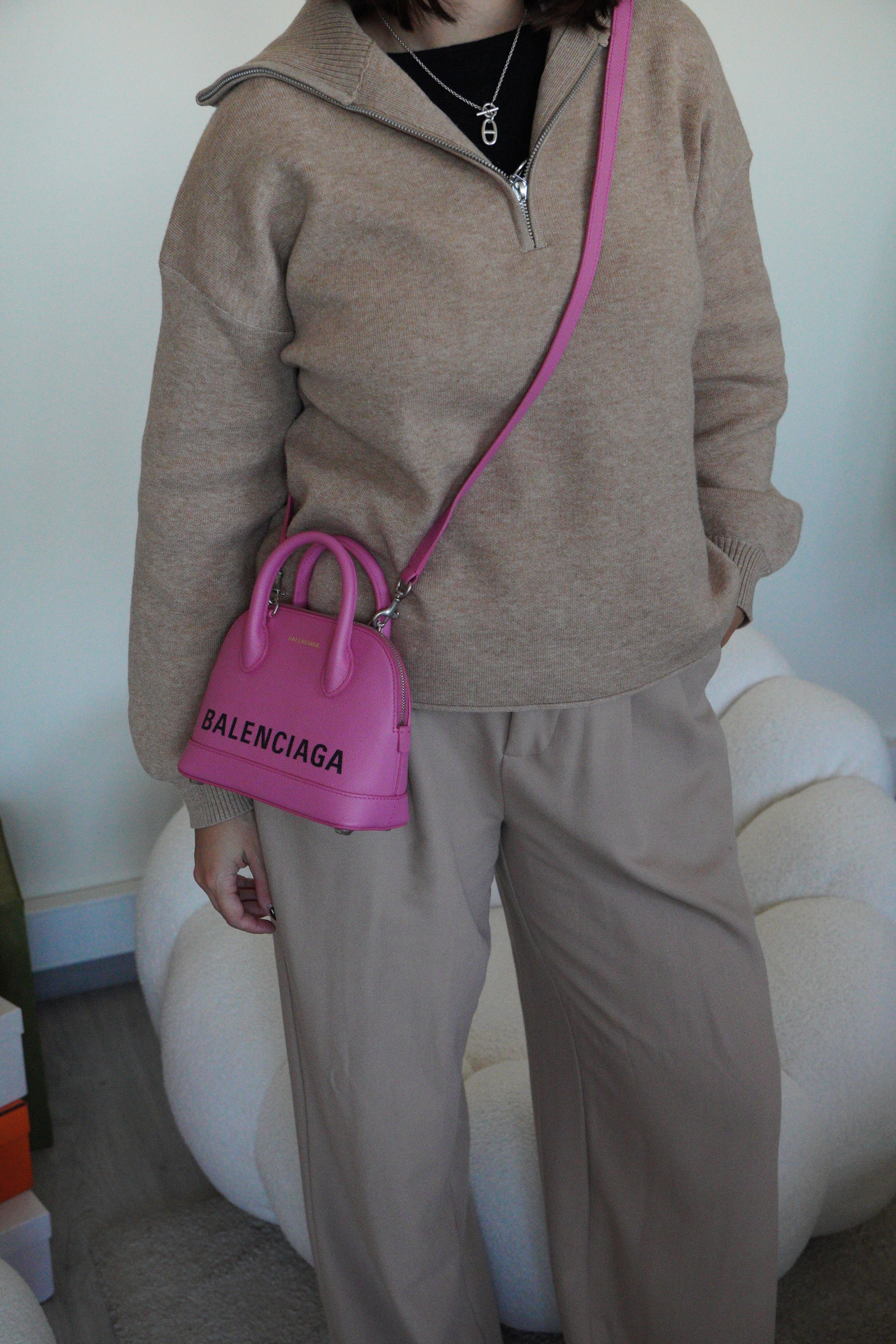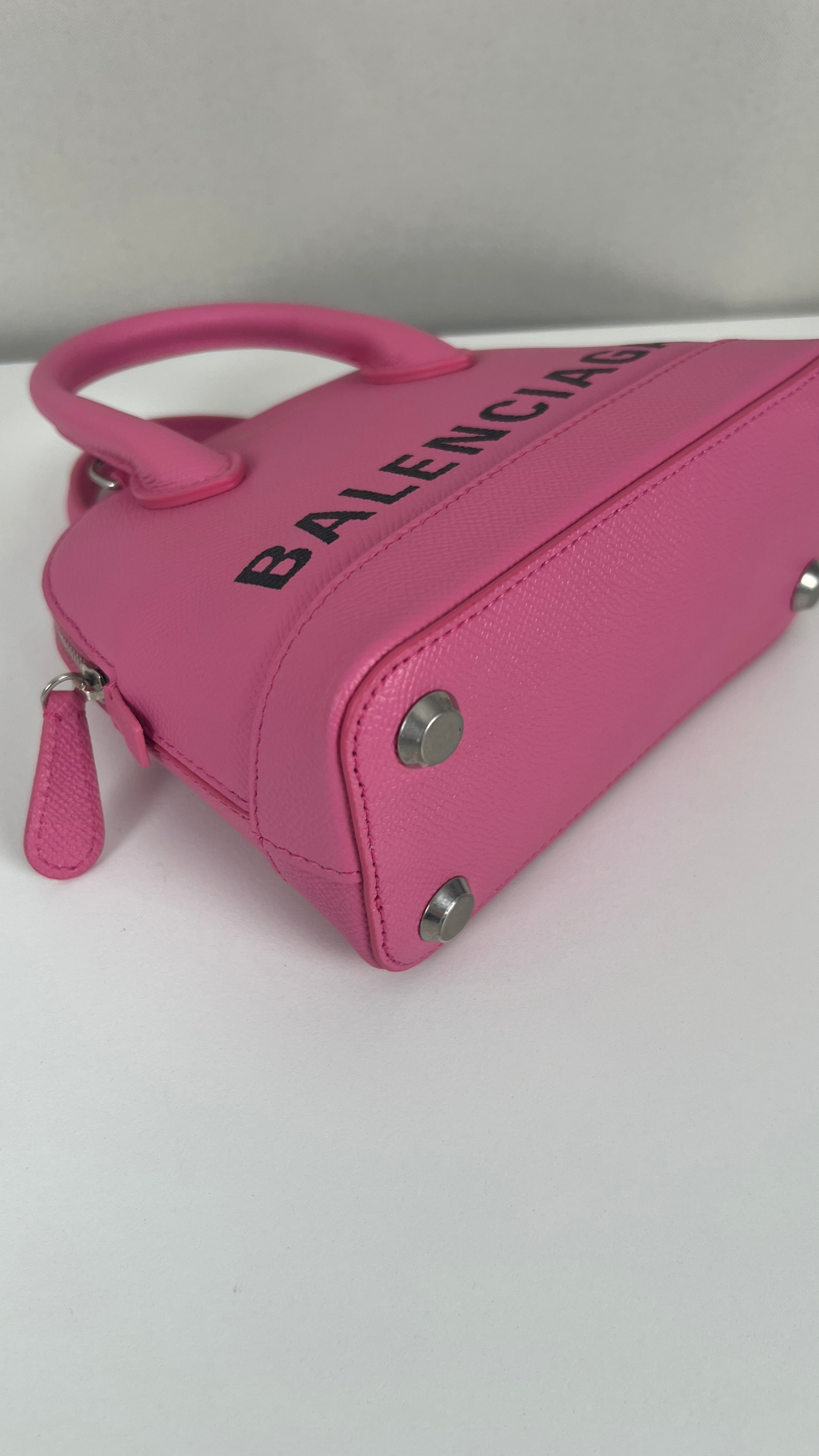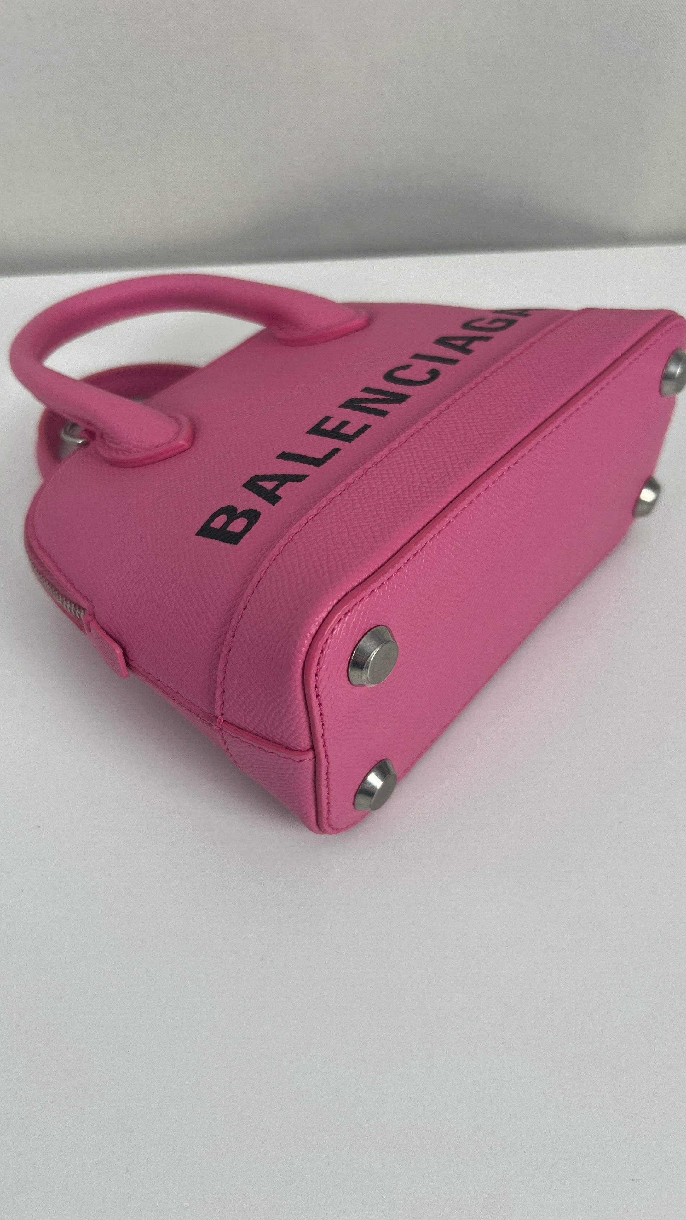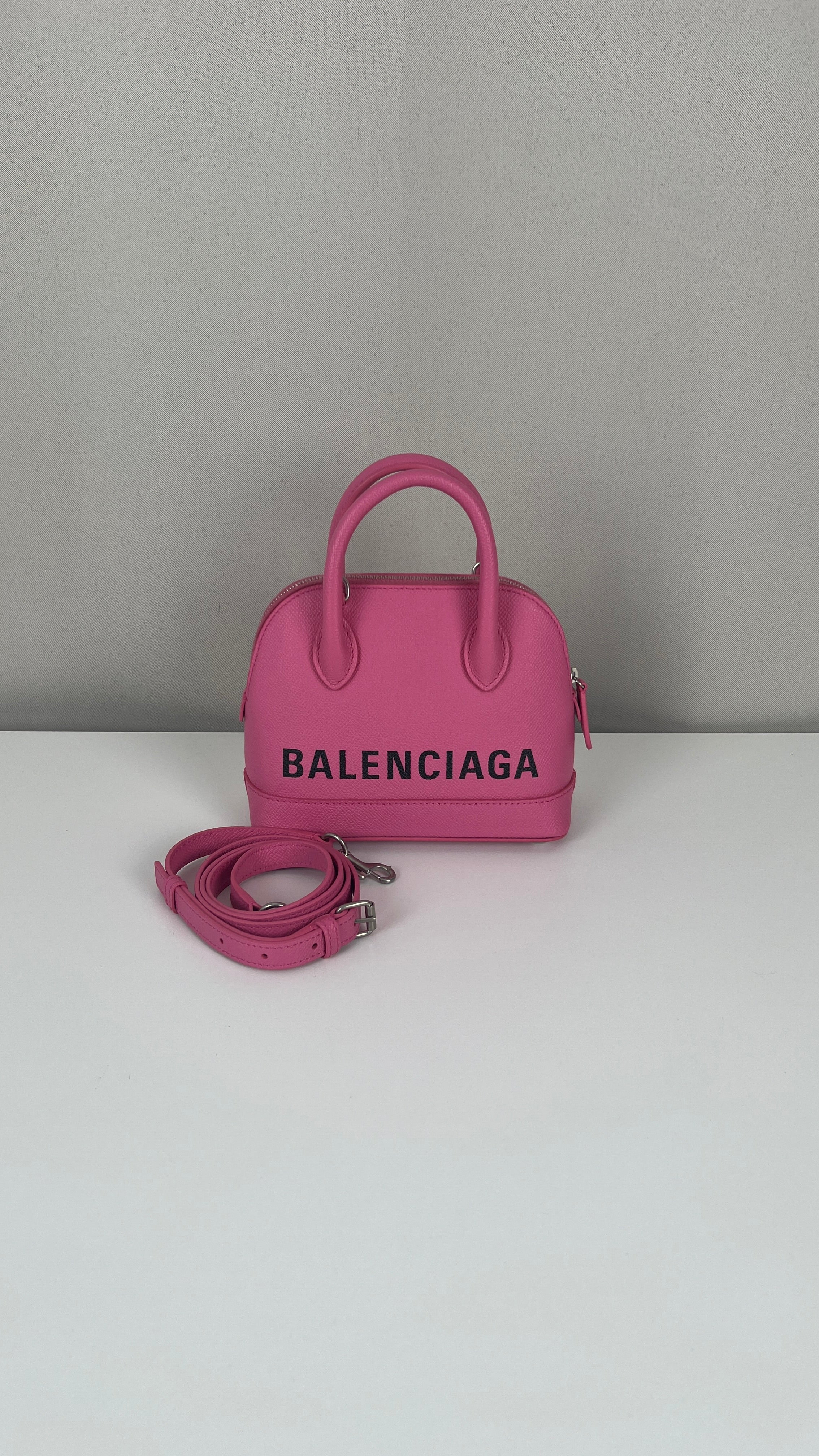 This Balenciaga ville mini crossbody bag is in very good condition, as new. The leather is in very good condition. The corners are in very good condition. The interior is in very good condition. You can wear the bag in crossbody with the strap that you can detach and adjust. You still have the plastic protection paper on the little feets under the bag.