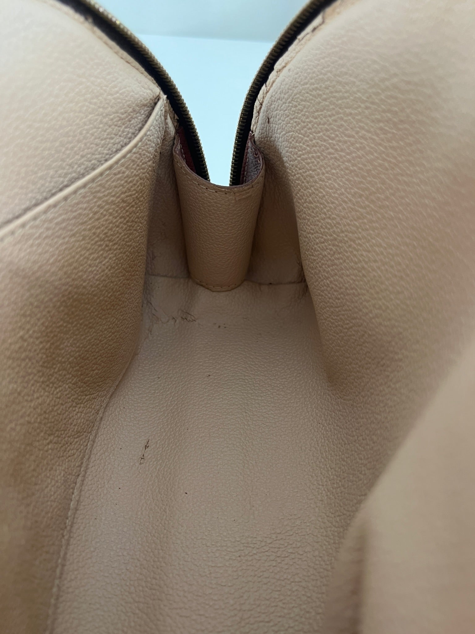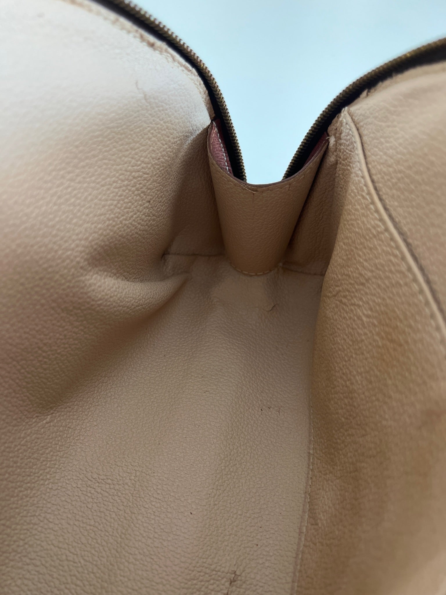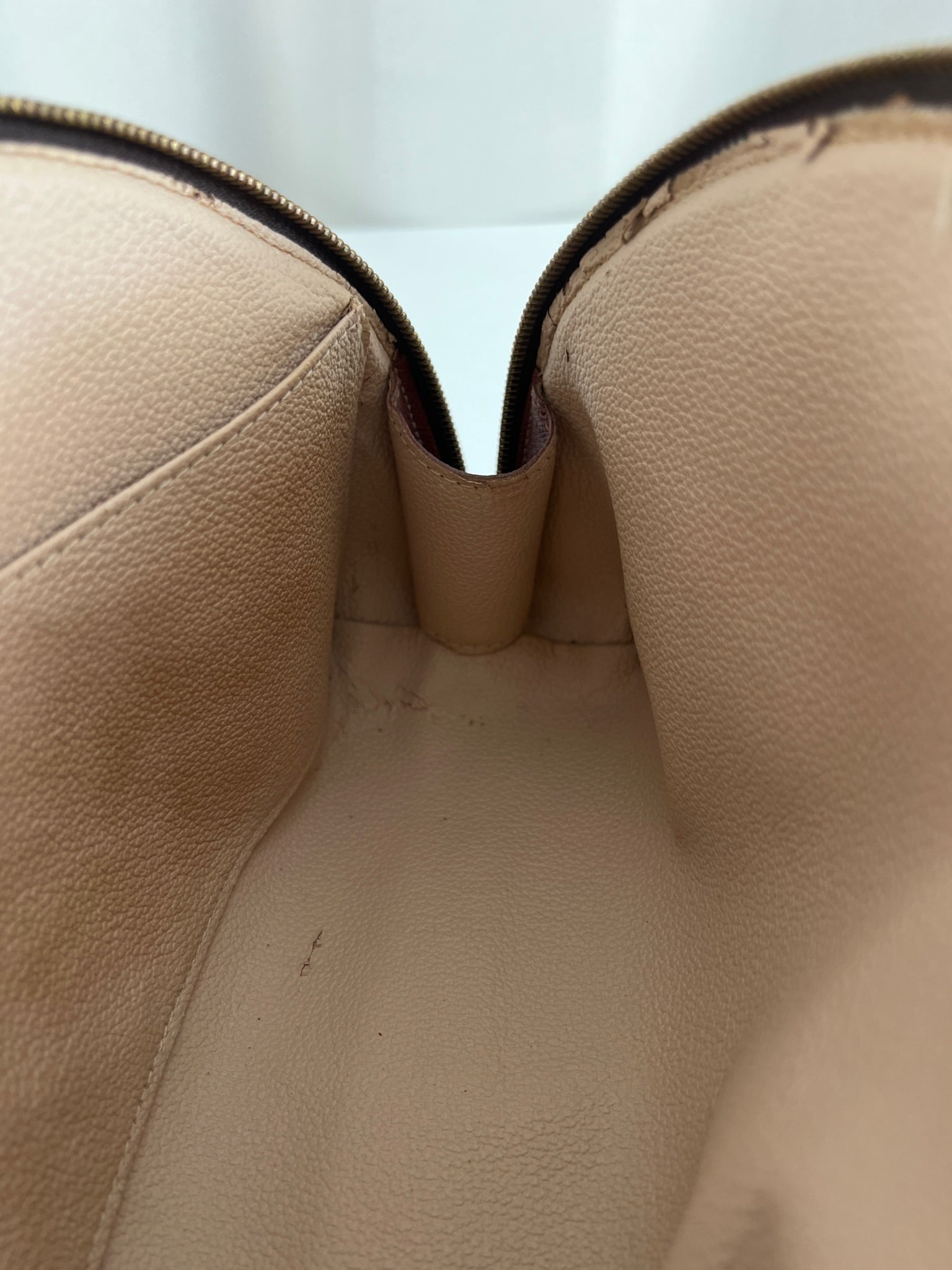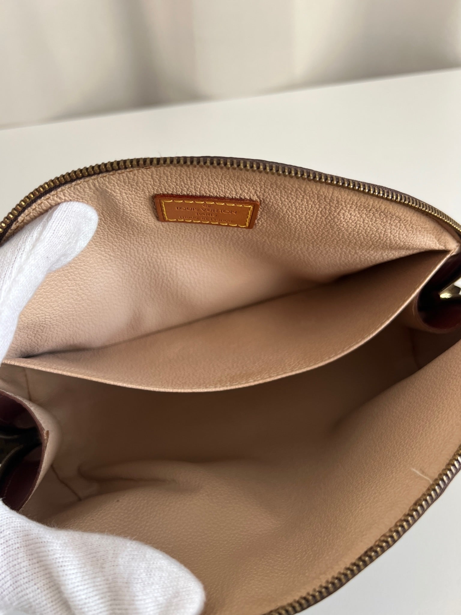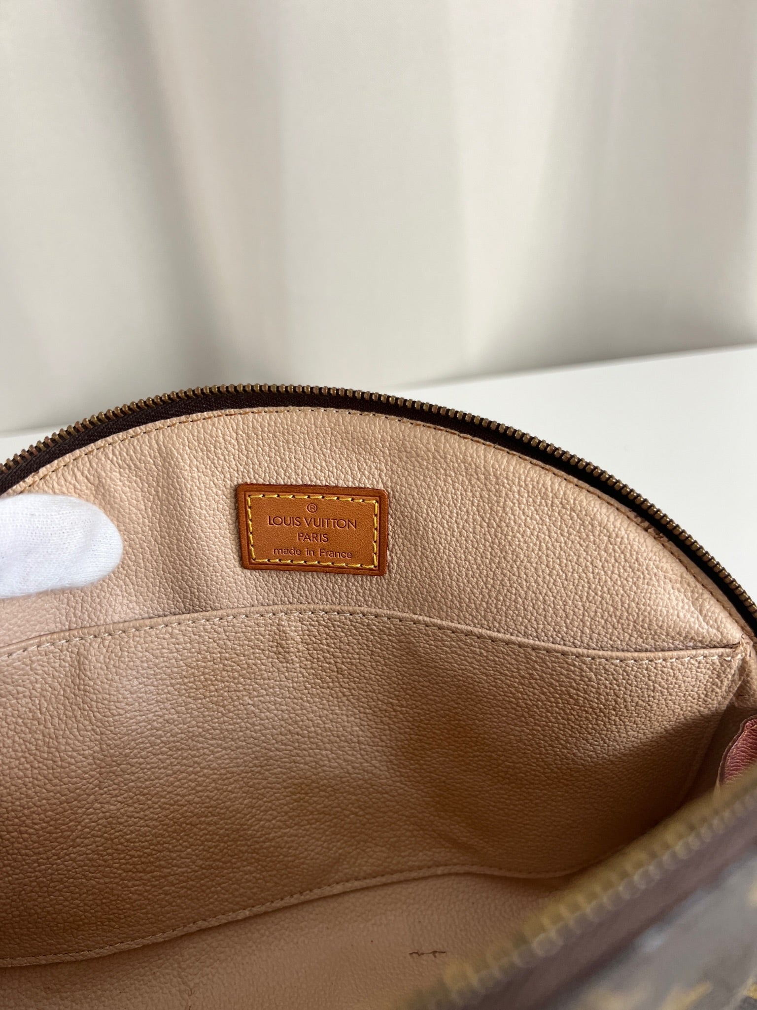 This Louis Vuitton Canva Monogram MM cosmetic pouch is in good condition. The canva and leather parts are in very good condition. The zipper interior close to it is a little used from normal use. The interior is in good condition you can see some sign of use of the leather insde little cracks.