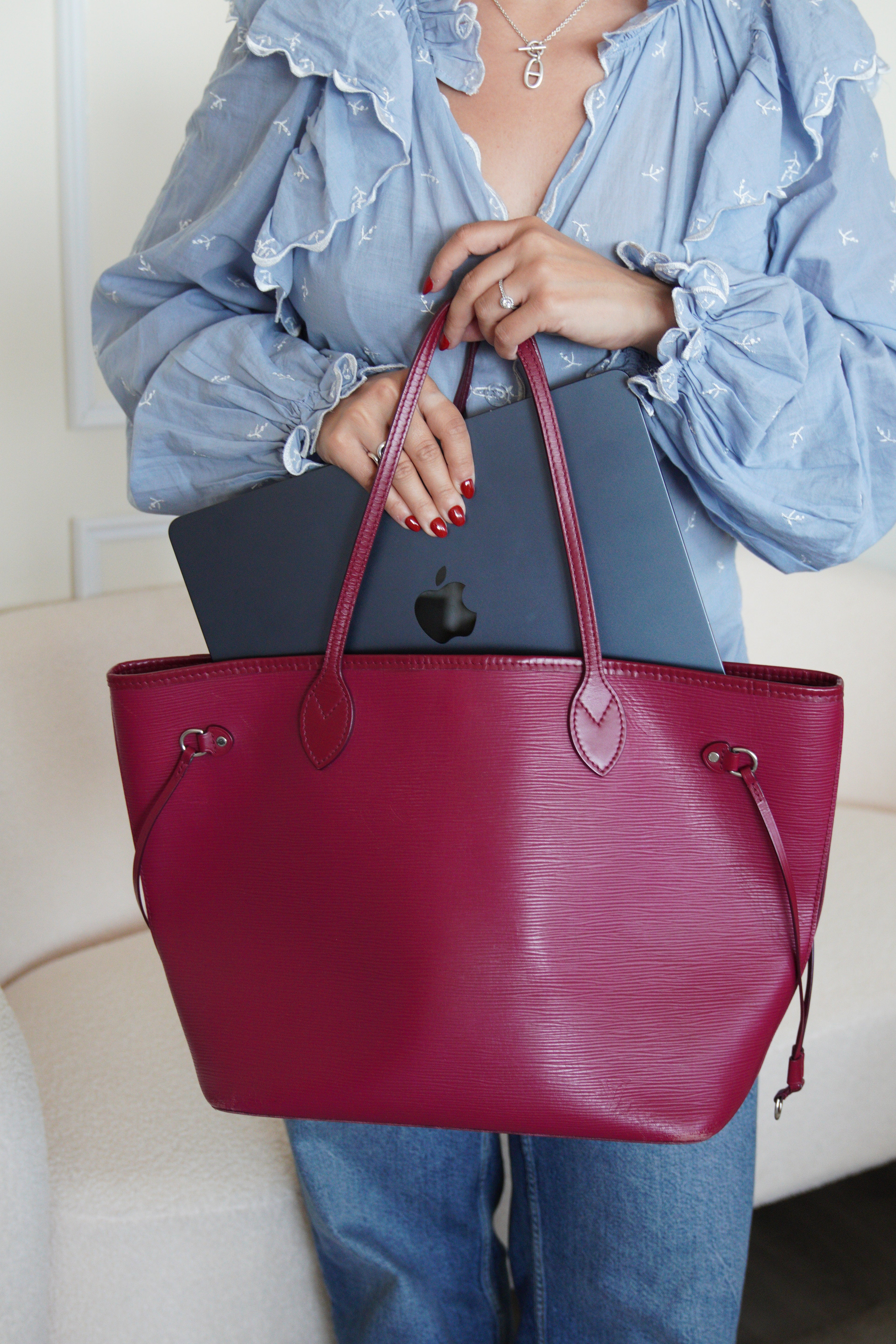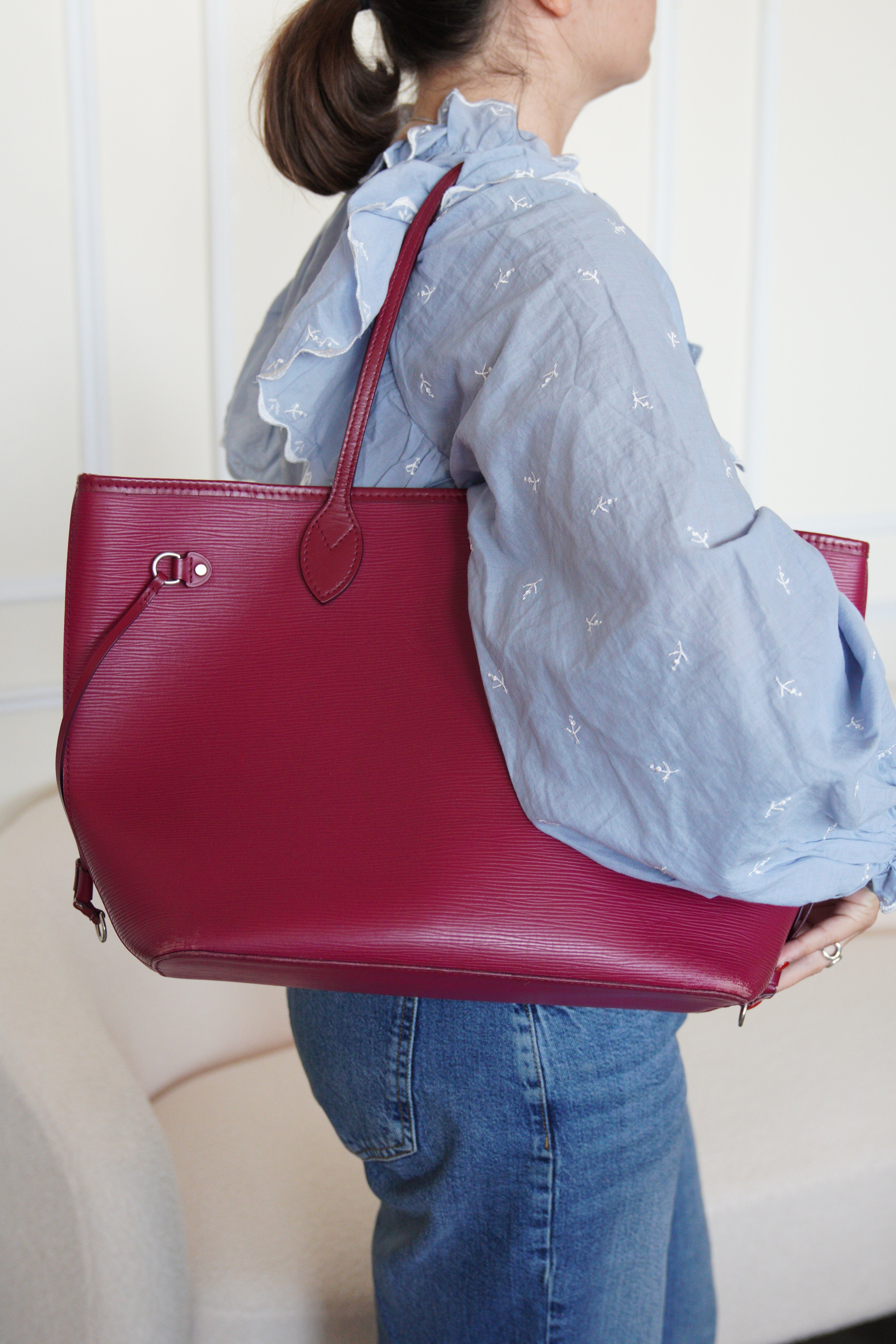 Louis Vuitton Neverfull MM framboise epi leather tote bag