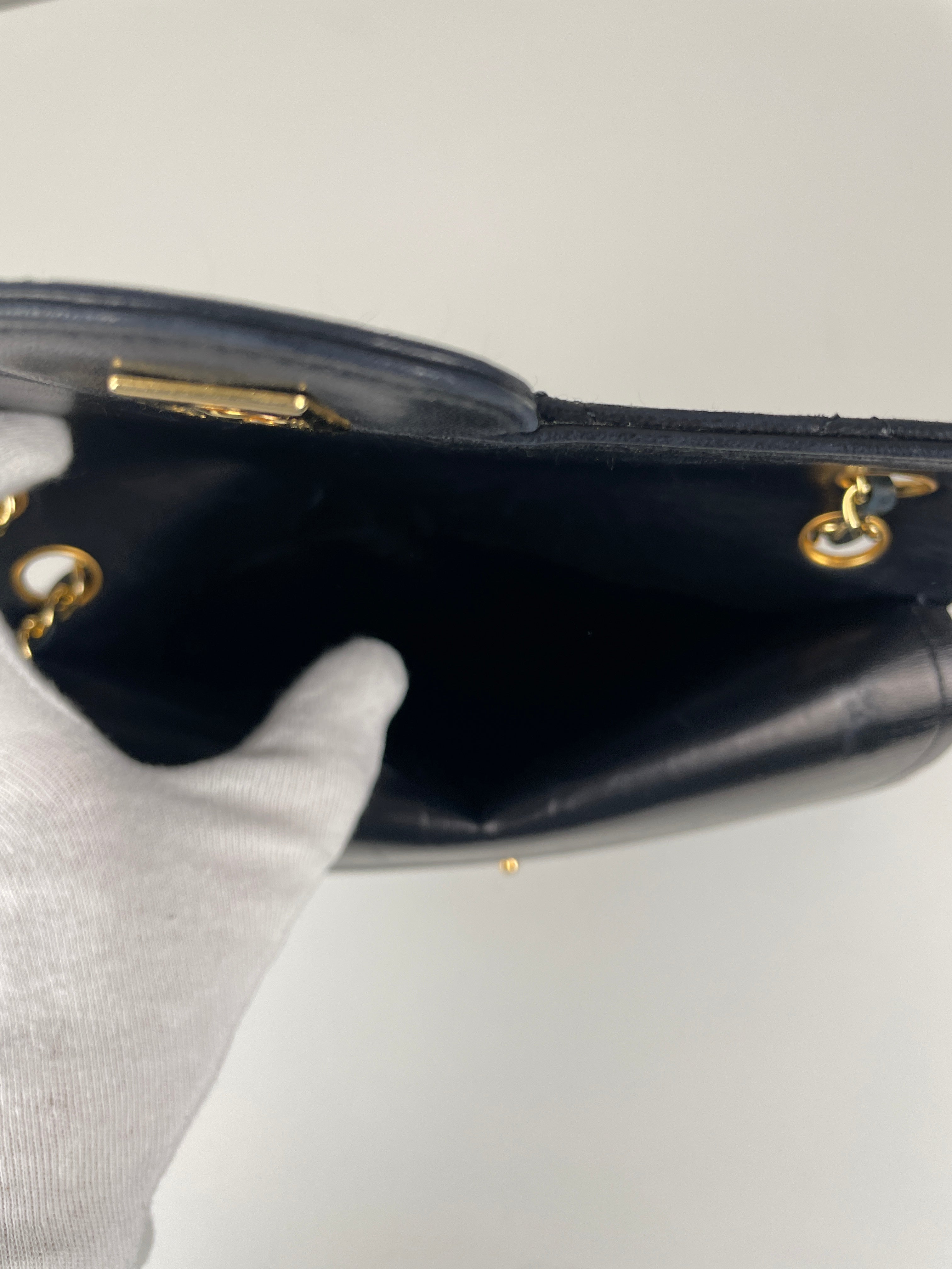 - Hardware: Good condition, gold-tone hardware shows slight tarnishing