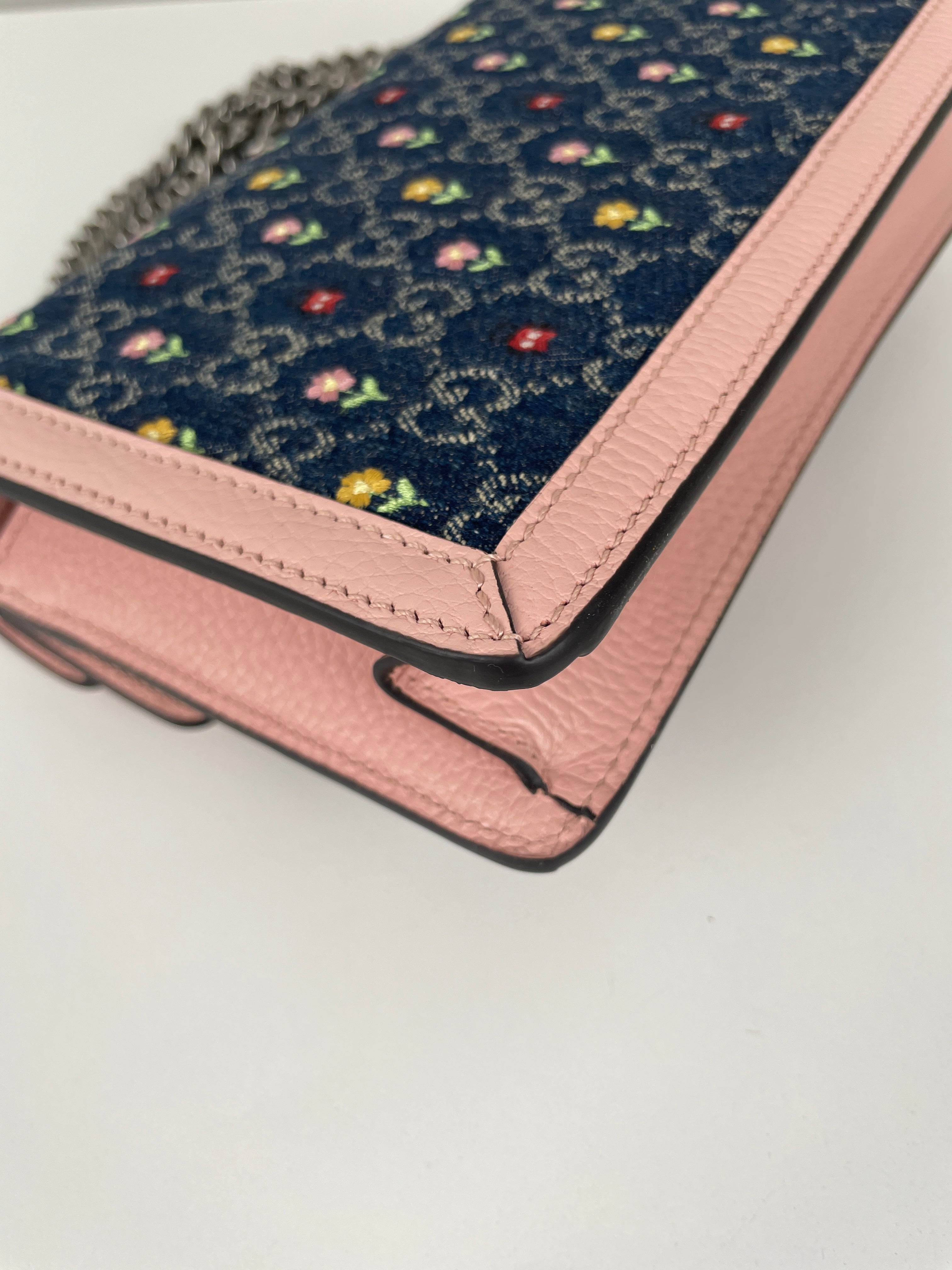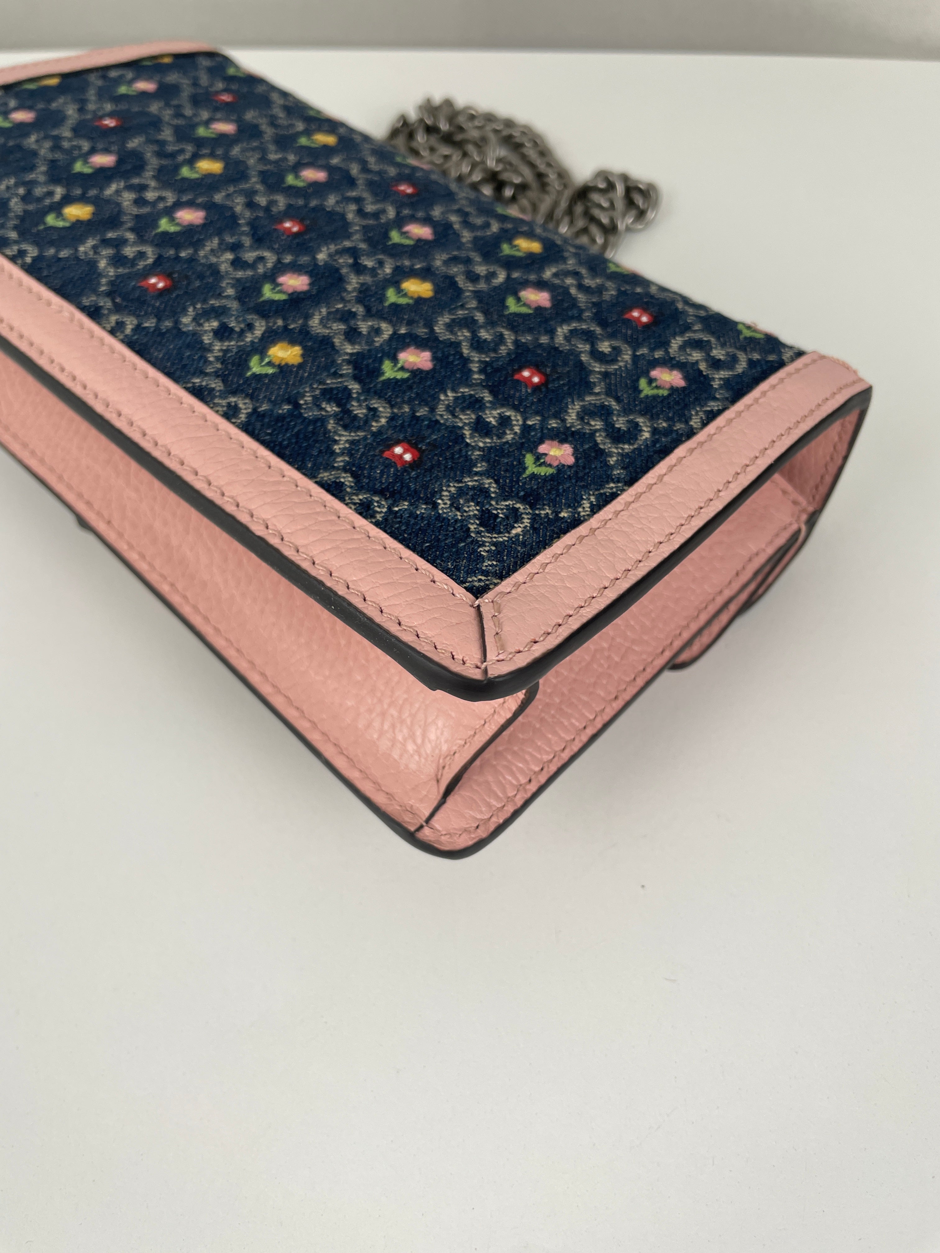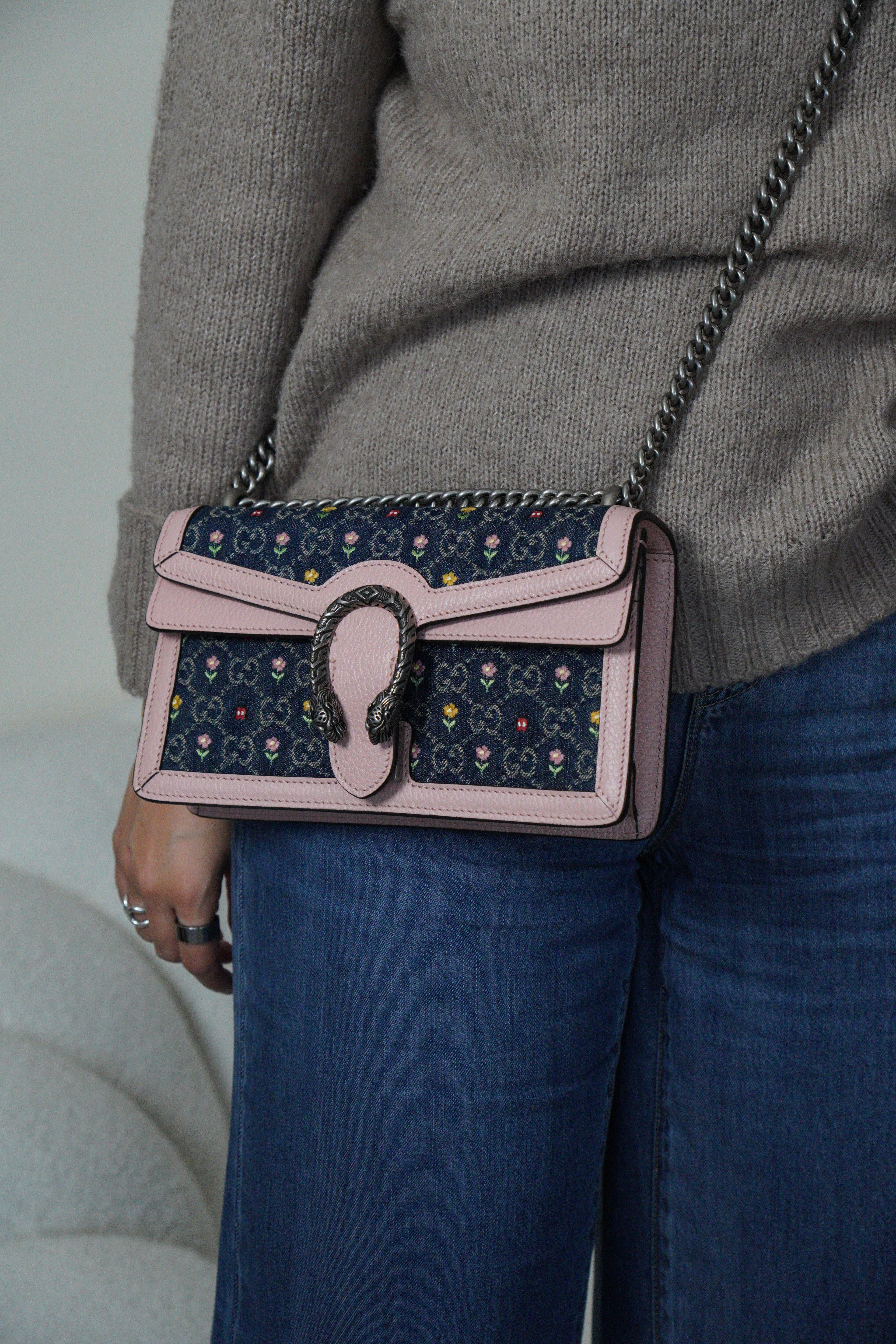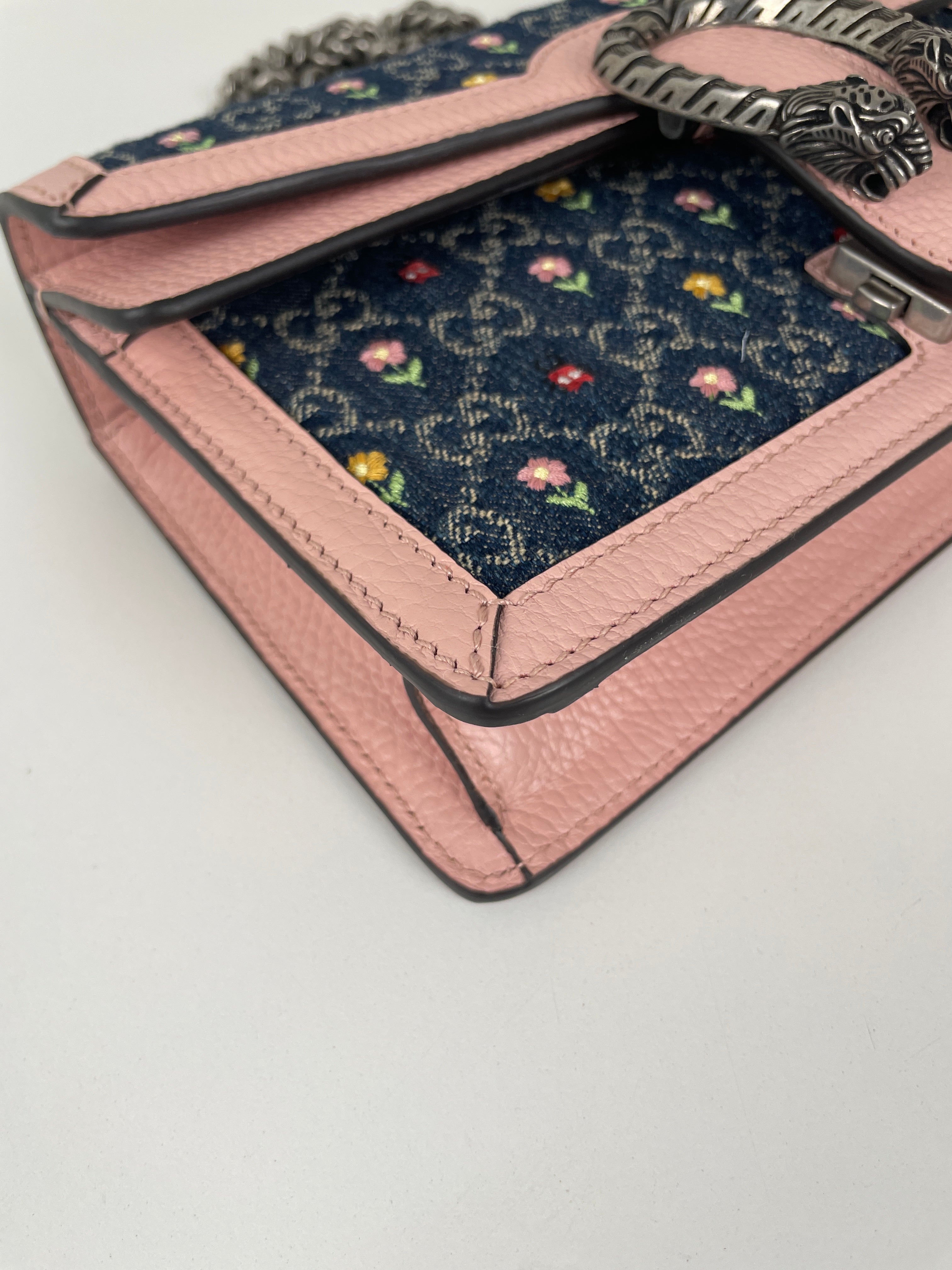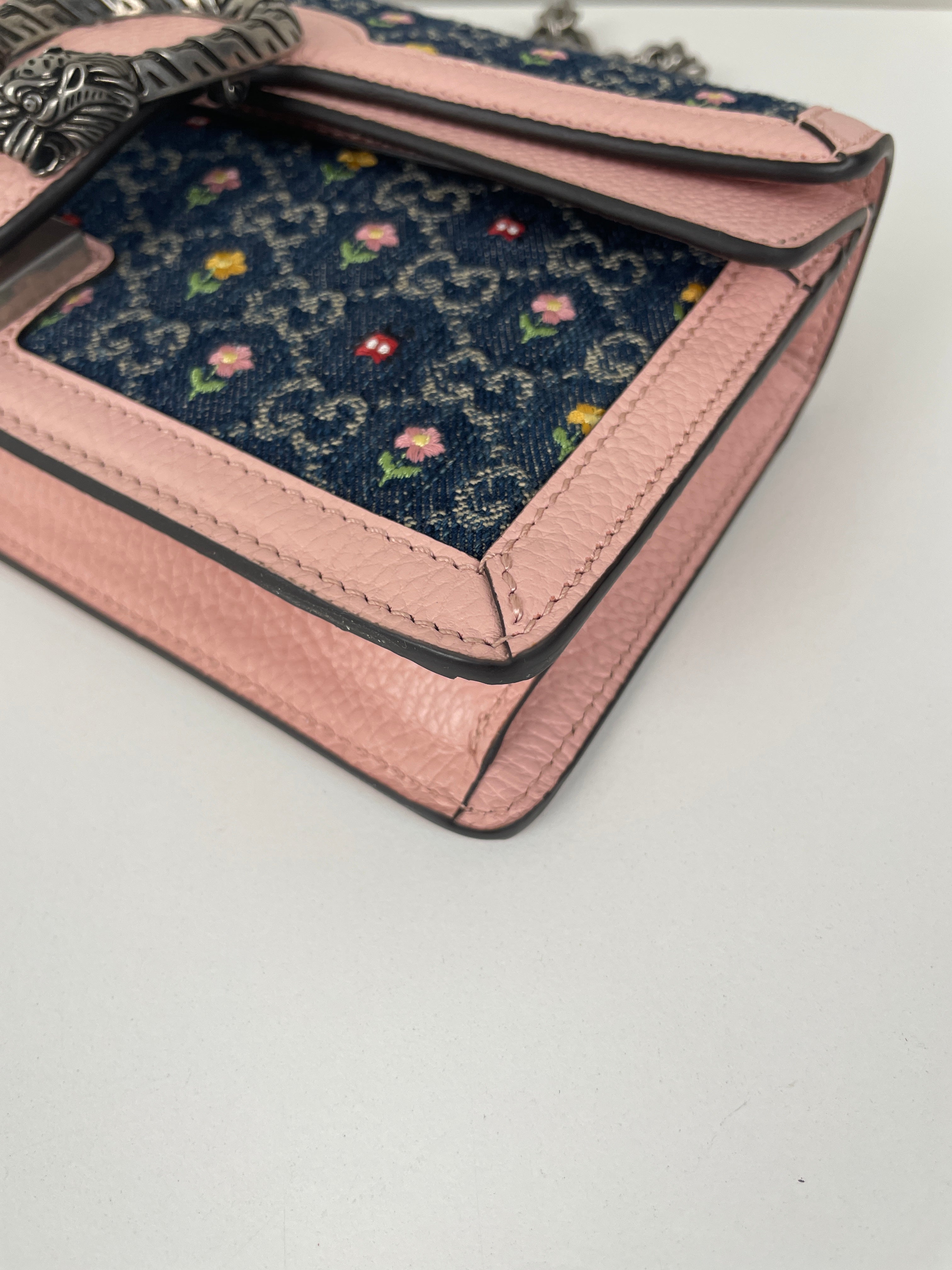 - Material: Denim and leather