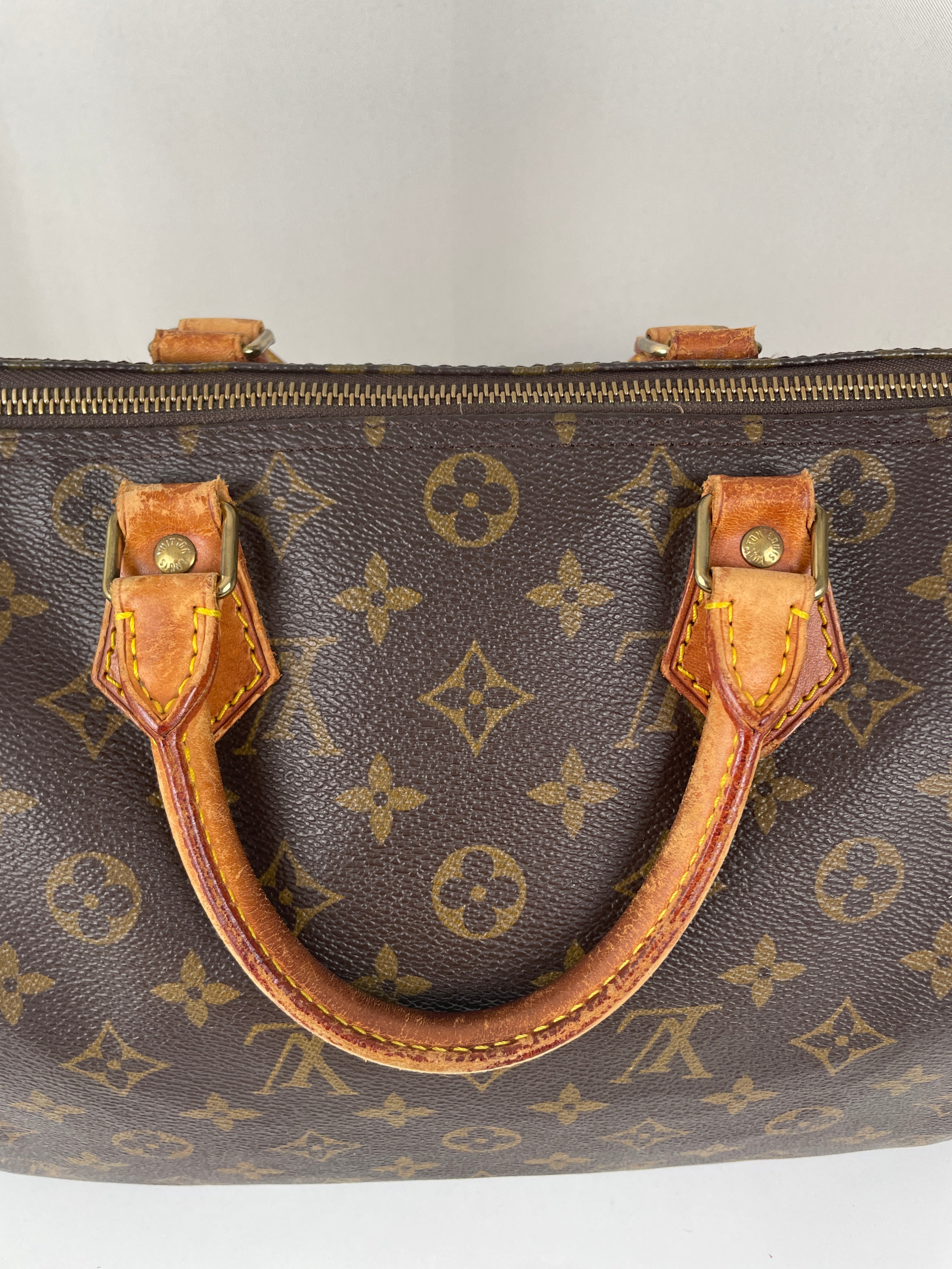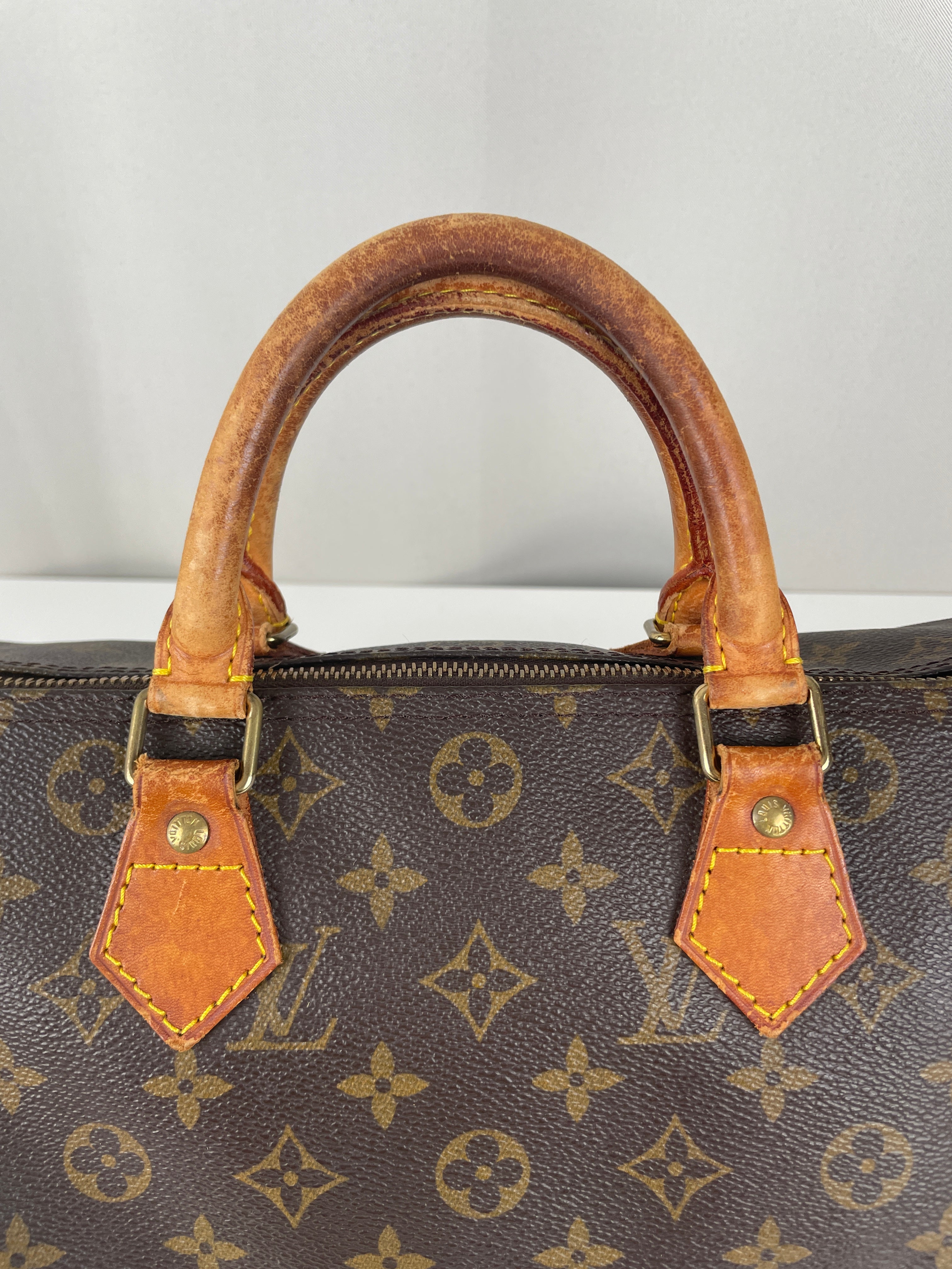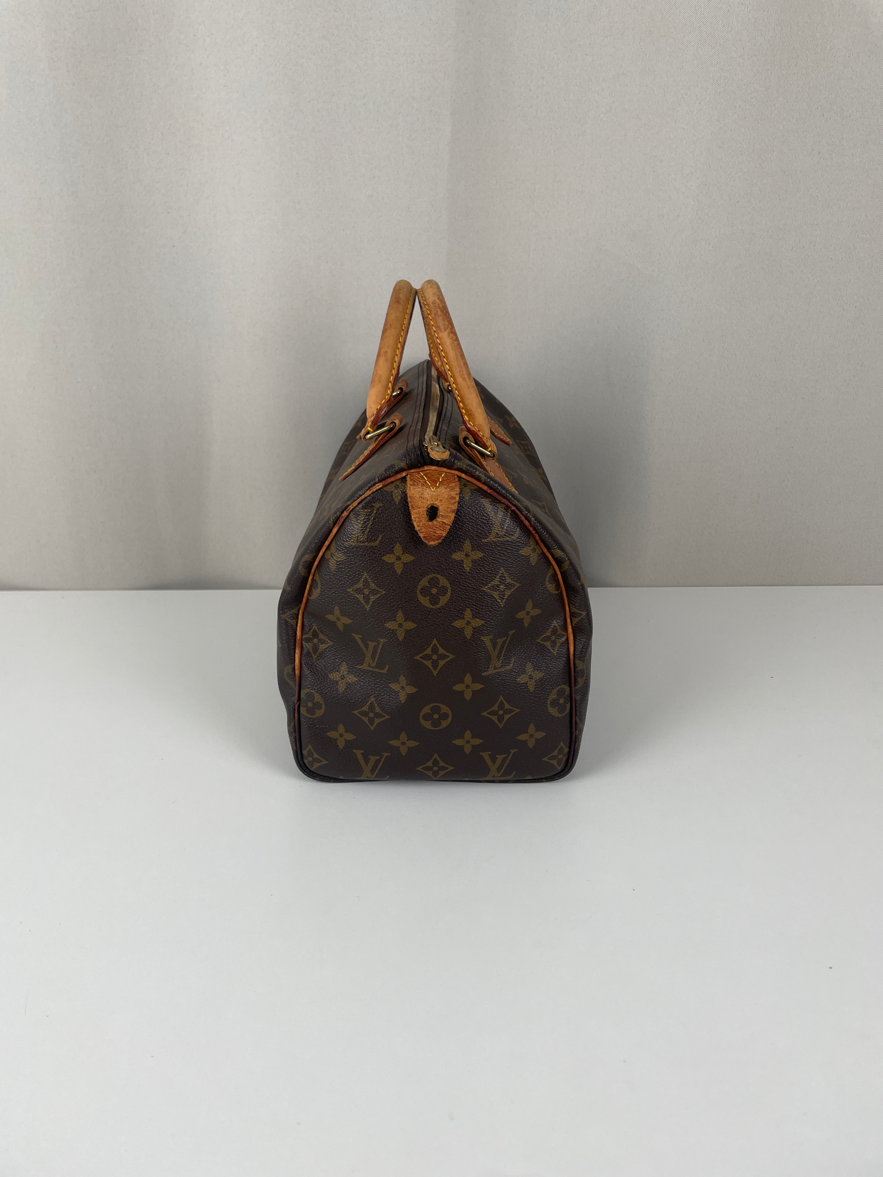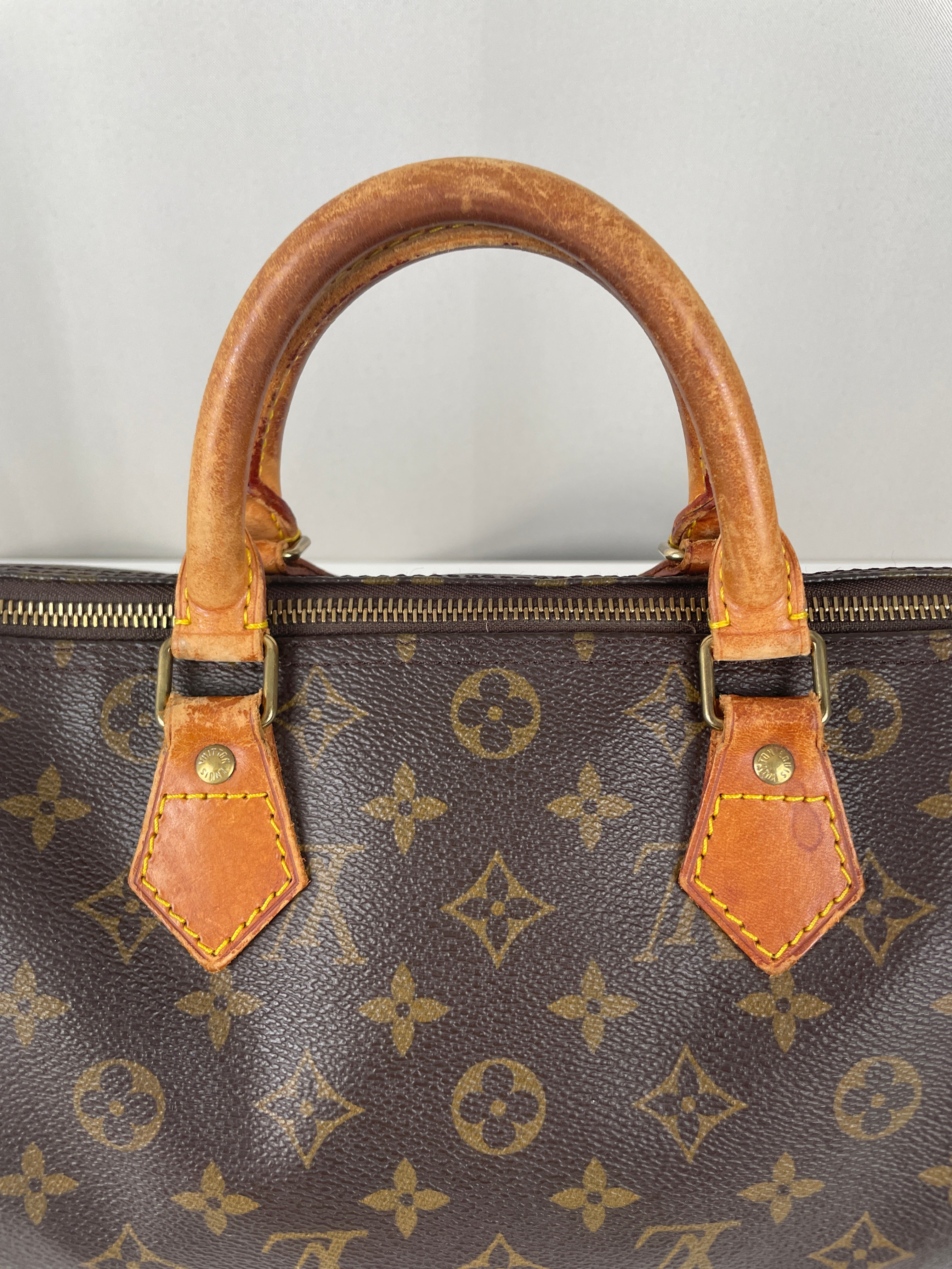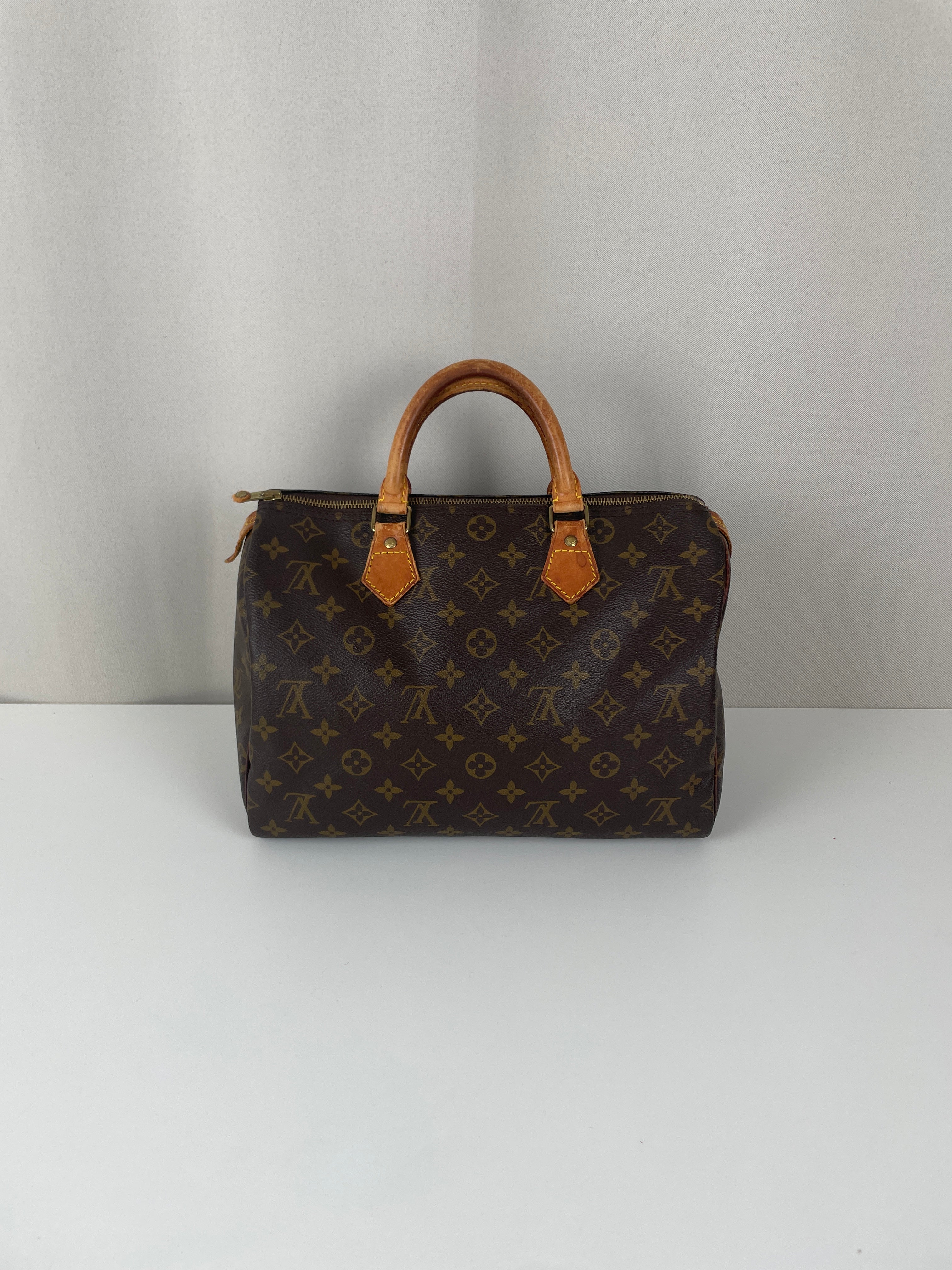 The Louis Vuitton Speedy 30 stands as the quintessential embodiment of the House's legendary craftsmanship and enduring design philosophy, originally created in 1930 as a smaller version of the iconic travel bag. This vintage 1991 piece showcases over three decades of authentic use and the natural evolution that makes vintage Louis Vuitton so coveted by collectors. The world-renowned Monogram canvas has maintained its integrity beautifully, while the natural cowhide leather has developed the rich honey patina that only comes with time and careful aging. As a piece with 33 years of history, this Speedy represents not just a handbag, but a testament to Louis Vuitton's enduring quality and the timeless appeal of true luxury craftsmanship.