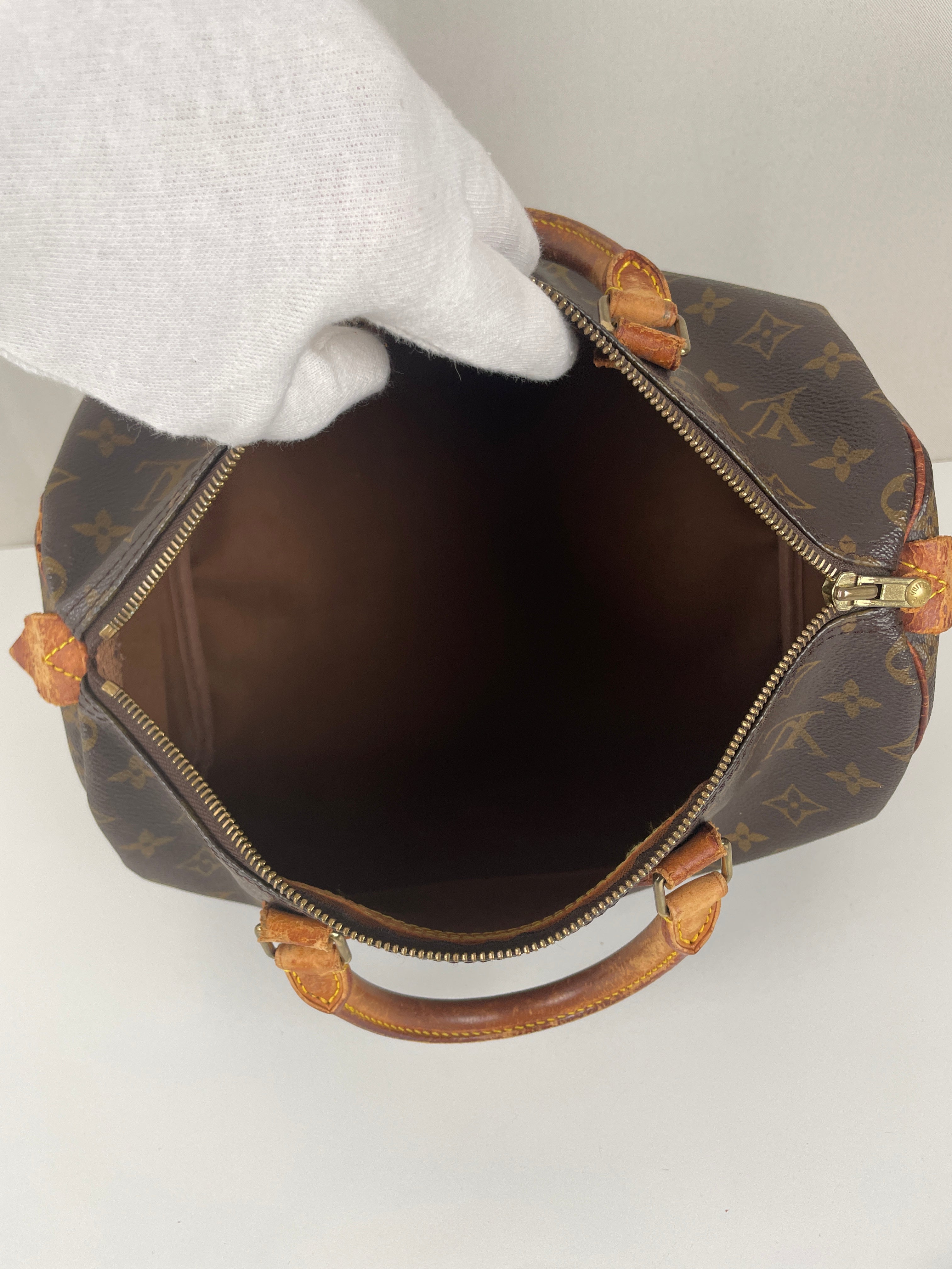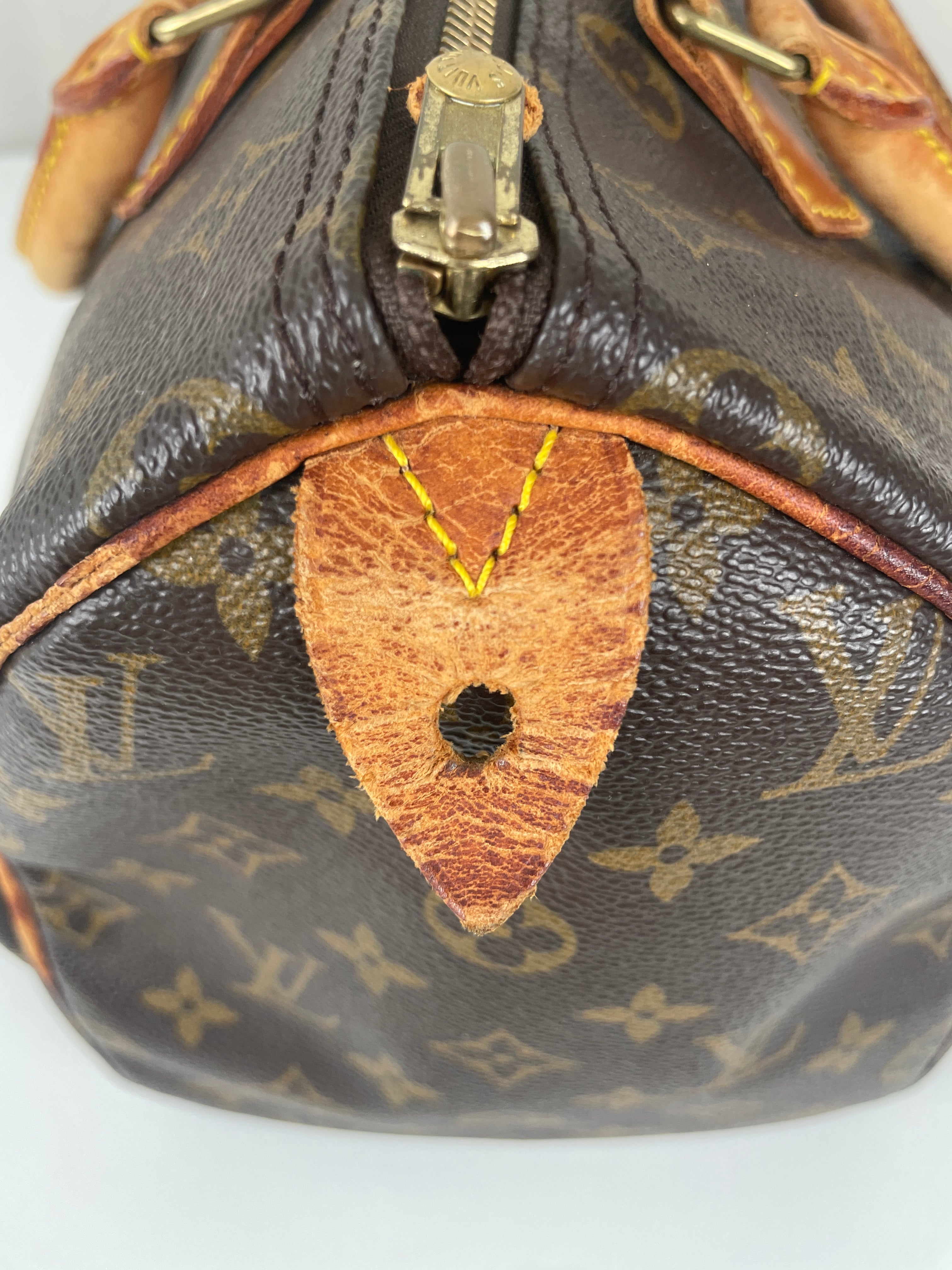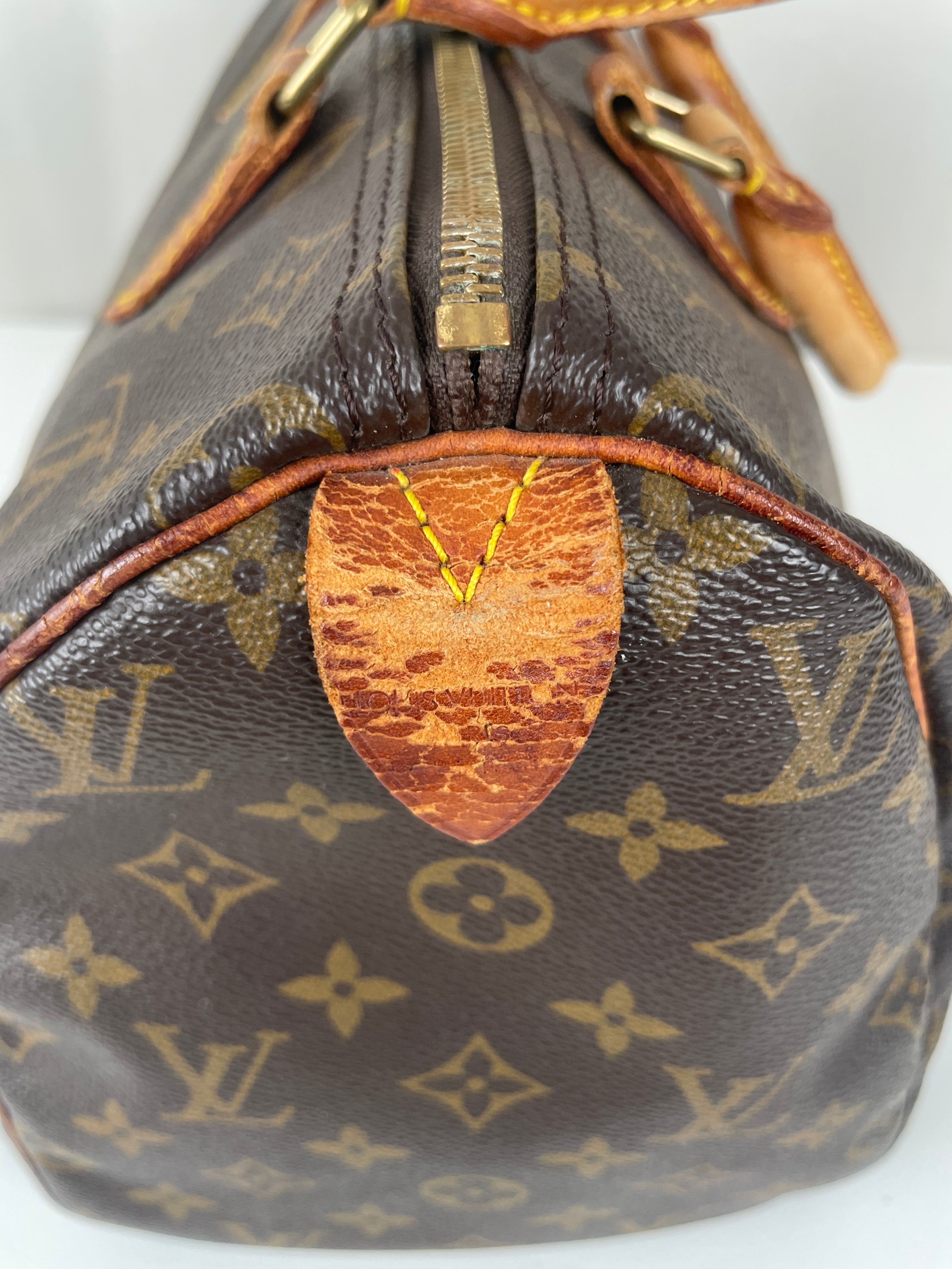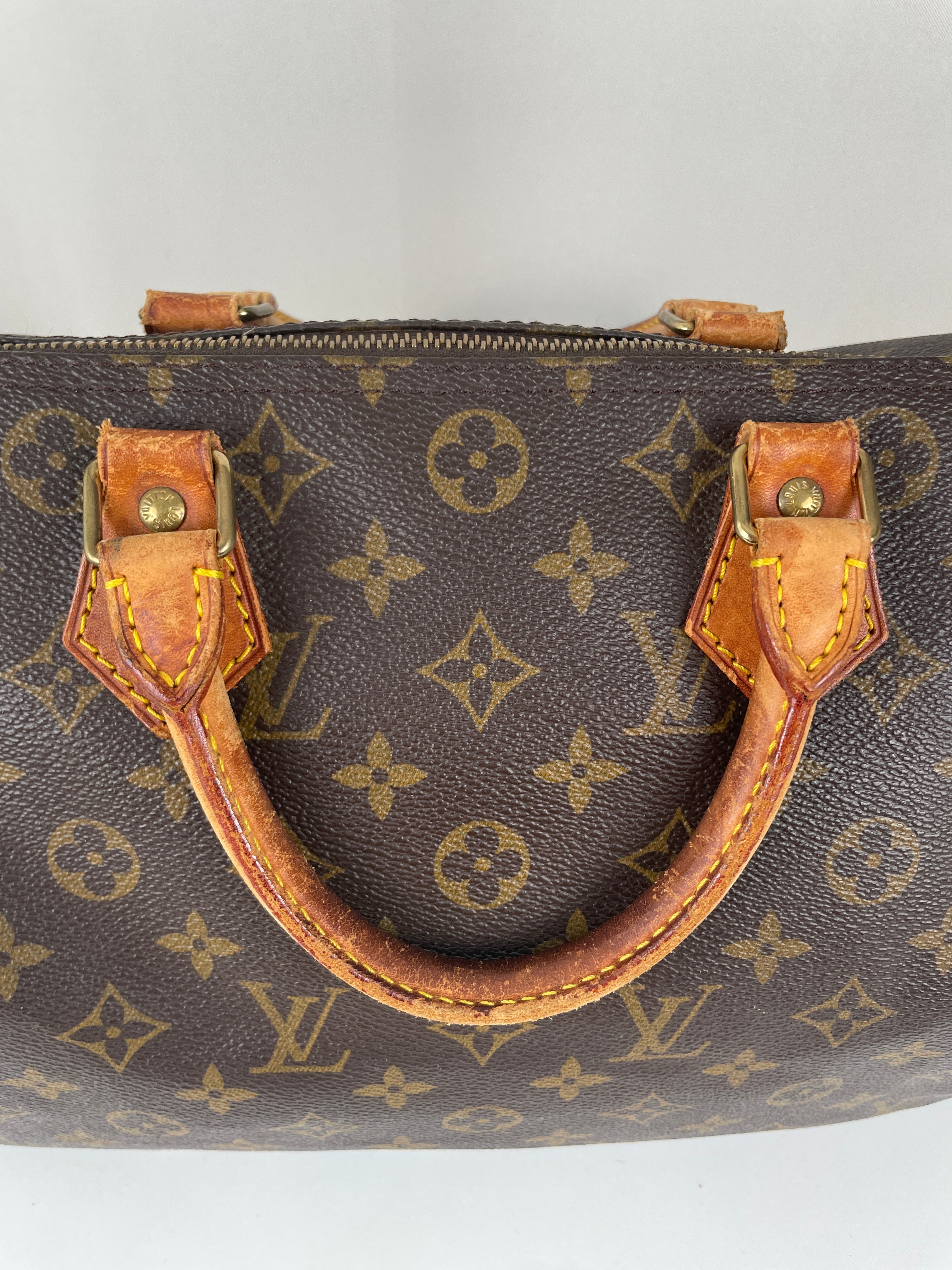 The Louis Vuitton Speedy 30 stands as the quintessential embodiment of the House's legendary craftsmanship and enduring design philosophy, originally created in 1930 as a smaller version of the iconic travel bag. This vintage 1991 piece showcases over three decades of authentic use and the natural evolution that makes vintage Louis Vuitton so coveted by collectors. The world-renowned Monogram canvas has maintained its integrity beautifully, while the natural cowhide leather has developed the rich honey patina that only comes with time and careful aging. As a piece with 33 years of history, this Speedy represents not just a handbag, but a testament to Louis Vuitton's enduring quality and the timeless appeal of true luxury craftsmanship.