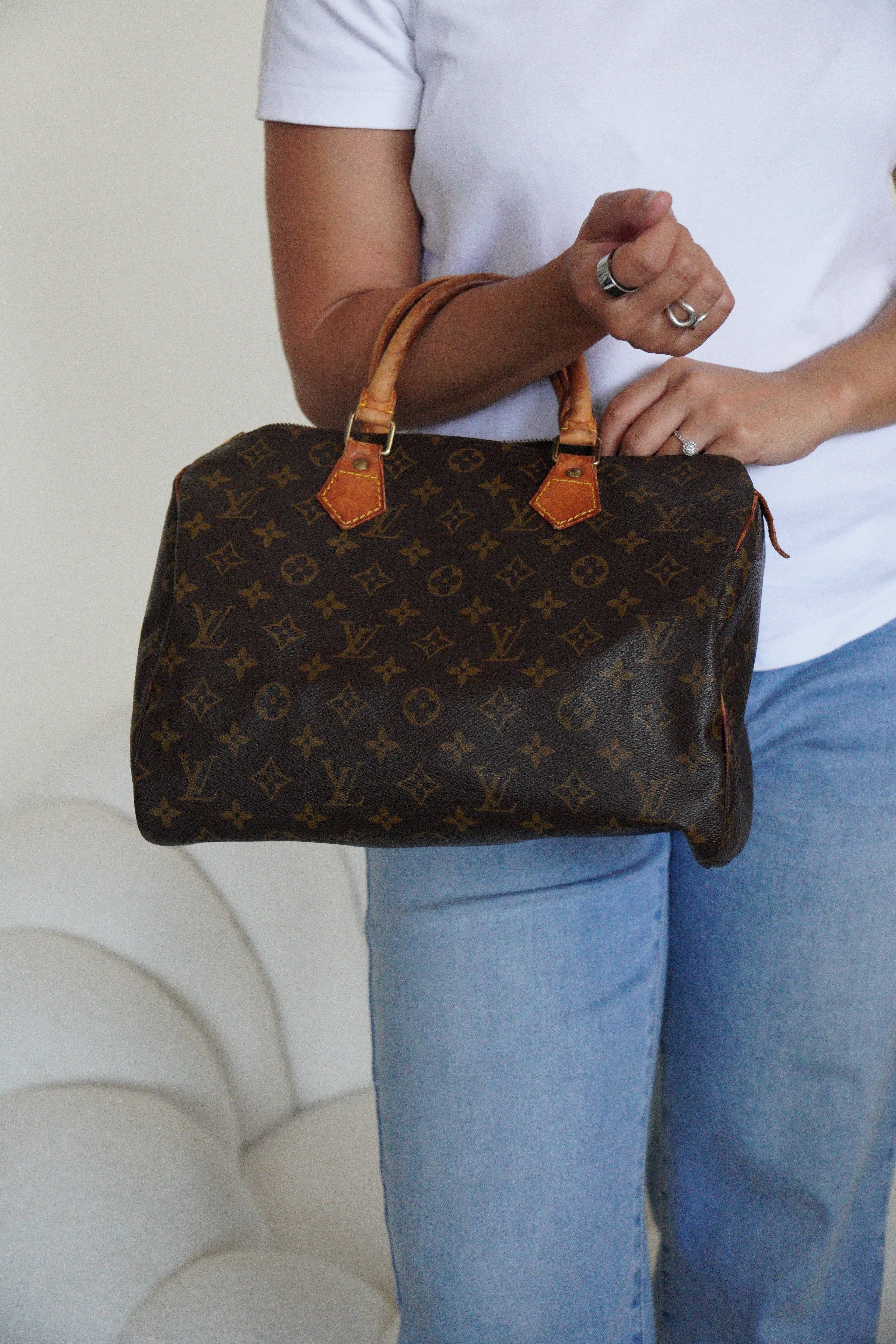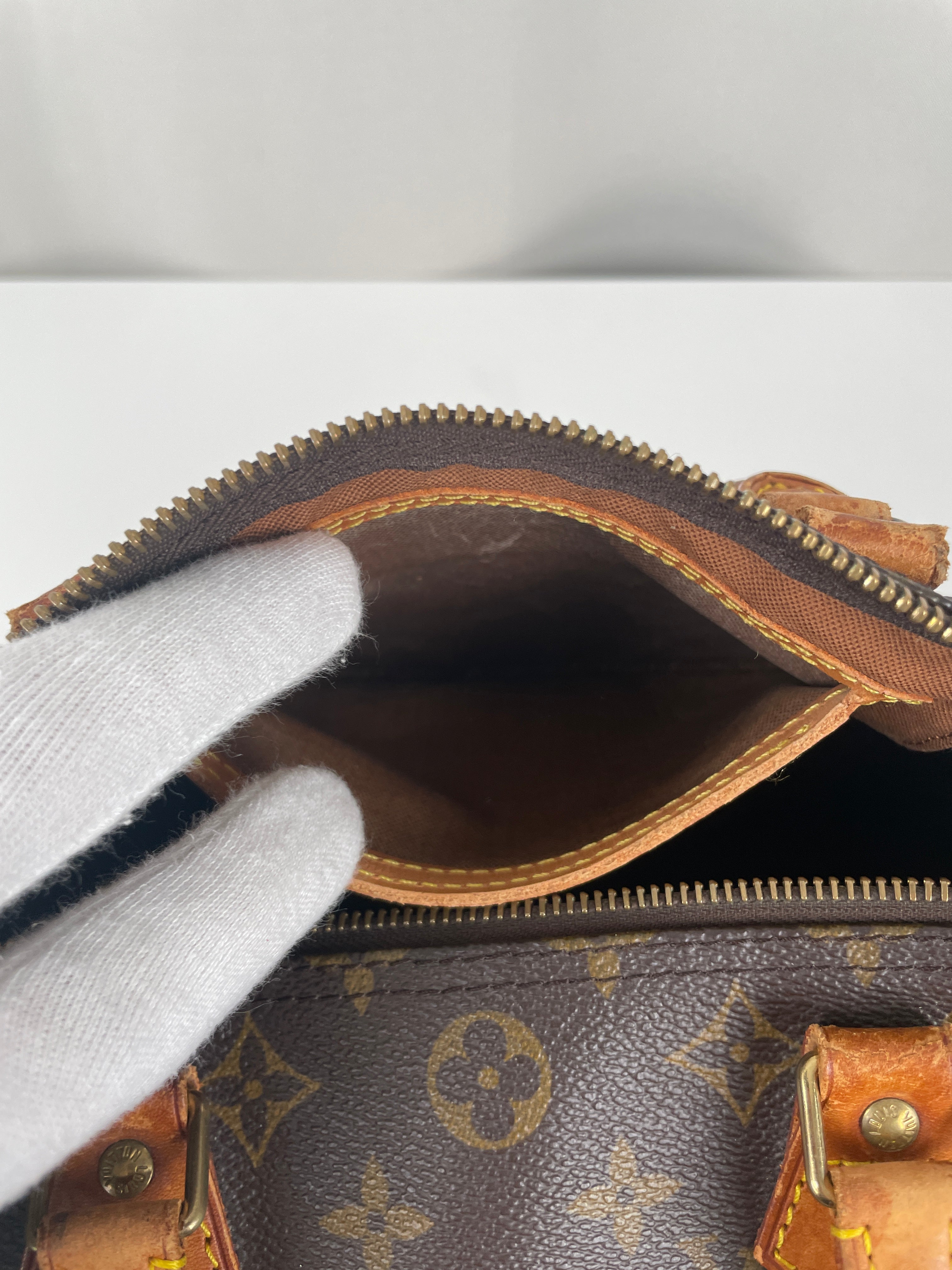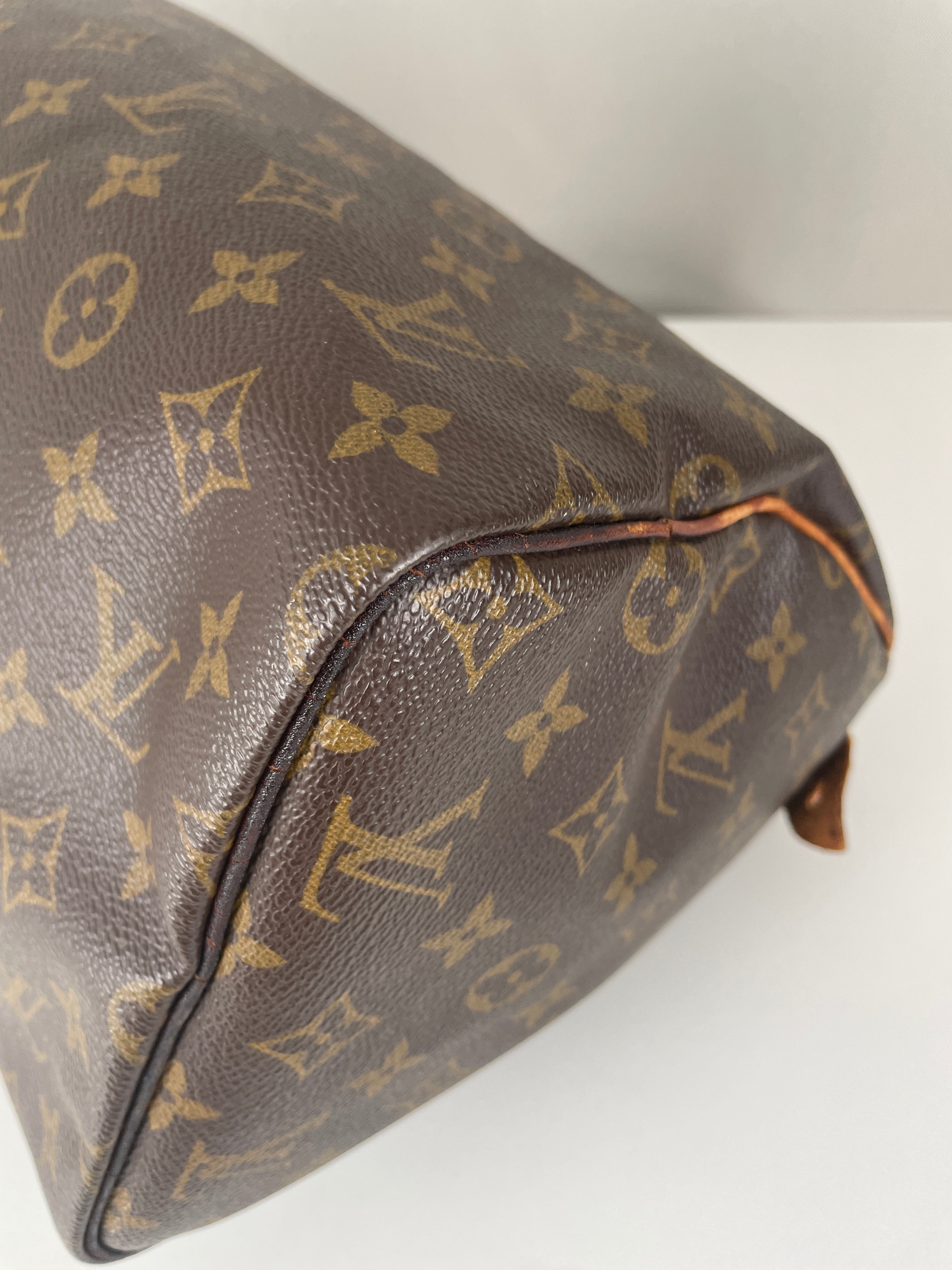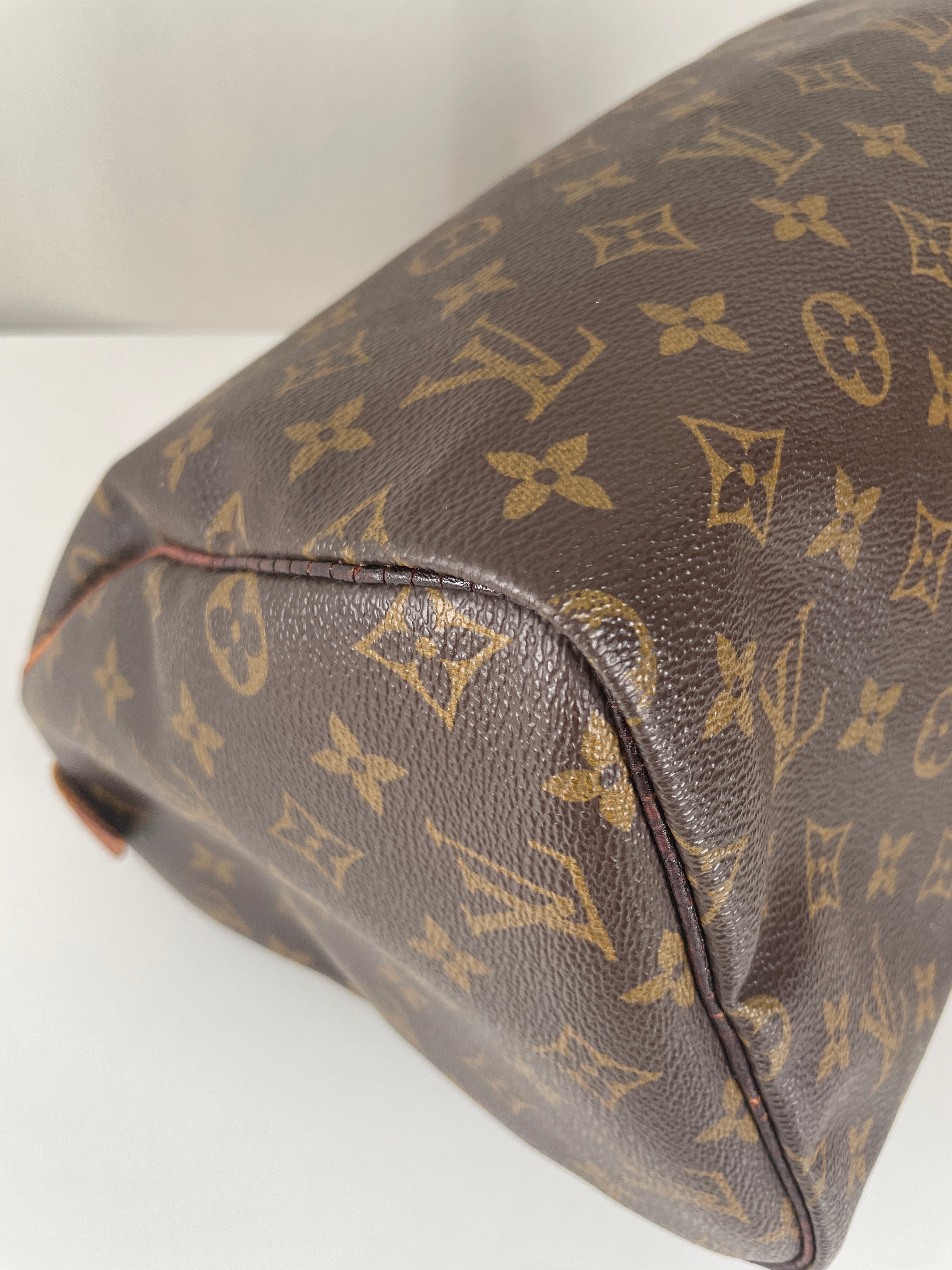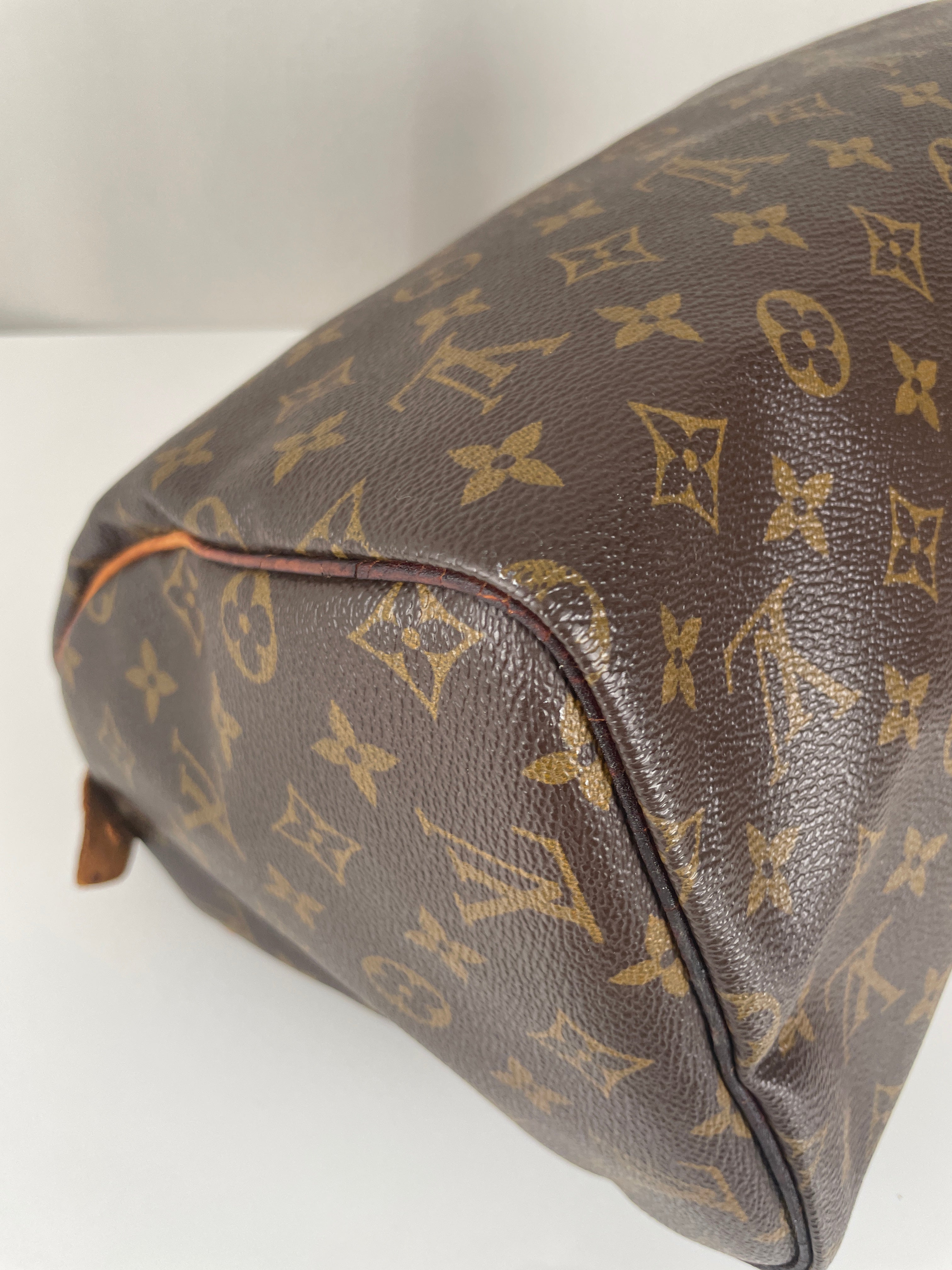 The Louis Vuitton Speedy 30 stands as the quintessential embodiment of the House's legendary craftsmanship and enduring design philosophy, originally created in 1930 as a smaller version of the iconic travel bag. This vintage 1991 piece showcases over three decades of authentic use and the natural evolution that makes vintage Louis Vuitton so coveted by collectors. The world-renowned Monogram canvas has maintained its integrity beautifully, while the natural cowhide leather has developed the rich honey patina that only comes with time and careful aging. As a piece with 33 years of history, this Speedy represents not just a handbag, but a testament to Louis Vuitton's enduring quality and the timeless appeal of true luxury craftsmanship.