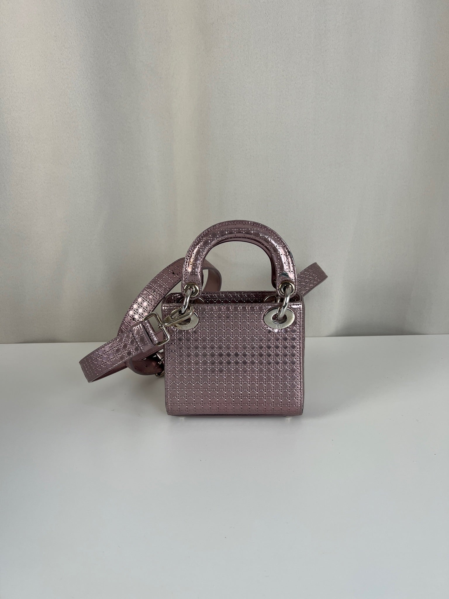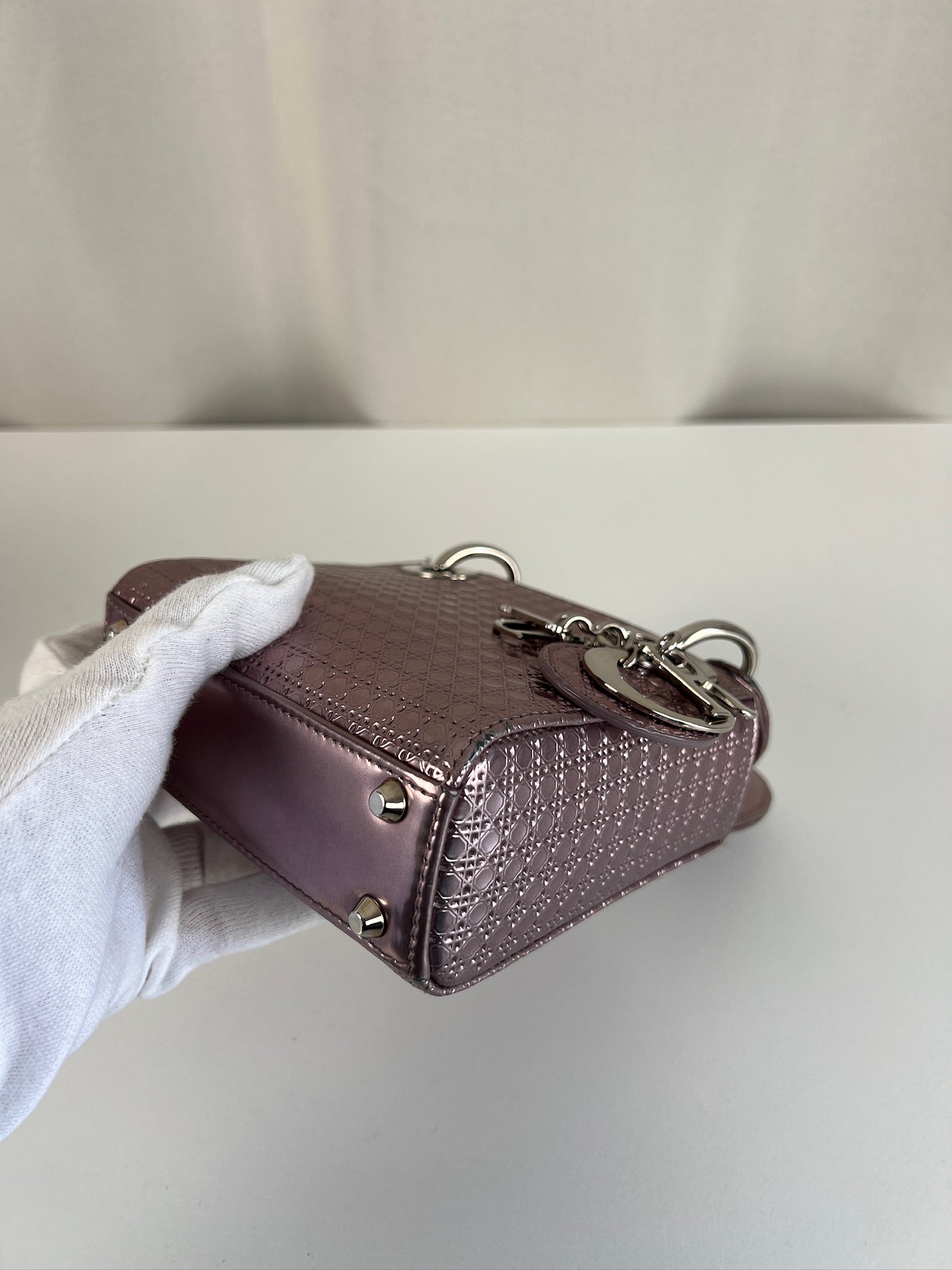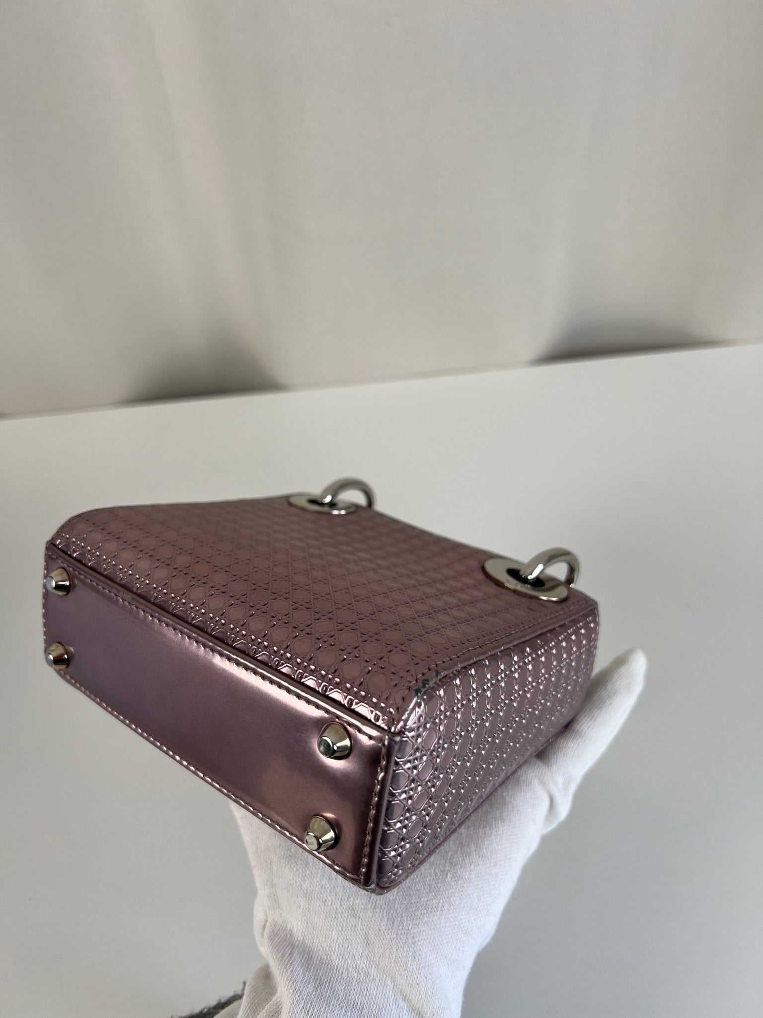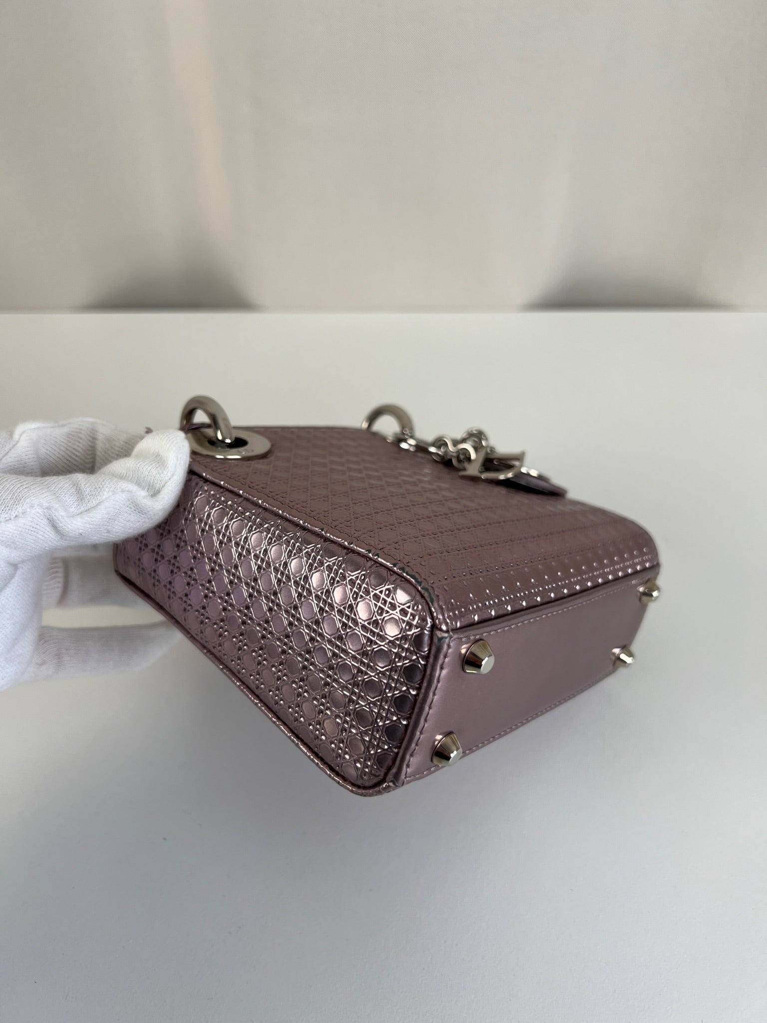 Lady Dior Micro Metallic Rose Pink Gold Microcannage