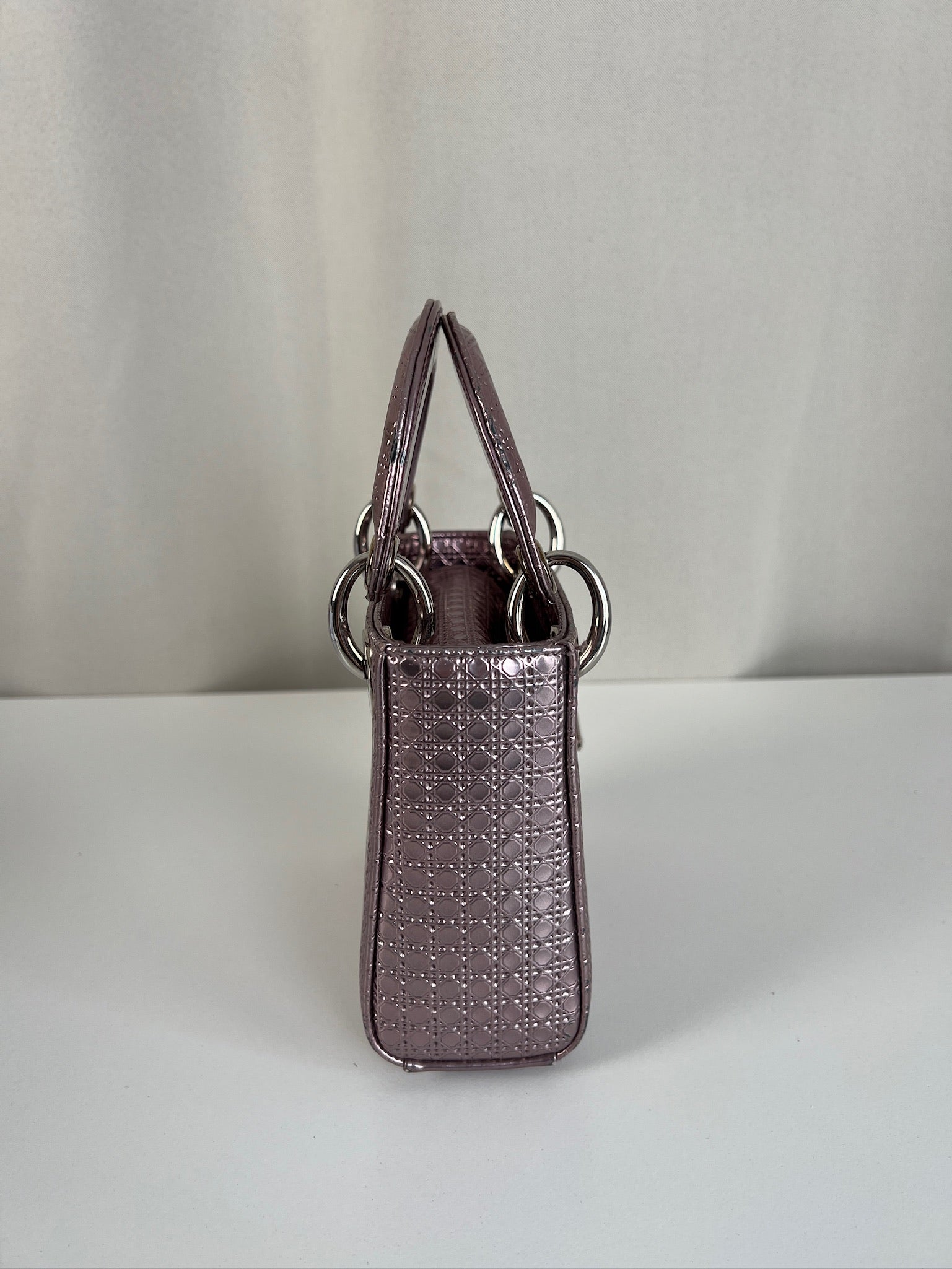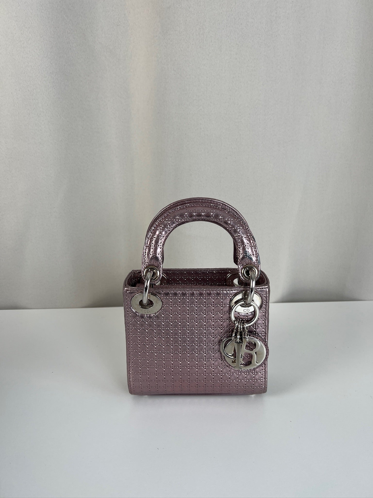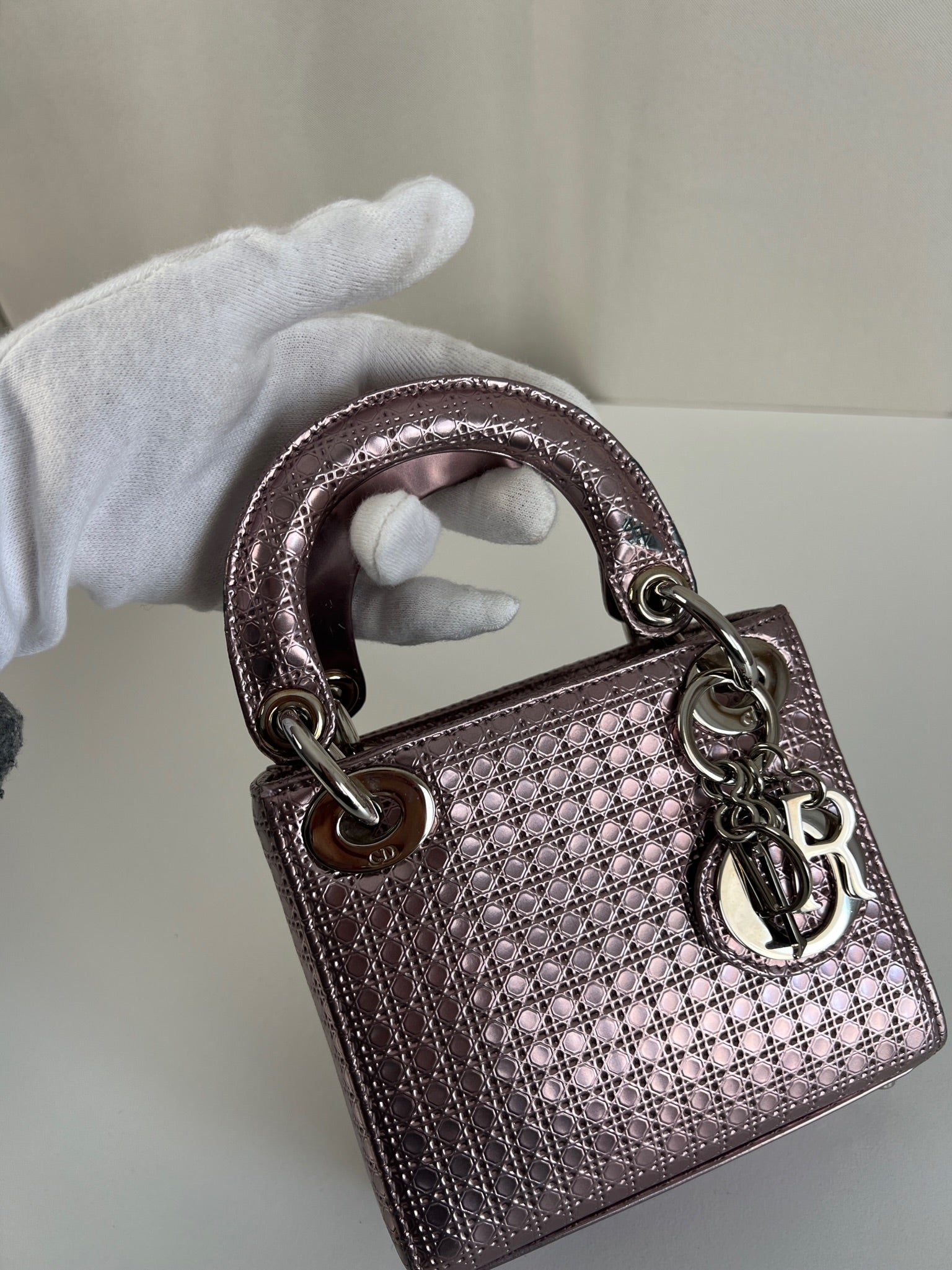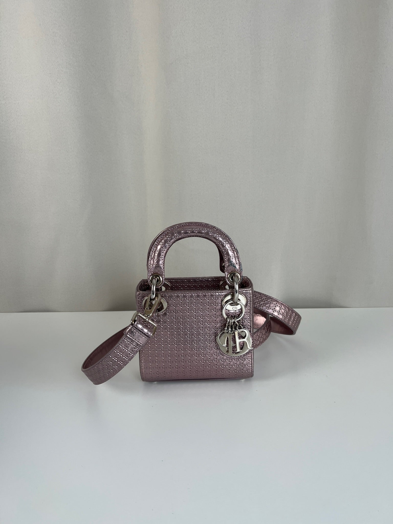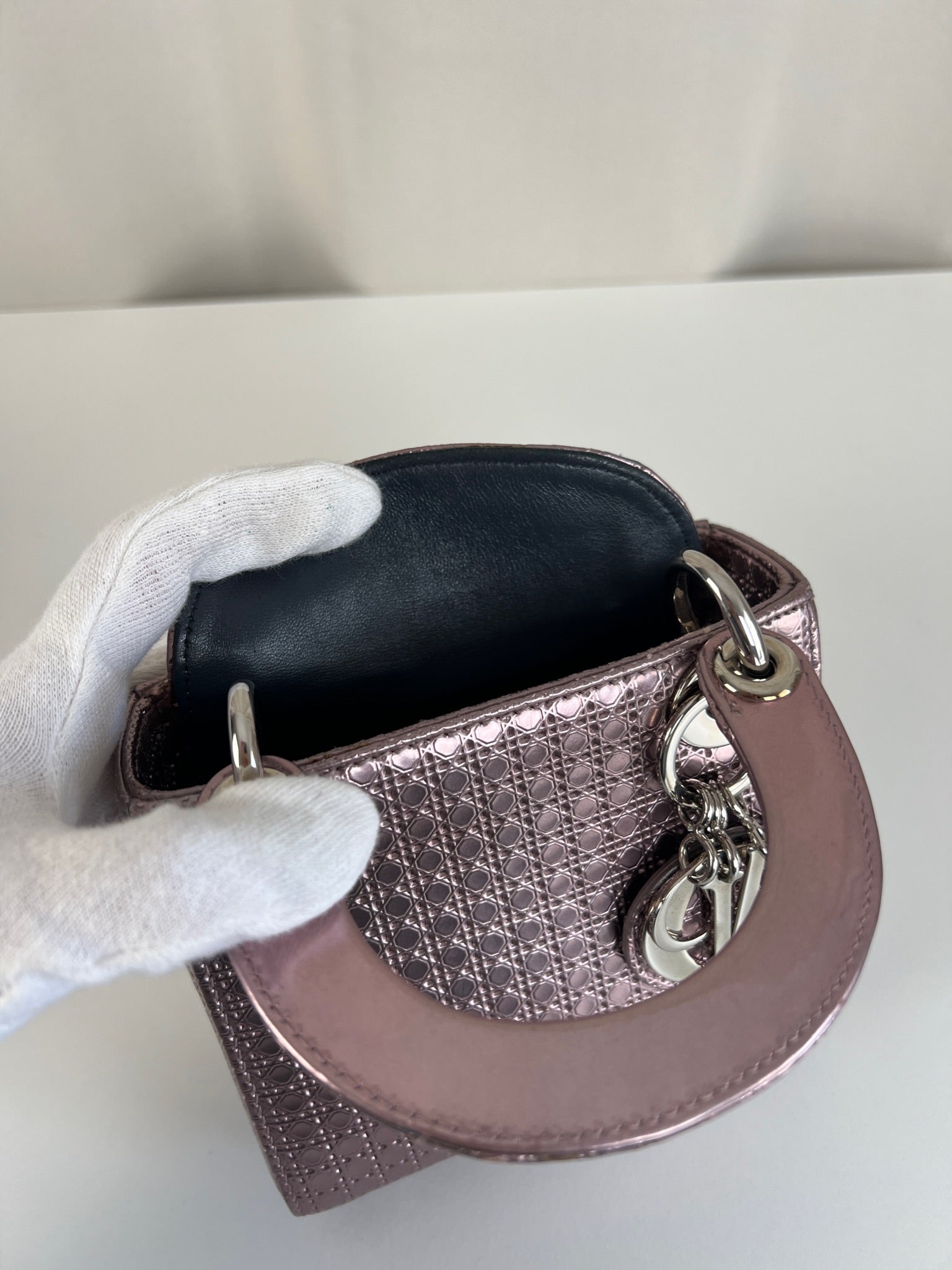 Lady Dior Micro Metallic Rose Pink Gold Microcannage