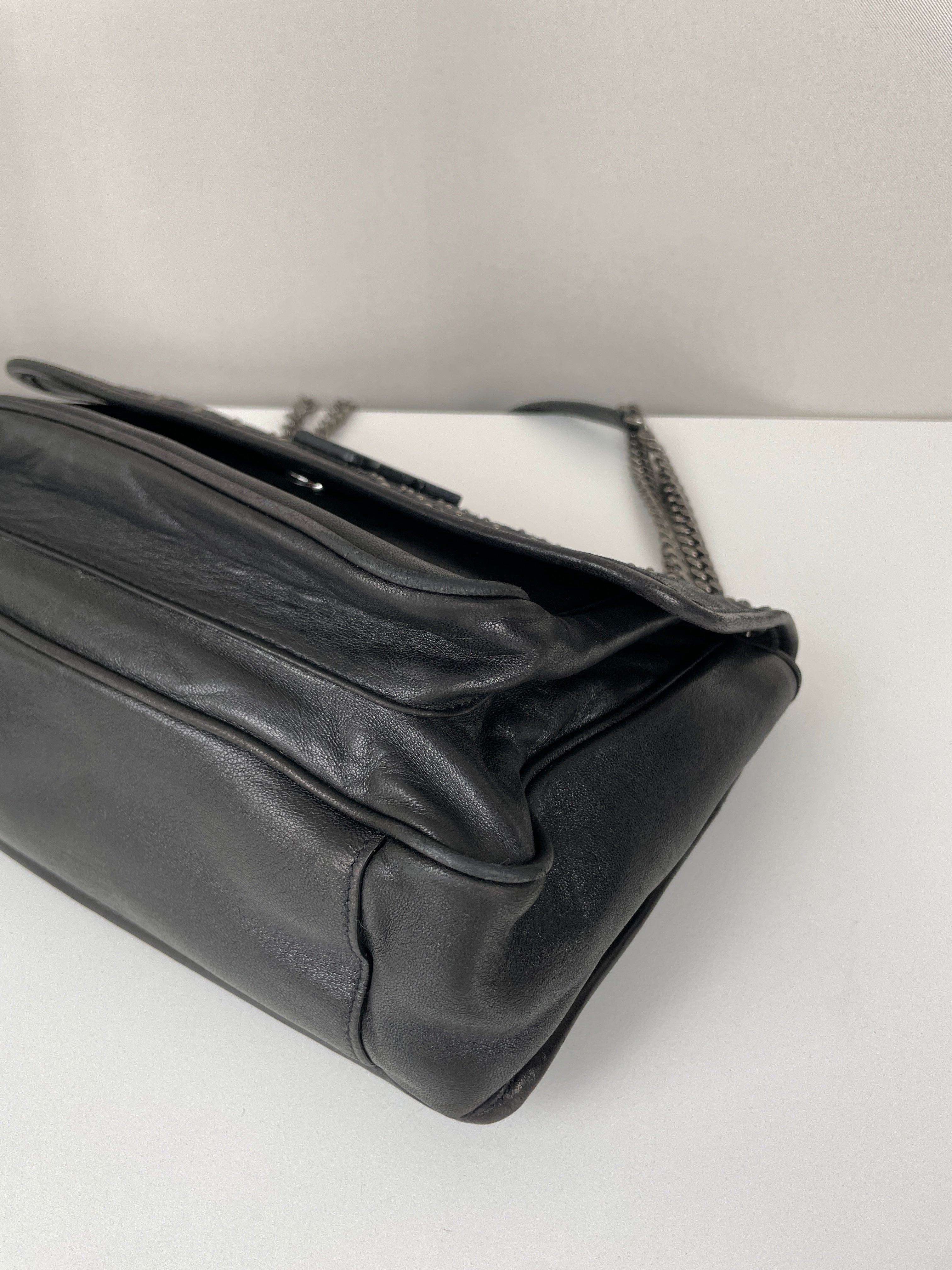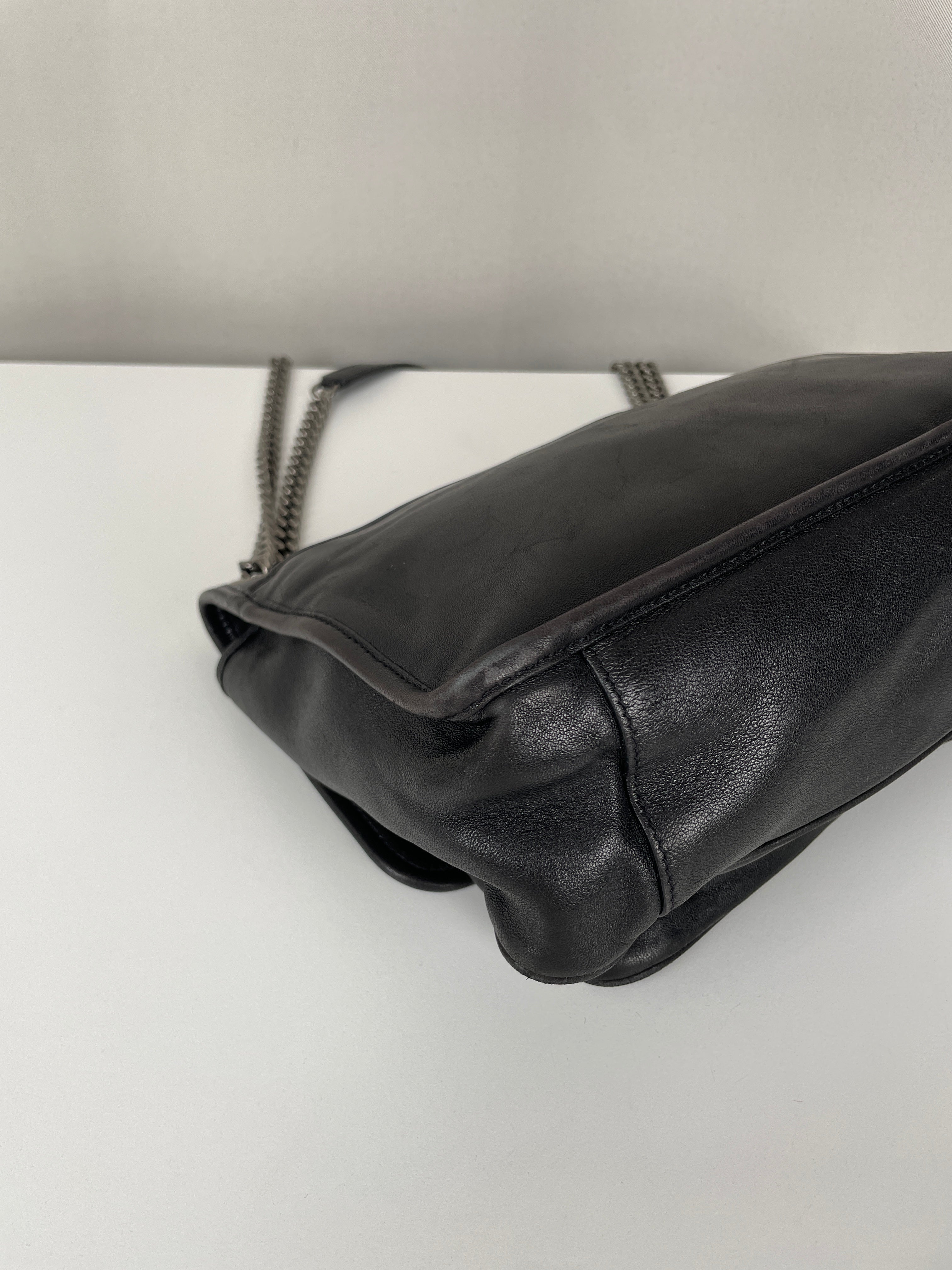 • Leather: Good condition overall but shows some signs of wear in certain areas, particularly on the corners and the front logo