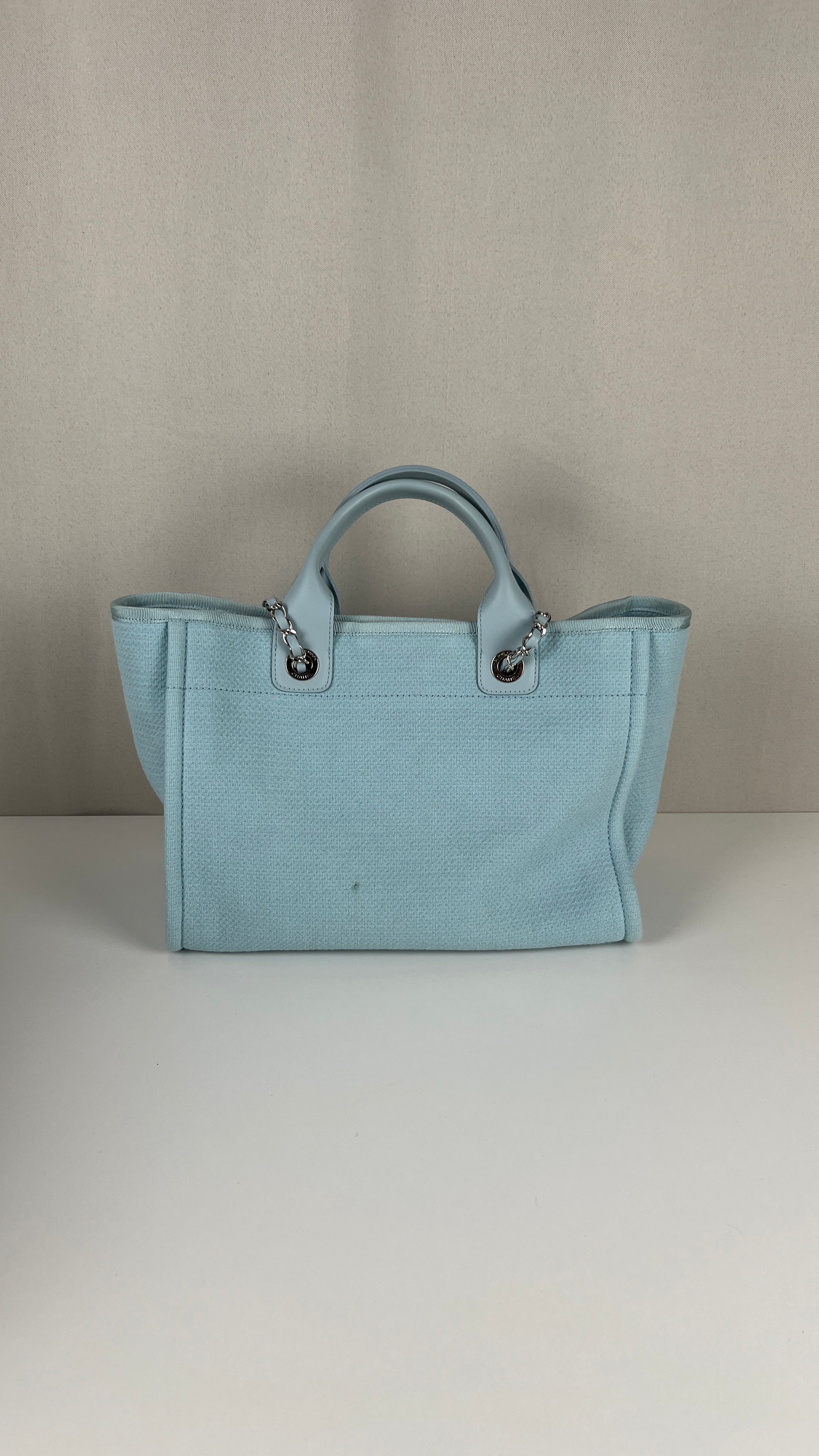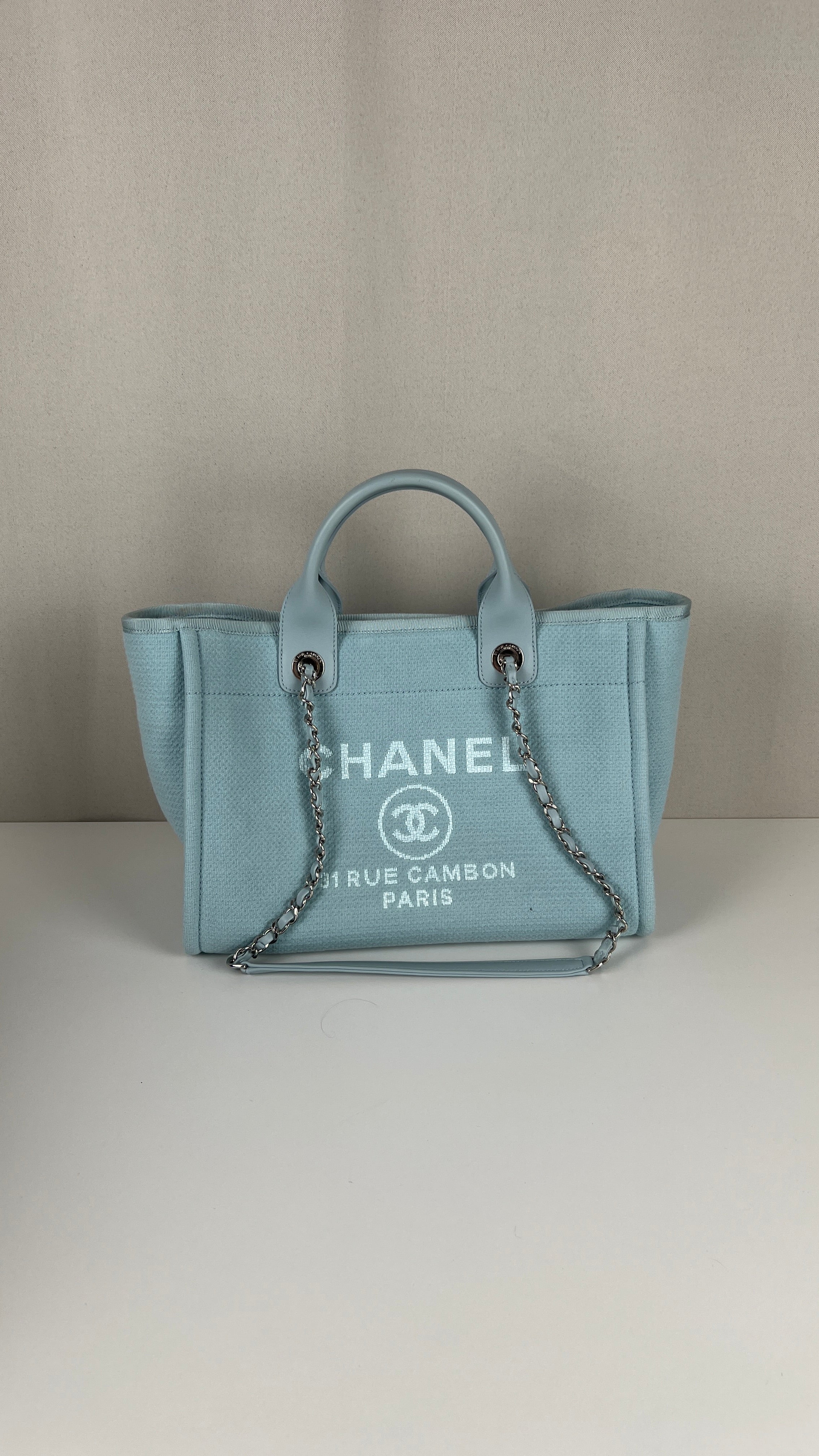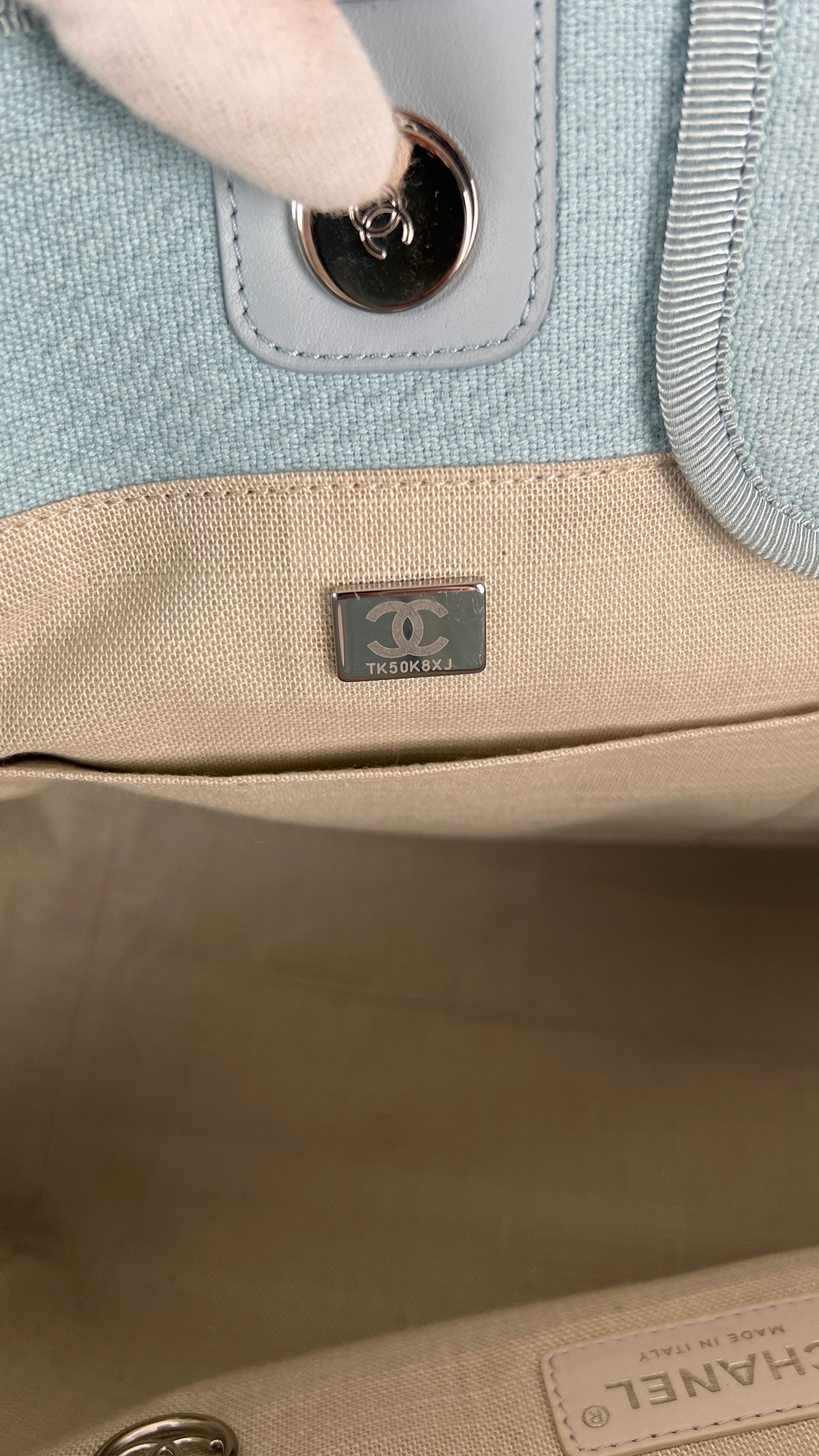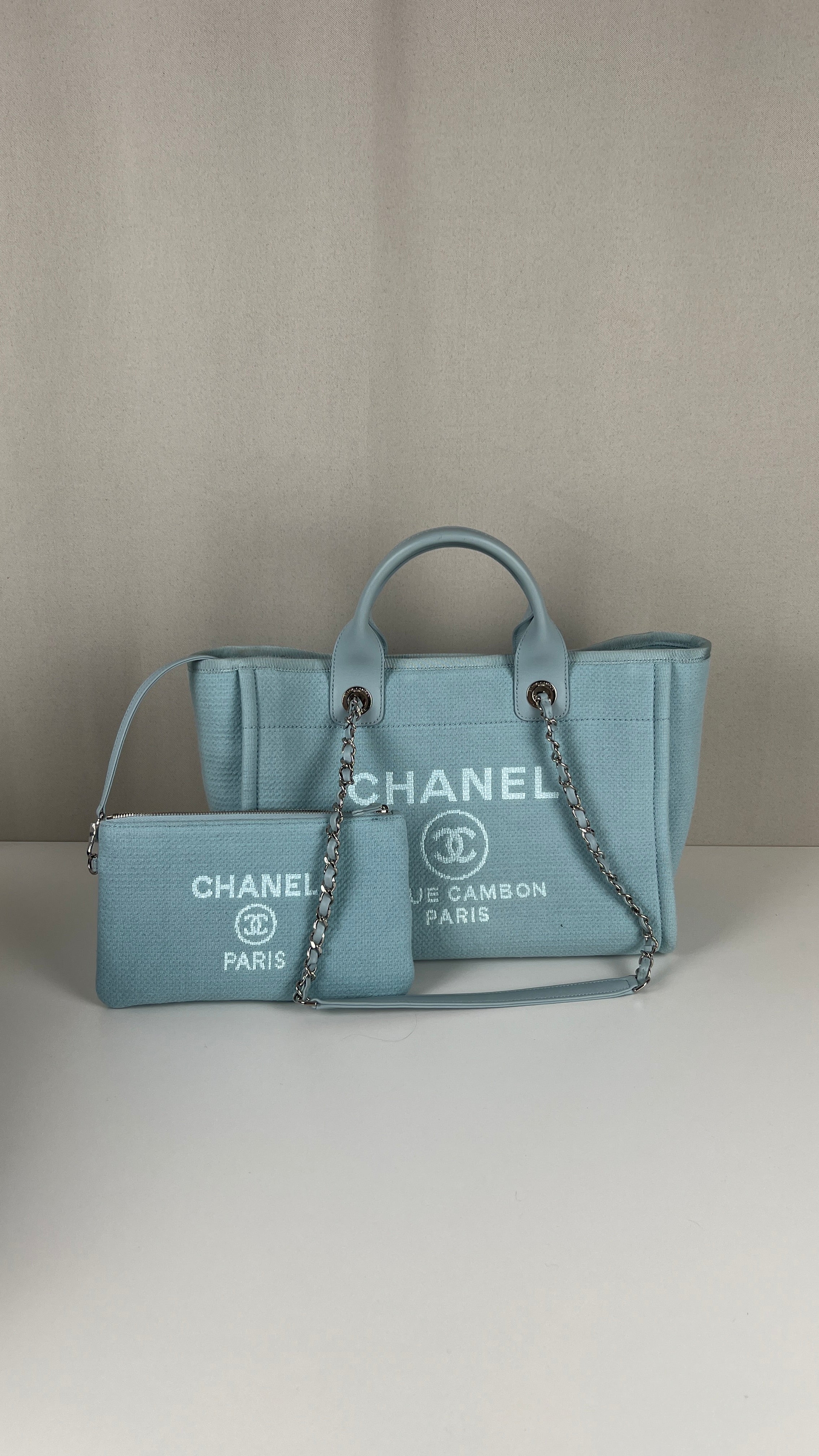This Chanel Deauville is in very good condition. The corners and the fabrics are in very good condition. The are a stain on the back of the bag on the fabric. The handles and the strap are in very good condition. The little pouch is in very good condition.