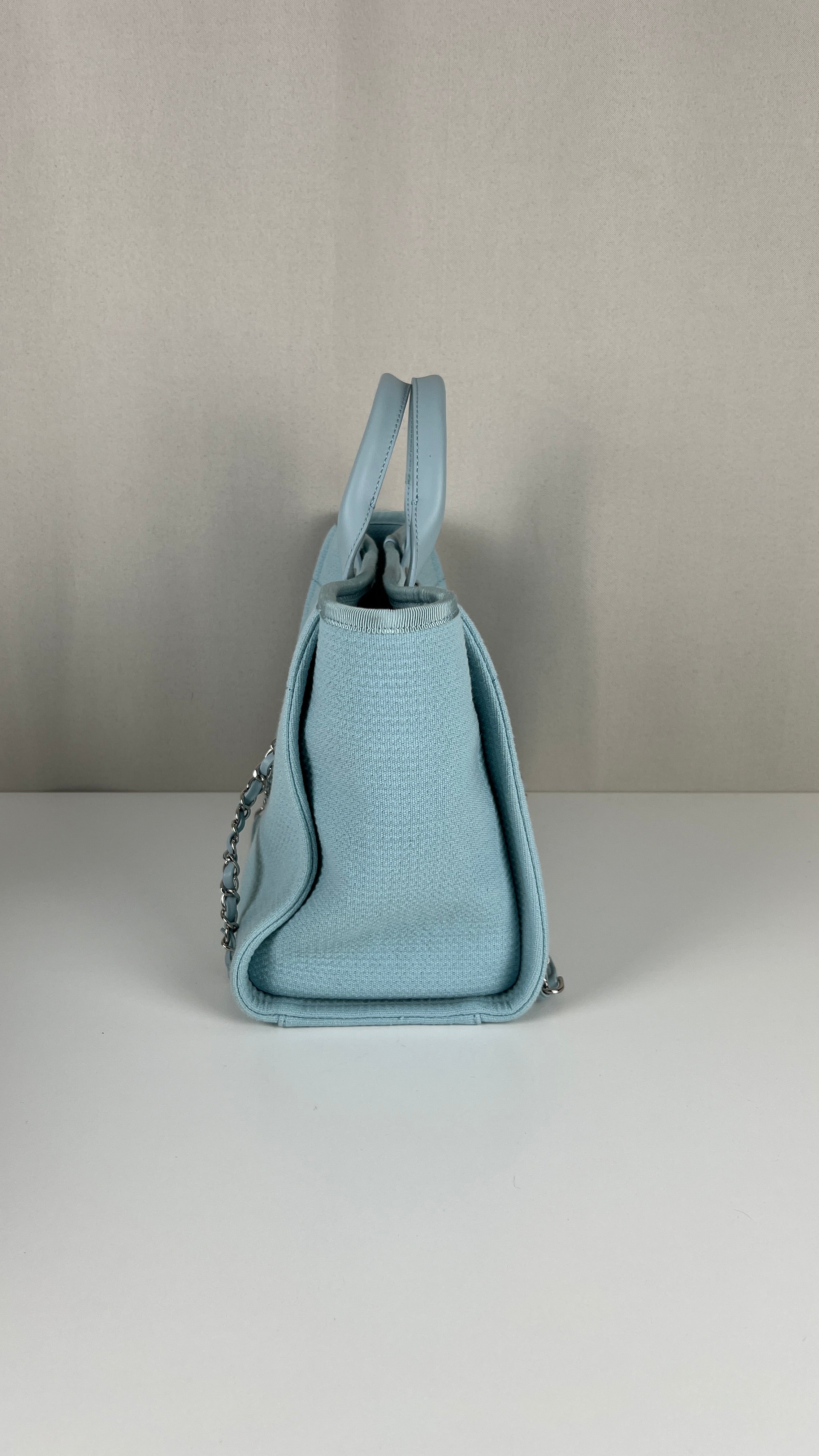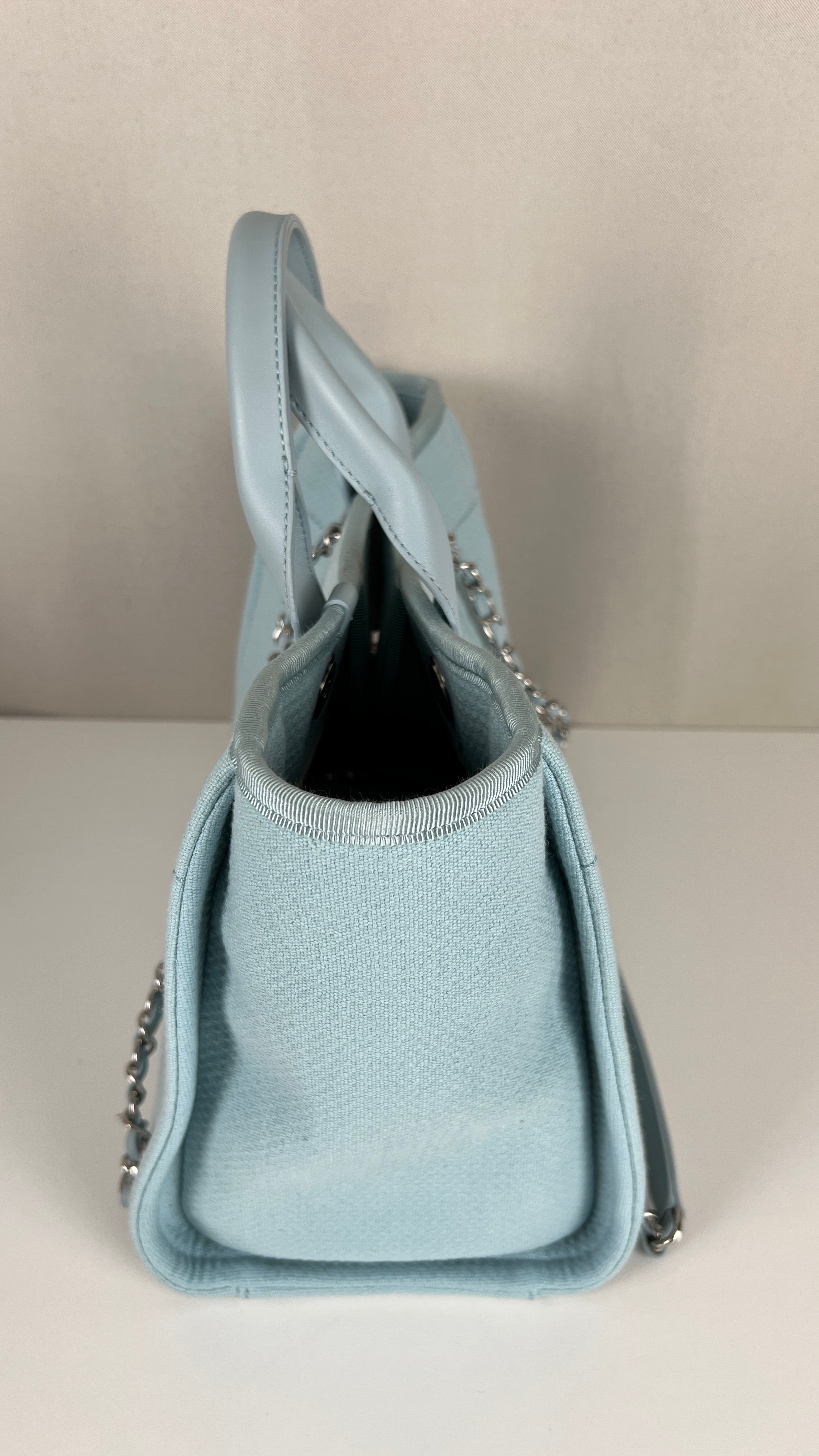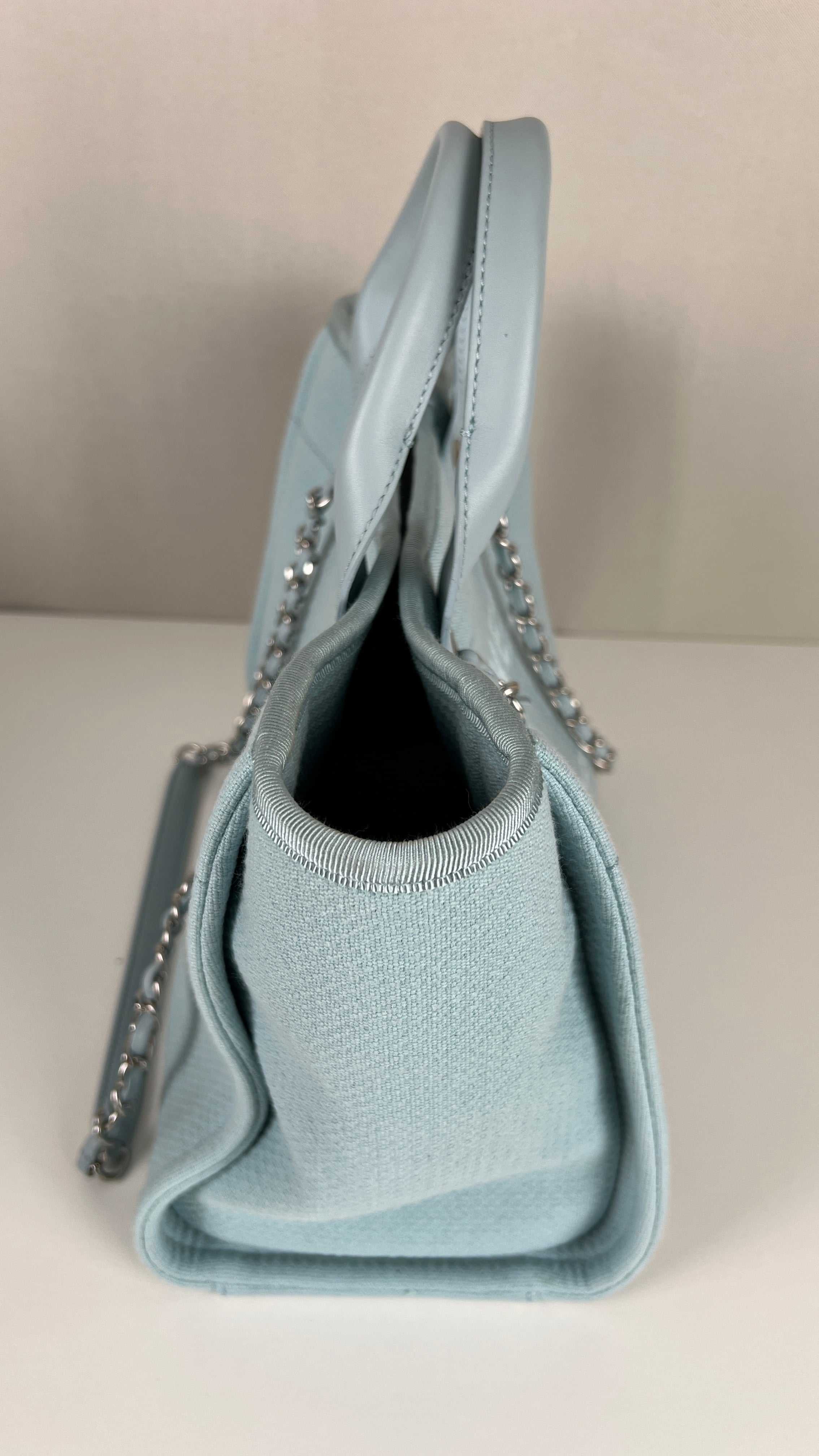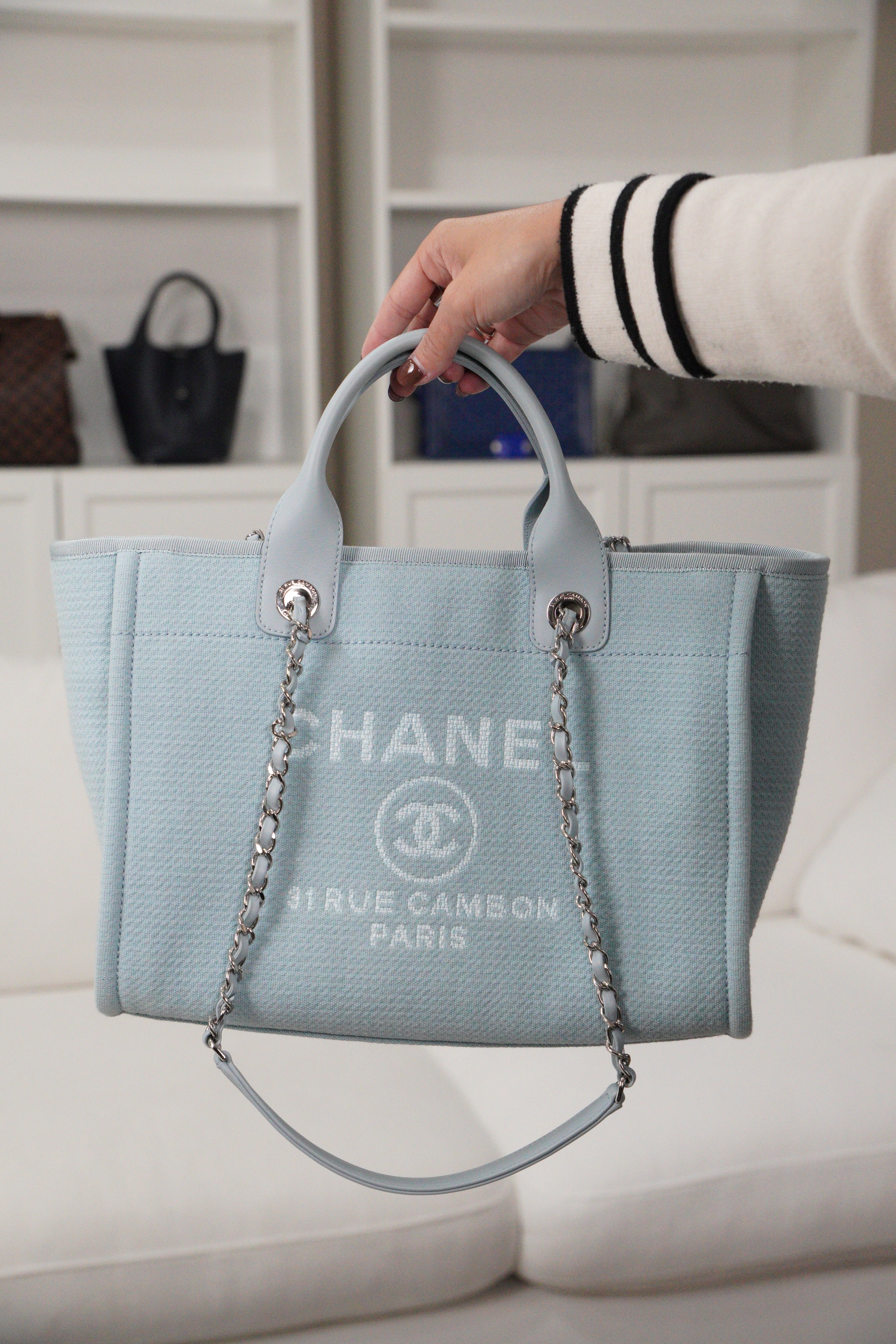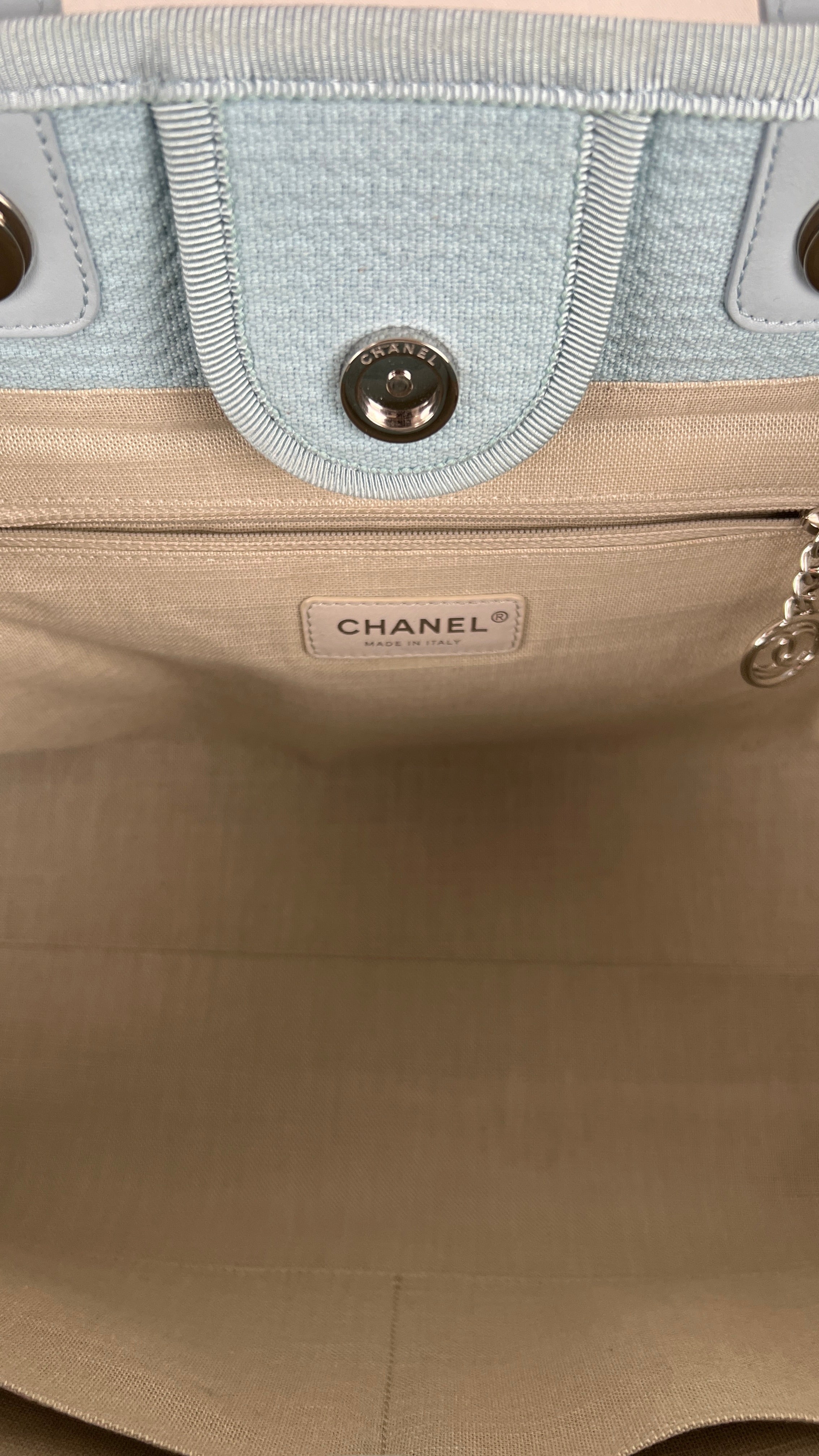 This Chanel Deauville is in very good condition. The corners and the fabrics are in very good condition. The are a stain on the back of the bag on the fabric. The handles and the strap are in very good condition. The little pouch is in very good condition.