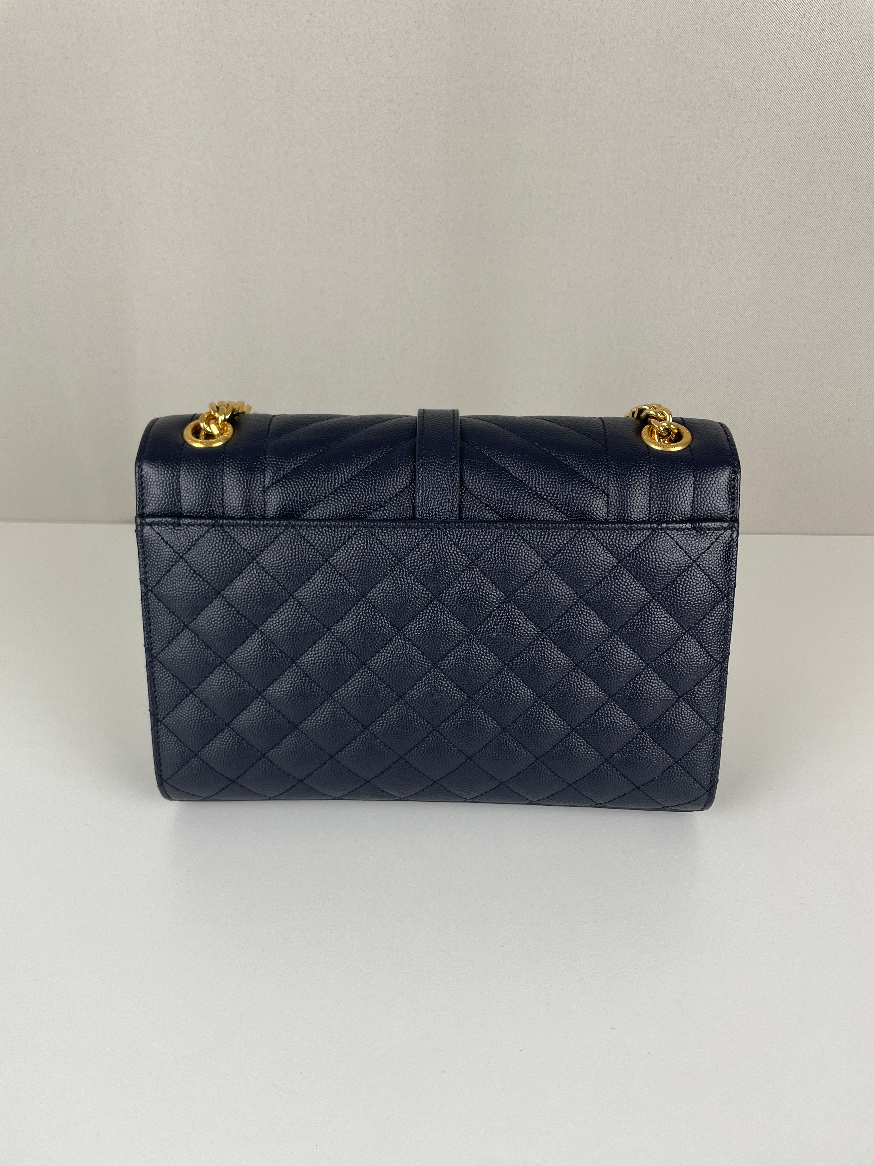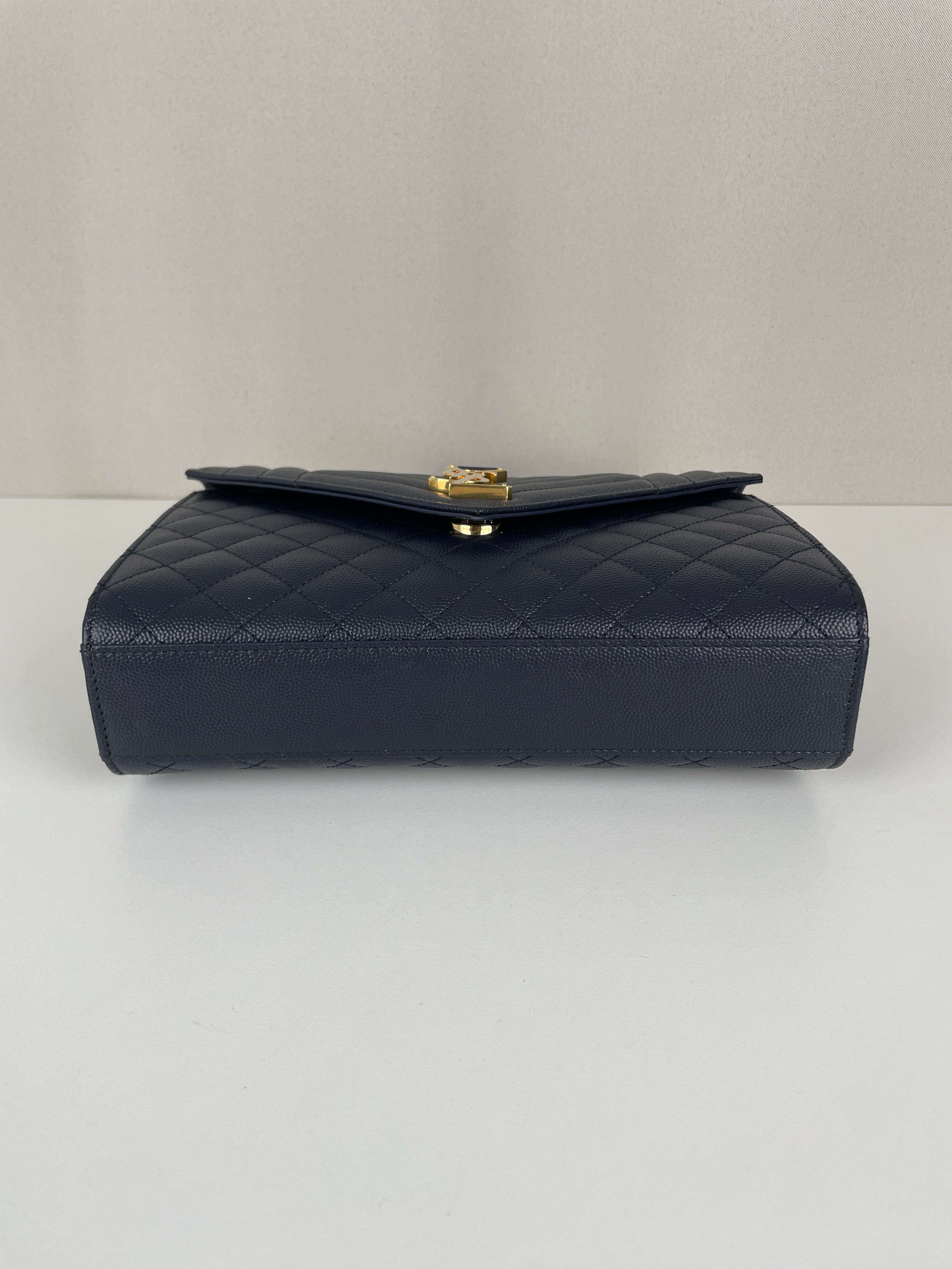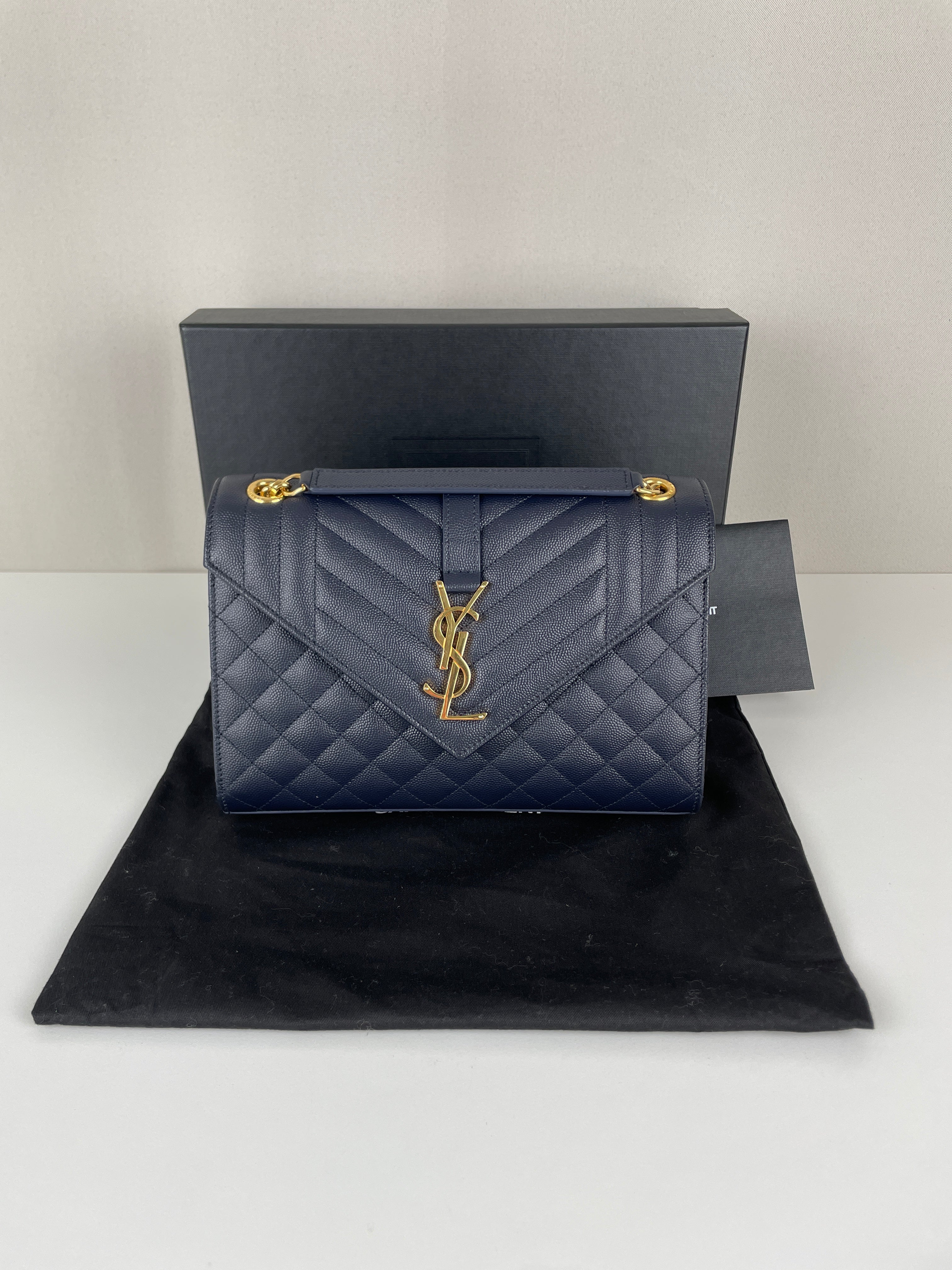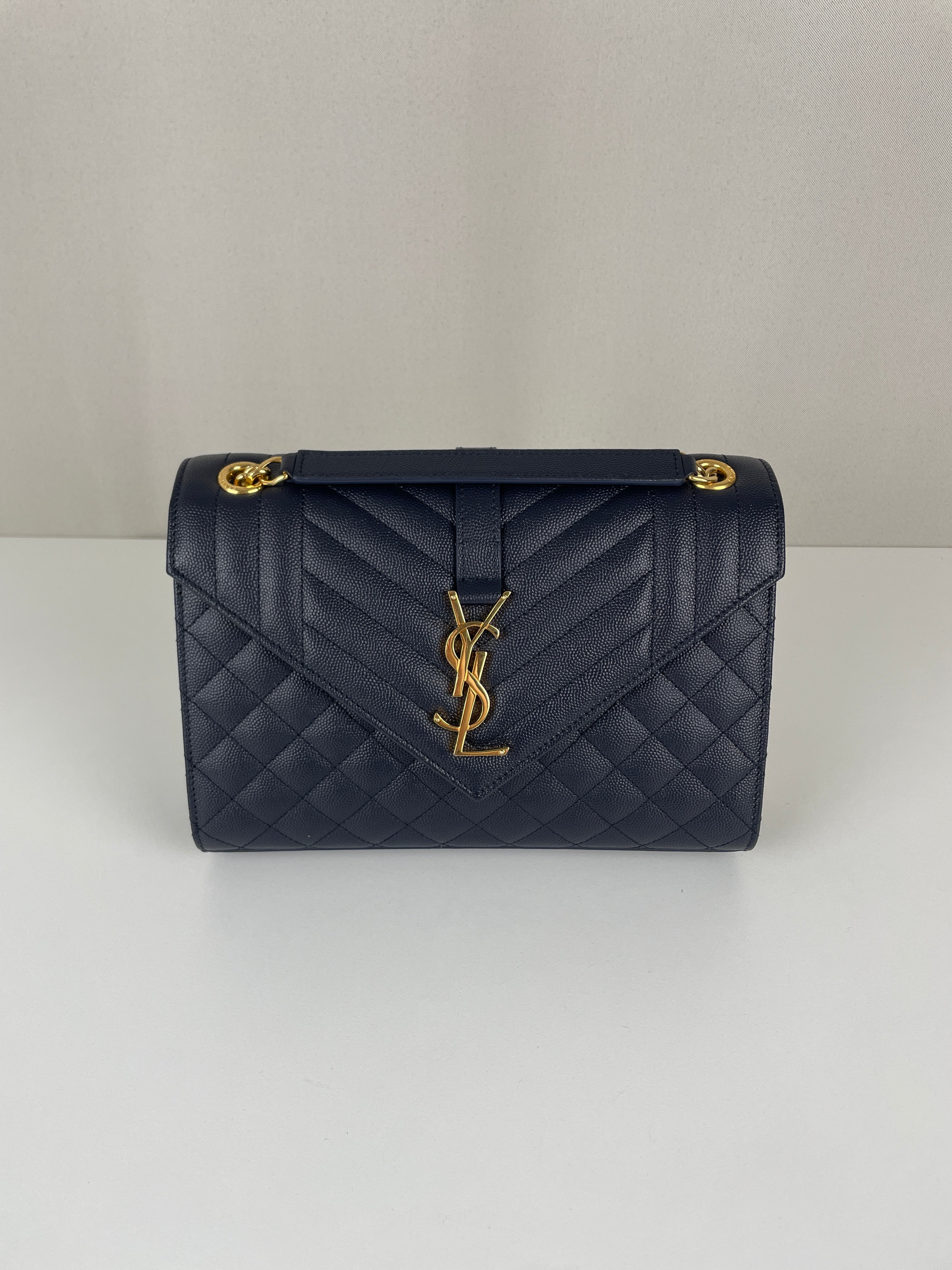 Saint Laurent Enveloppe medium dark blue leather bag