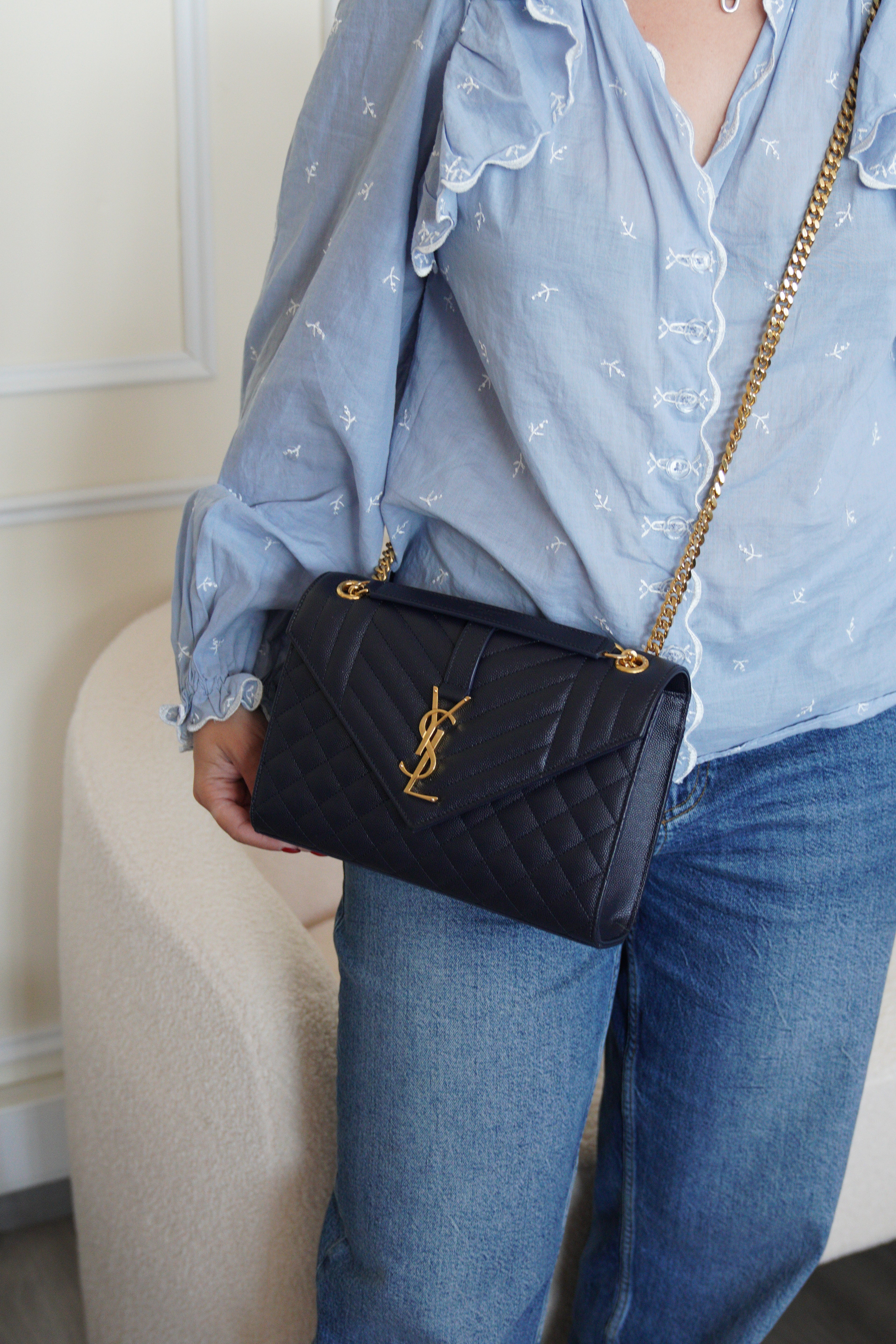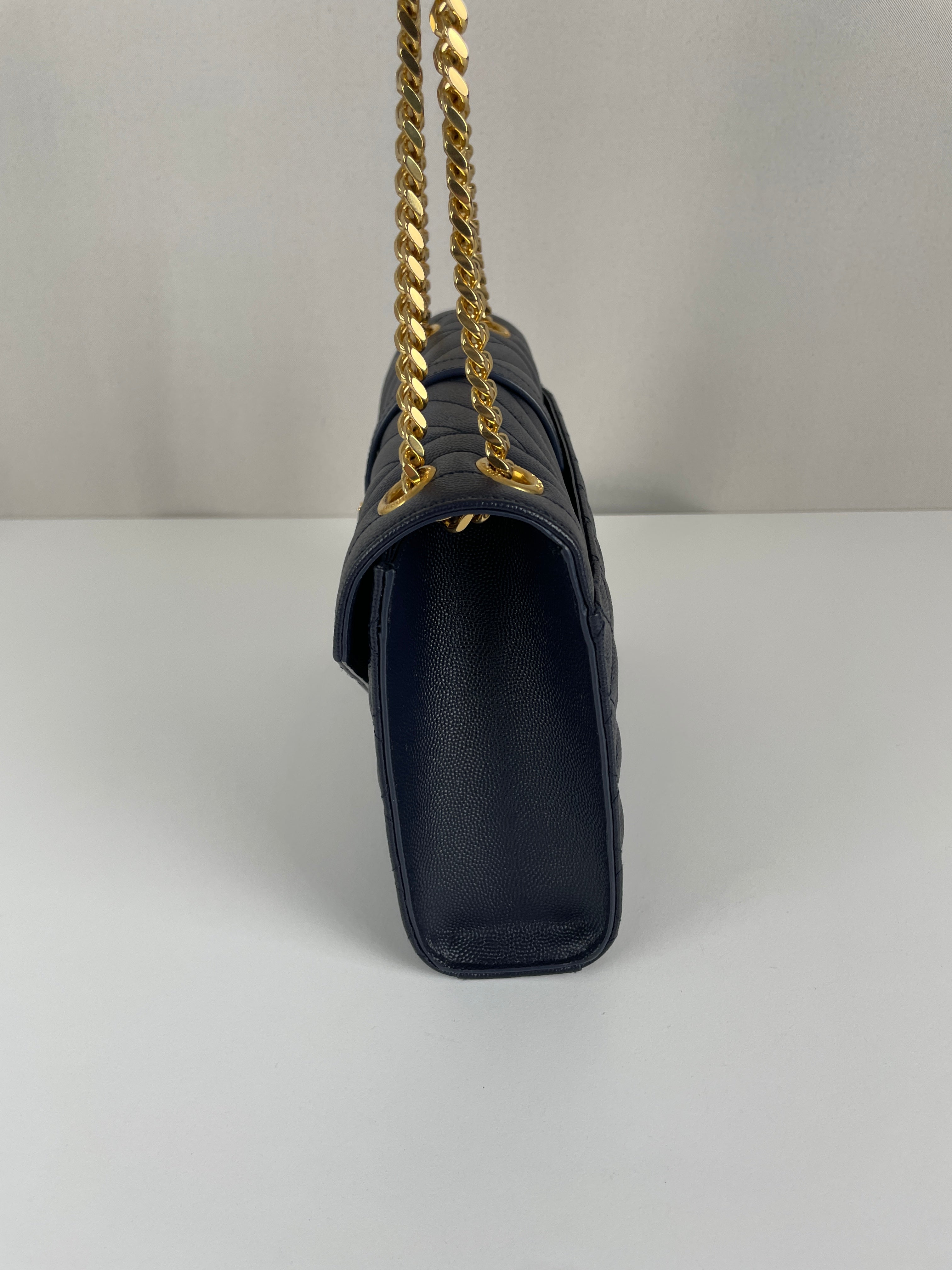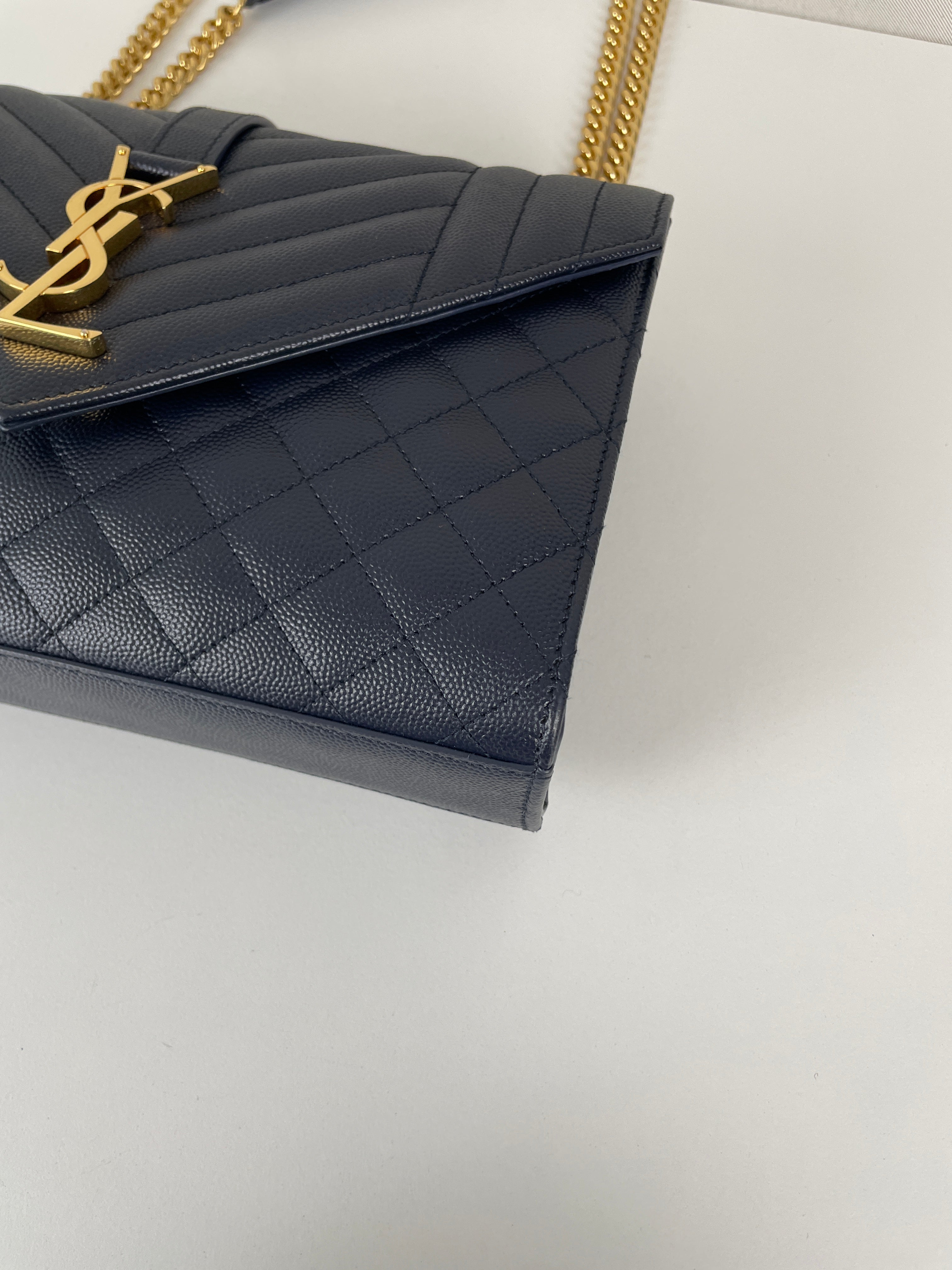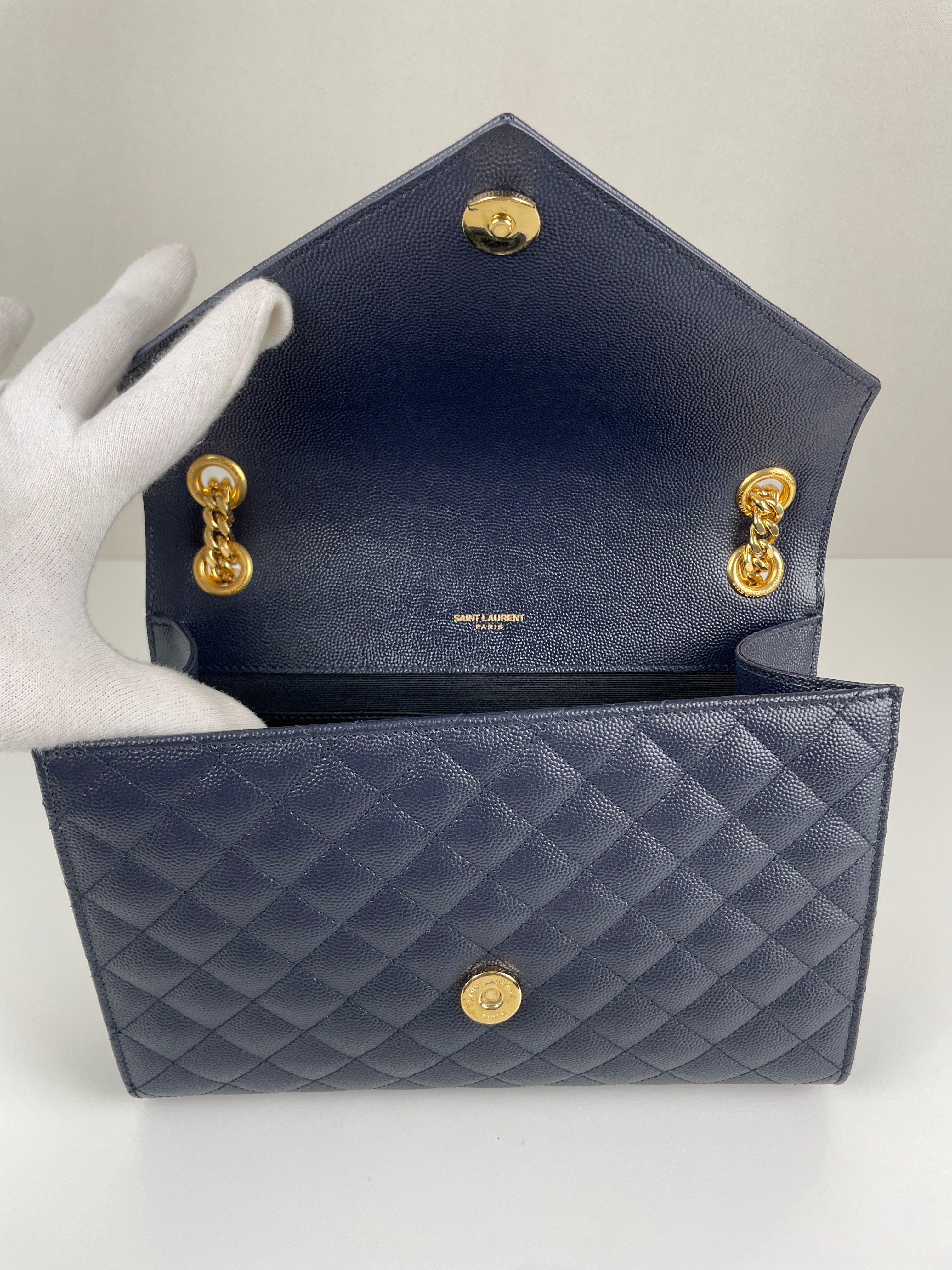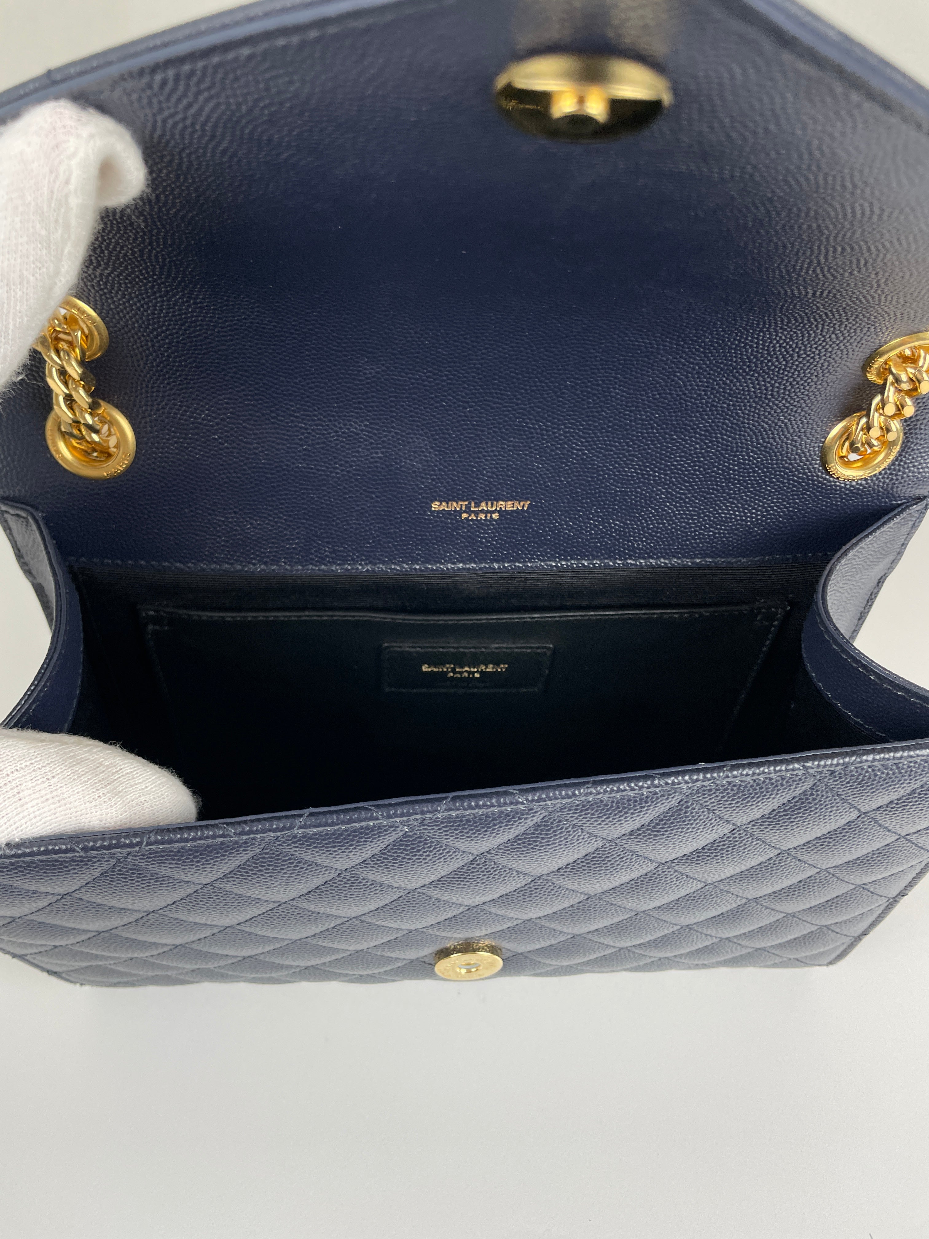 Saint Laurent Enveloppe medium dark blue leather bag