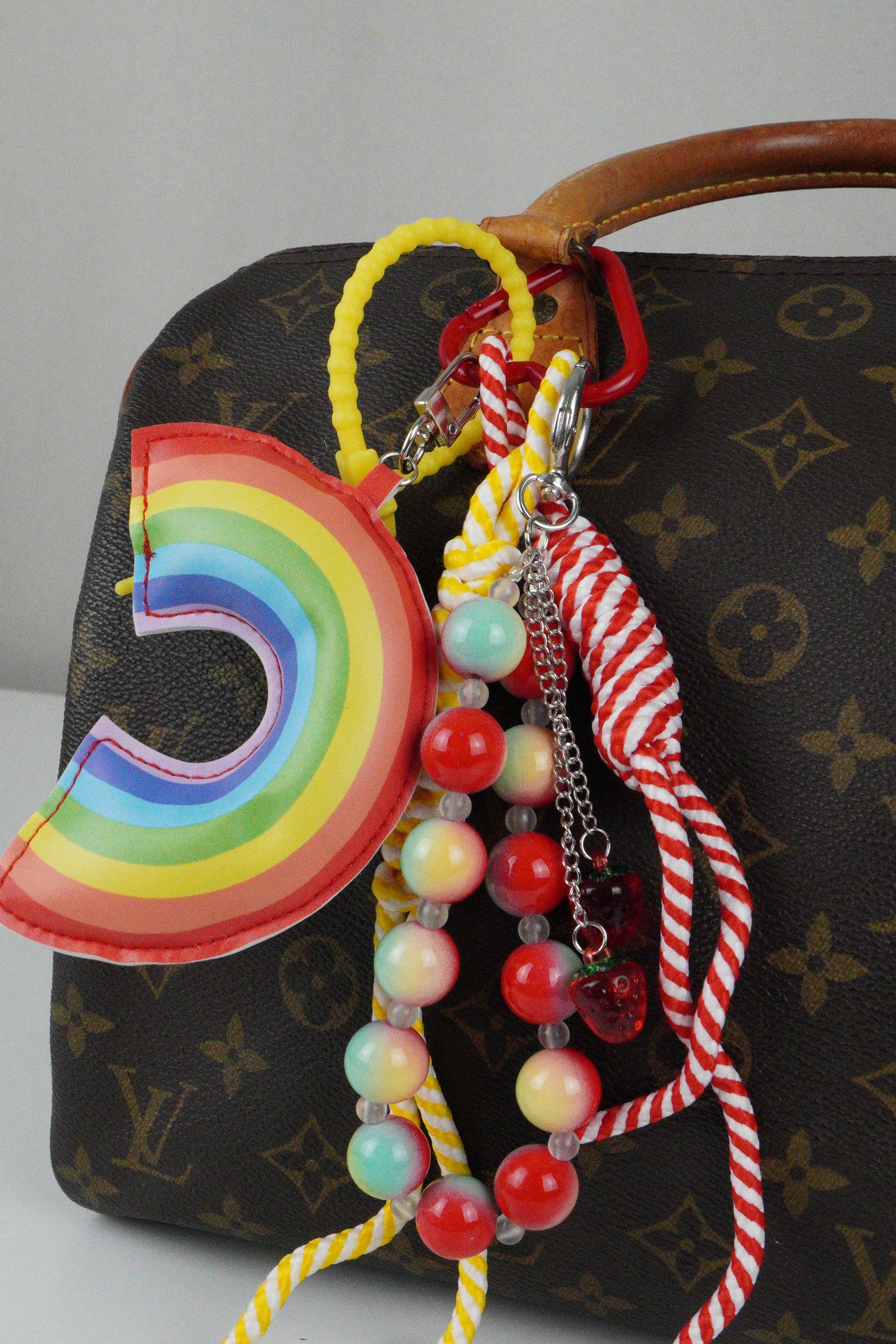 Lilo isn’t just a charm. She’s sunshine in accessory form. With her juicy rainbow bite, candy-colored beads, strawberry twins, and twisted cords, she brings pure joy and playful energy to every bag she touches.