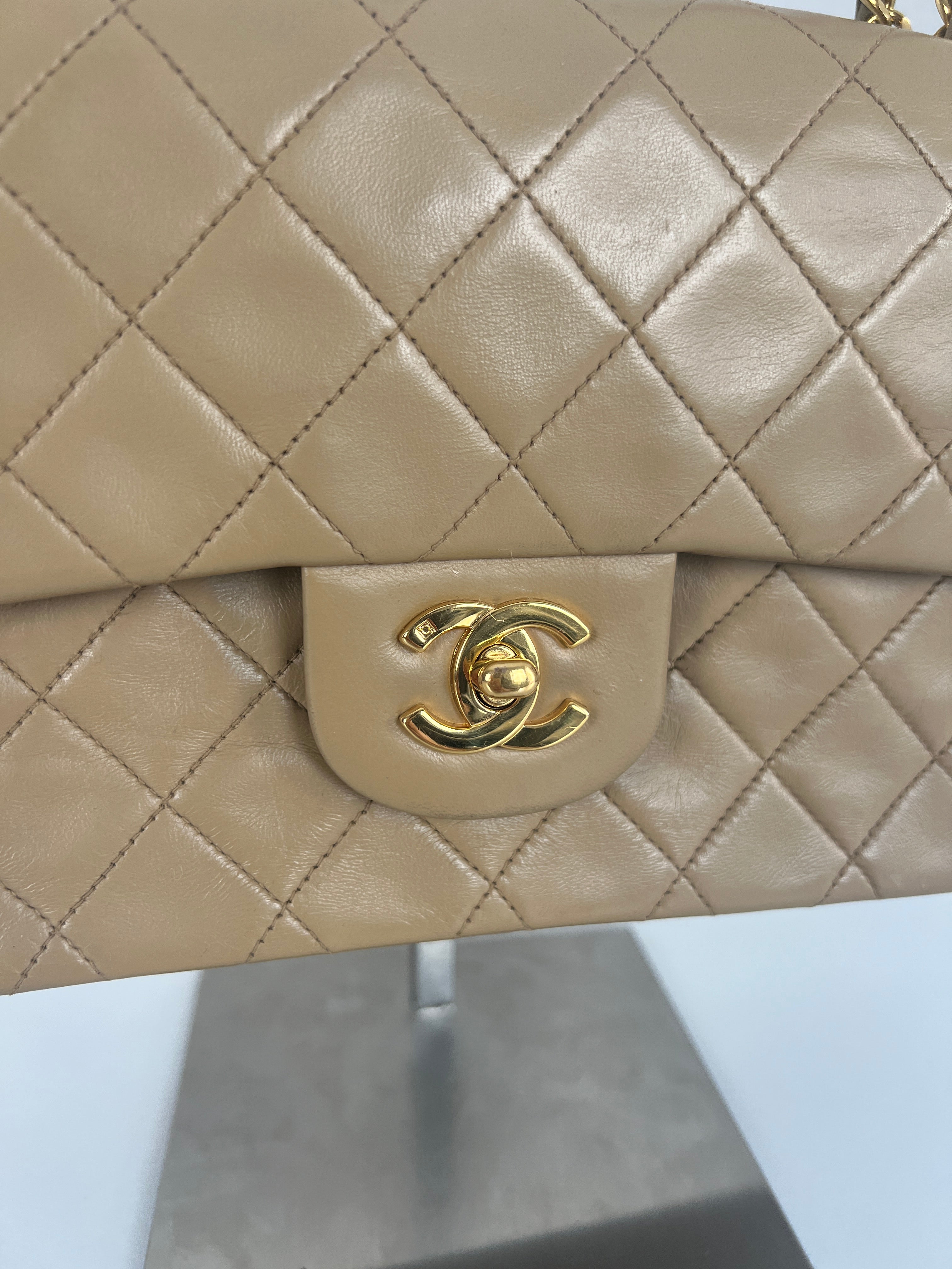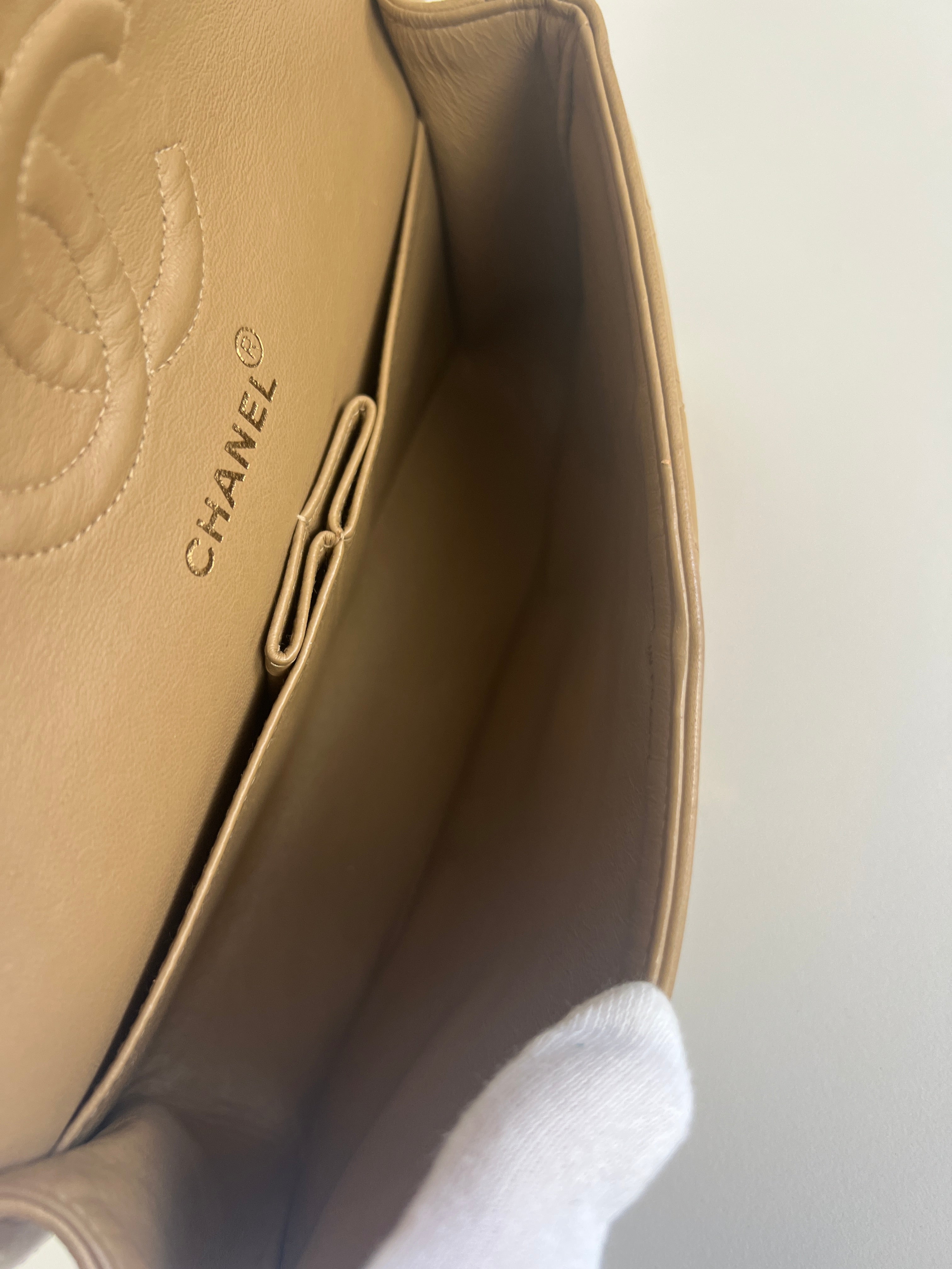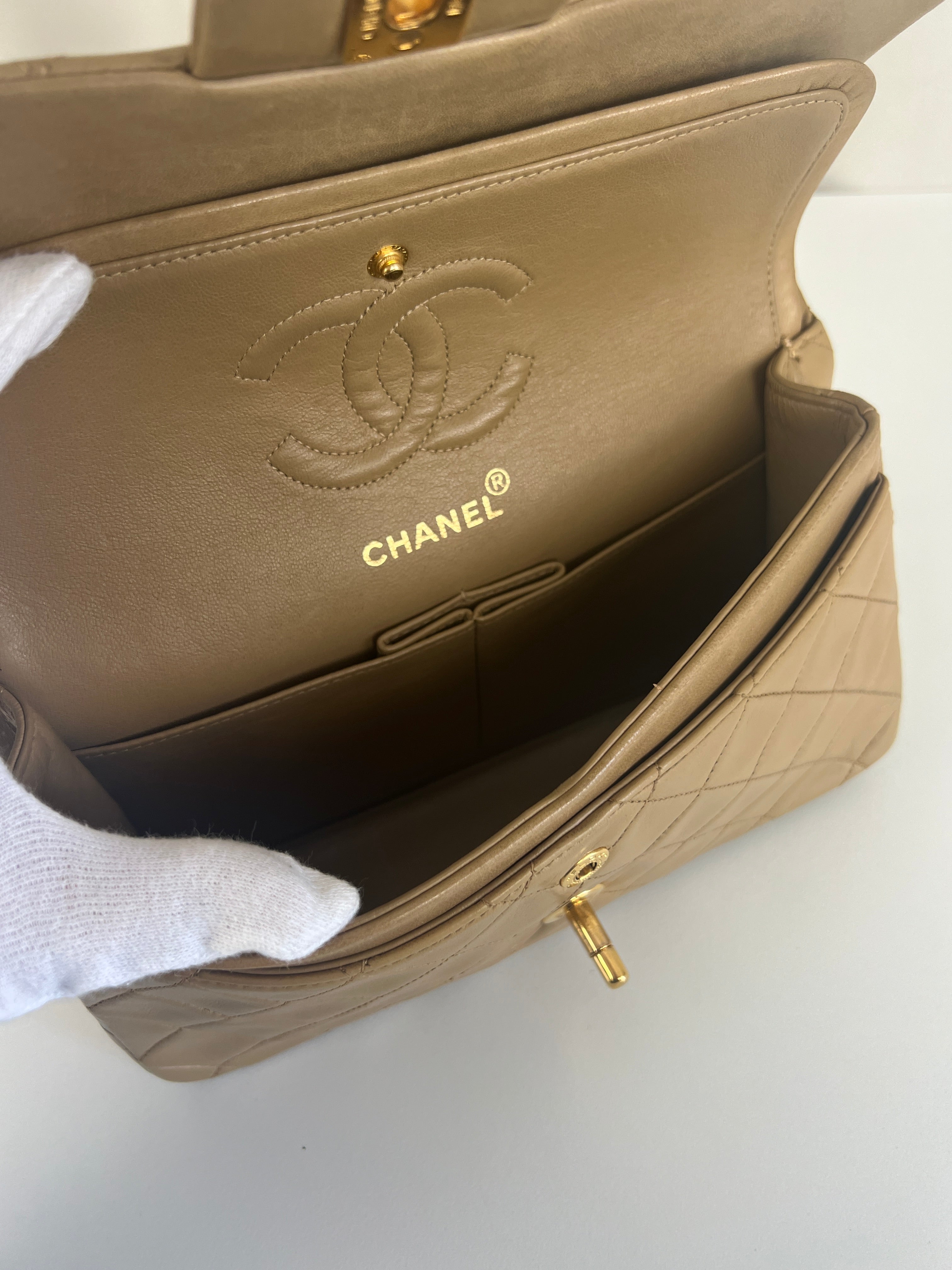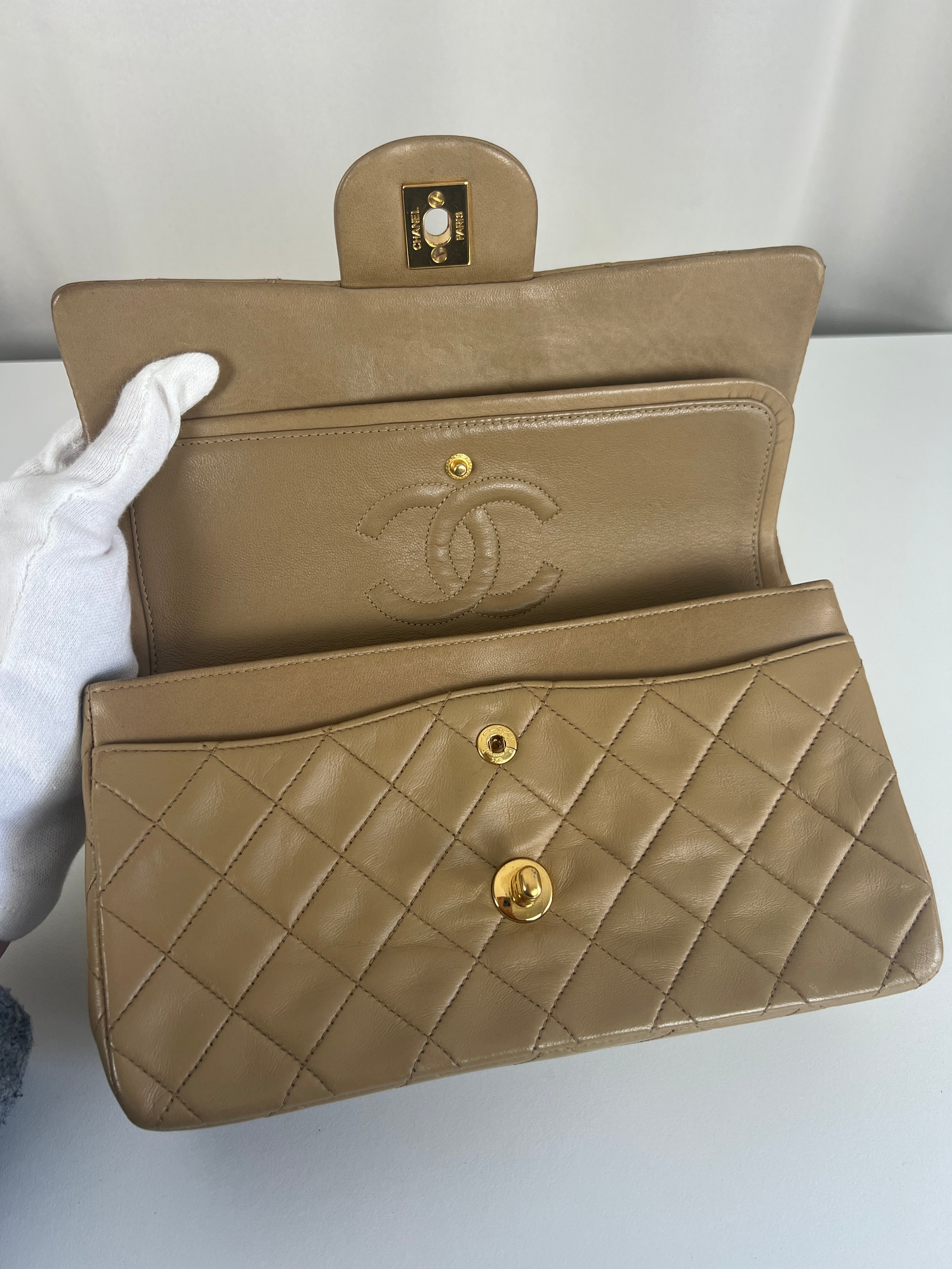 Chanel beige Timeless double flap bag Leather gold hardware