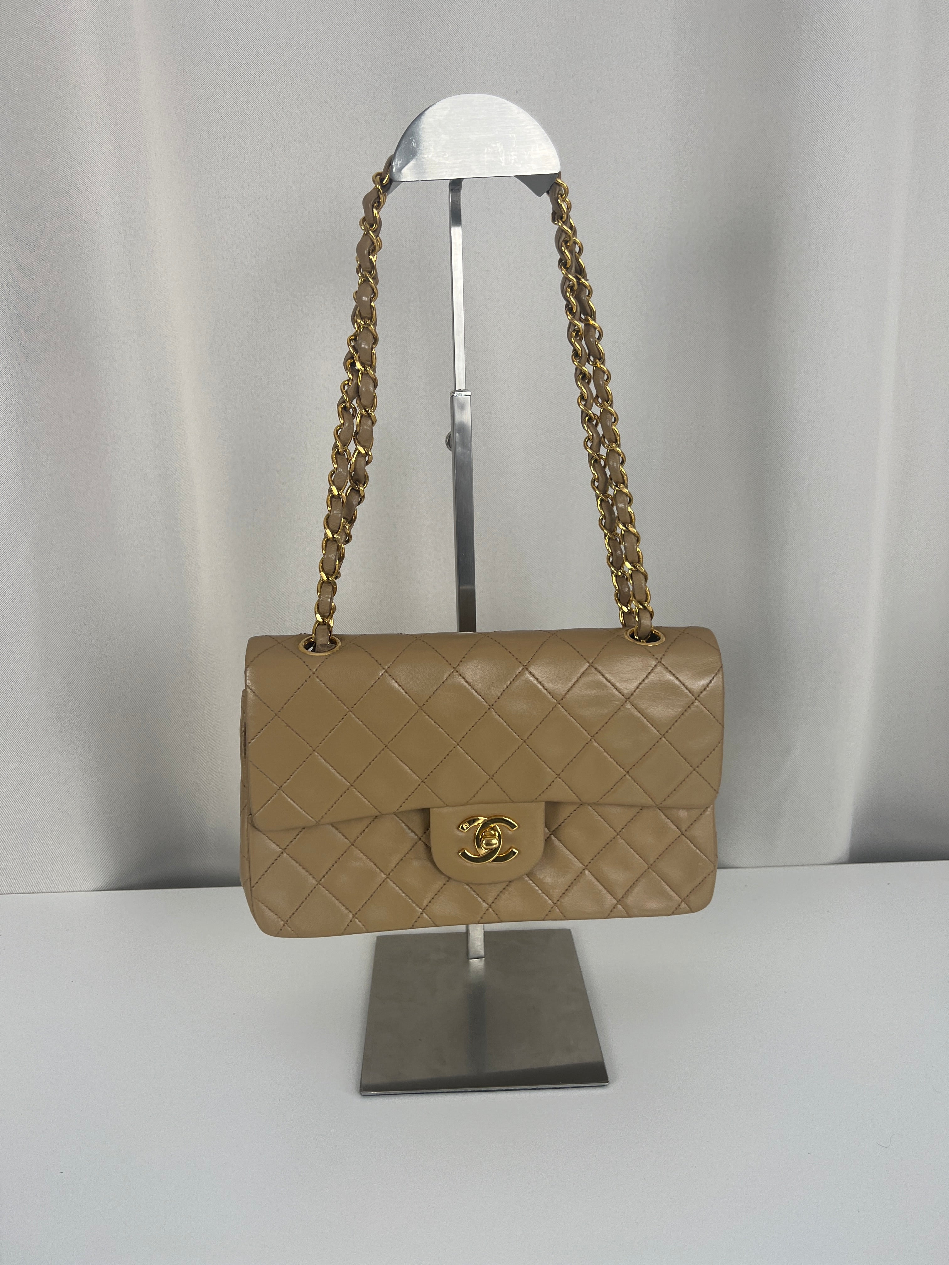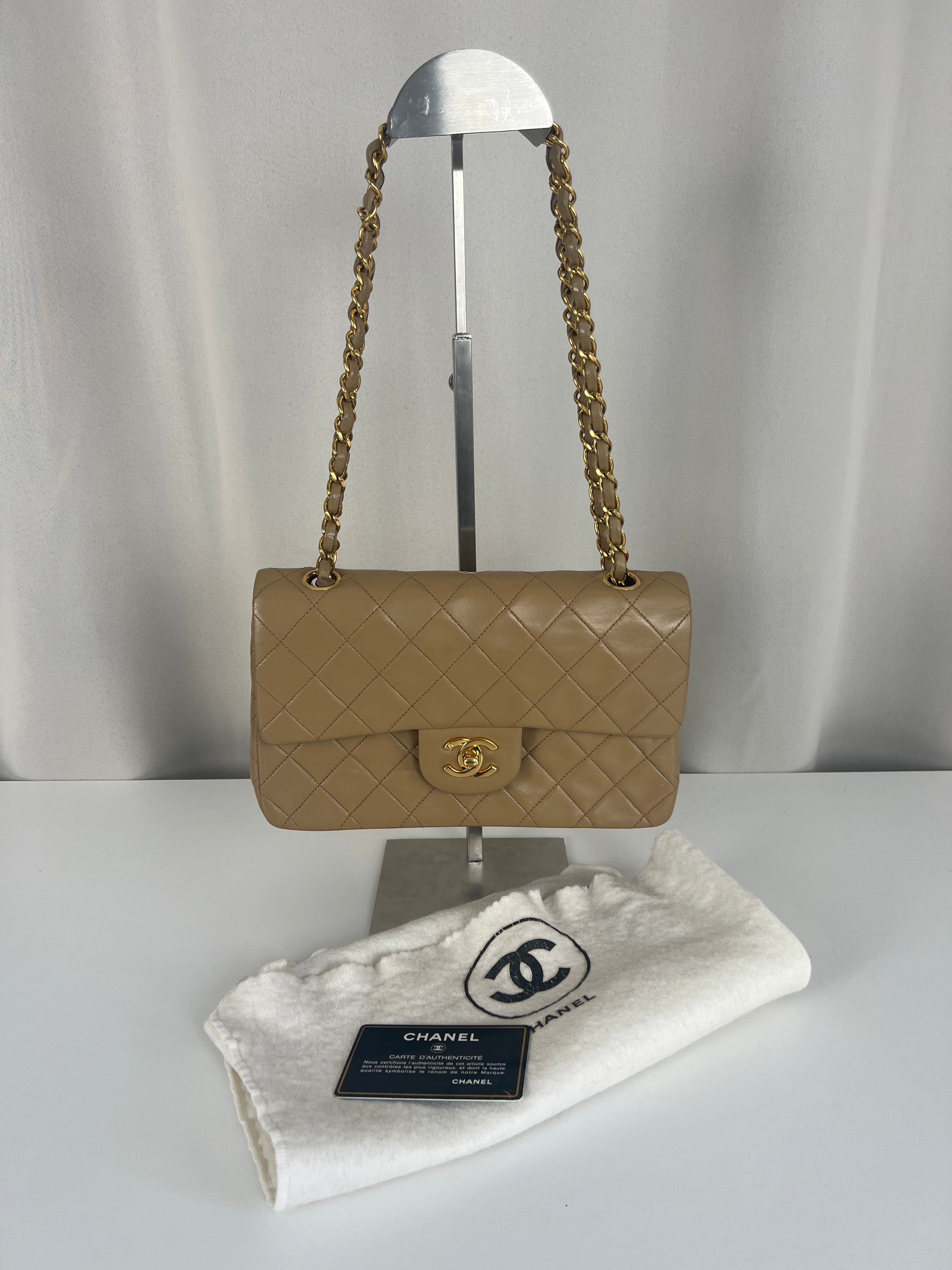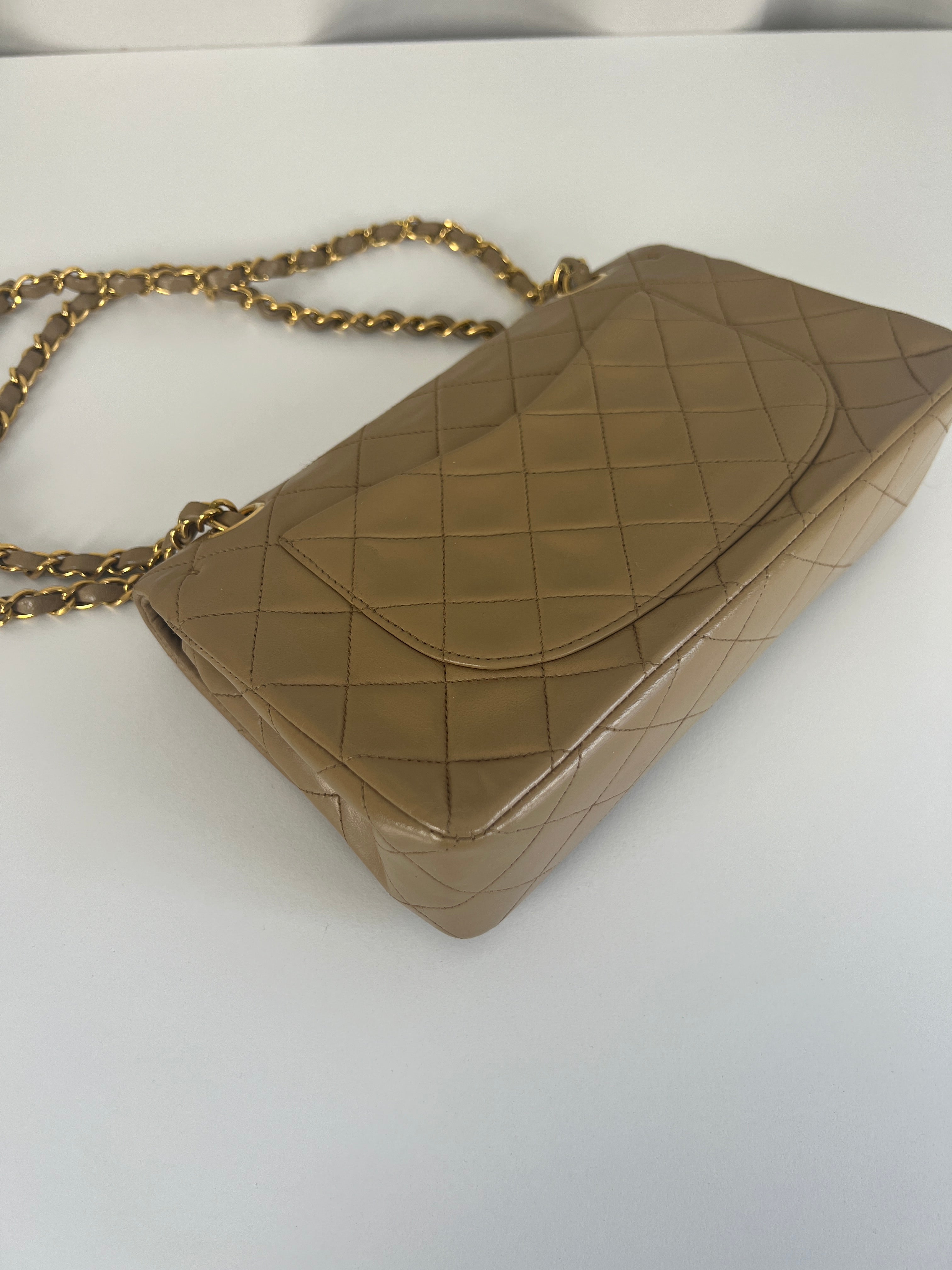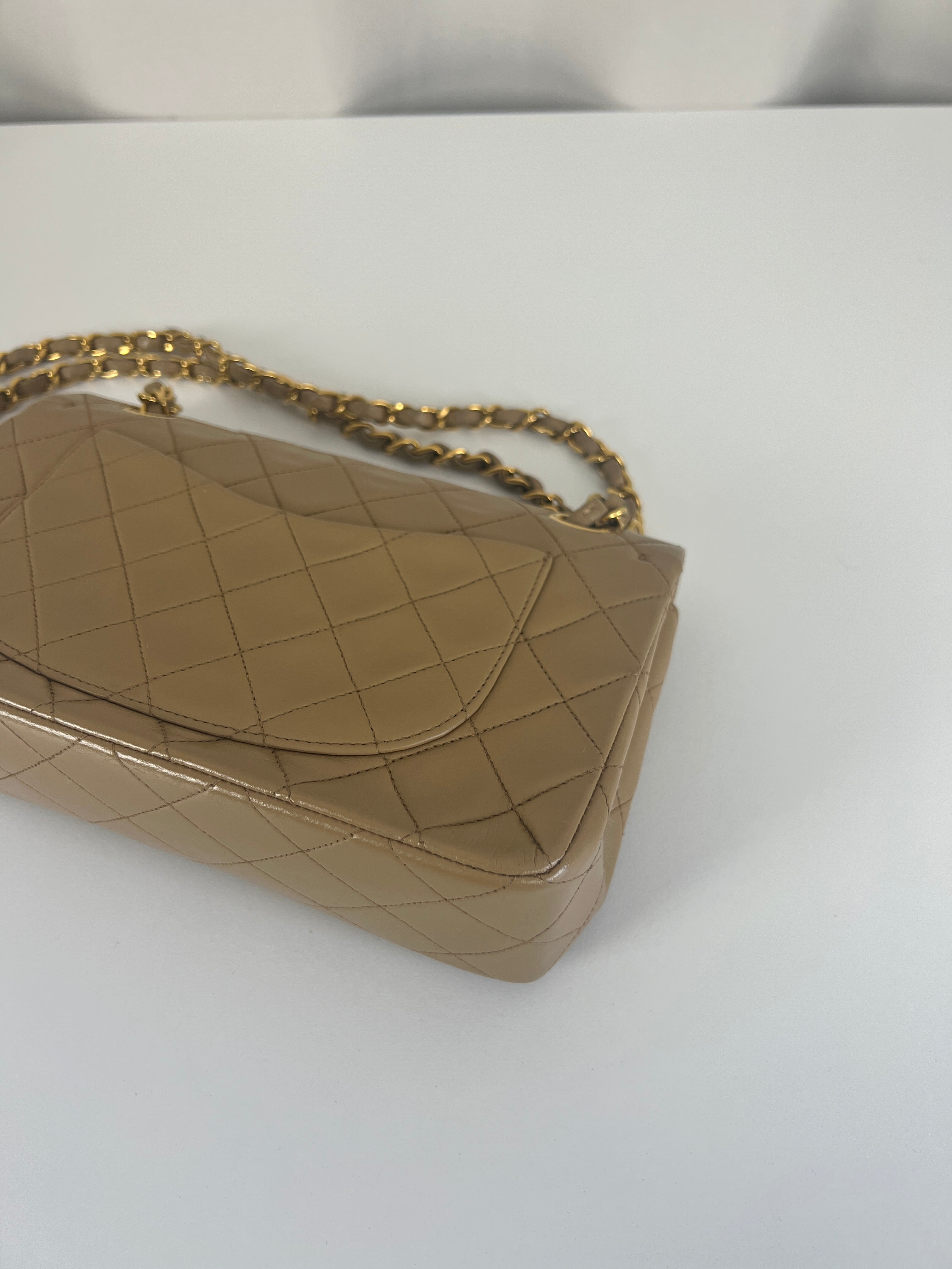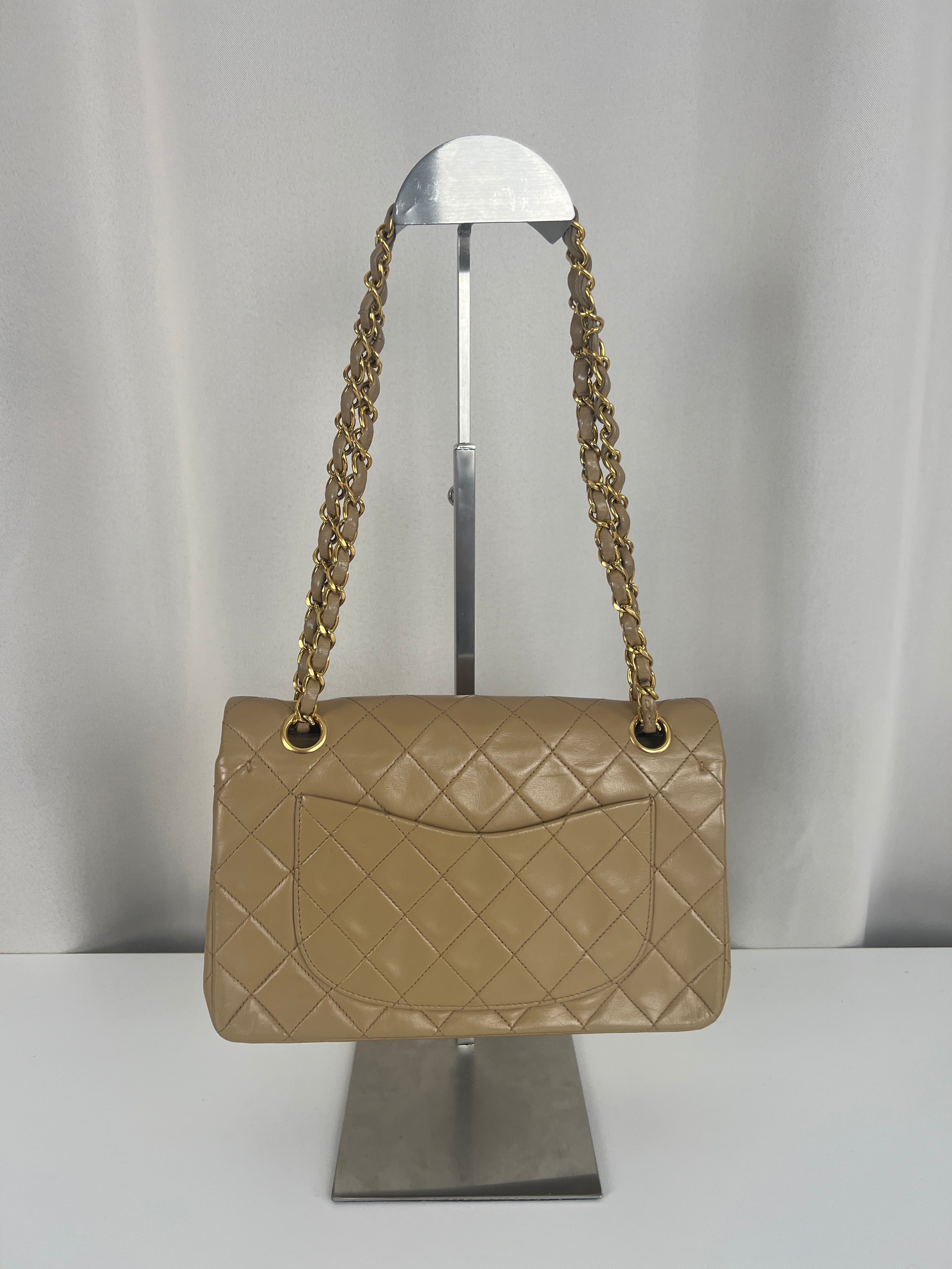 Chanel beige Timeless double flap bag Leather gold hardware