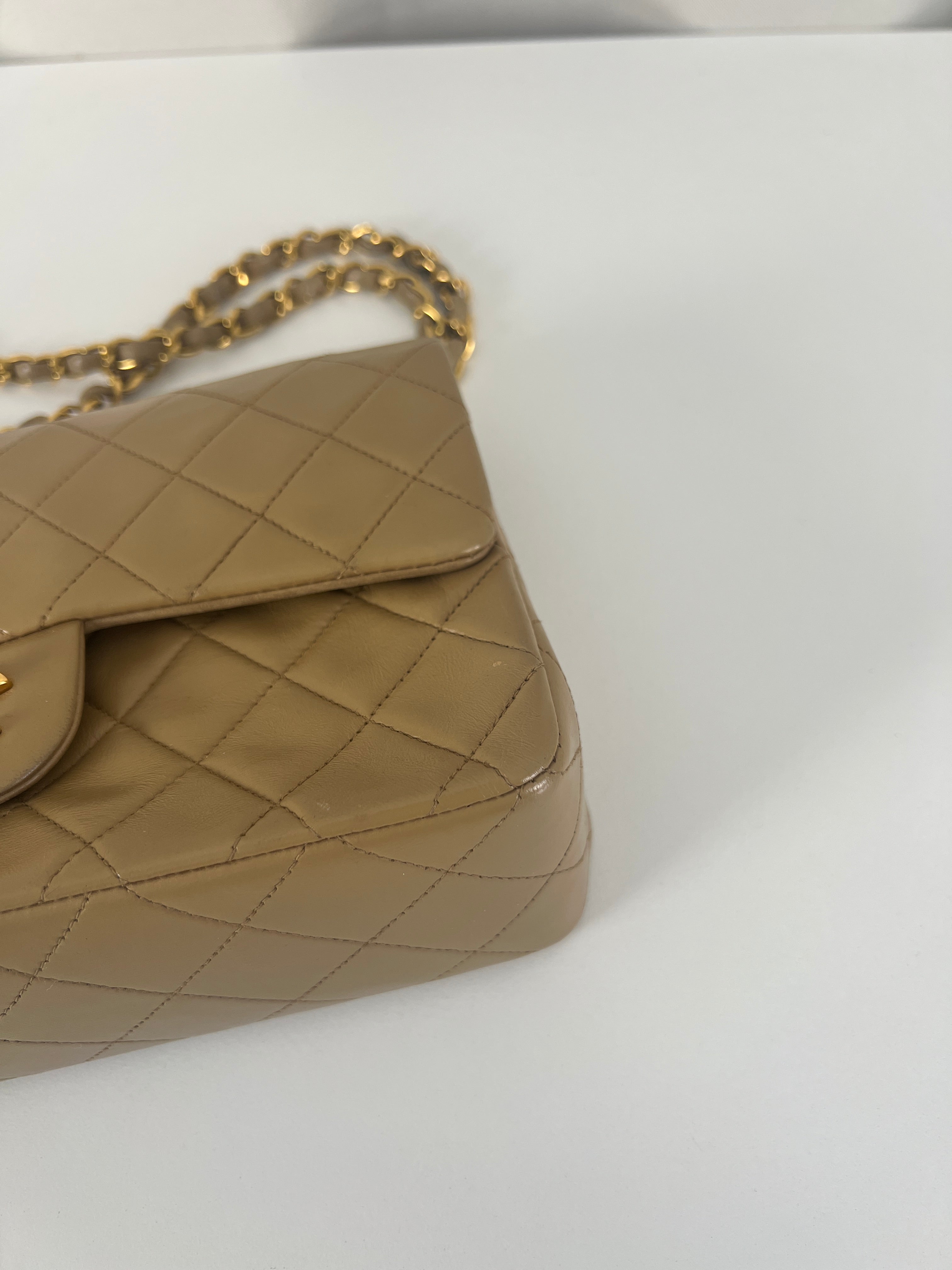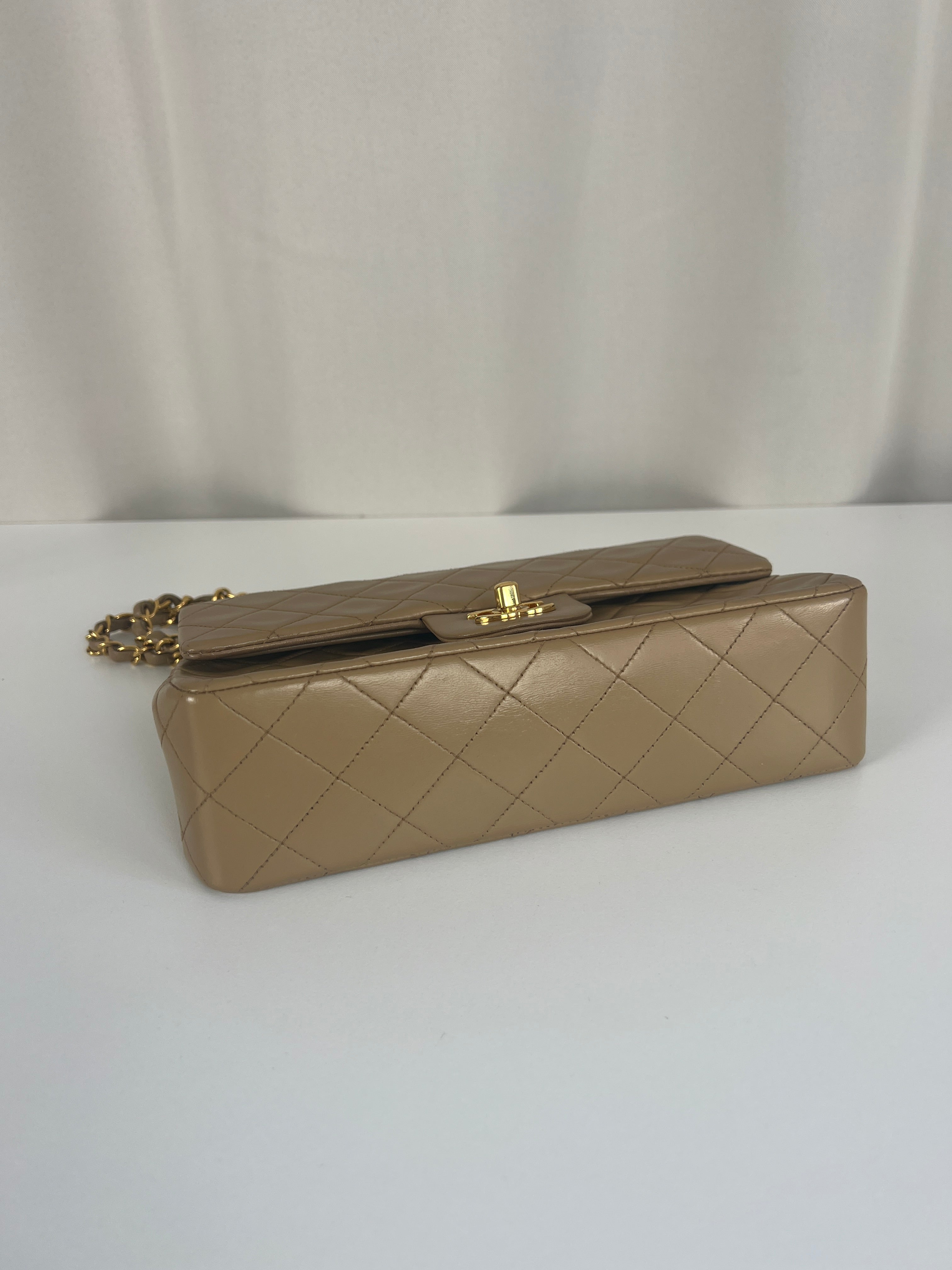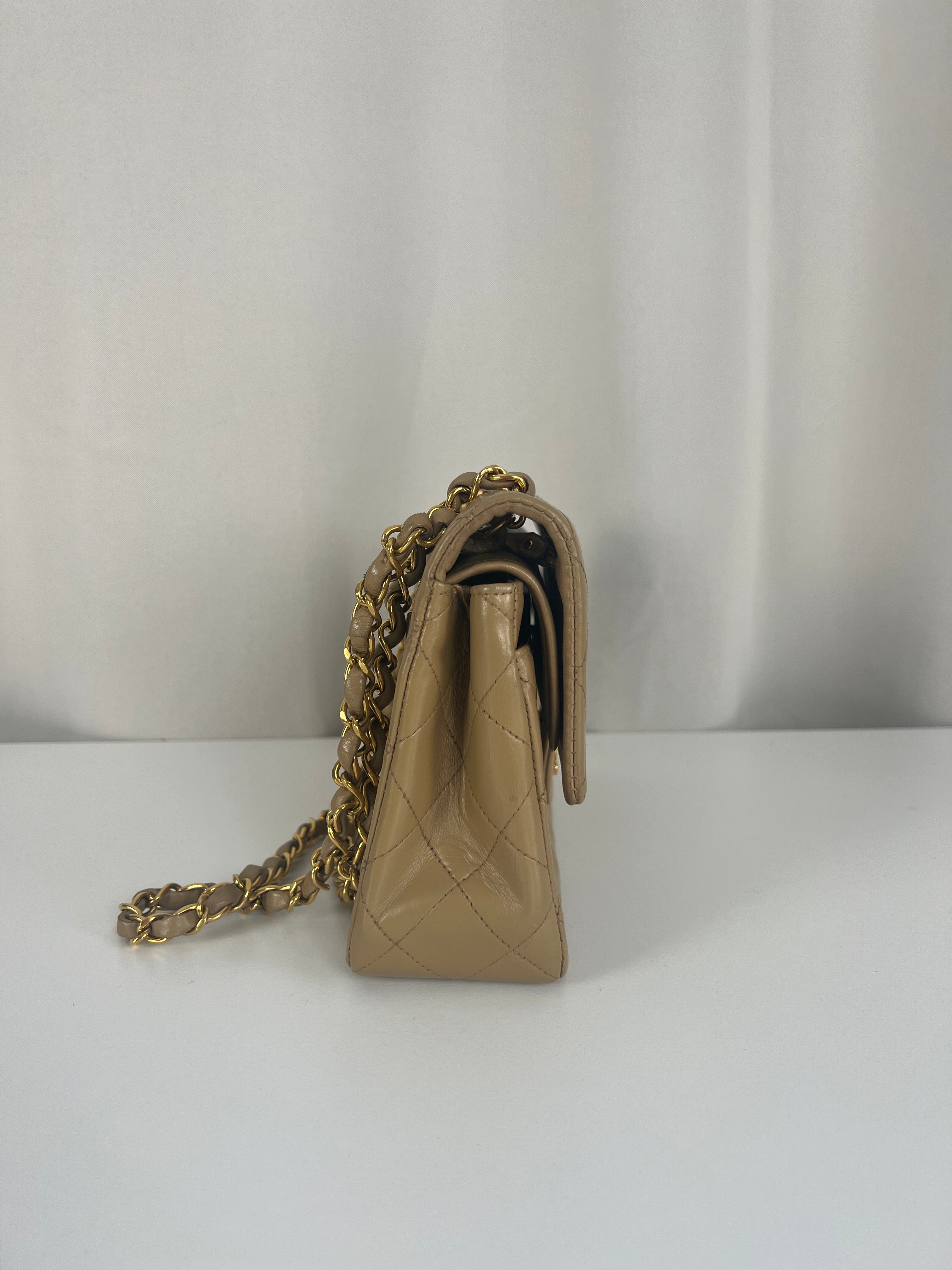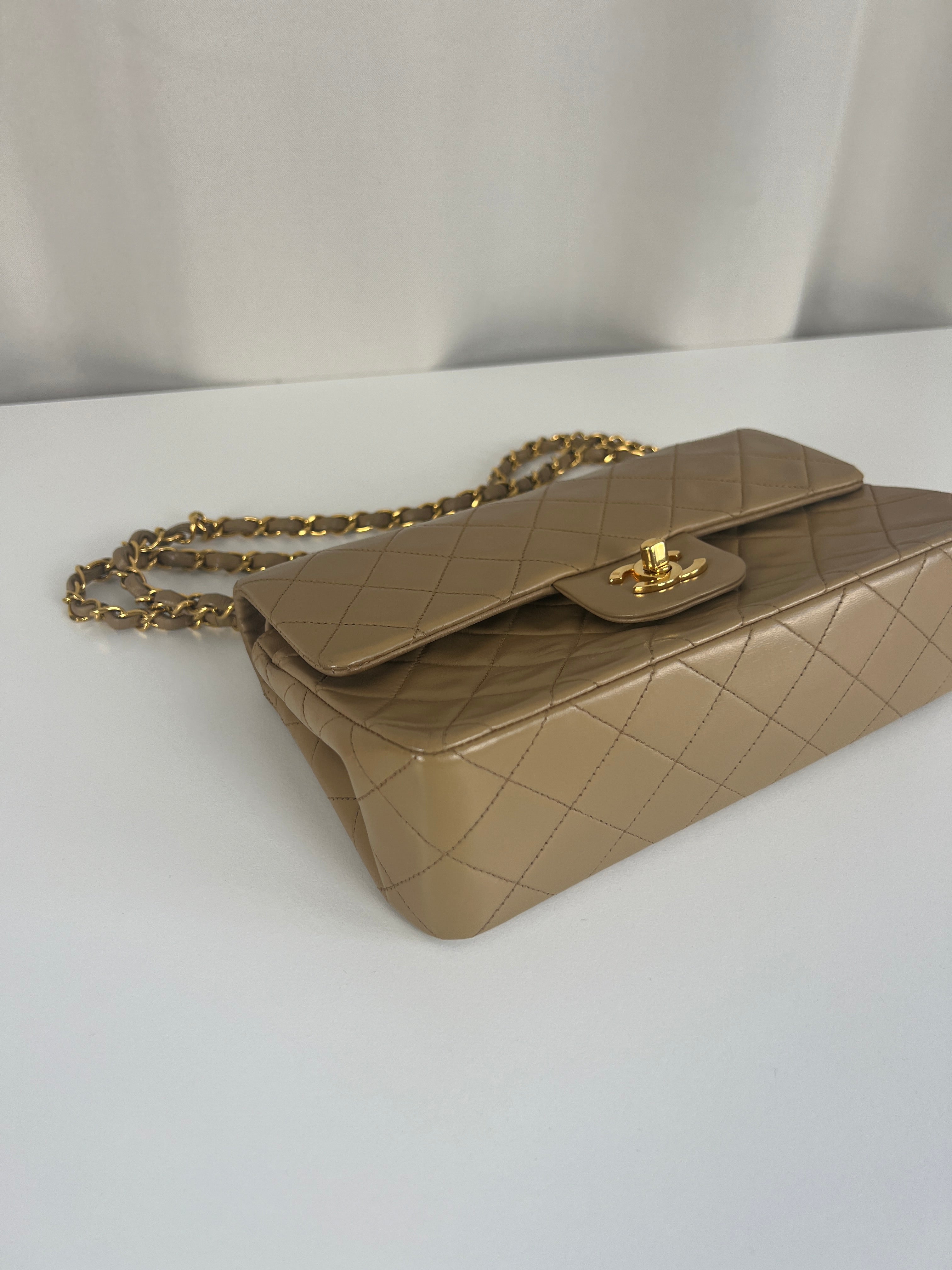 Chanel beige Timeless double flap bag Leather gold hardware