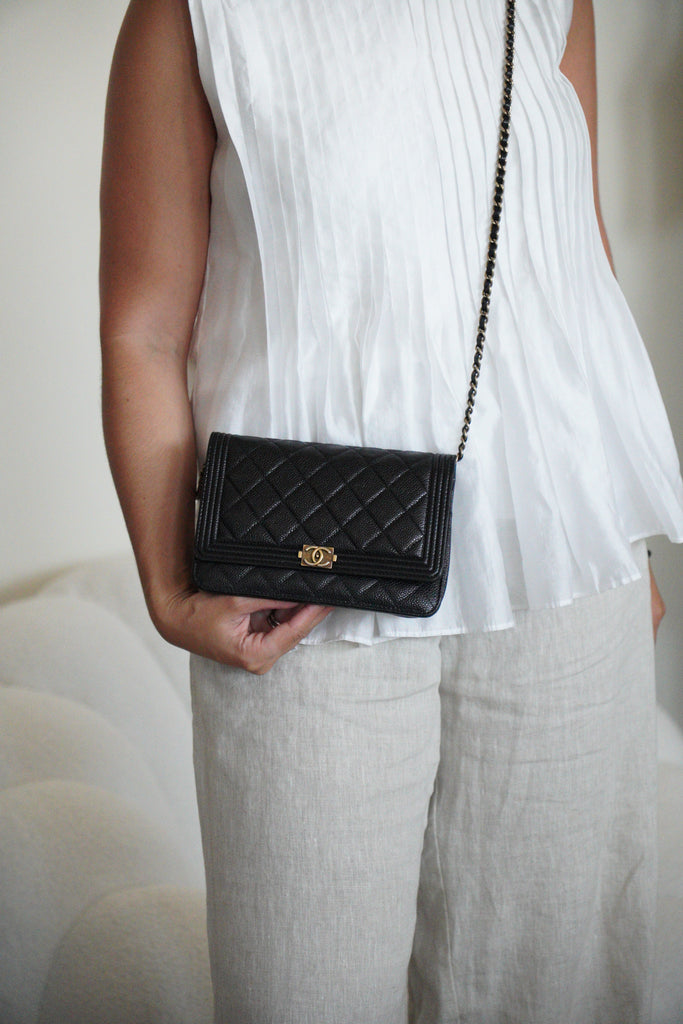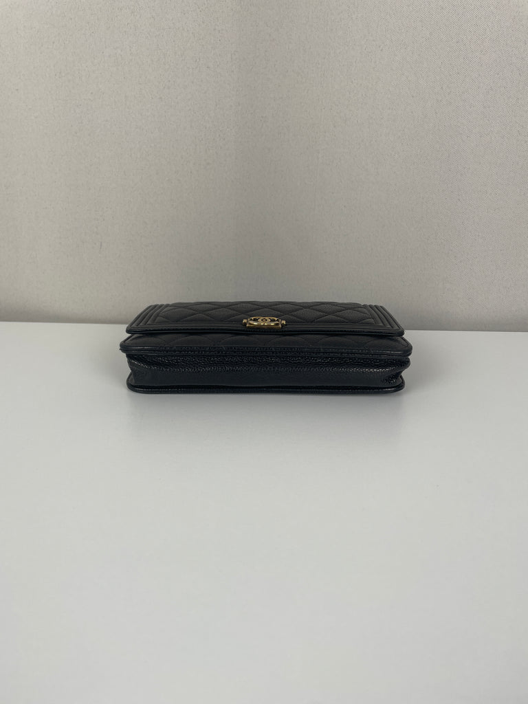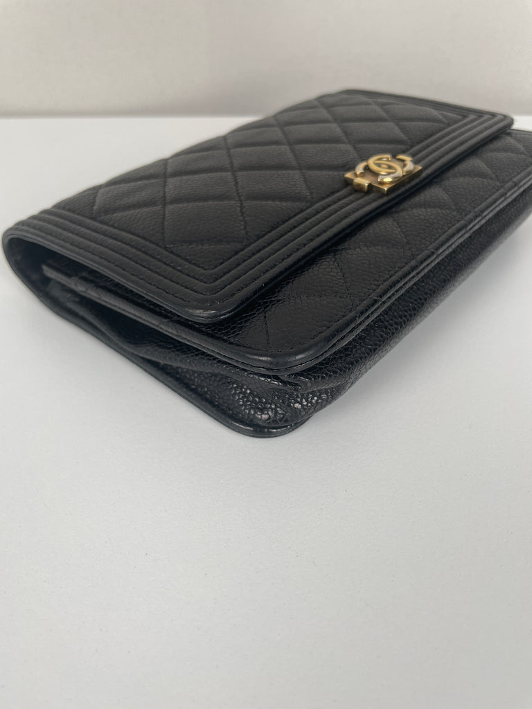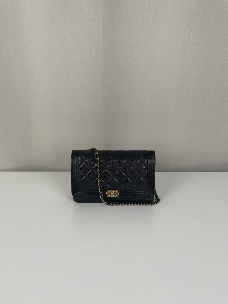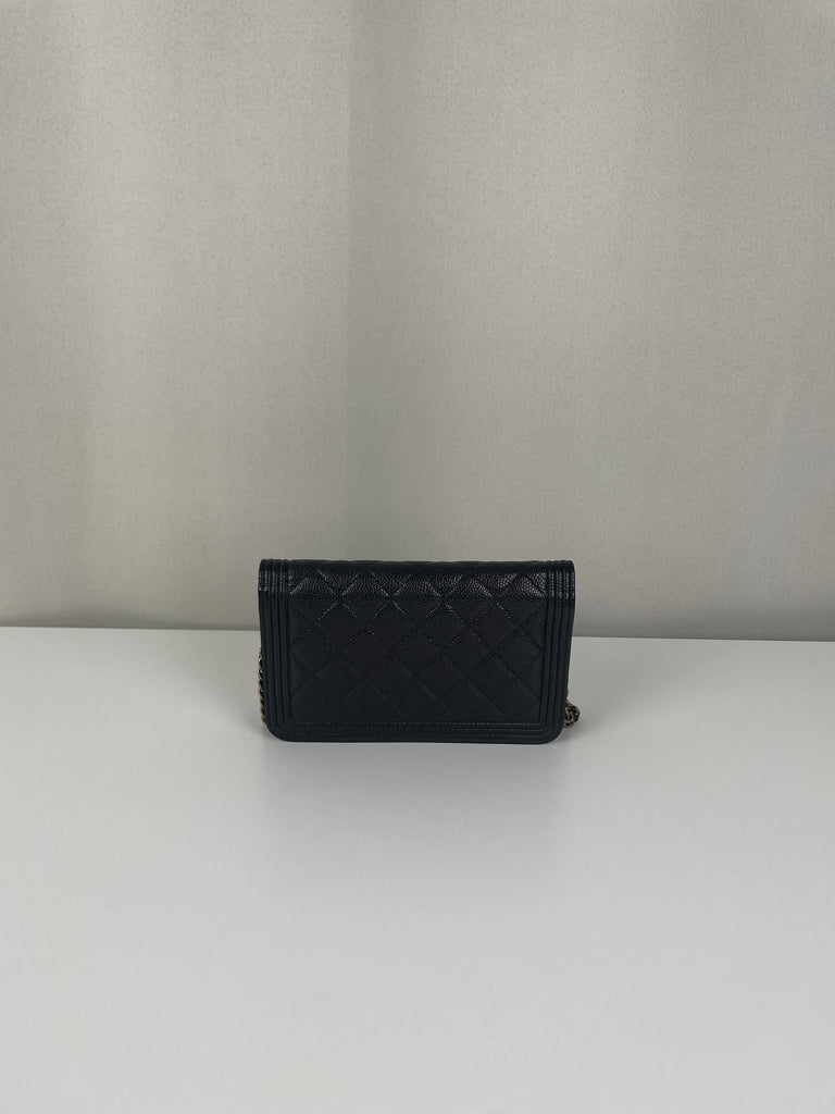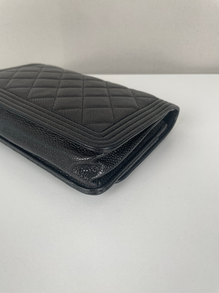 The Boy WOC is one of Chanel's most contemporary and edgy designs. This 2014 grained black leather edition showcases the maison's modern interpretation of luxury with distinctive quilting and masculine-inspired hardware. A statement piece that embodies Chanel's innovative spirit and represents the perfect blend of rock-chic aesthetic with timeless sophistication.