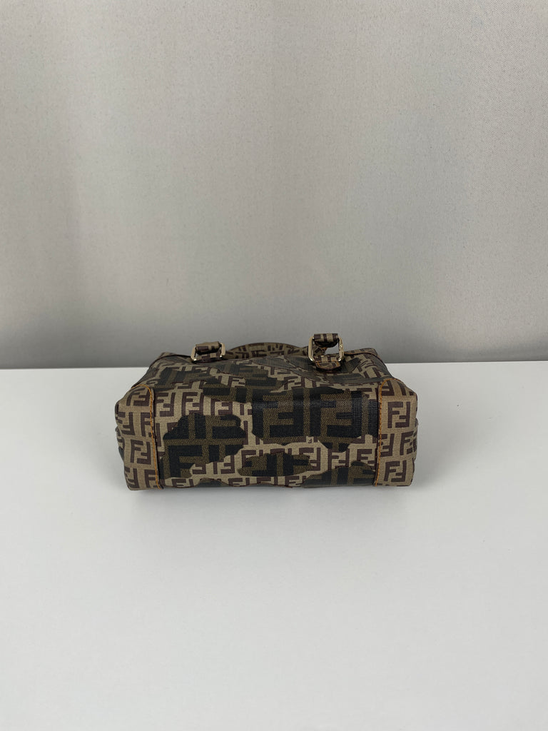 A chic and compact piece, the Fendi Mini Zucchino military showcases the brand’s iconic double-F motif in a subtle military-inspired hue. Crafted in durable canvas with silver-tone hardware, this bag perfectly combines elegance and versatility. Ideal for both day and evening wear, it embodies Fendi’s effortless Italian sophistication in a timeless, collectible design.