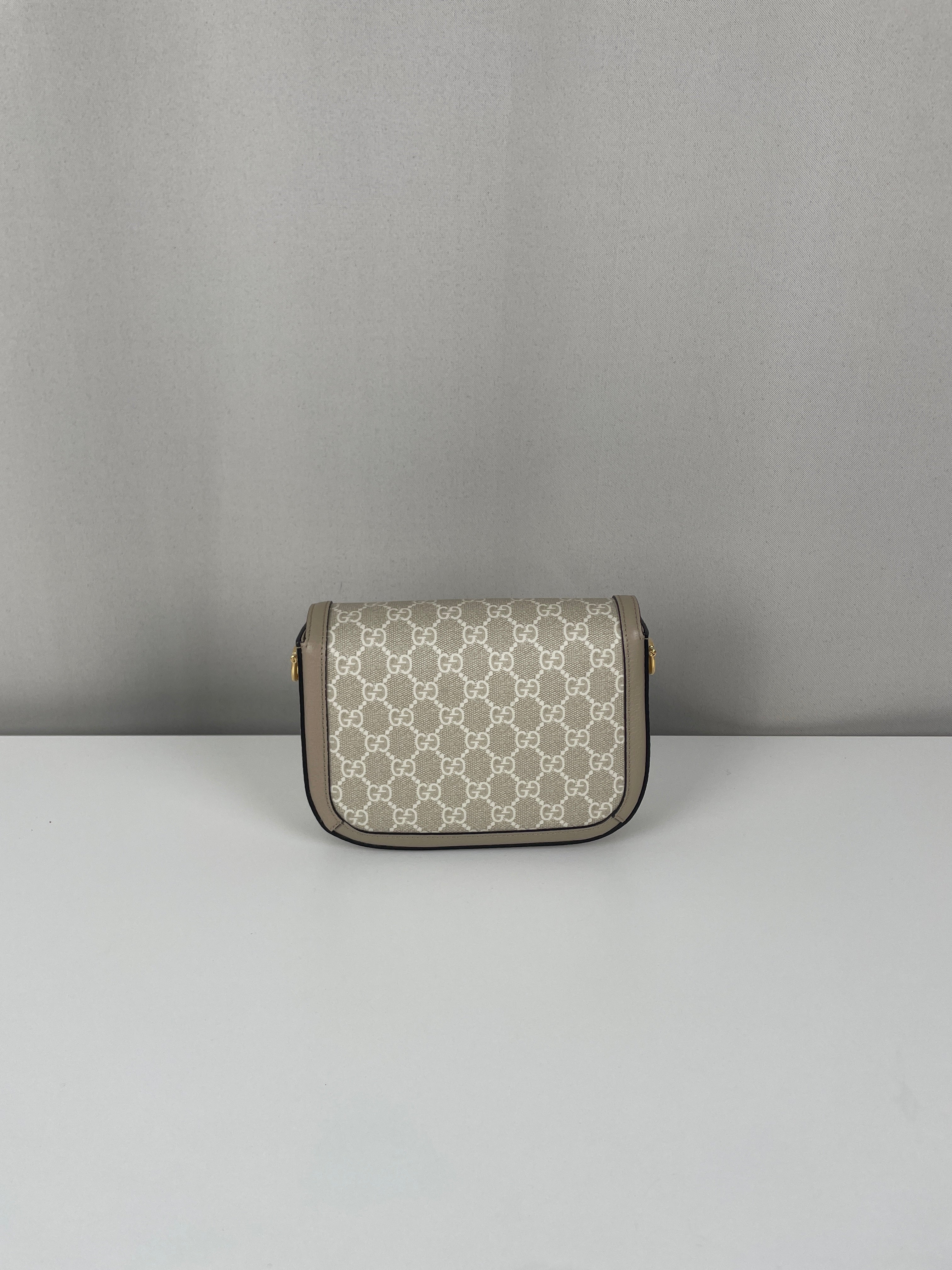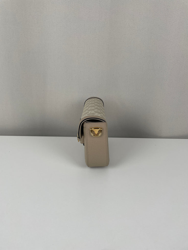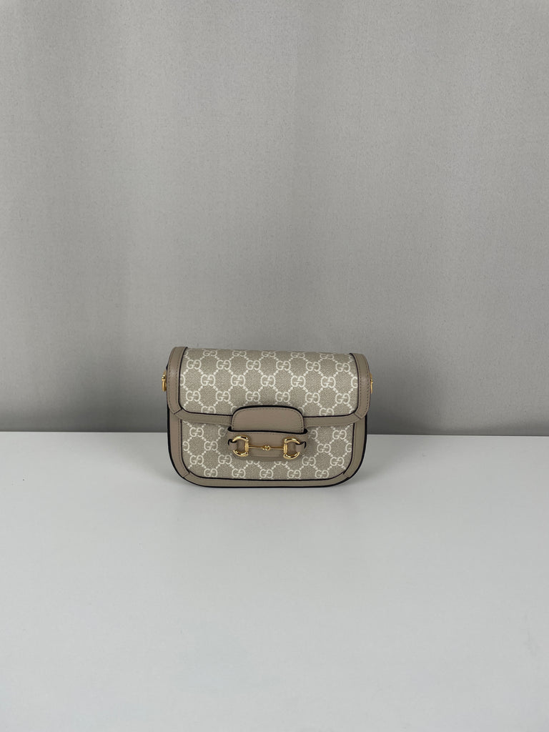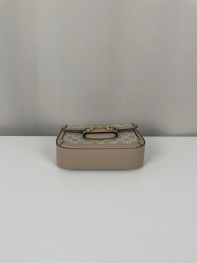 Gucci Horsebit beige canvas and leather handbag gold hardware