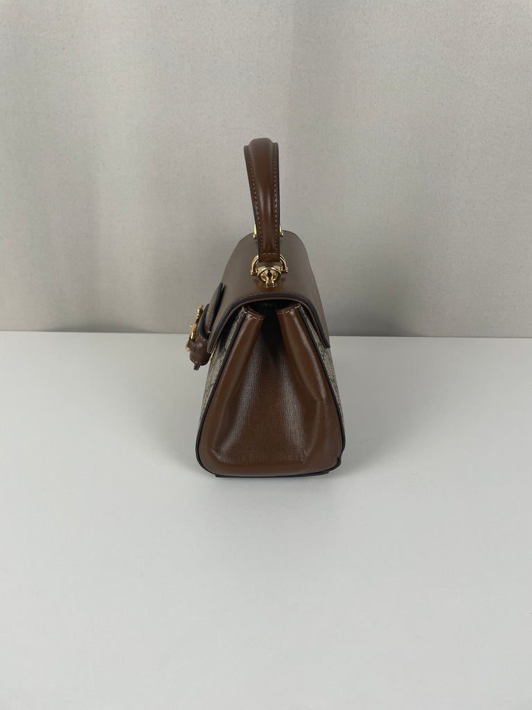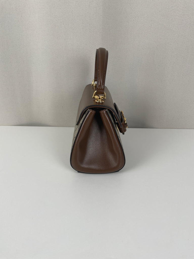 Gucci Horsebit top handle crossbodybag with brown leather and coated canvas