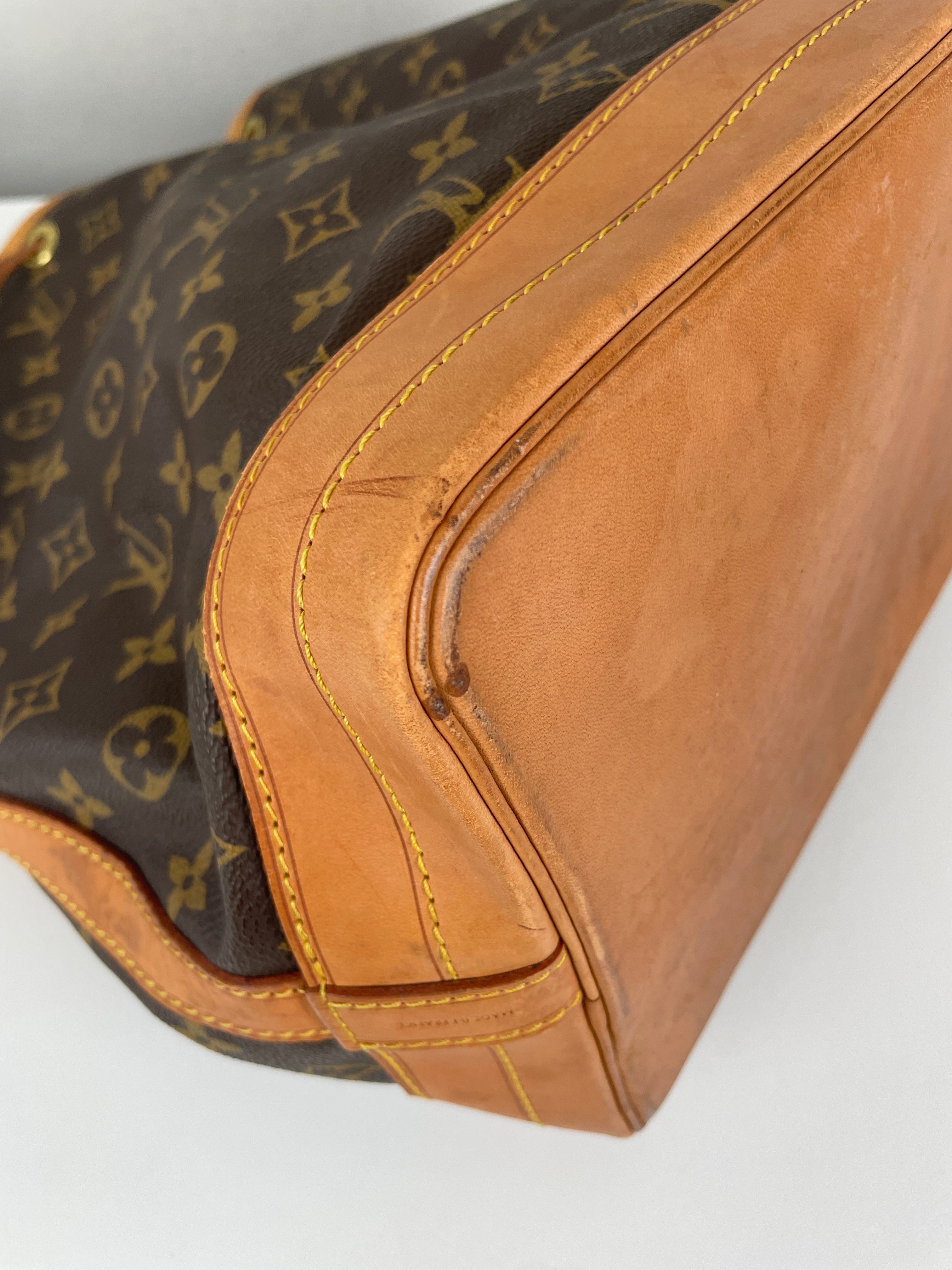 The Louis Vuitton Noe PM represents one of the House's most distinctive and historically significant silhouettes, originally designed in 1932 as a champagne carrier and reimagined as a sophisticated bucket bag. This piece from 2007 showcases 17 years of authentic use and the natural patina development that collectors treasure in Louis Vuitton pieces. The iconic Monogram canvas has maintained its structural integrity beautifully, while the natural cowhide leather has evolved with character over time. The bucket shape with its cinched drawstring closure offers both security and timeless style, maintaining elegant proportions that have made the Noe a beloved classic. This piece embodies Louis Vuitton's heritage of transforming practical designs into luxury fashion statements, representing nearly two decades of faithful service and enduring appeal.