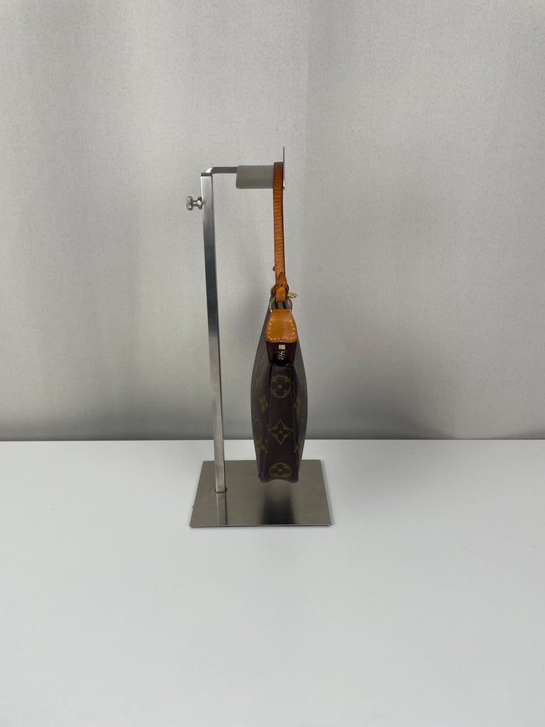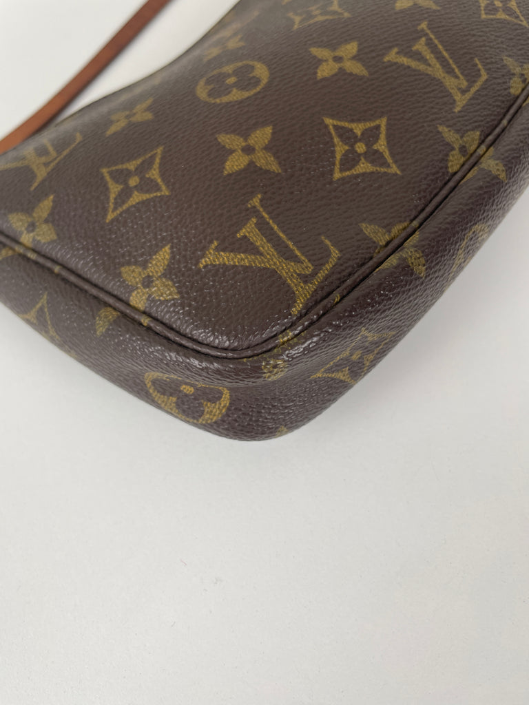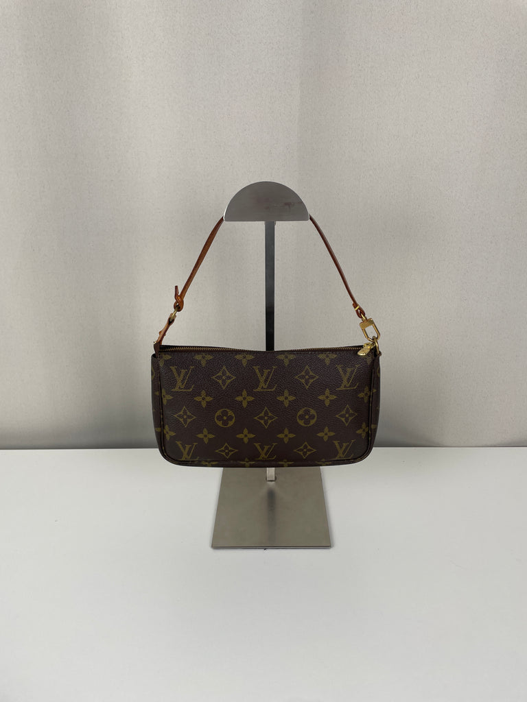 Hardware: Good condition, gold-tone hardware shows slight tarnishing