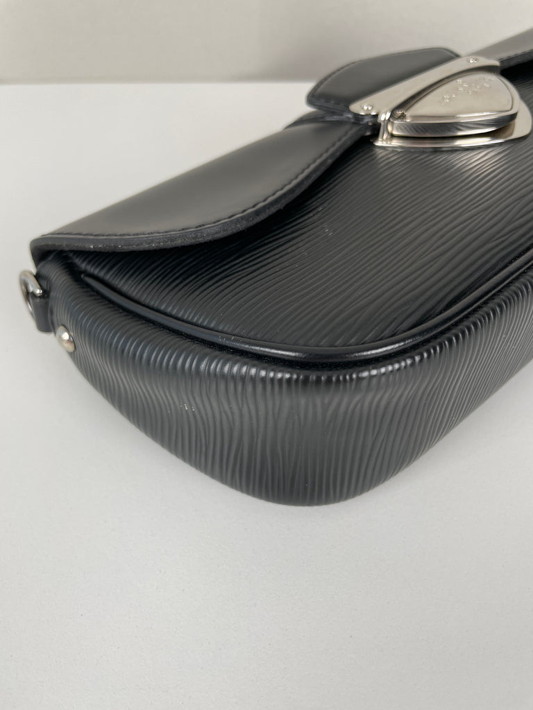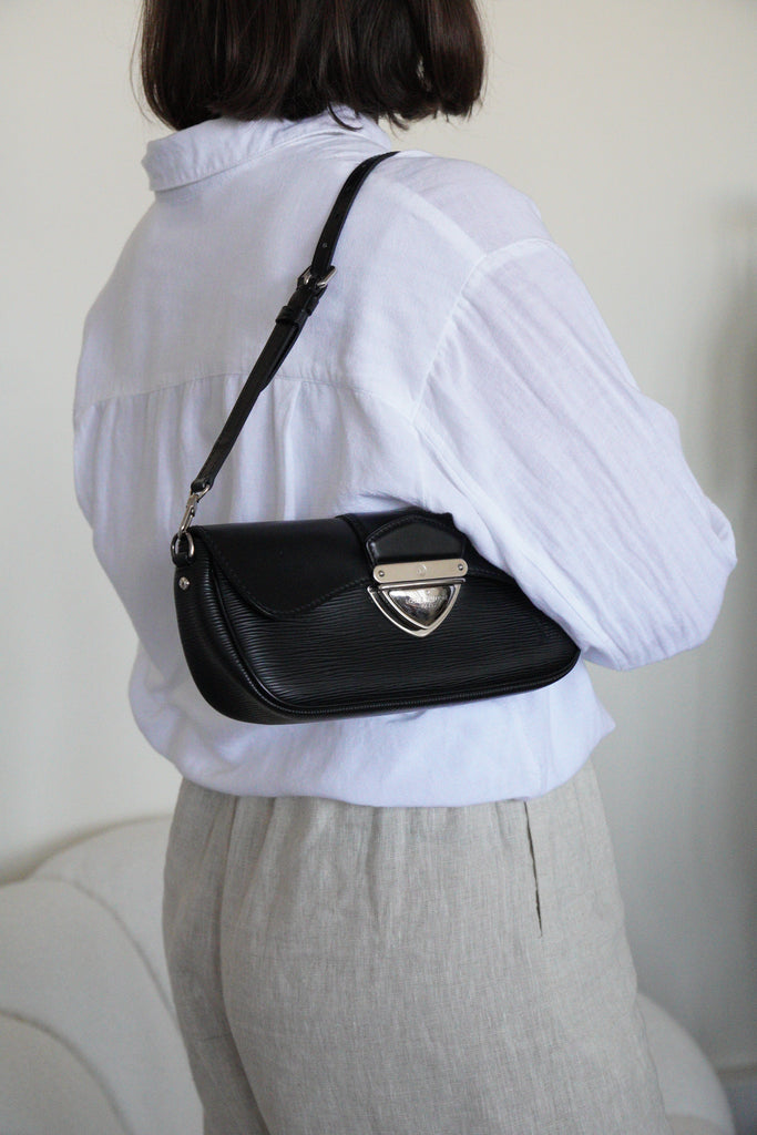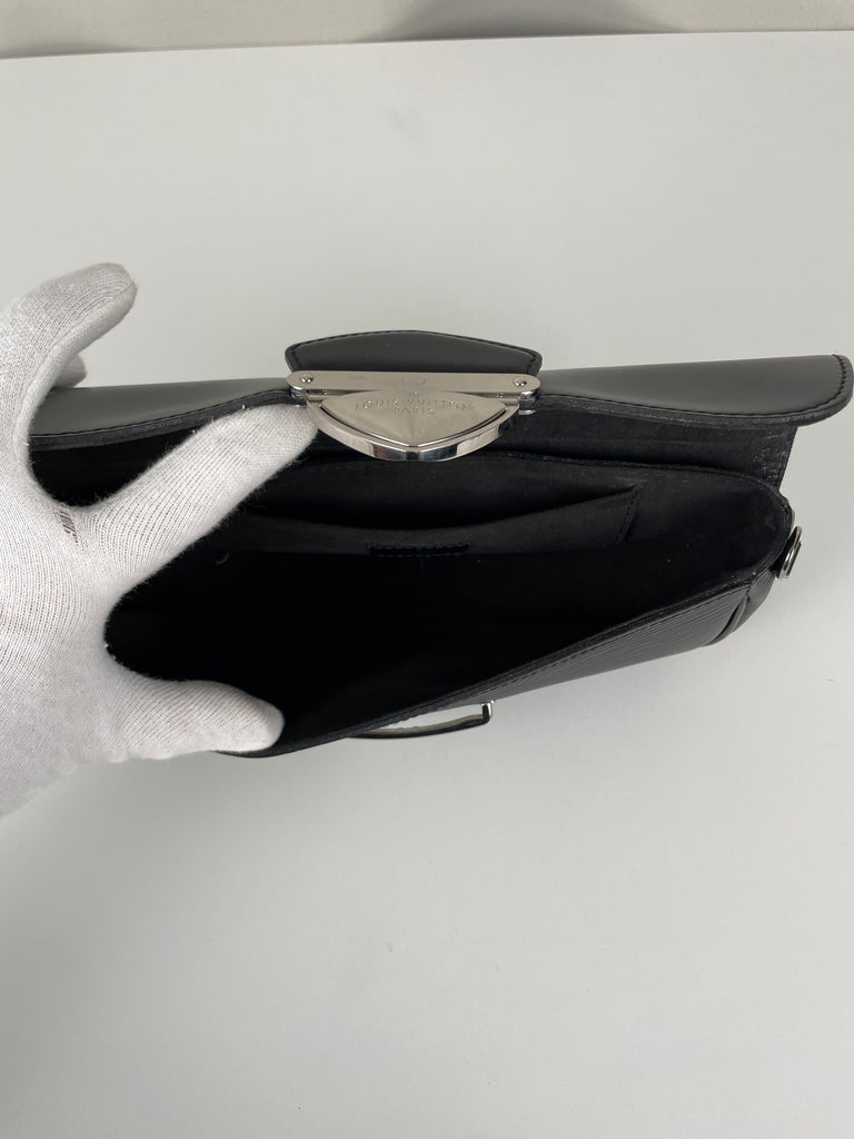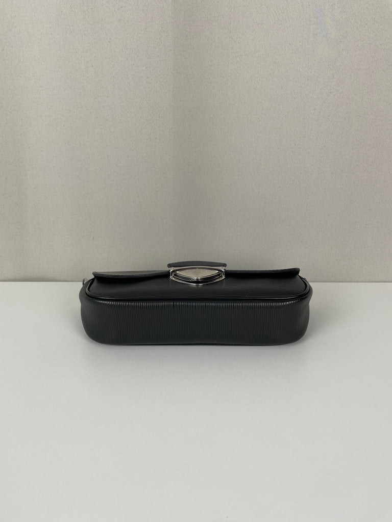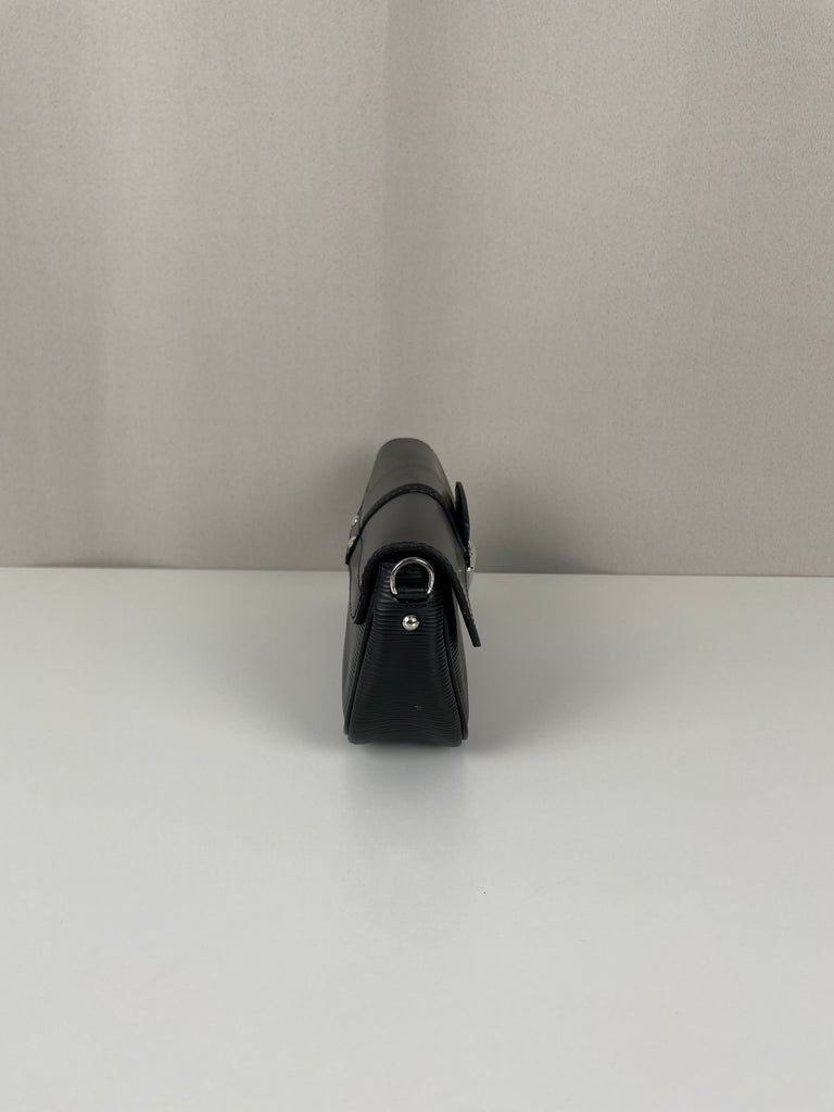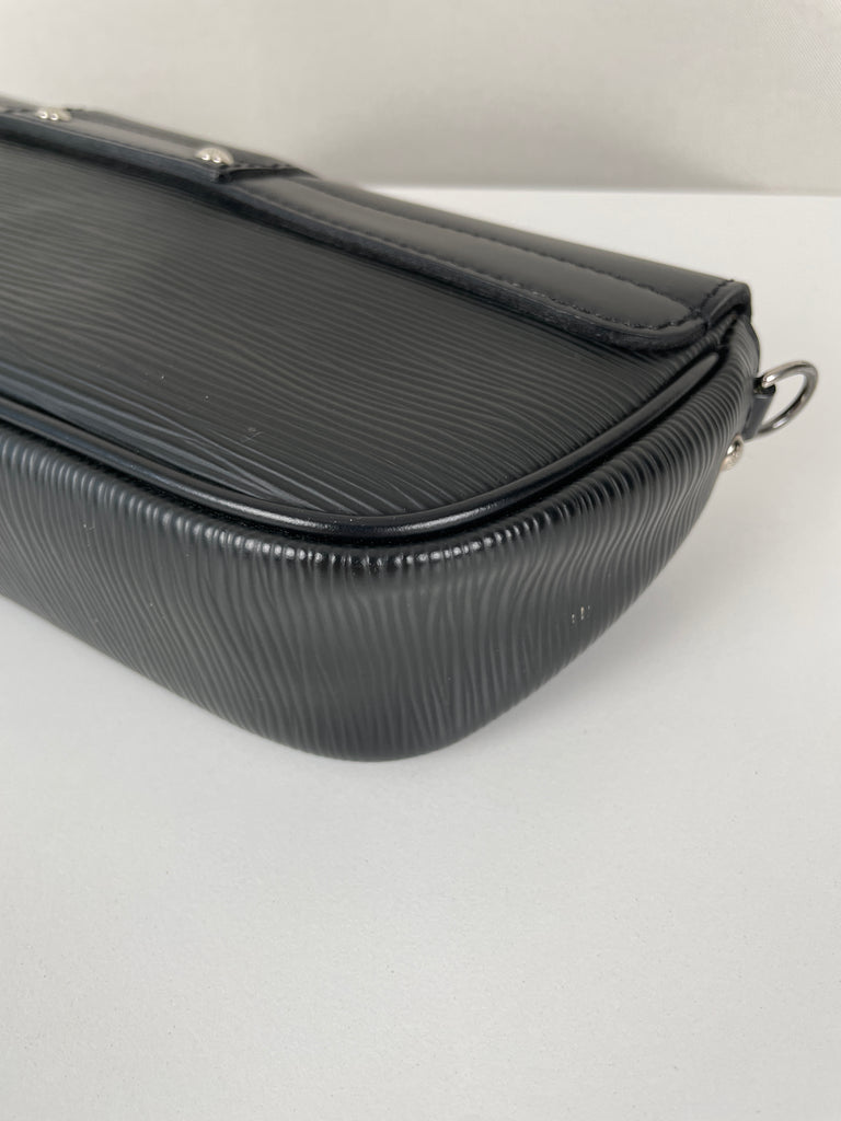 The Louis Vuitton Pochette Montaigne in Epi leather embodies the House's mastery of understated elegance and versatile sophistication. Named after the prestigious Parisian avenue, this refined clutch showcases the distinctive textured grain that defines Epi leather, offering both durability and luxurious appeal. The sleek black colorway paired with silver-tone hardware creates a timeless aesthetic perfect for day-to-evening transitions. This 2008 piece represents the pochette's evolution into a modern essential, combining Louis Vuitton's heritage craftsmanship with contemporary style sensibilities.
