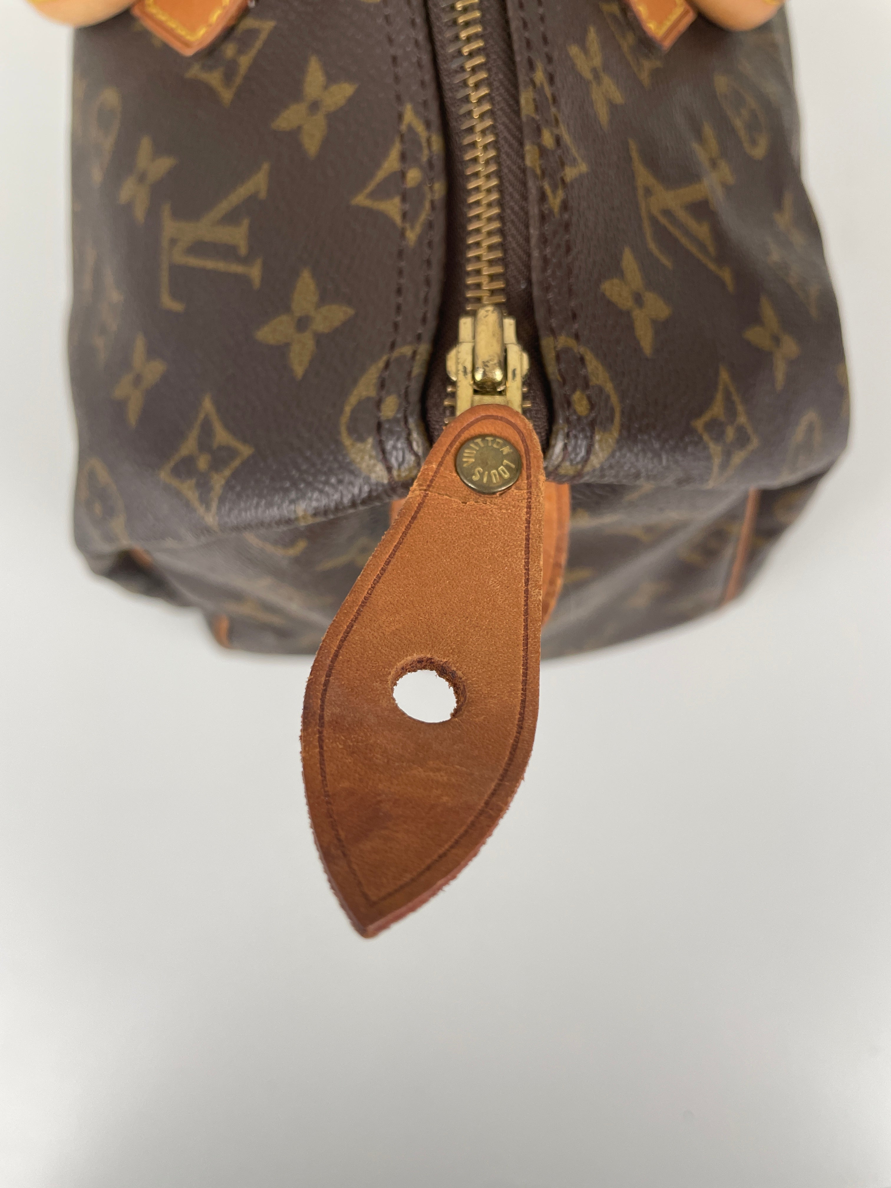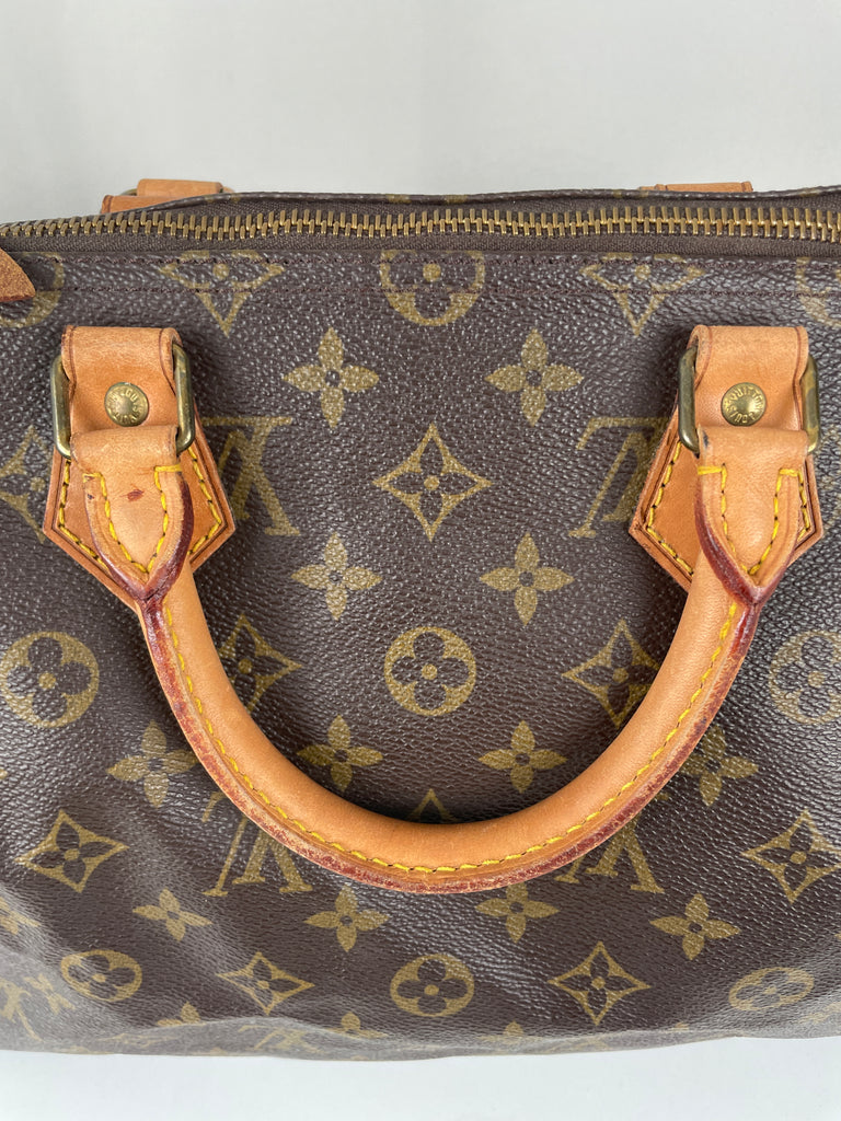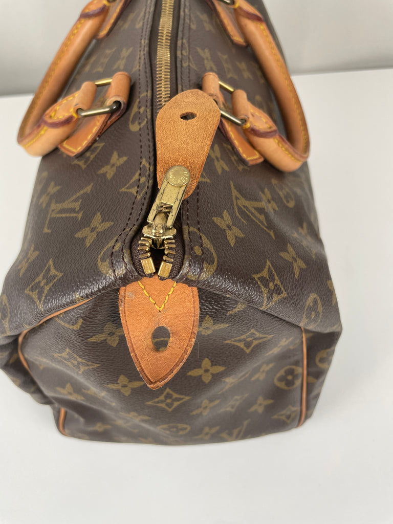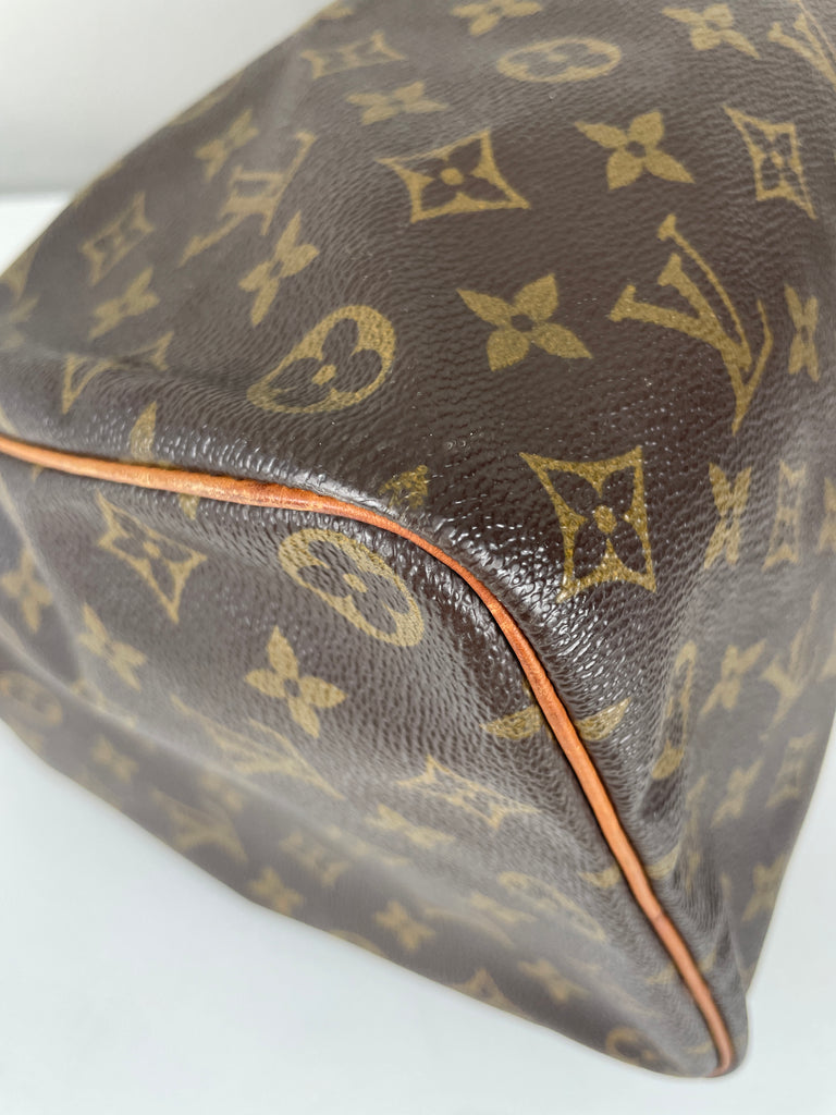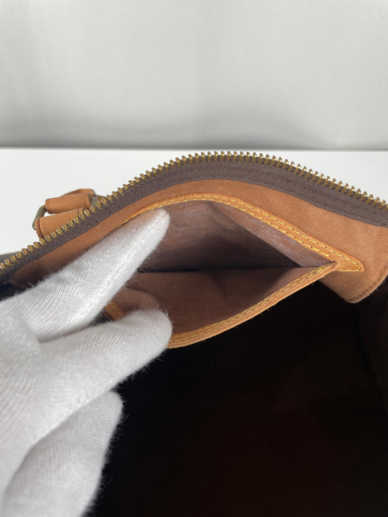 • Hardware: Good condition, gold-tone hardware shows slight tarnishing