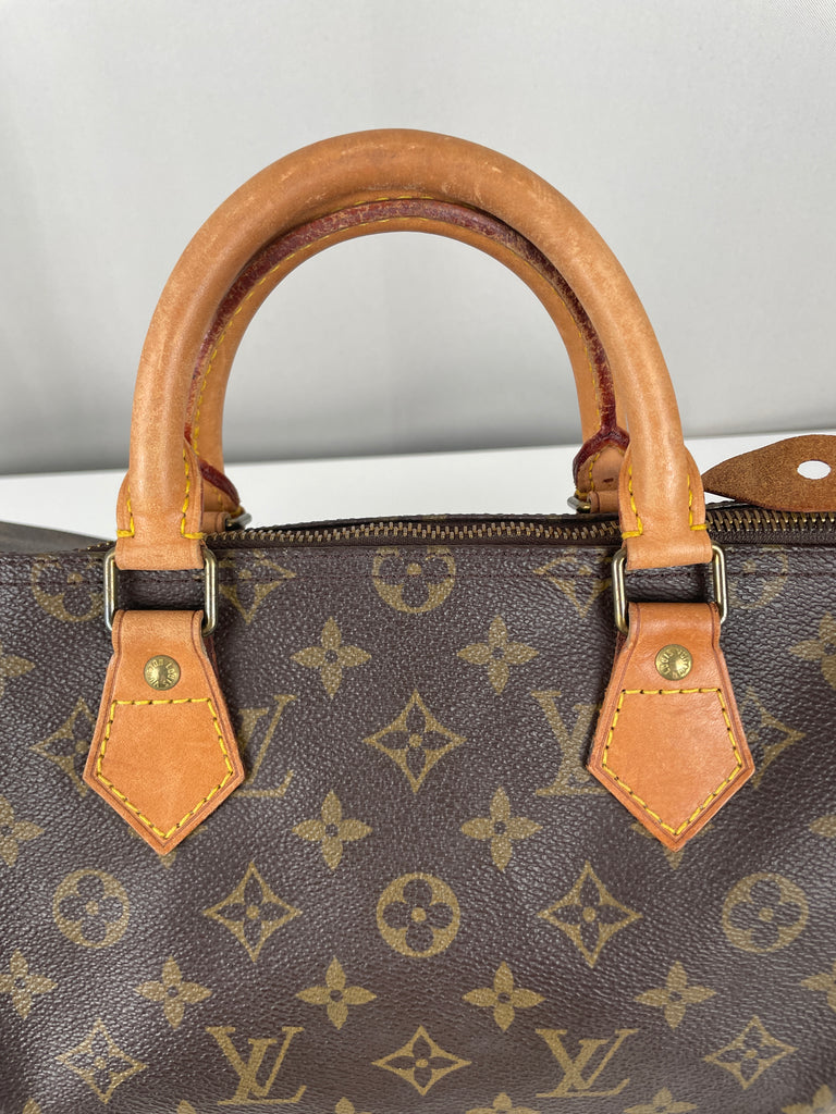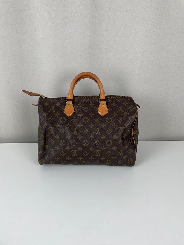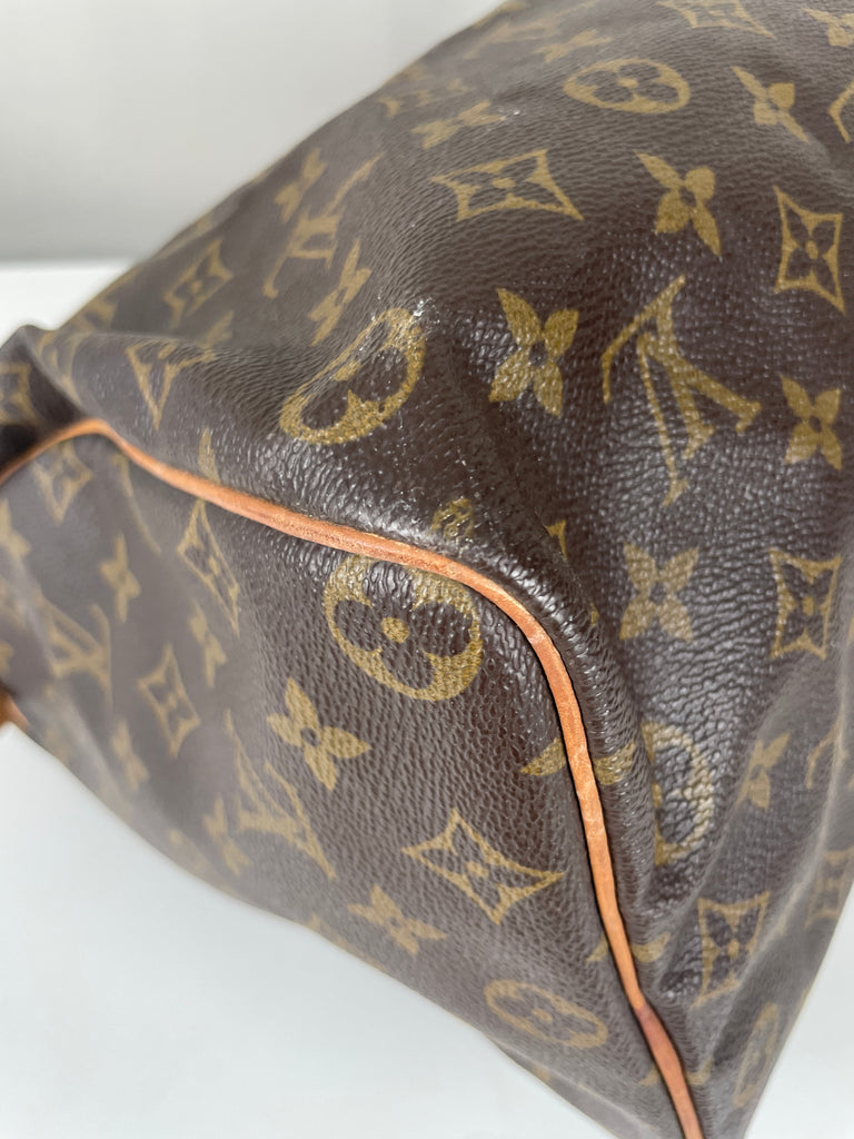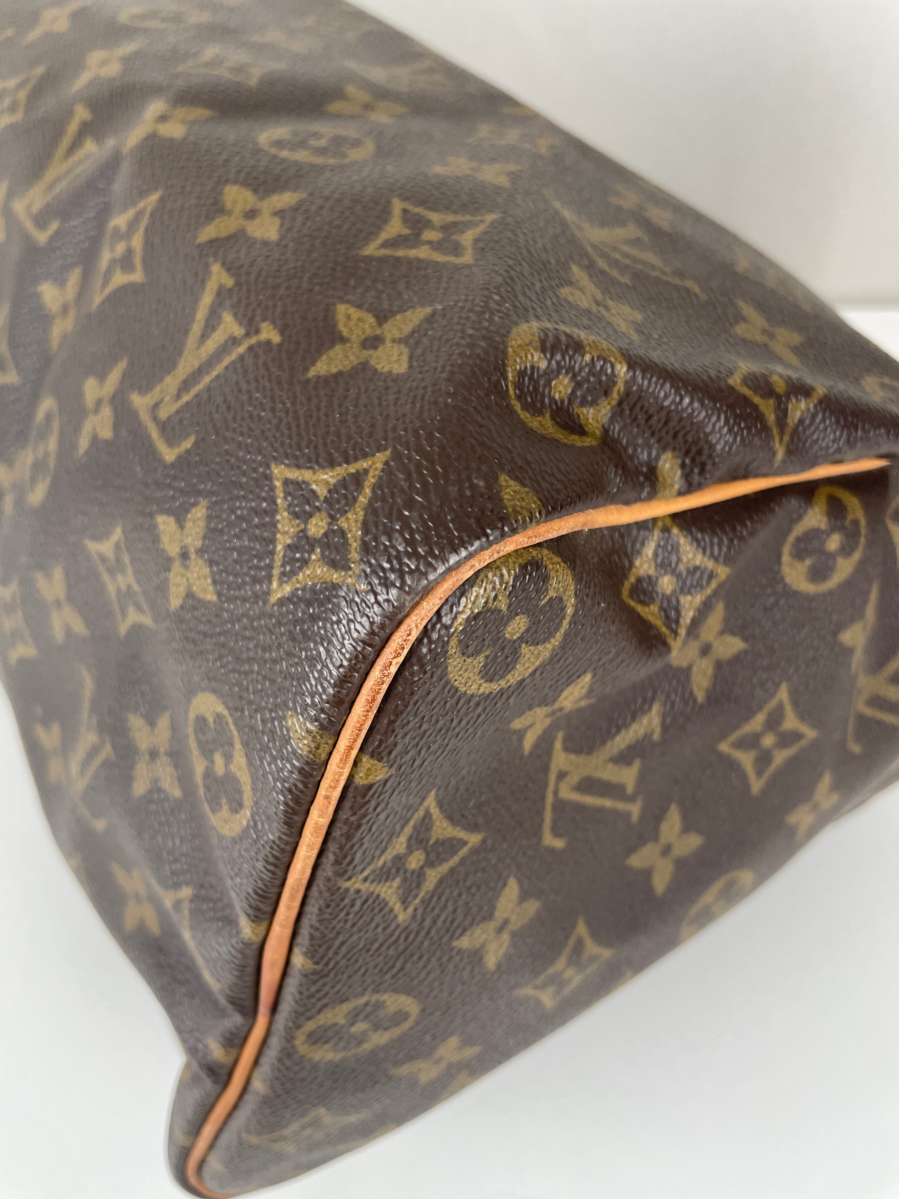 • Hardware: Good condition, gold-tone hardware shows slight tarnishing