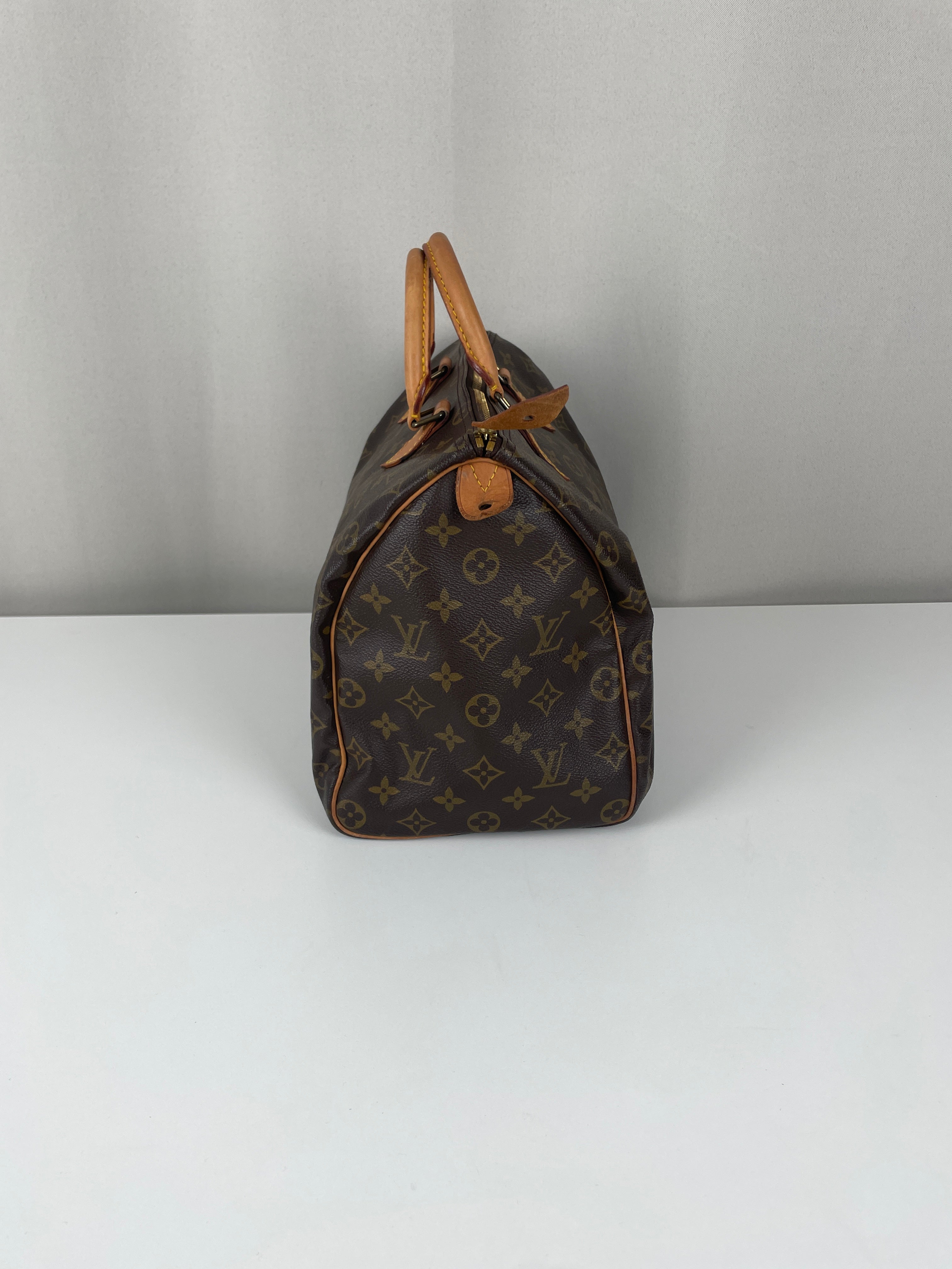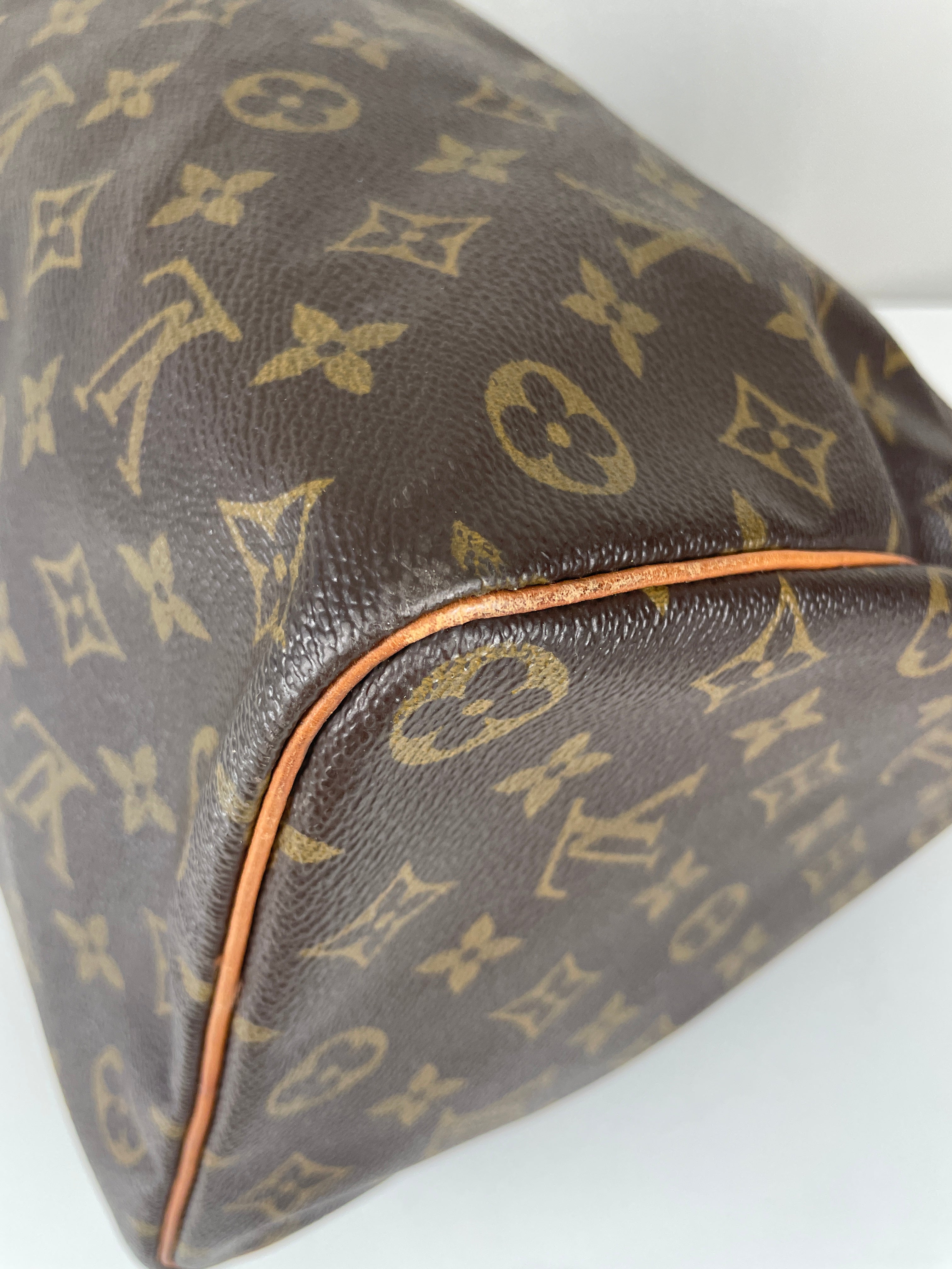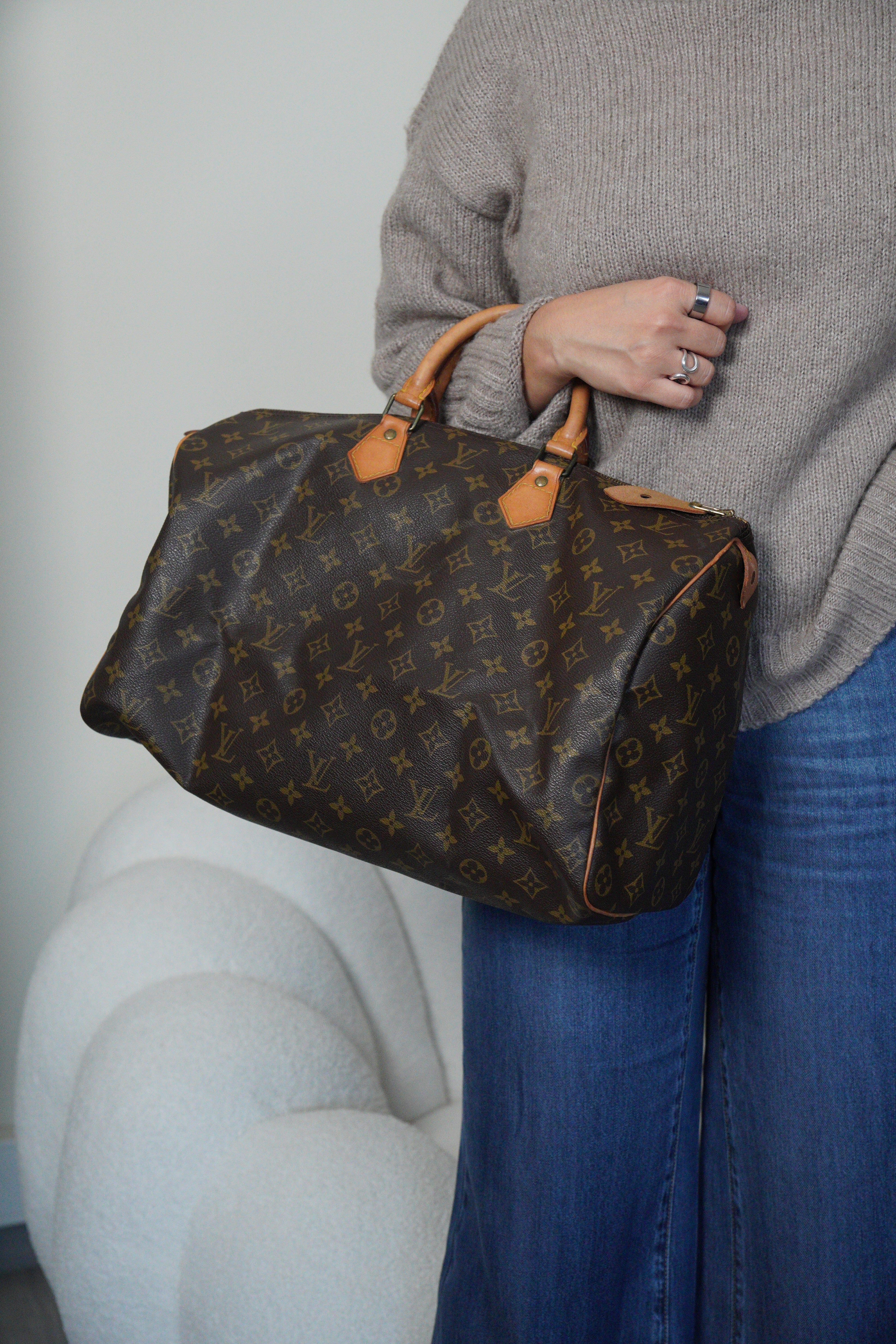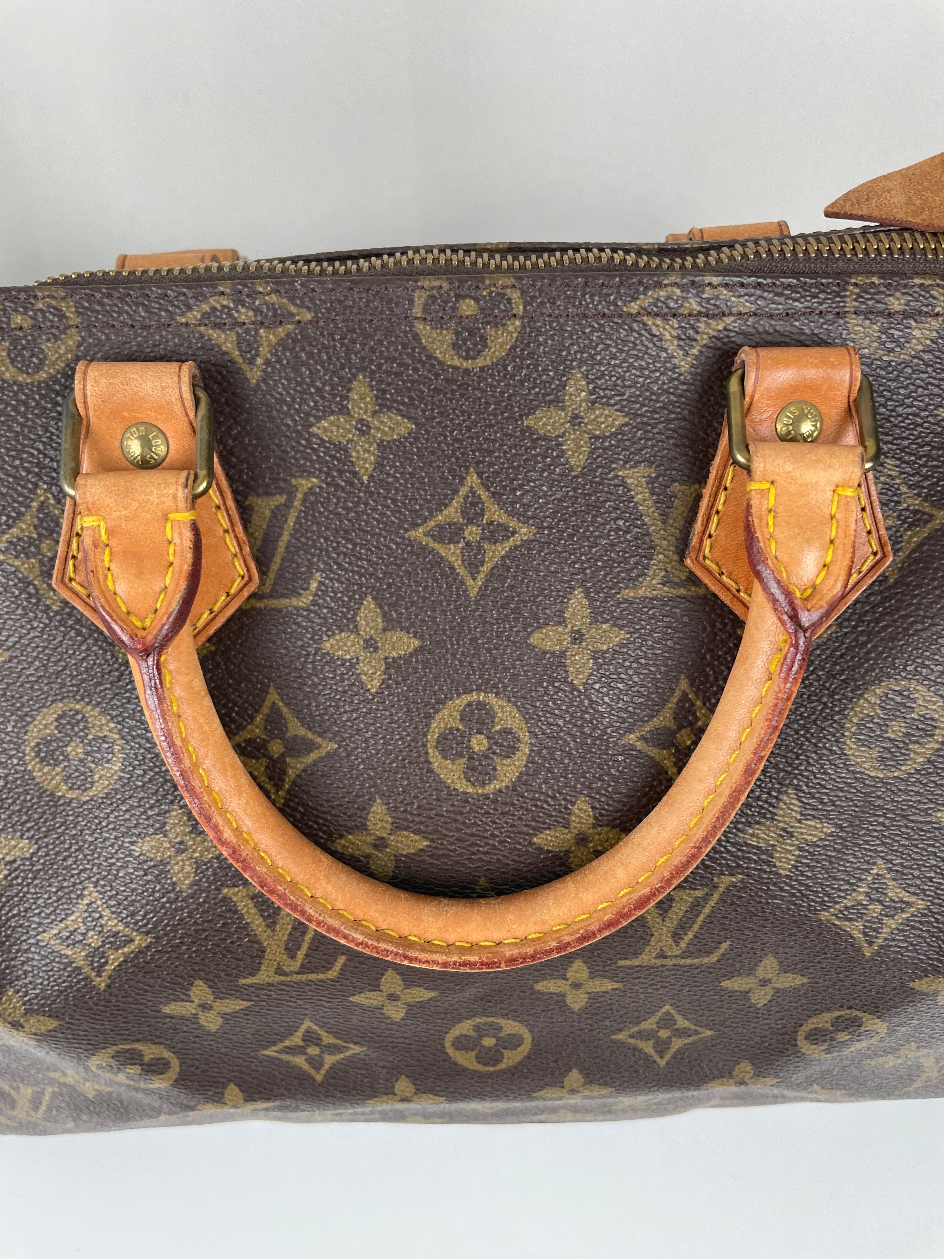 • Hardware: Good condition, gold-tone hardware shows slight tarnishing