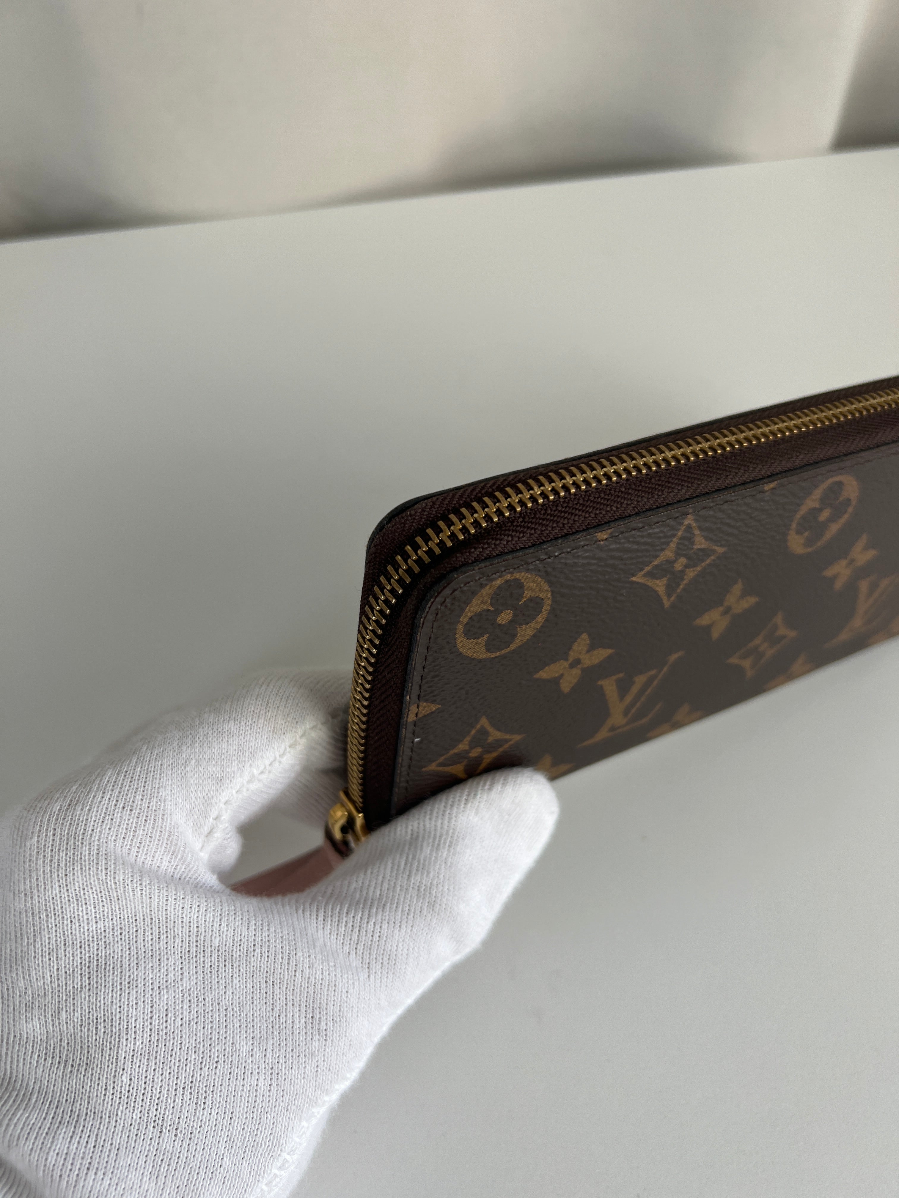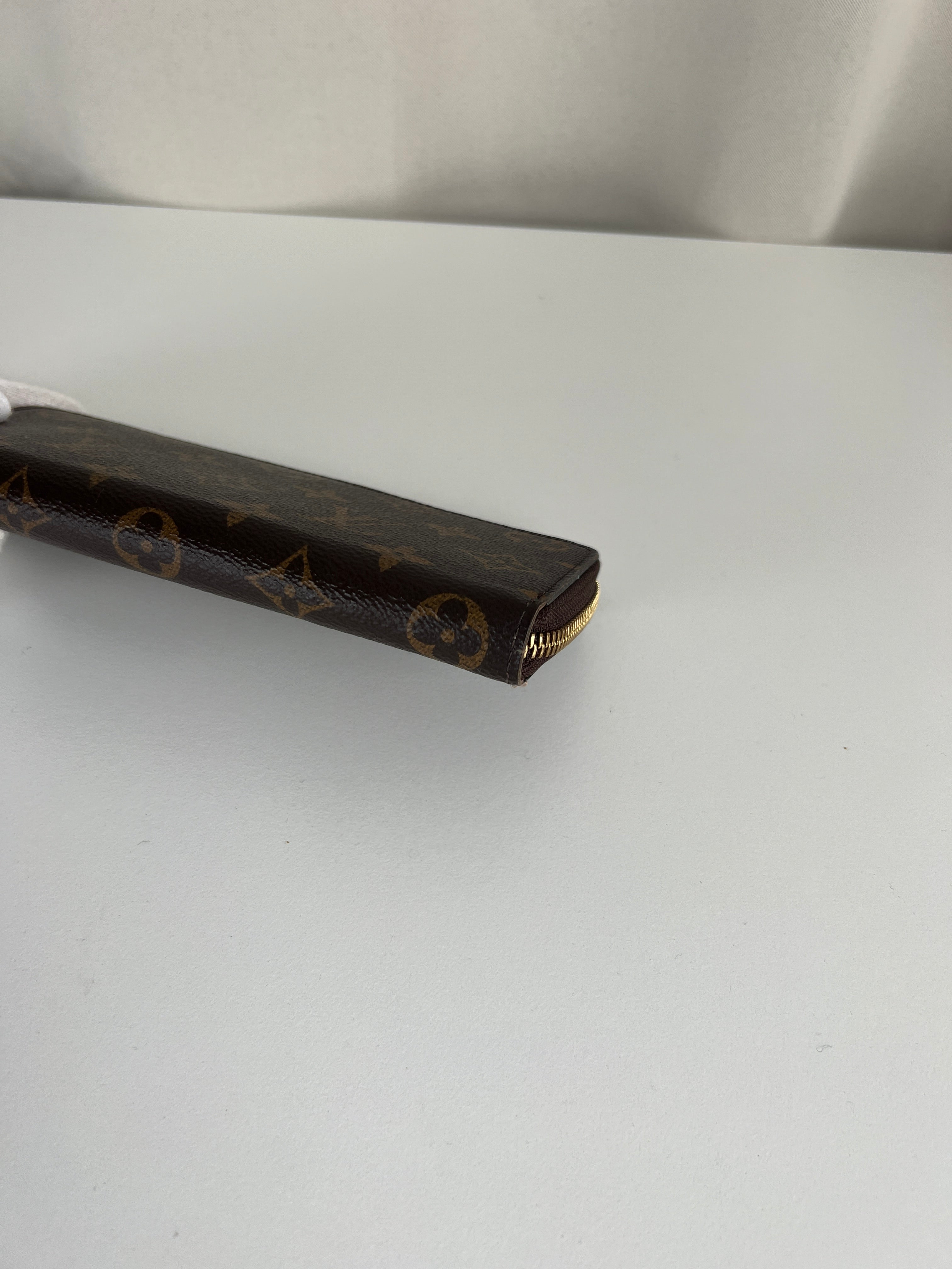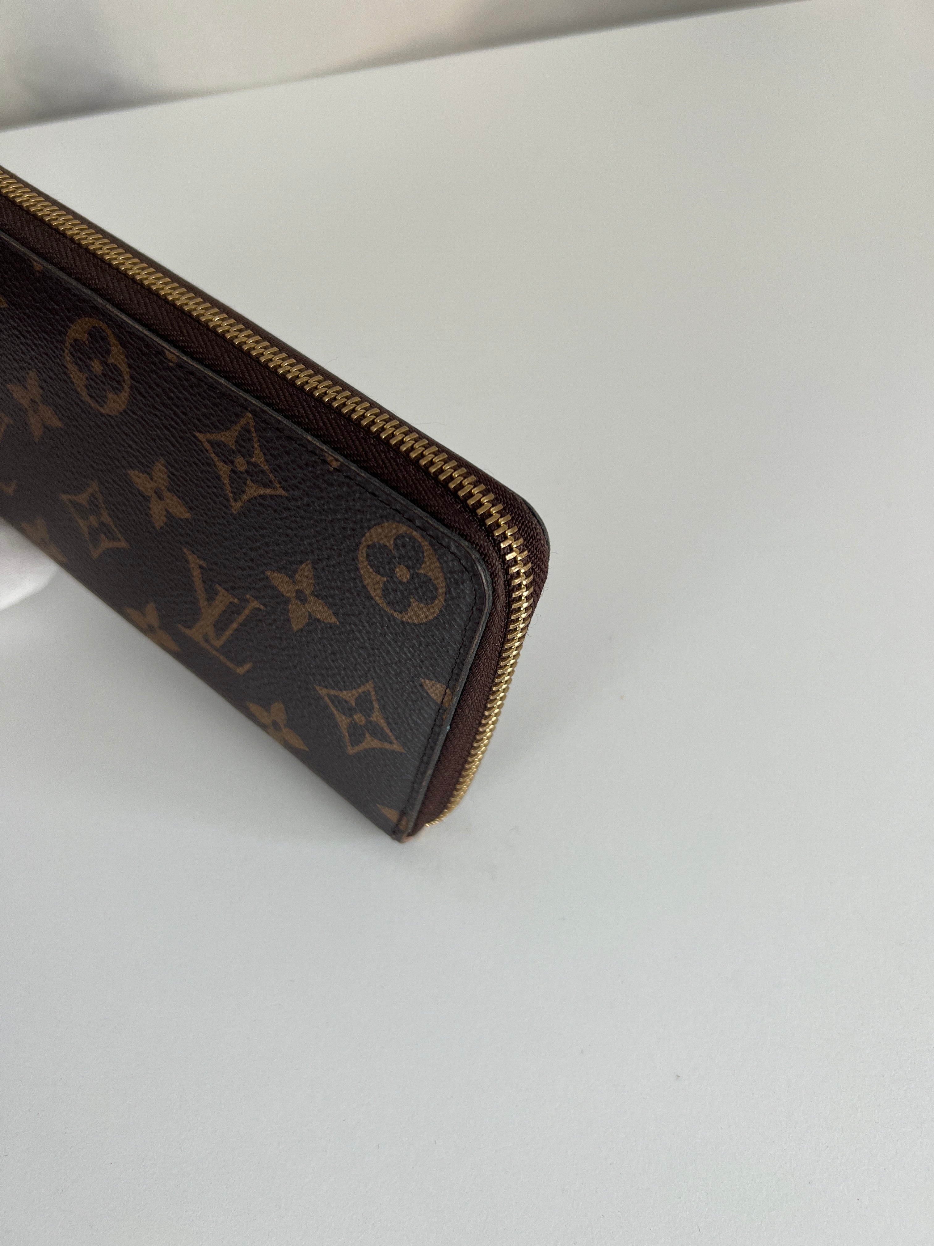 This Louis Vuitton Clemence Wallet Monogram is in very good condition. The canva is in very good condition. The leather part of the zipper starts to be a little bit damaged but it's quite normal use. The interior is in very good condition. The corners are in very good condition. Hardware are a little bit used. Very good condition for this wallet, not used much.