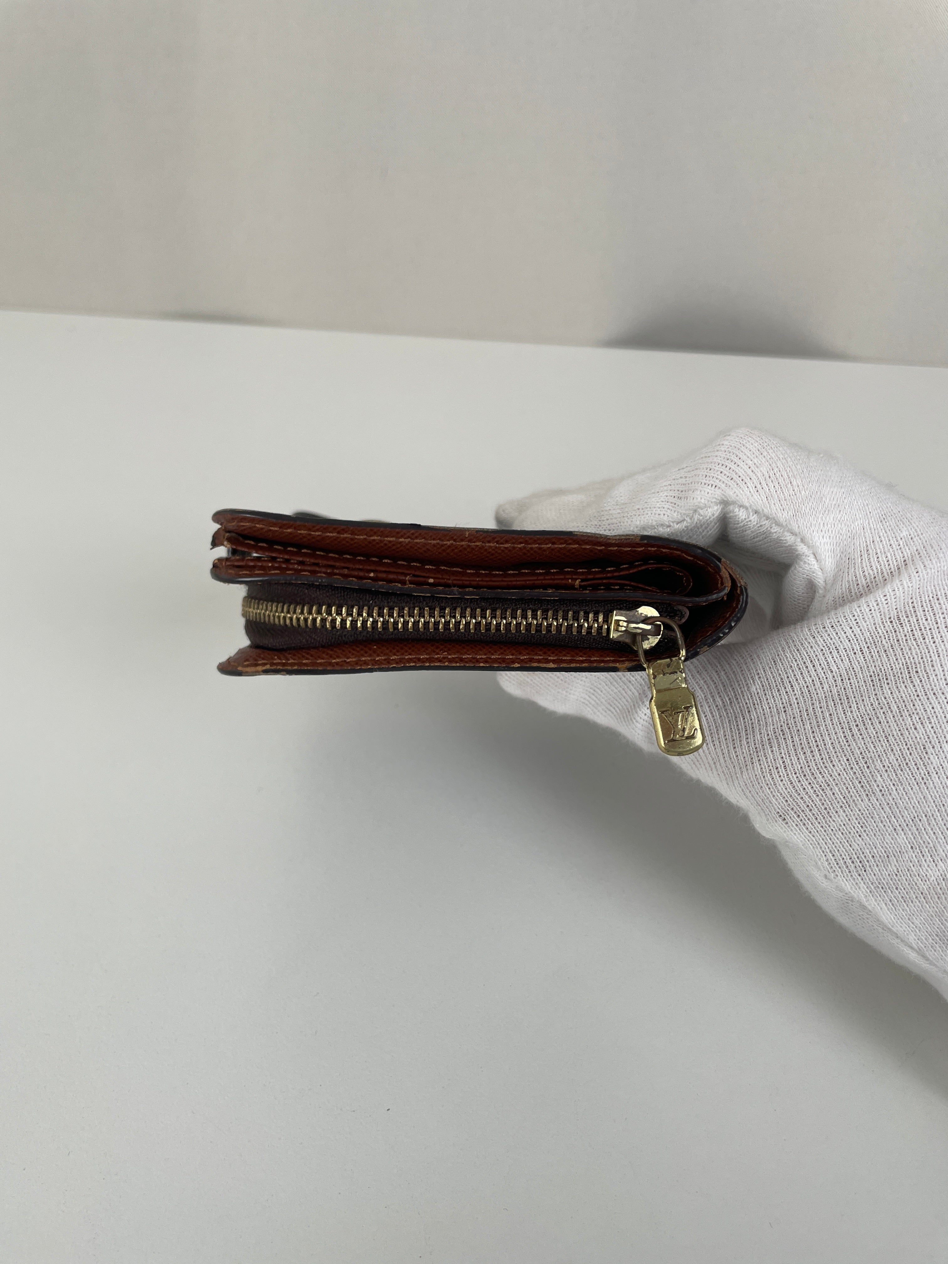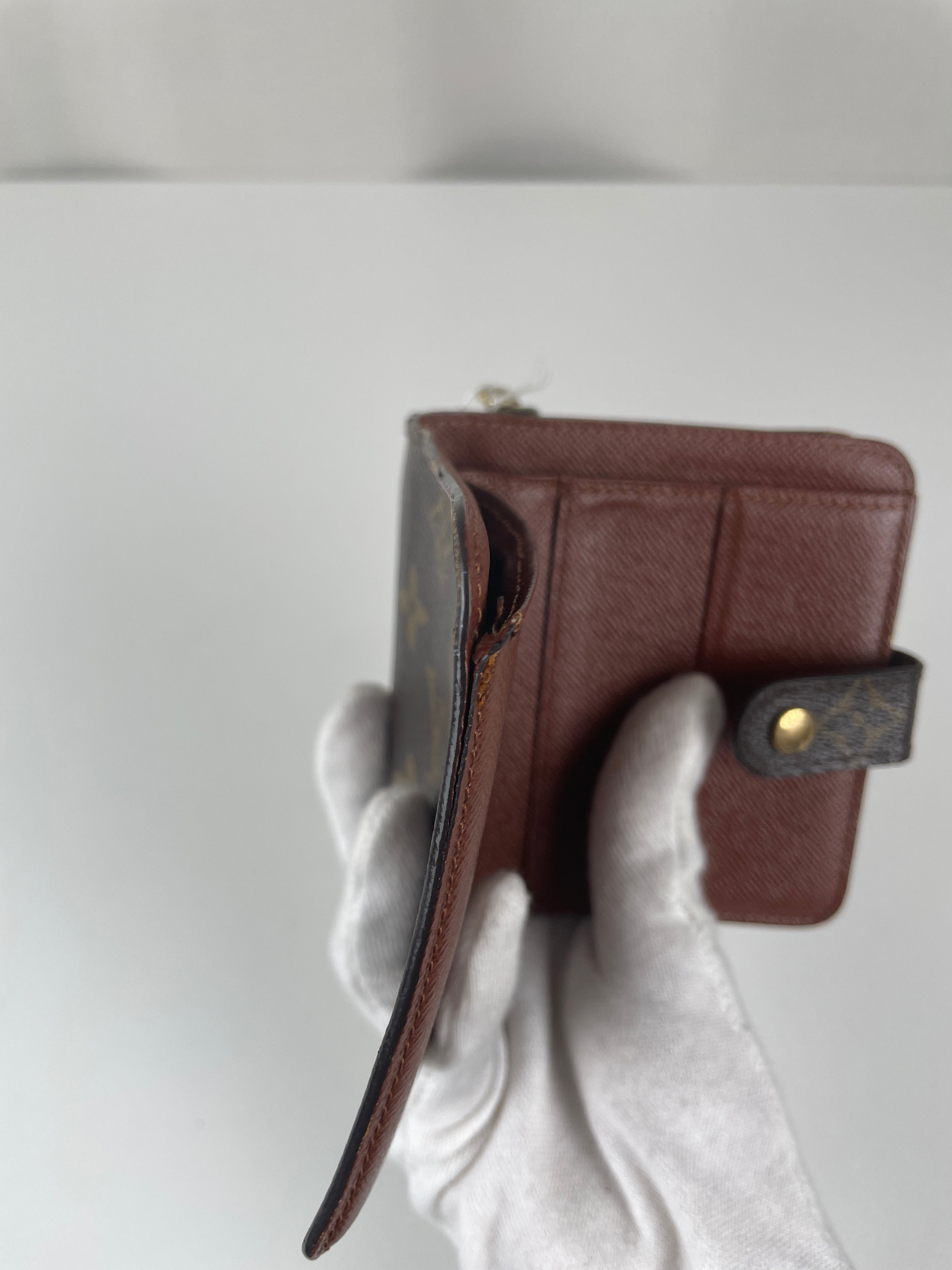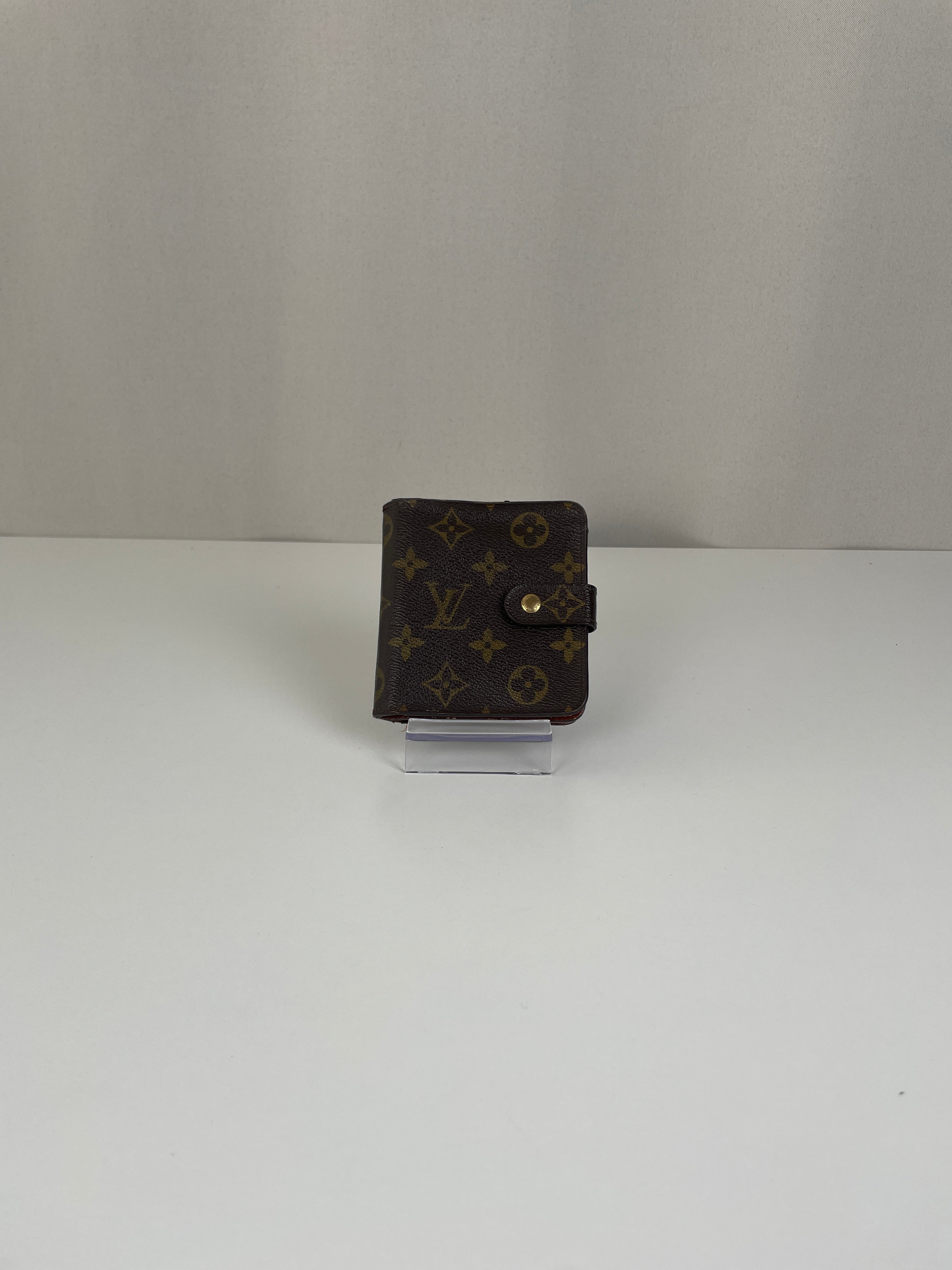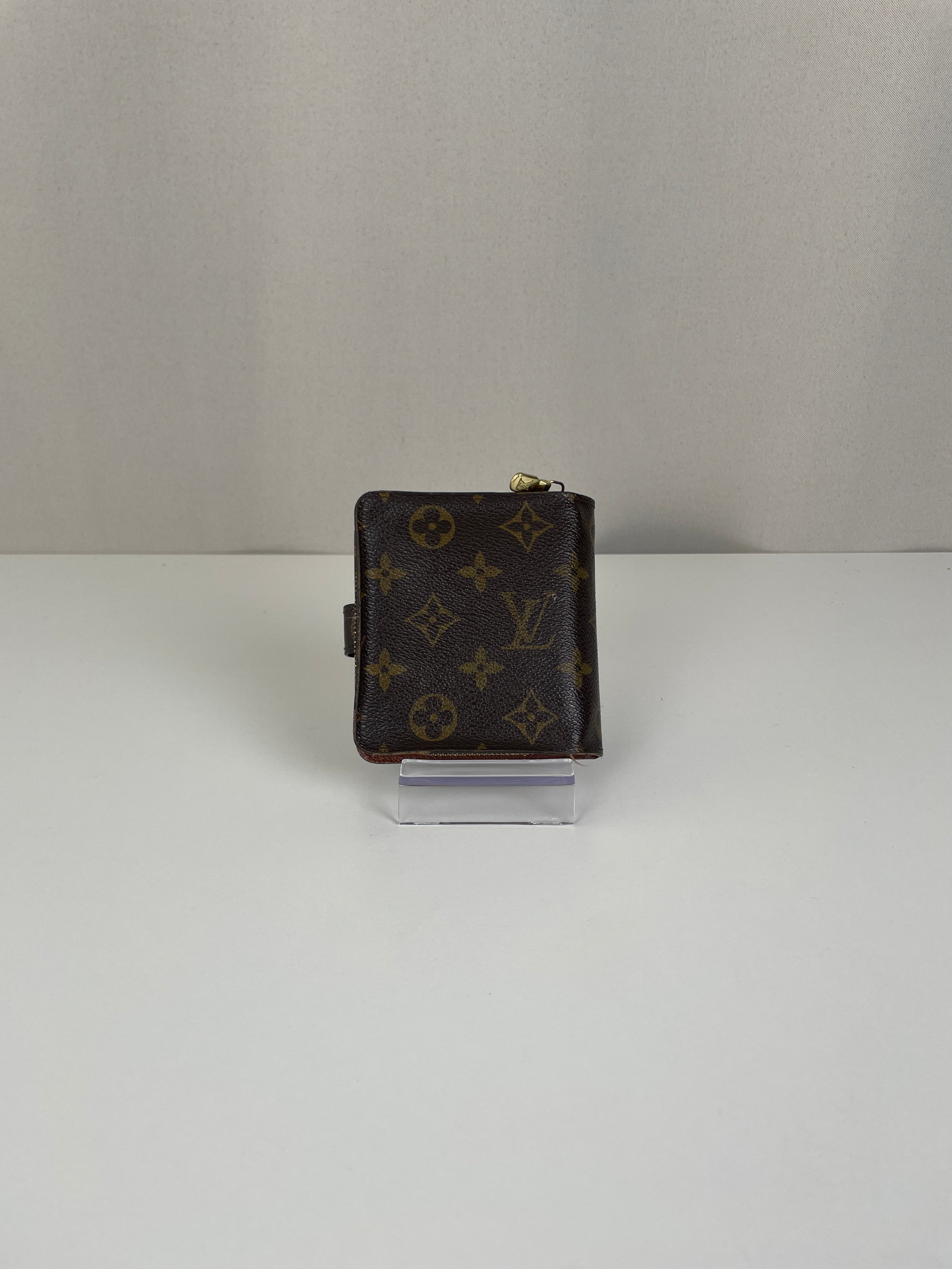 This Louis Vuitton Compact Zip Wallet in Monogram canvas is both practical and timeless. With its compact square shape, snap button closure, and classic gold hardware, it fits easily in small bags while offering enough room for coins, cards, and notes. A vintage essential for anyone who loves iconic LV pieces.