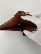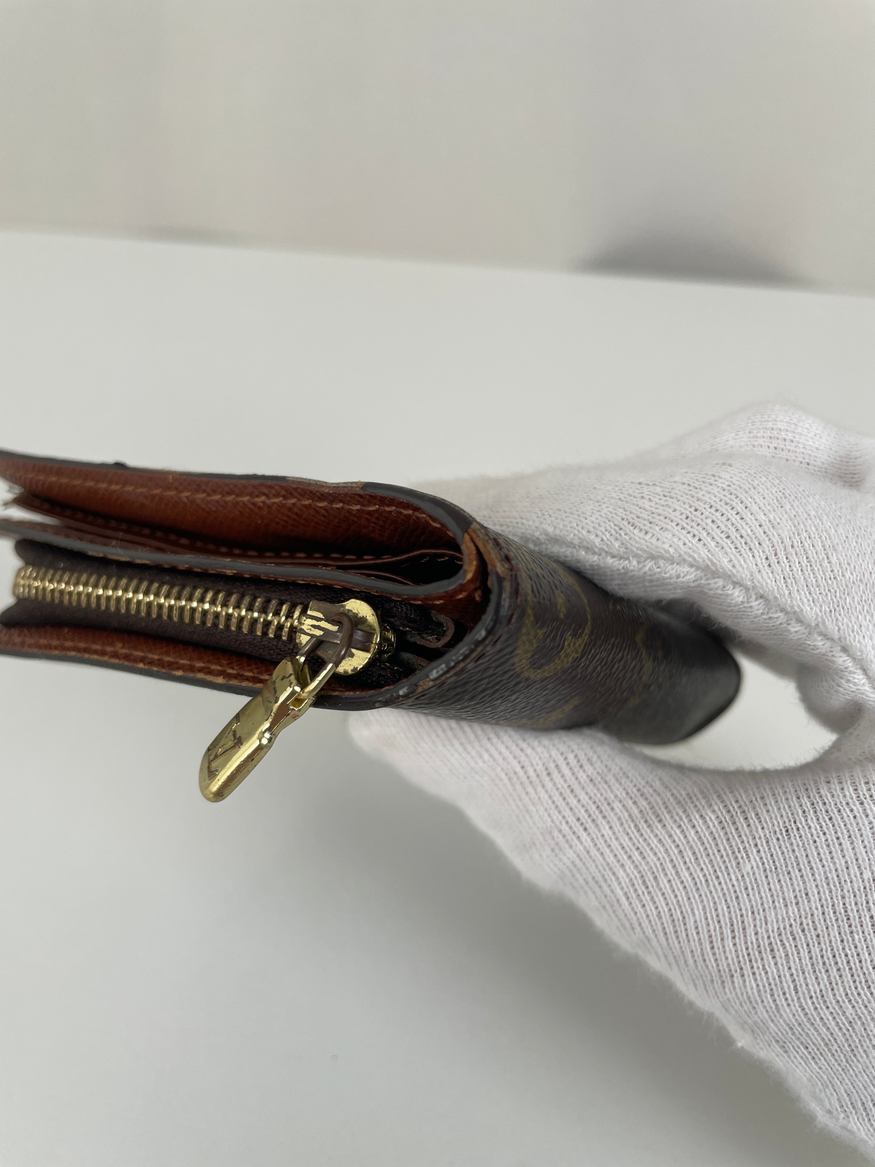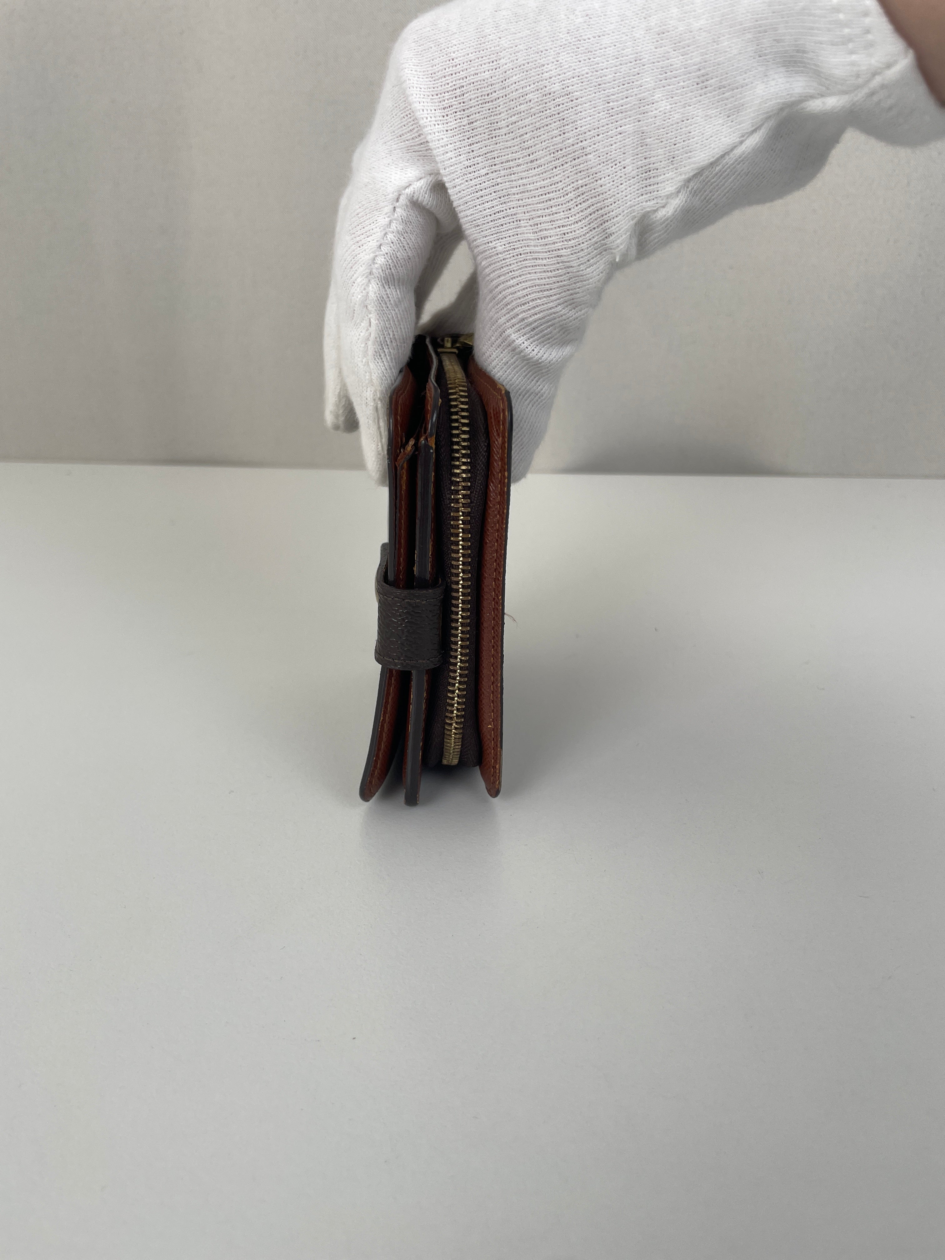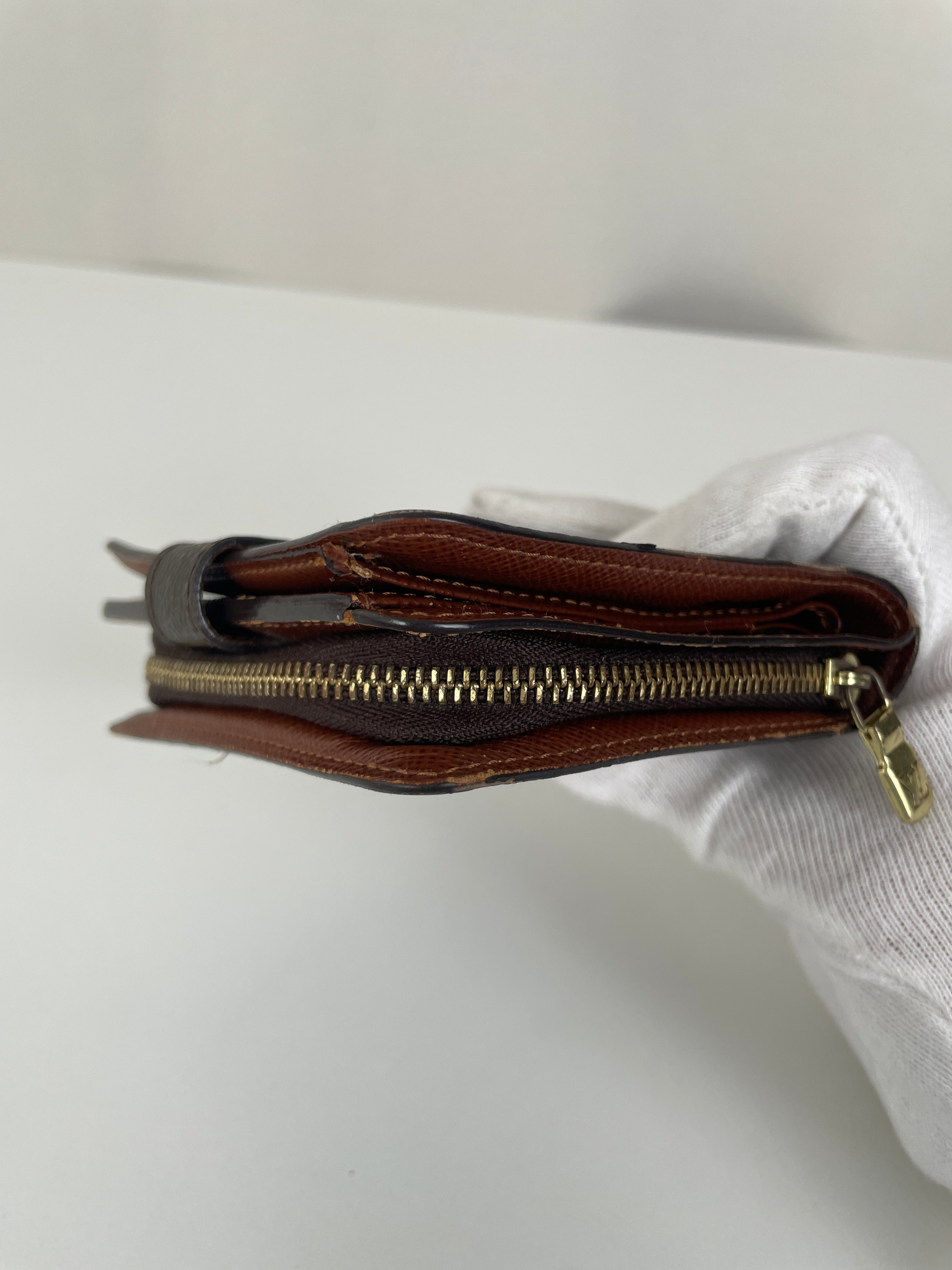 This Louis Vuitton Compact Zip Wallet in Monogram canvas is both practical and timeless. With its compact square shape, snap button closure, and classic gold hardware, it fits easily in small bags while offering enough room for coins, cards, and notes. A vintage essential for anyone who loves iconic LV pieces.