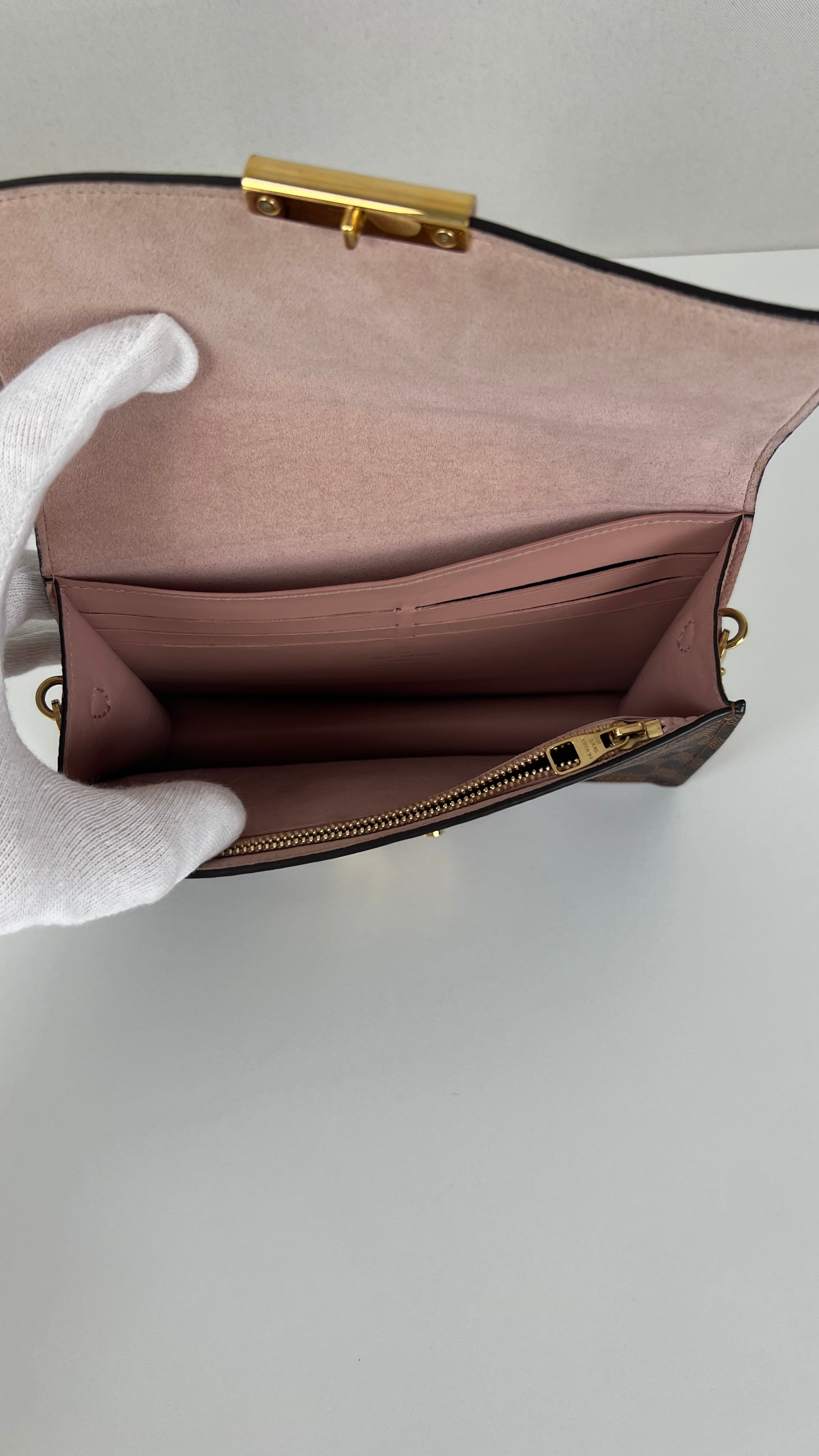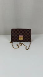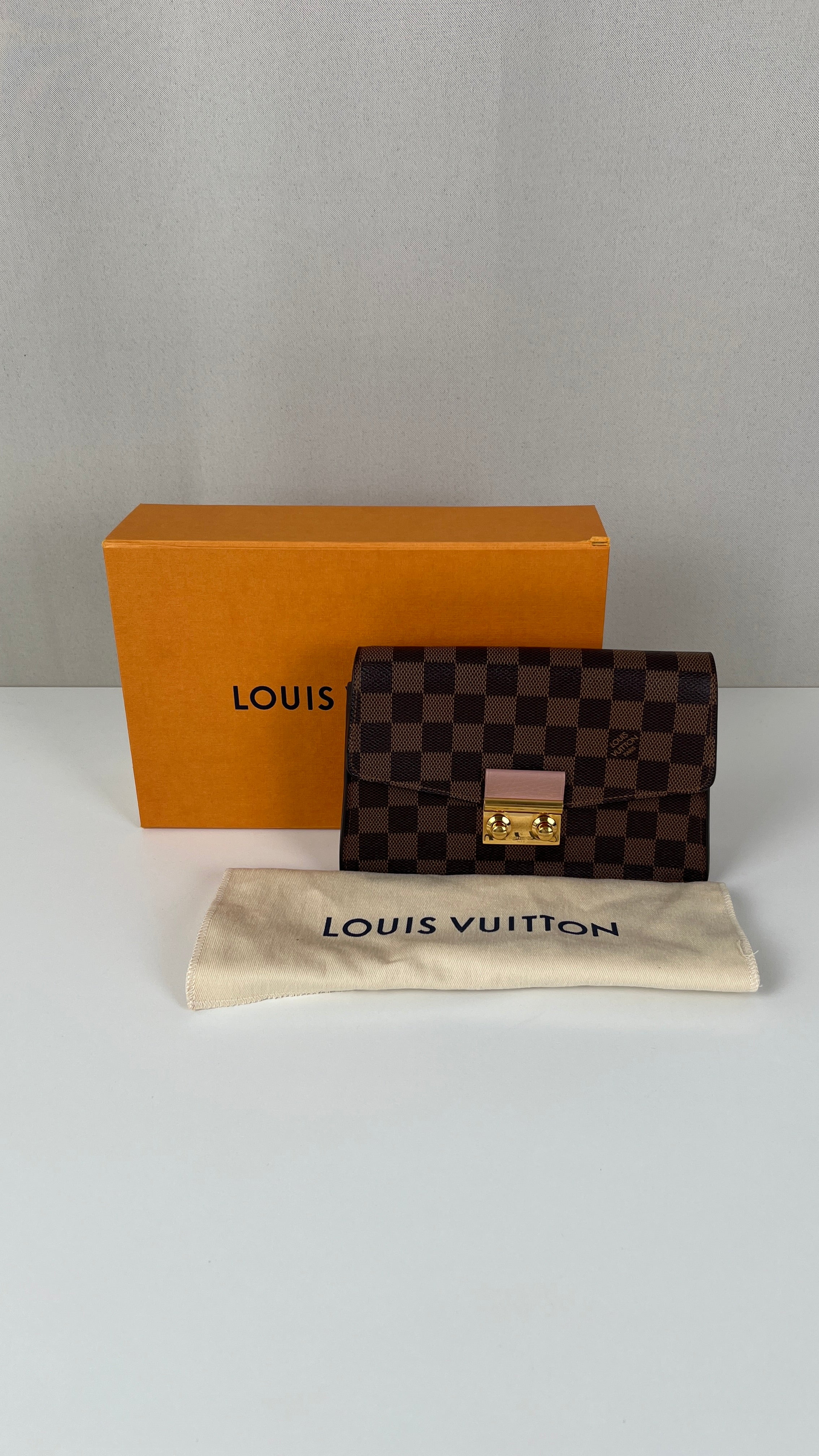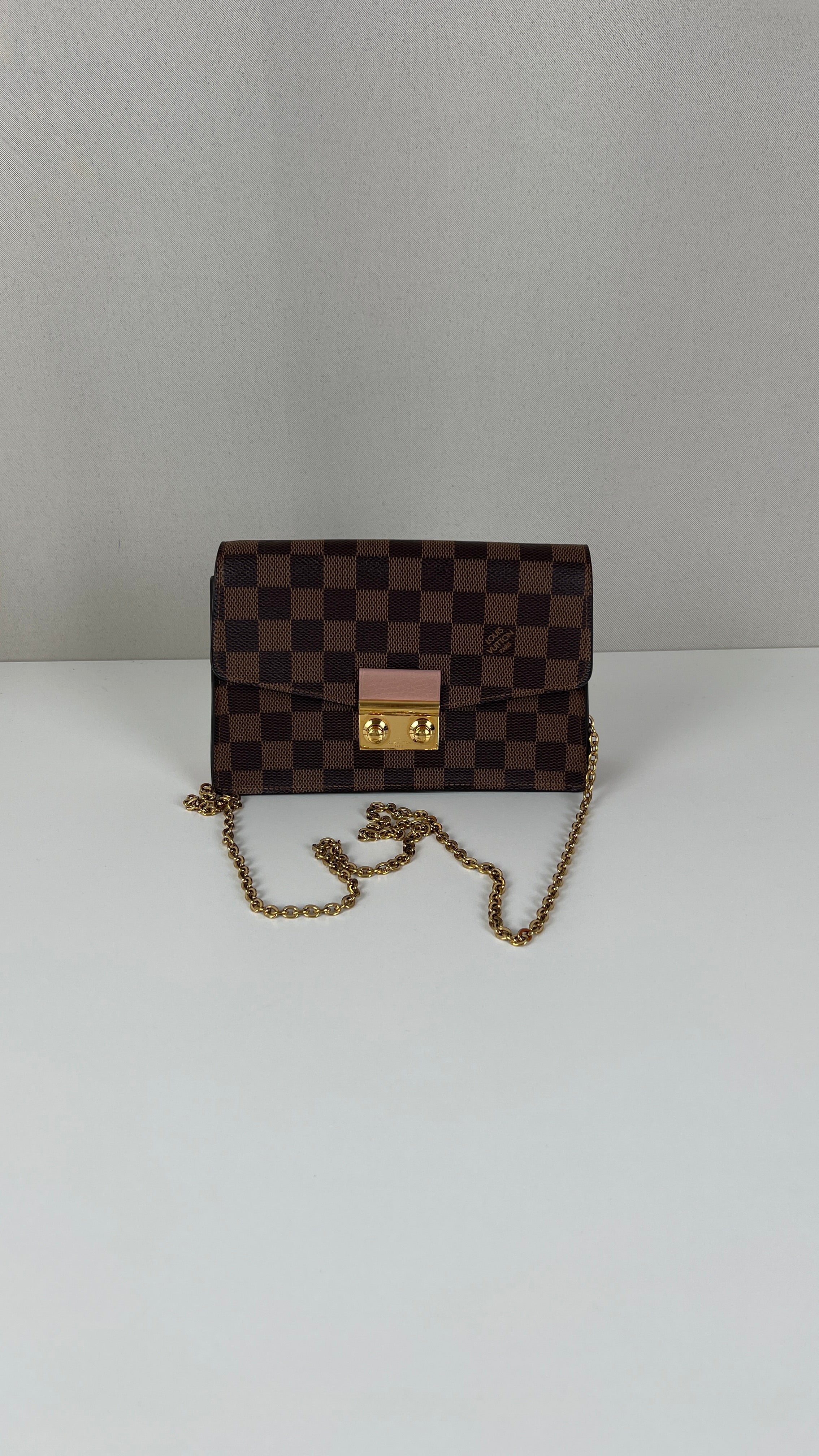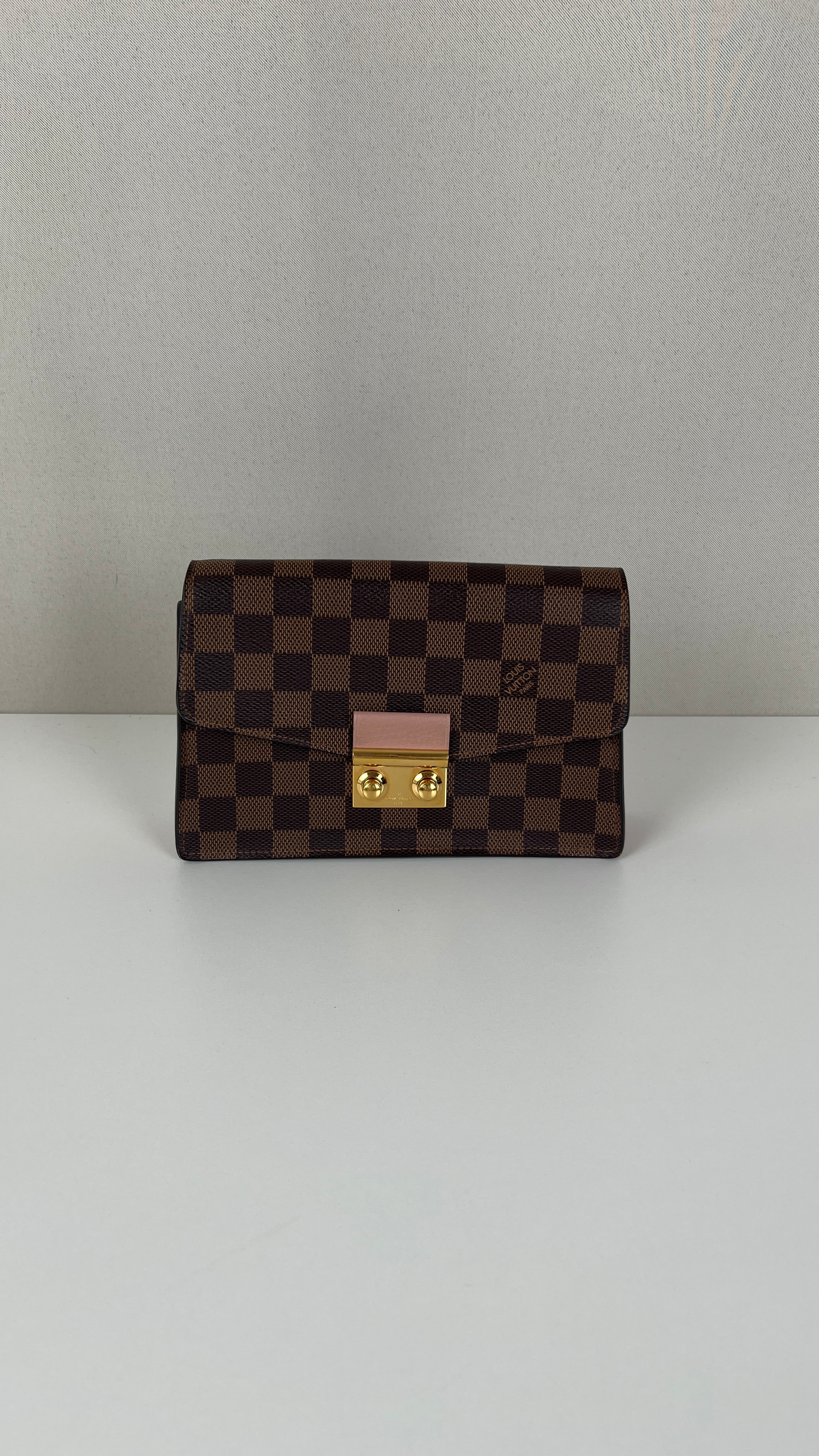 This Louis Vuitton Croisette Damier is in very good condition. The canvas is in very good condition. The hardware is in very good condition, some little scratches. The interior is in very good condition. There is a canvas smell inside.