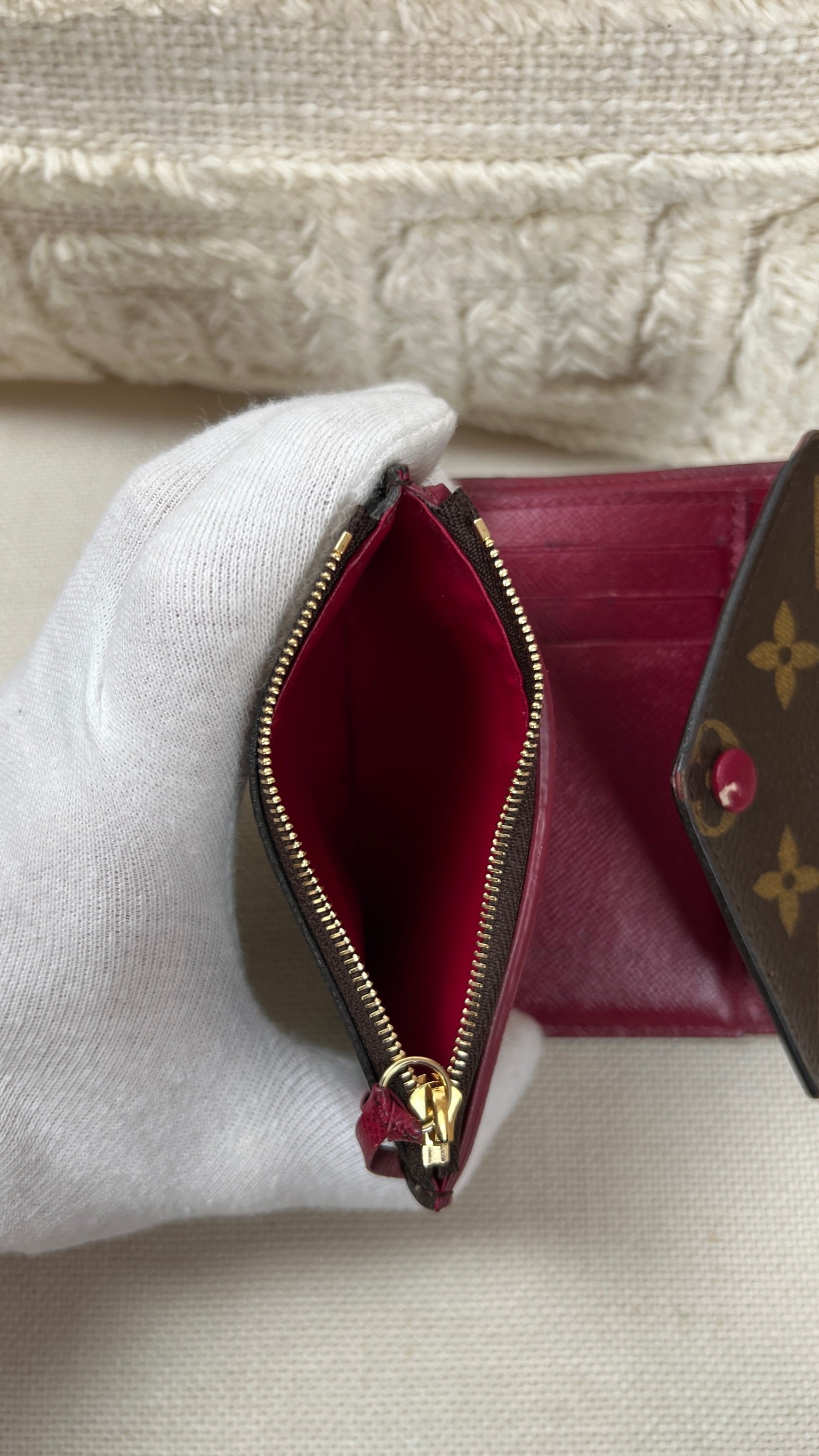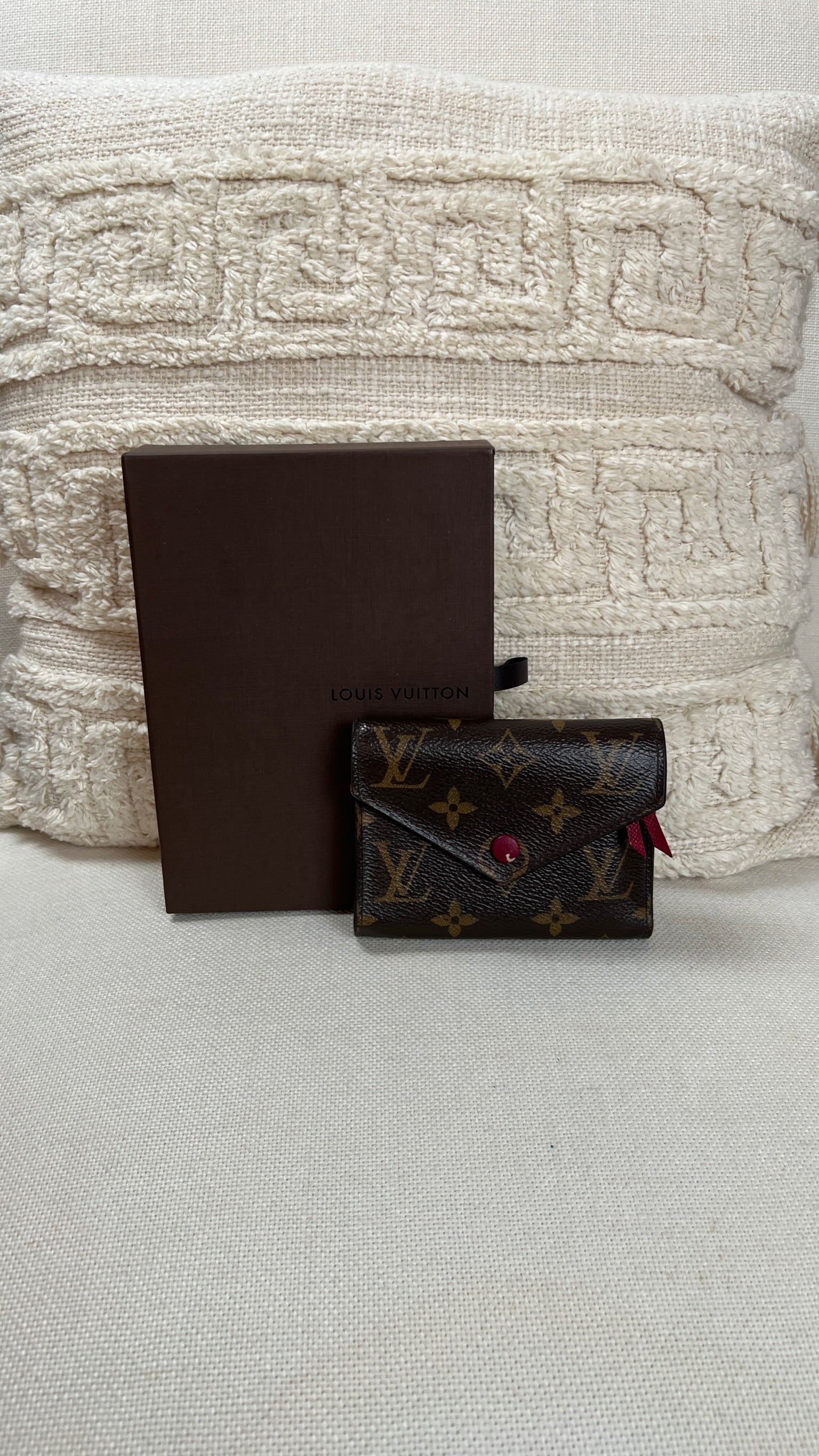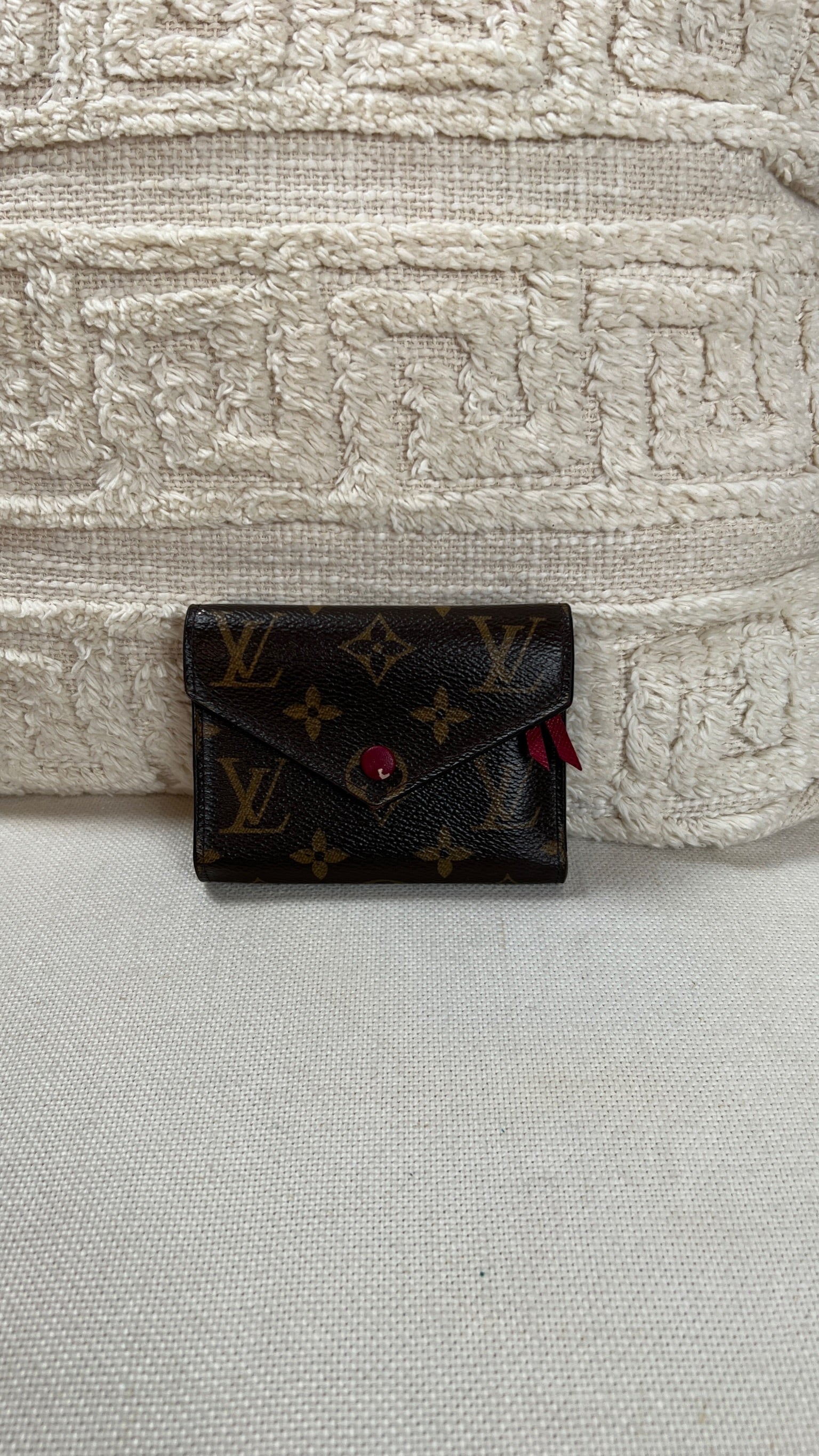 This Louis Vuitton Victorine wallet is in very good condition. The canva is in very good condition. The interior is in very good condition as well. The wallet has a smell (not vintage). The button is a little bit peeling but you can always replaced it at Louis Vuitton by a metal snap button.