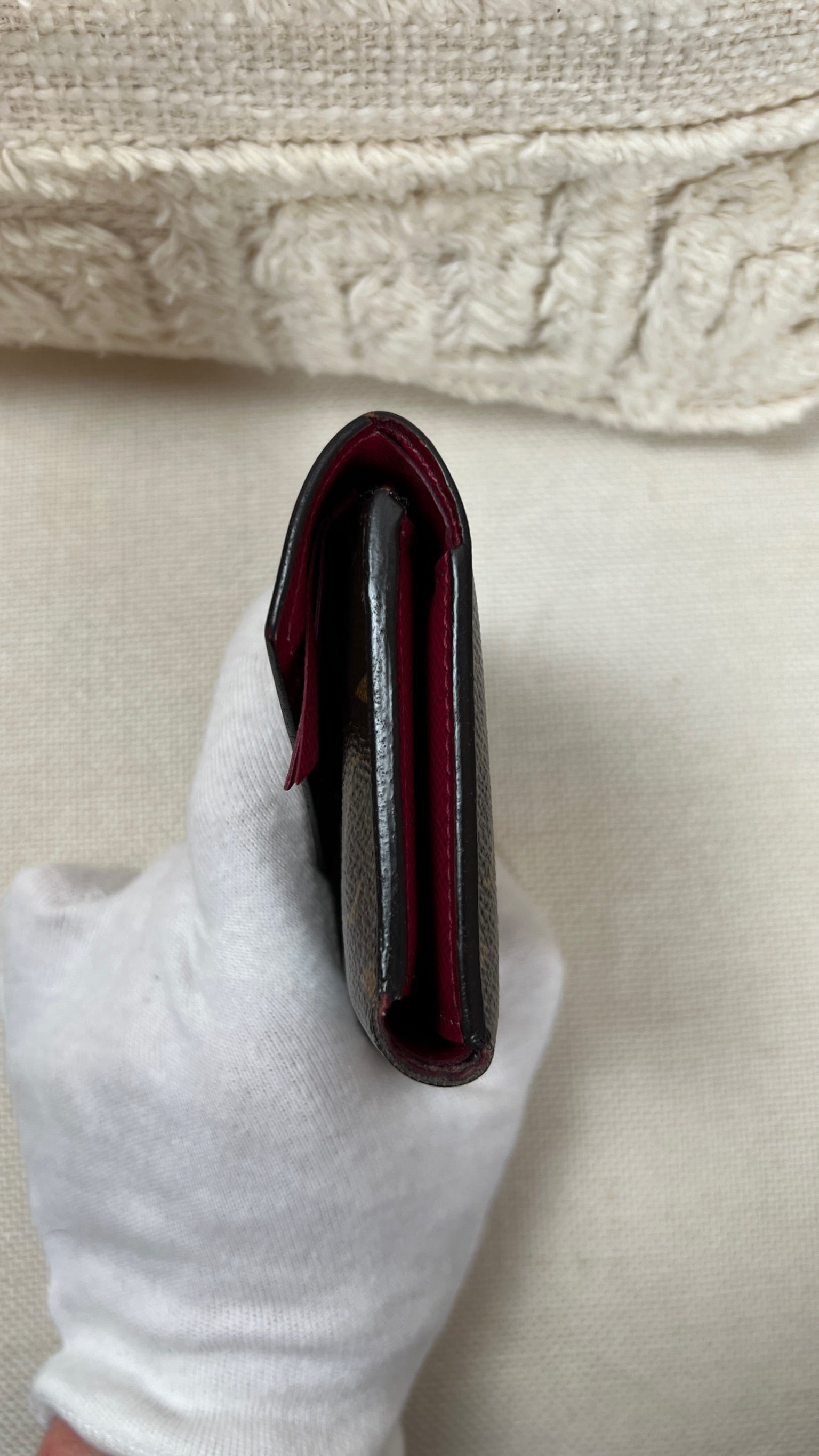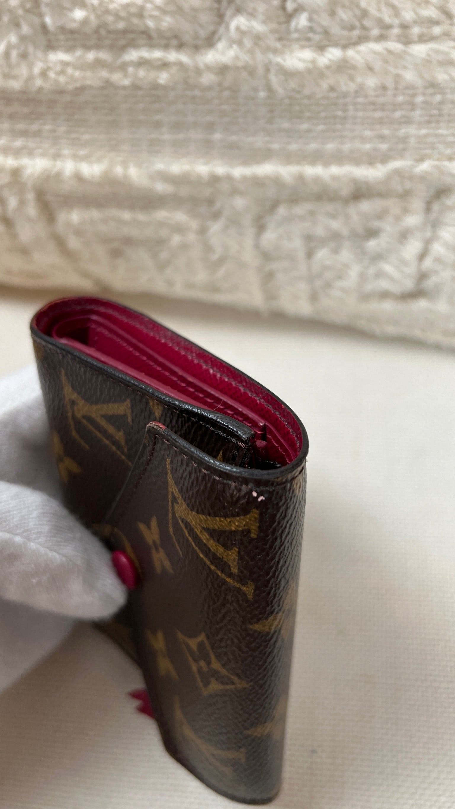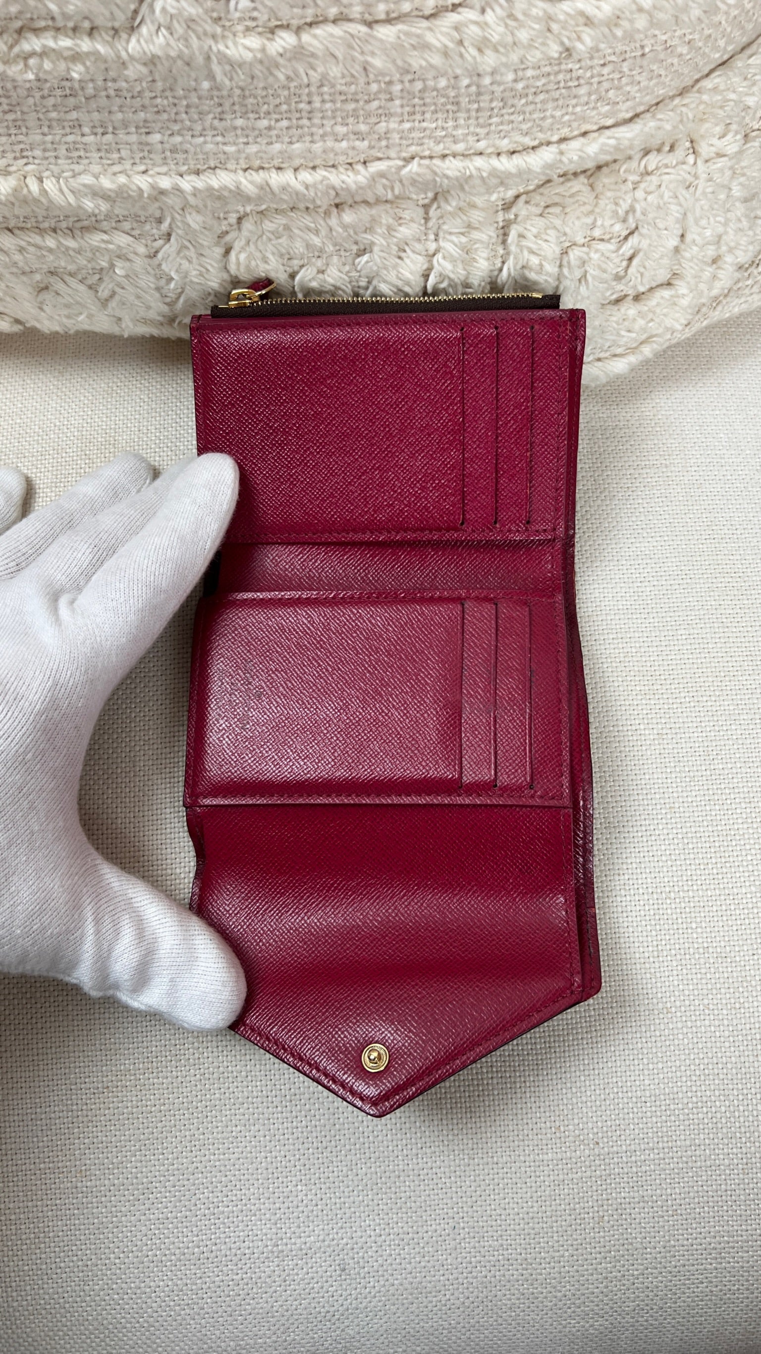 This Louis Vuitton Victorine wallet is in very good condition. The canva is in very good condition. The interior is in very good condition as well. The wallet has a smell (not vintage). The button is a little bit peeling but you can always replaced it at Louis Vuitton by a metal snap button.