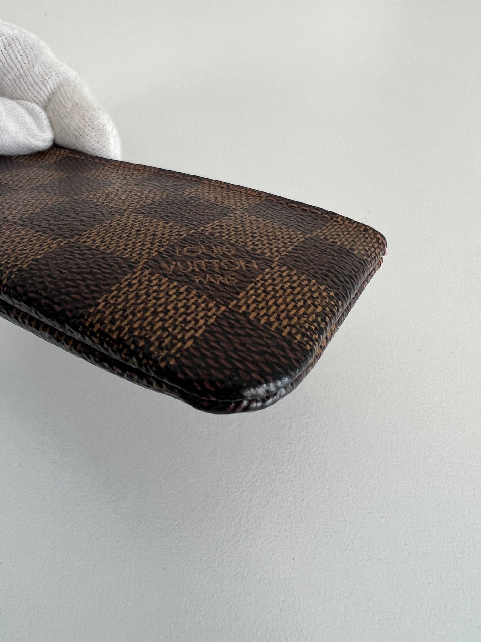 This Louis Vuitton Key Pouch is in very good condition. The canvas and the corners are in very good condition. The hardware has some scratches. The interior is in very good condition.