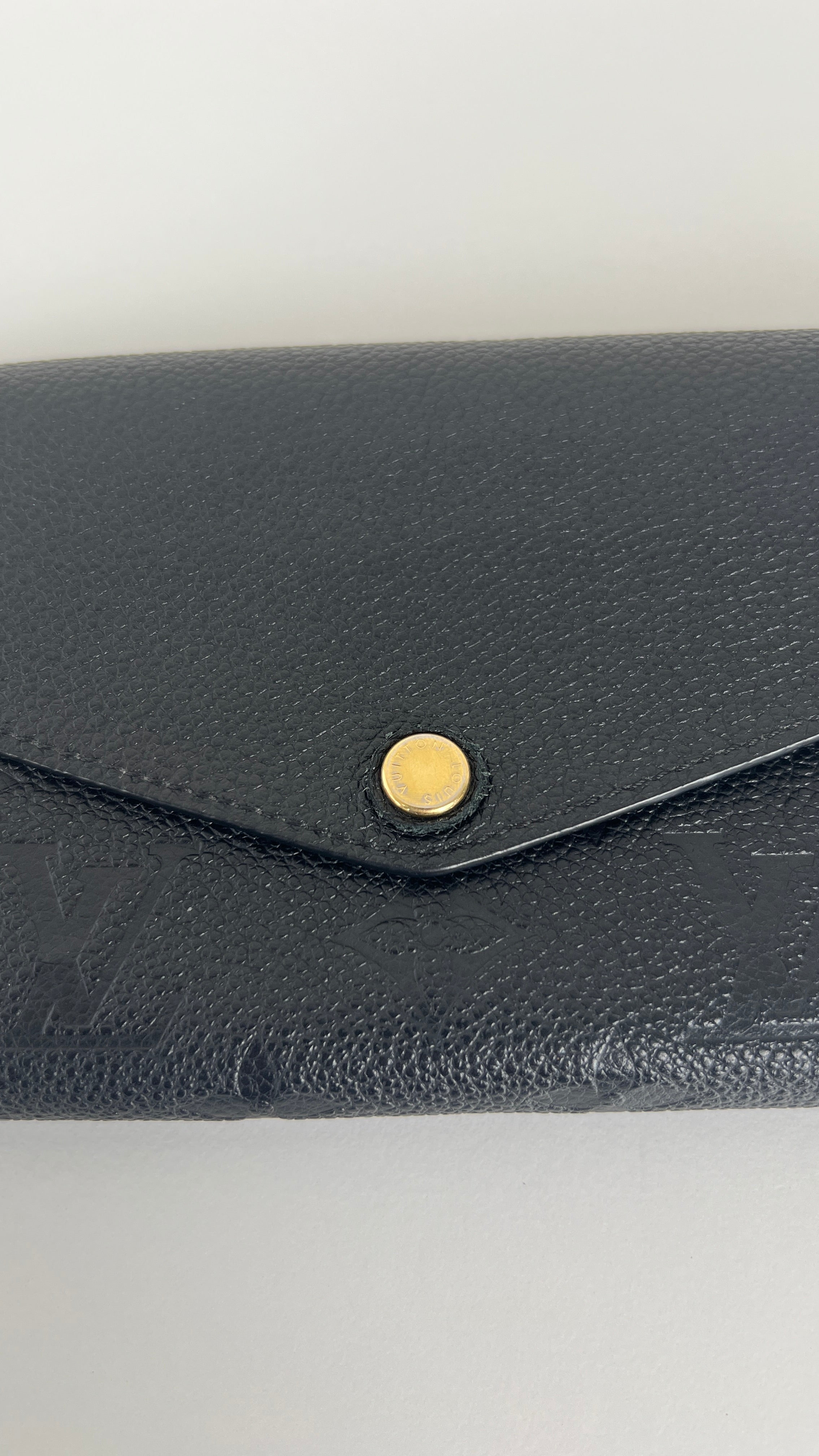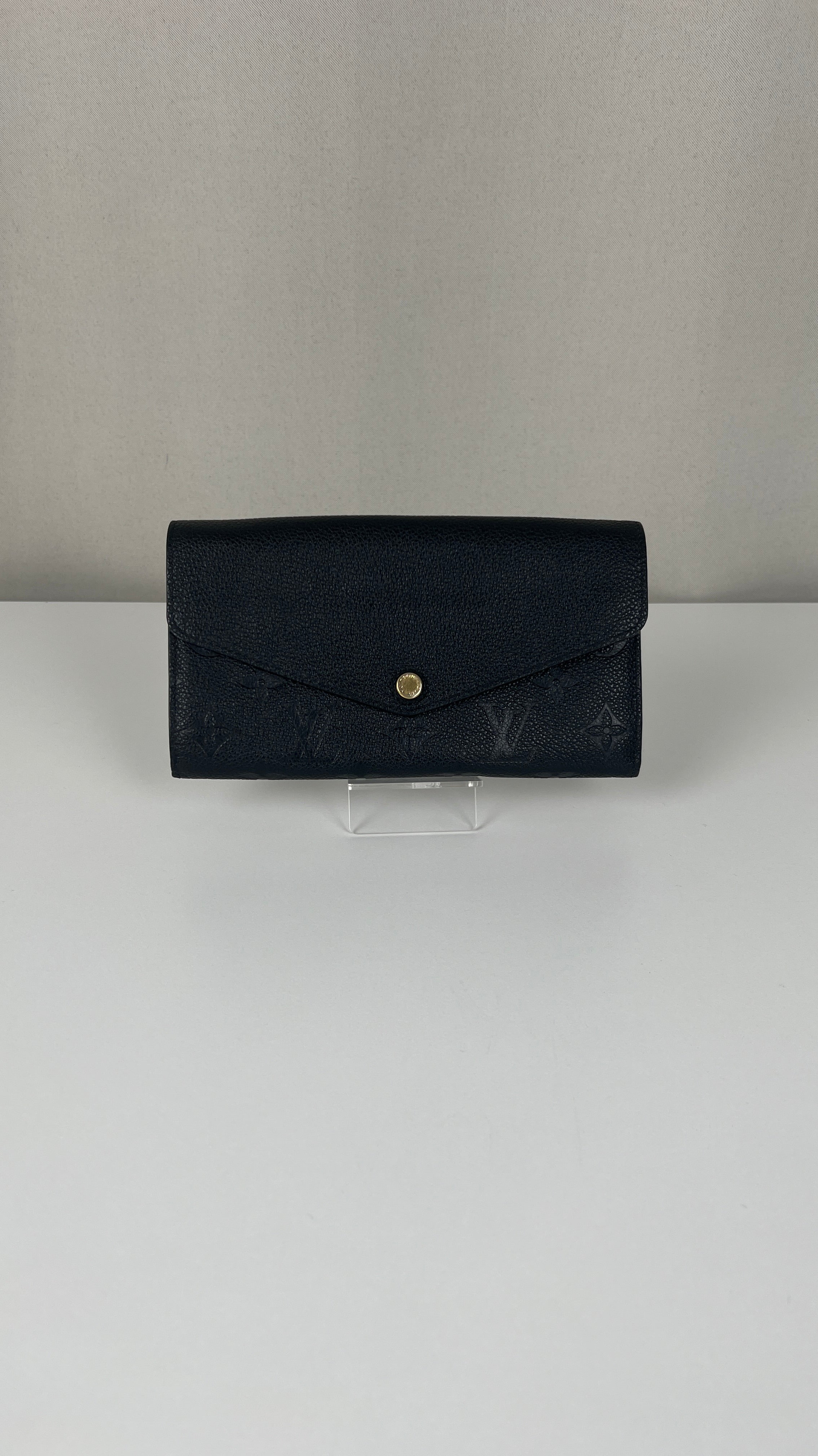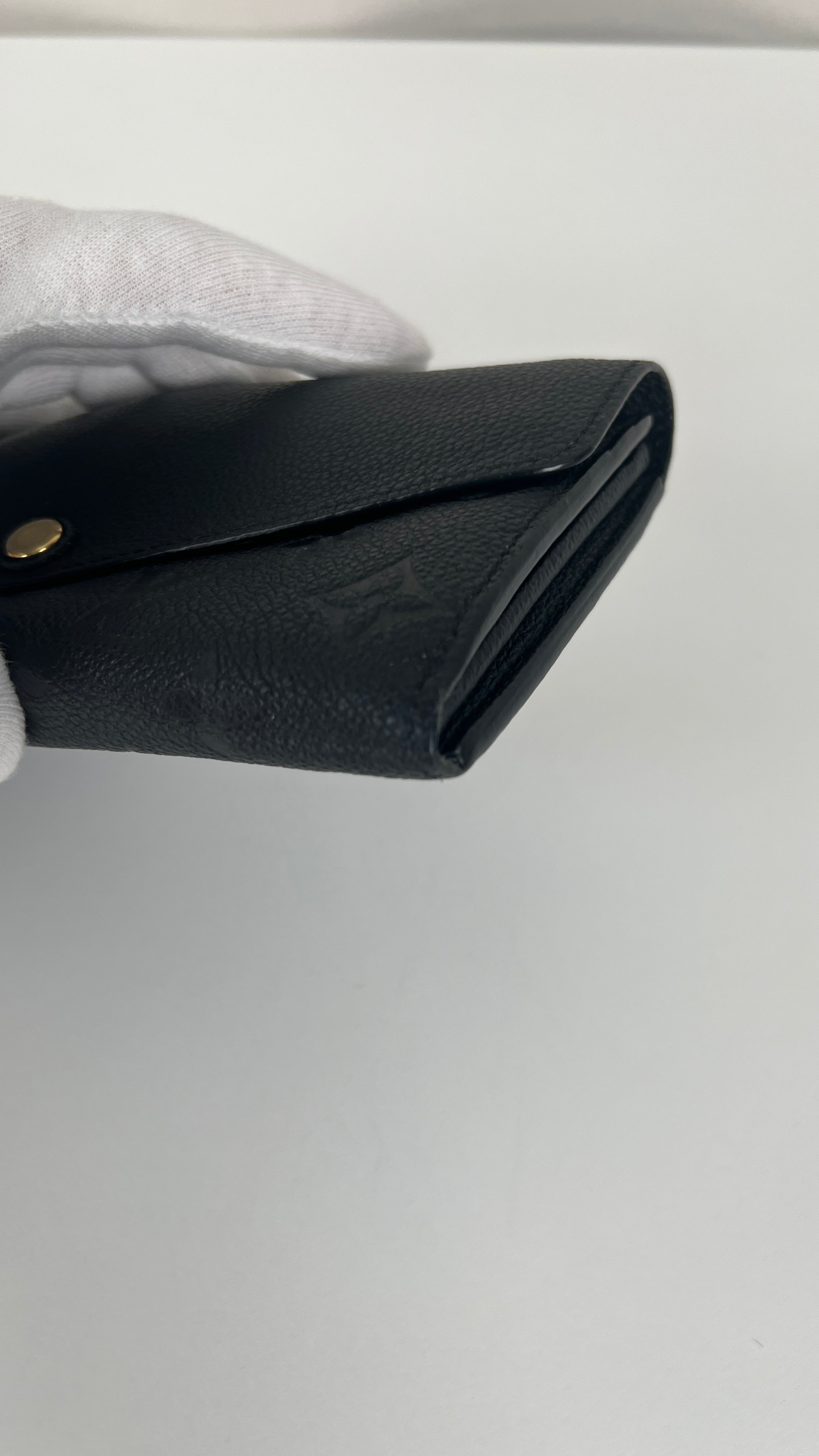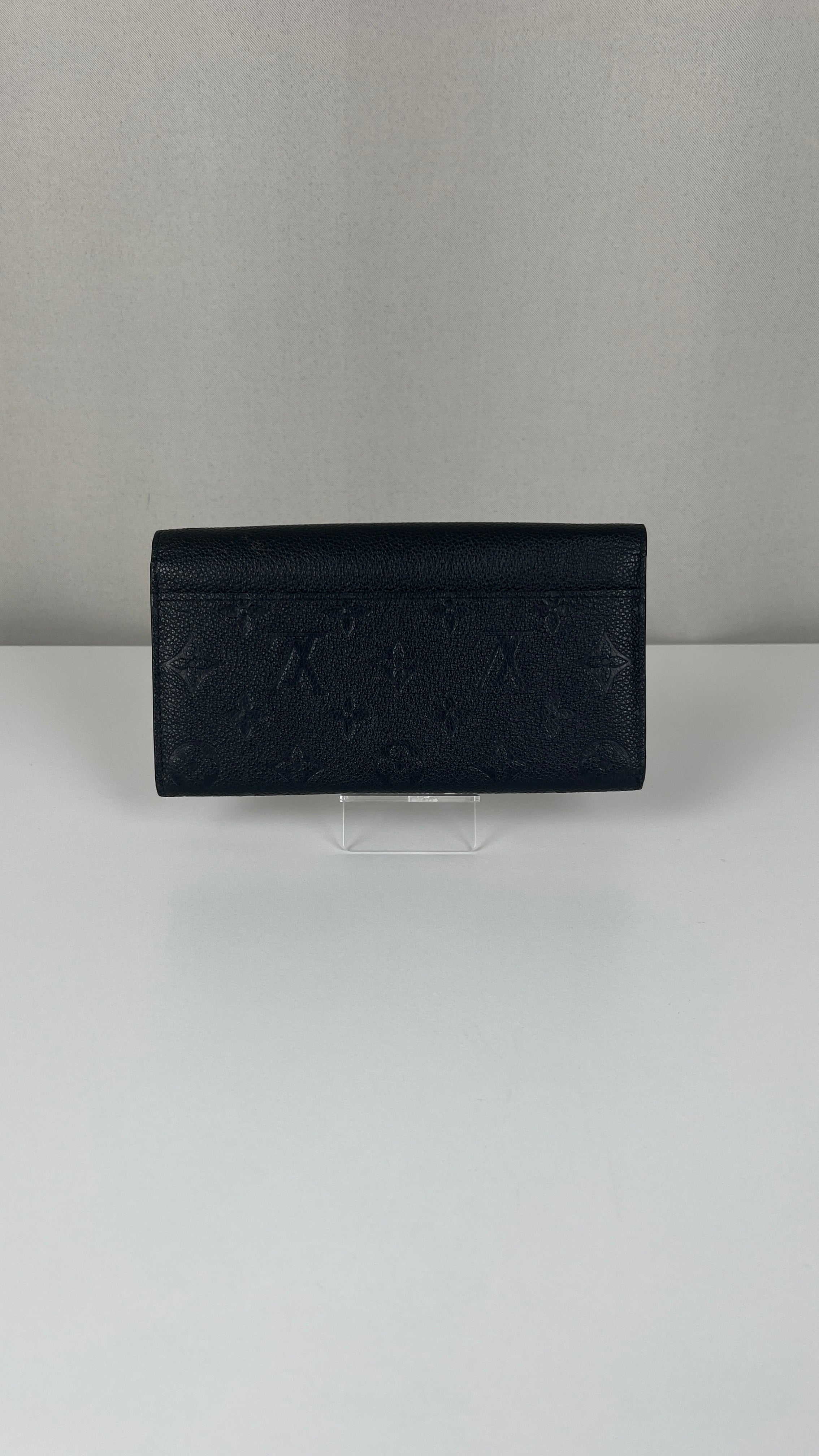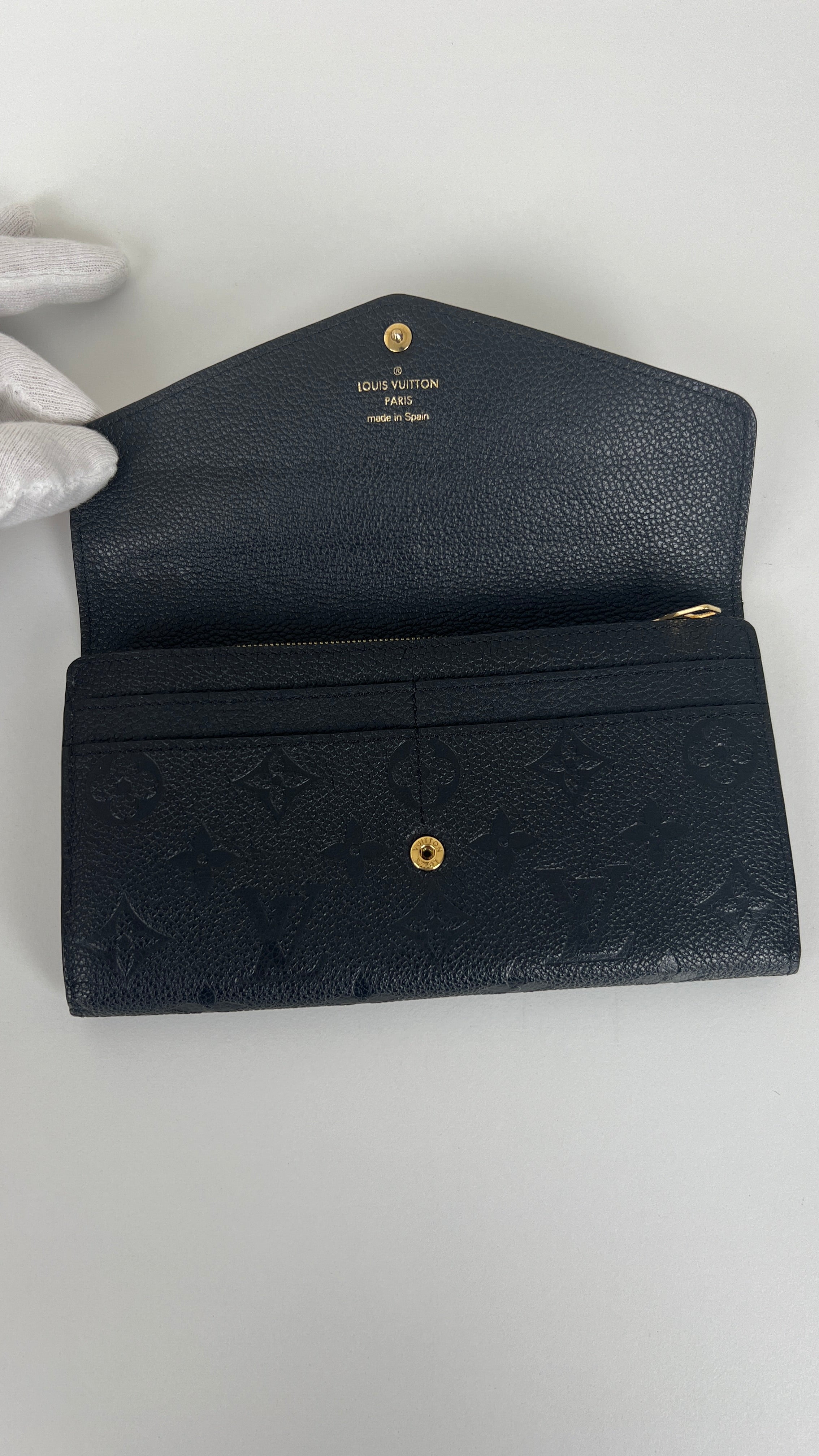 This Louis Vuitton Vuitton Sarah Empreinte wallet is in very good condition. The leather is in very good condition, few little trace of wear. The corners are in very good condition. The inside is in very good condition. The leather parts around the pin is a little bit rubbed. It comes with box, dustbag, invoice.
