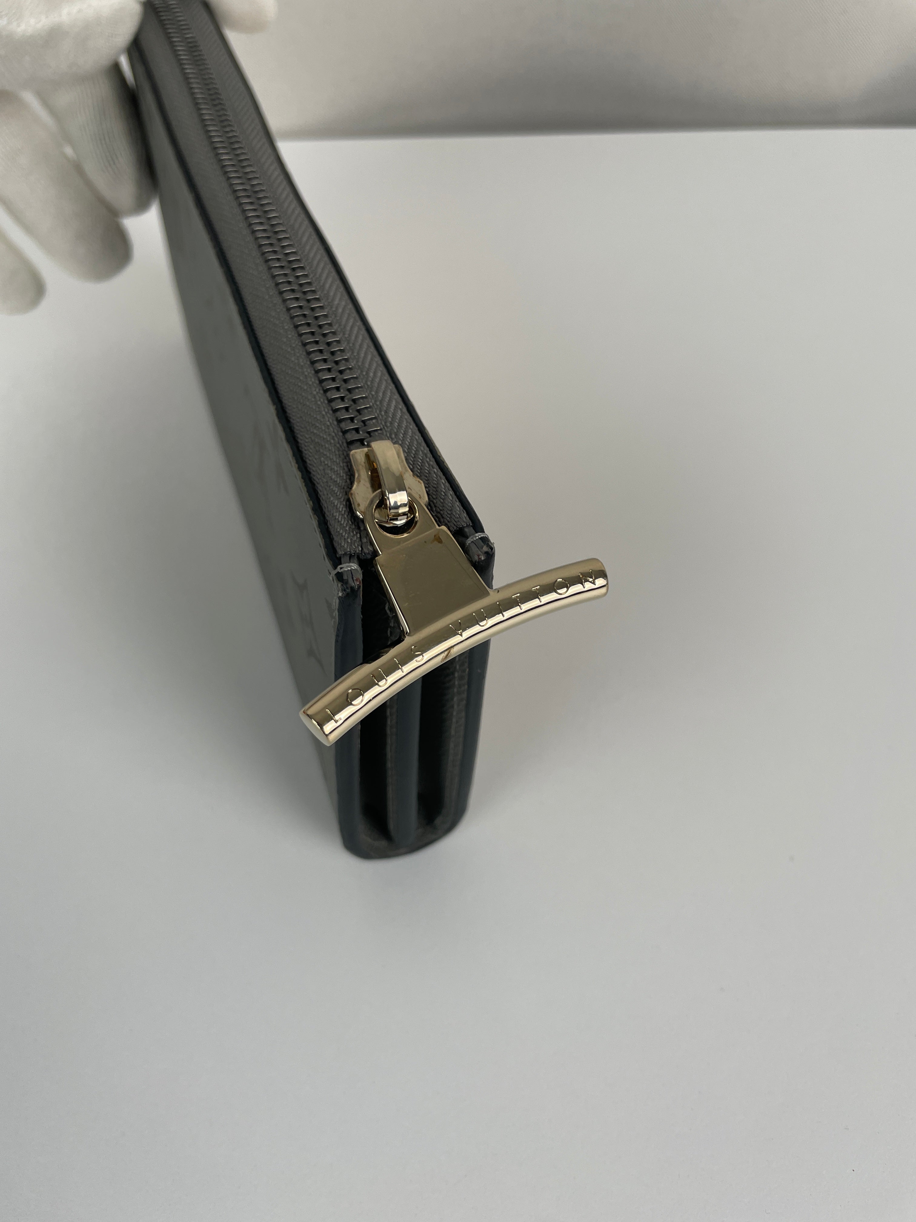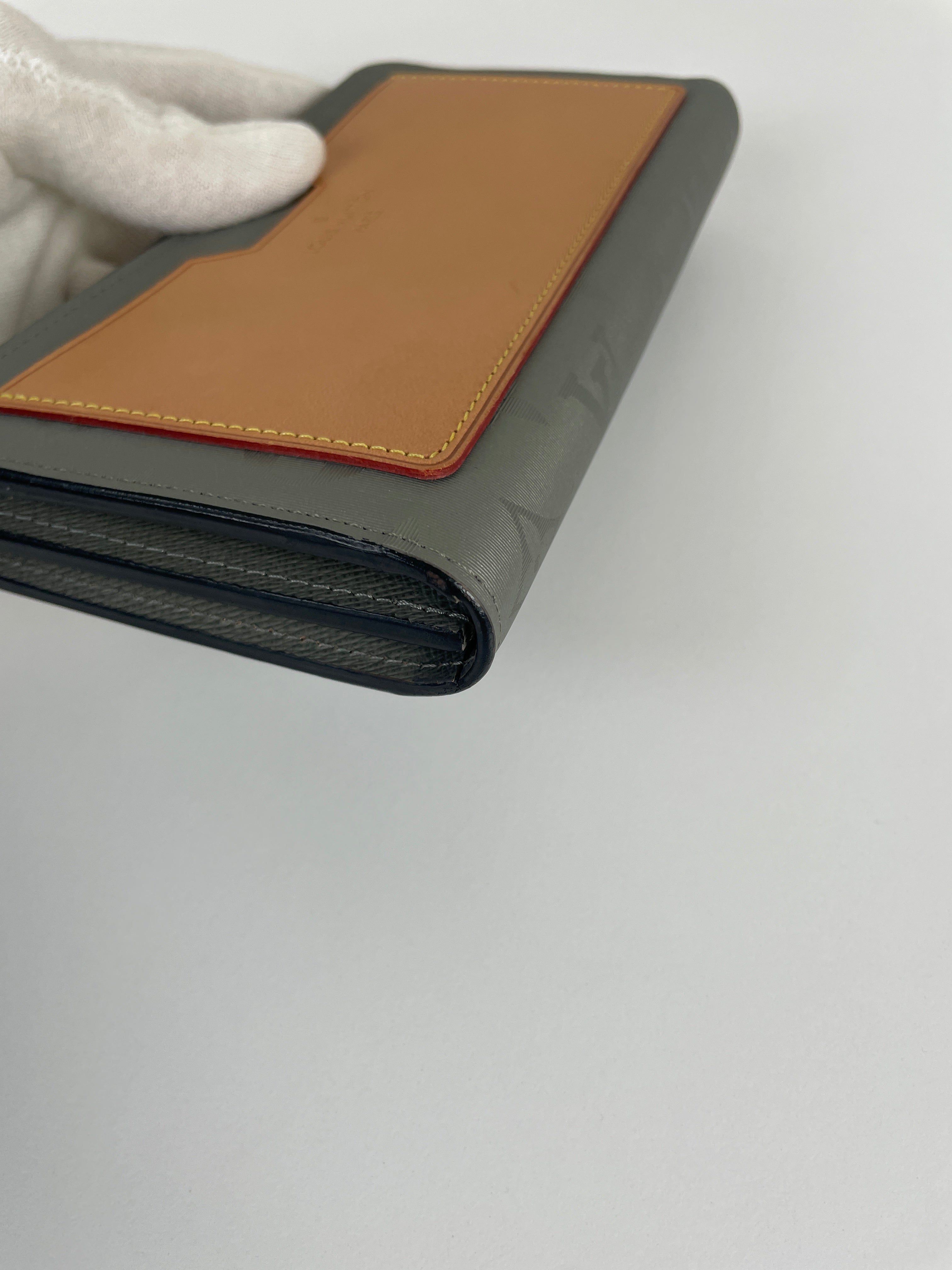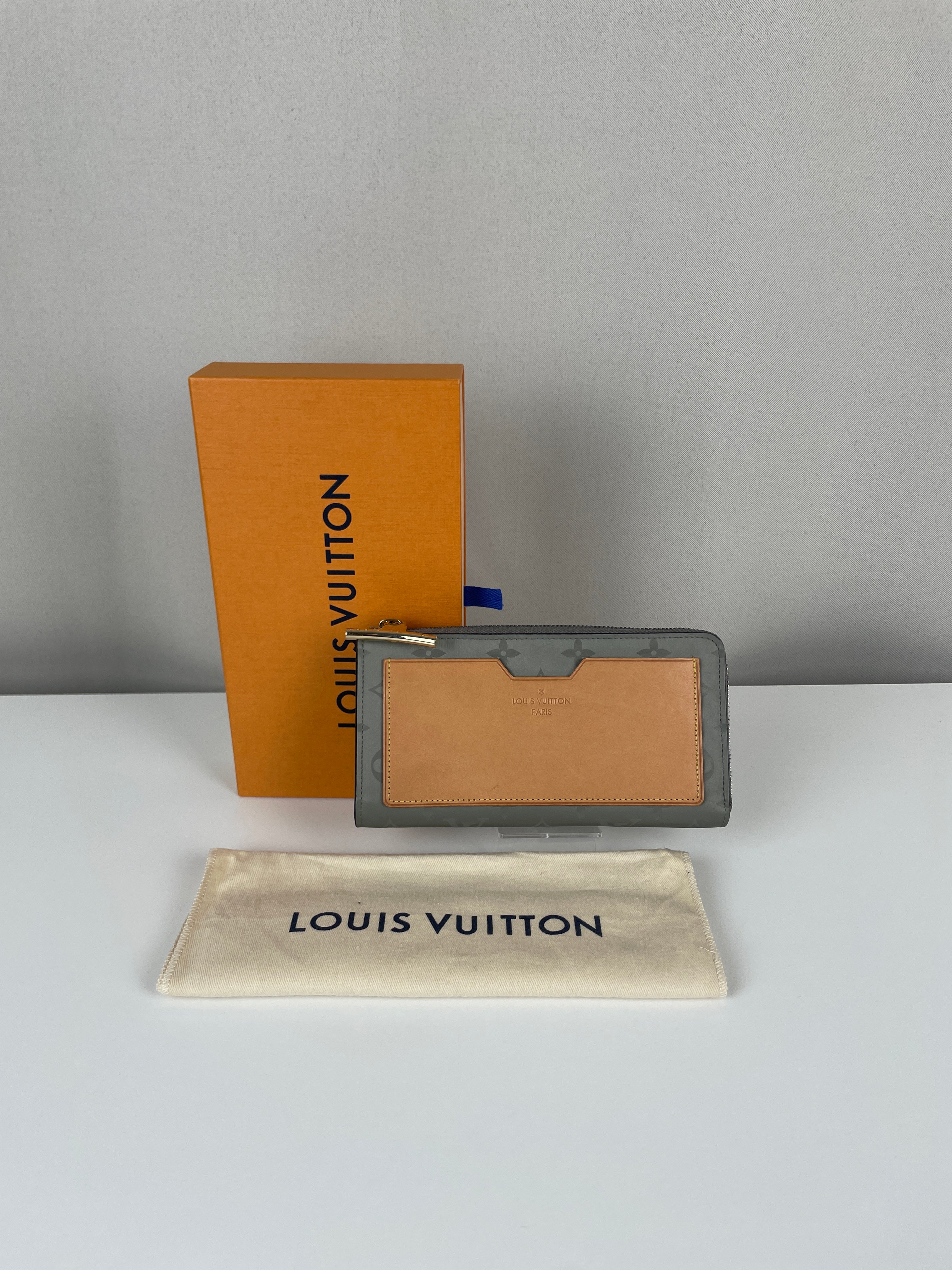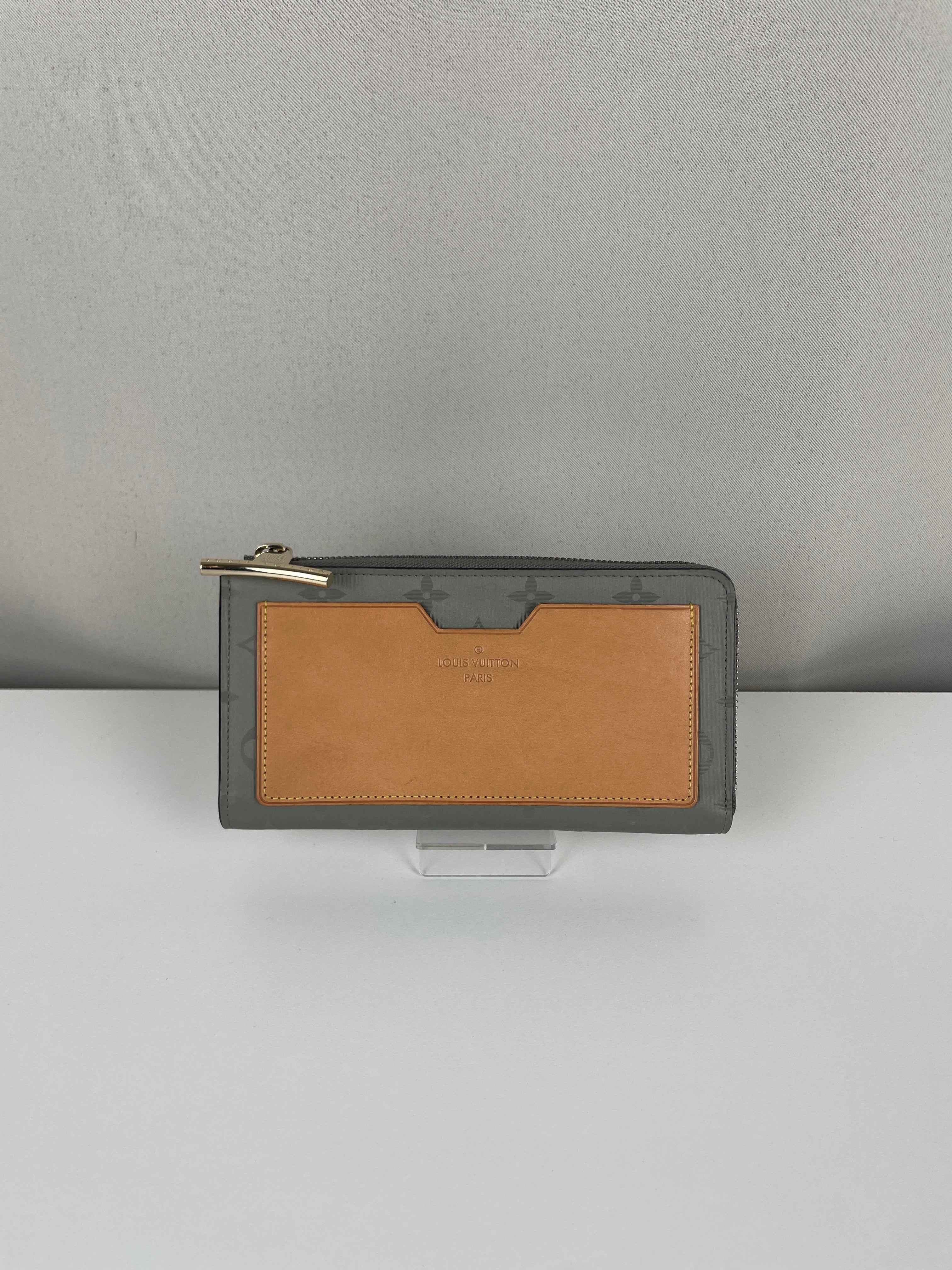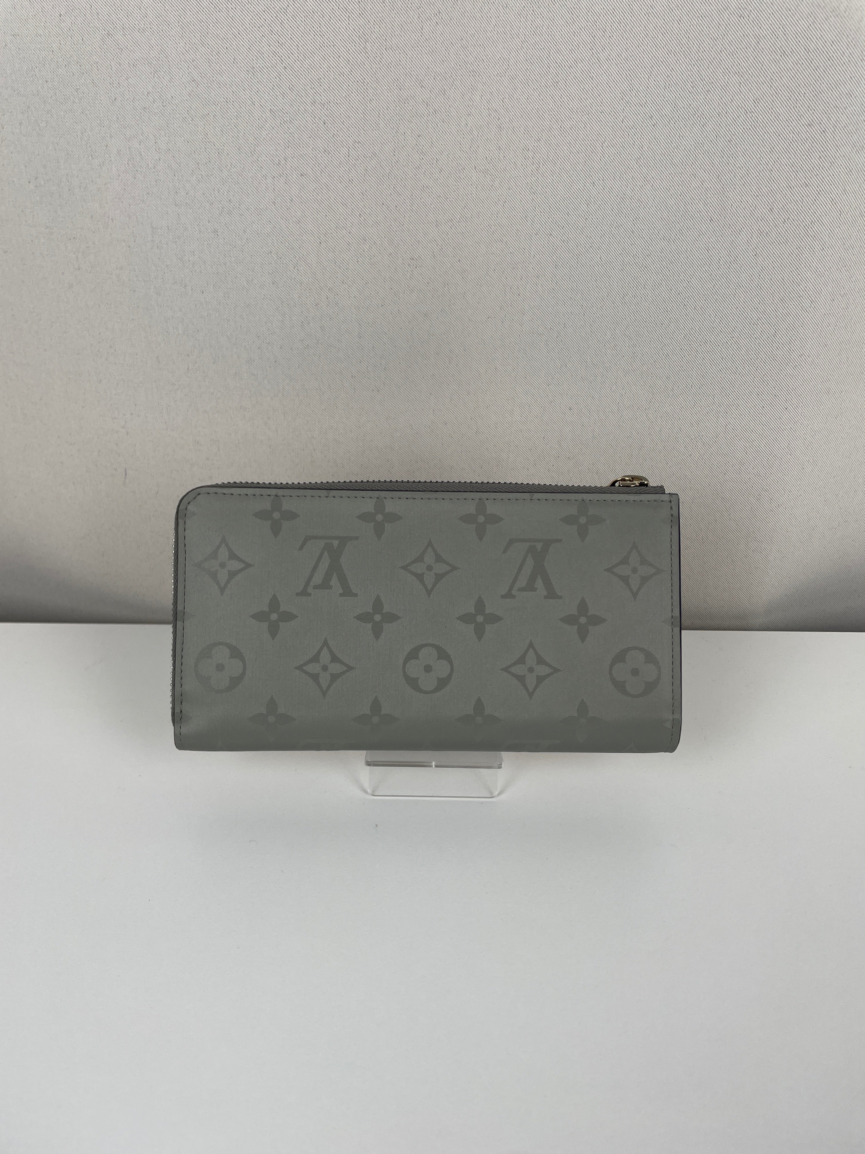 This Louis Vuitton Titanium Monogram Wallet is in very good condition. It's a speical limited edition. The interior of this wallet is in excellent condition. The fabric is in very good condition too. The hardware is a little bit rubbed on the closure. The corners are in very good condition. The leather part of the back has some little natural trace.