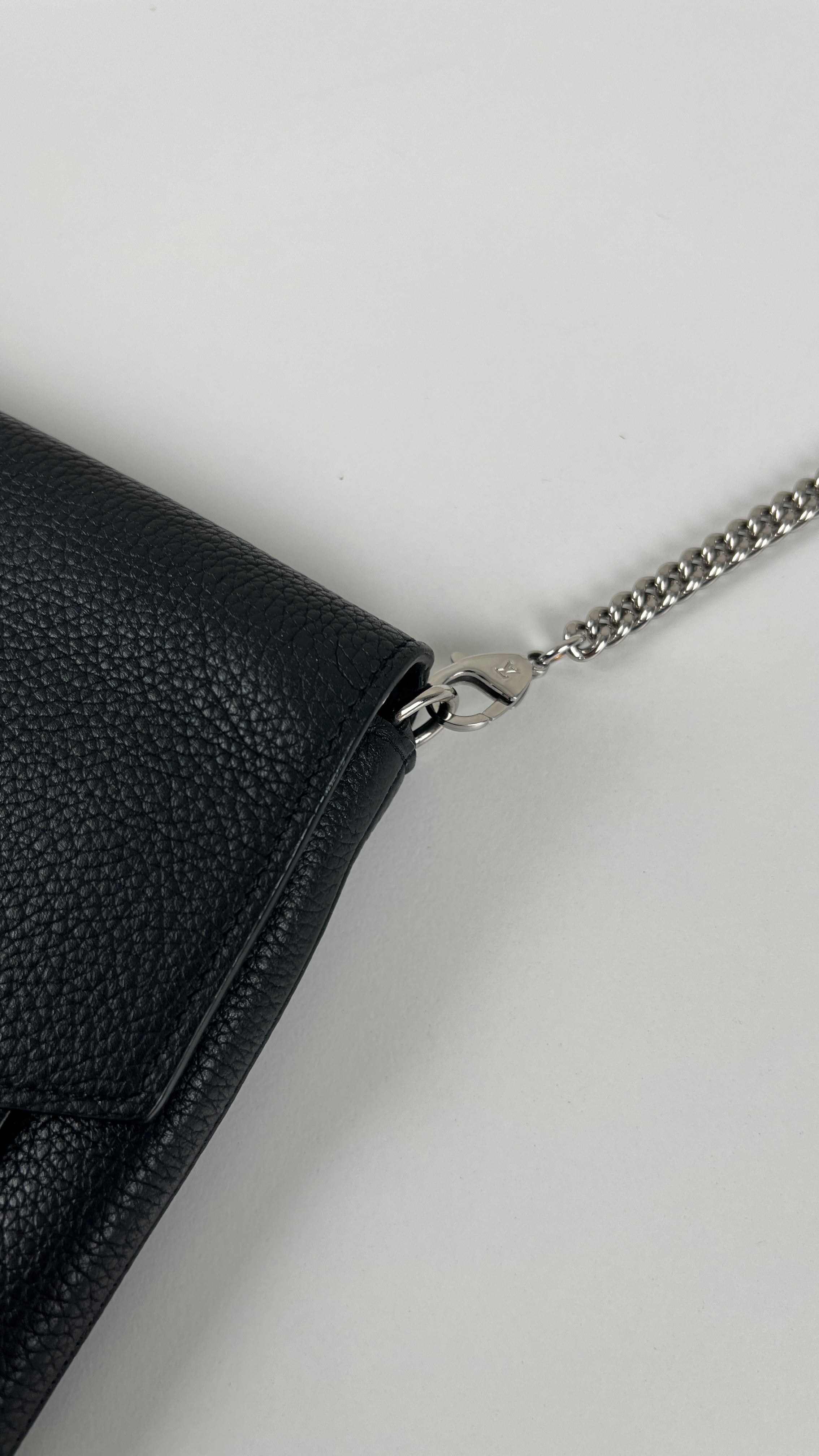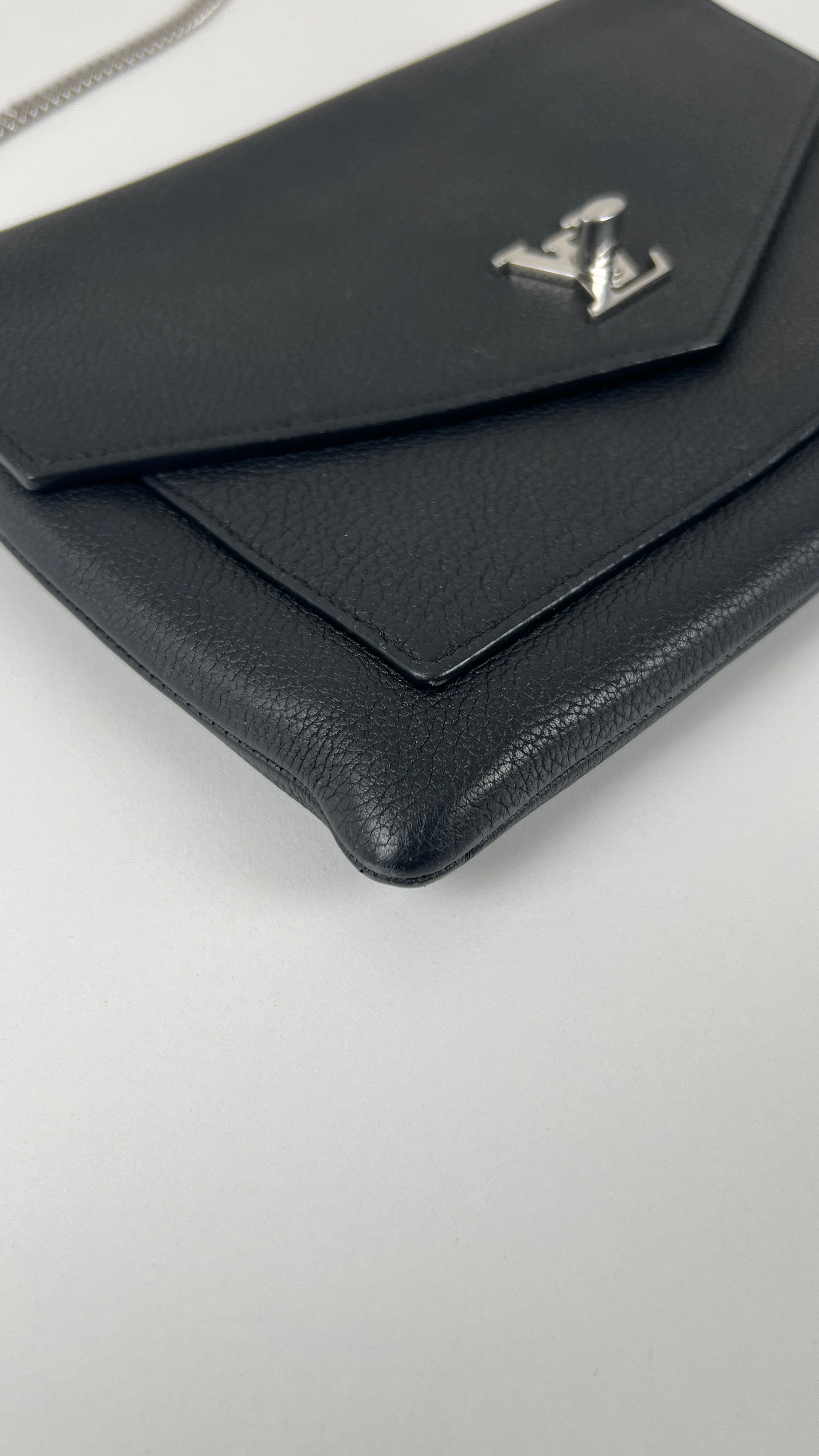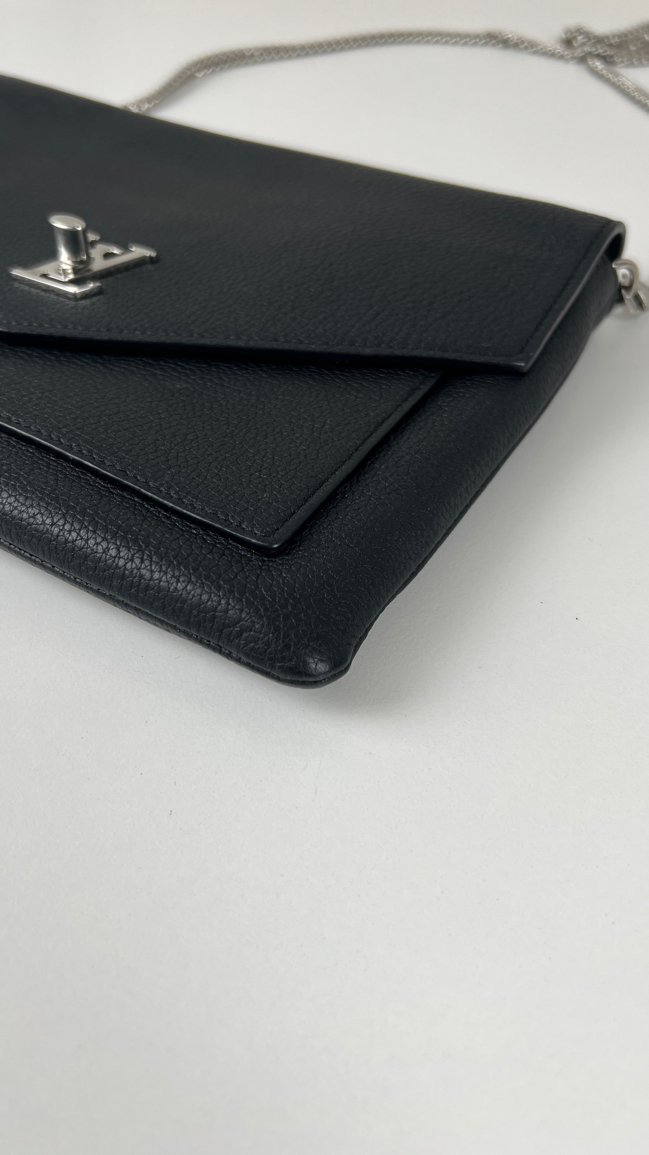 This Louis Vuitton Wallet on Chain Lock Me is in very good condition. The leather is in very good condition. The corners are in very good condition too, almost no trace of wear. The hardware has little scratched. The inside is in very good condition.