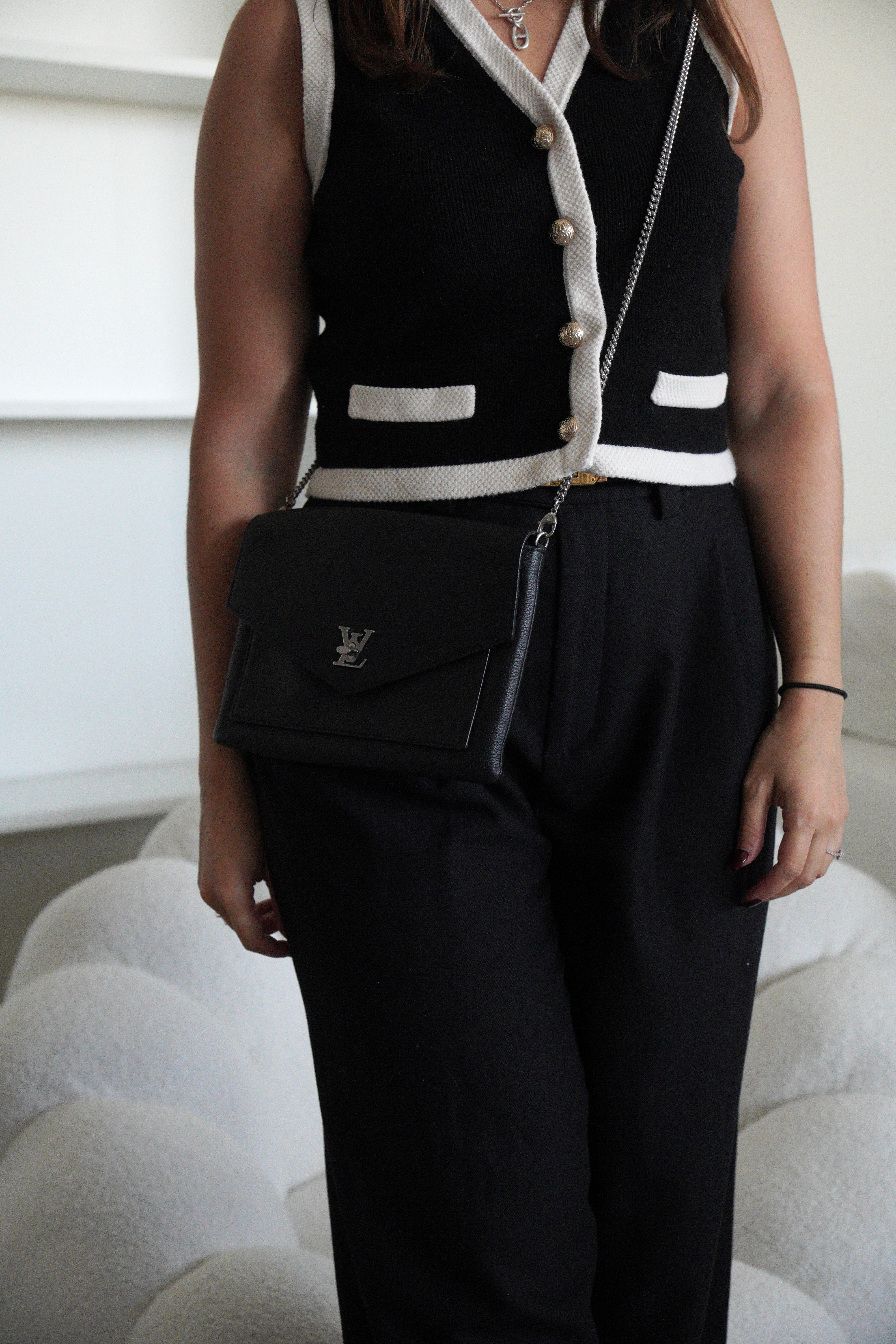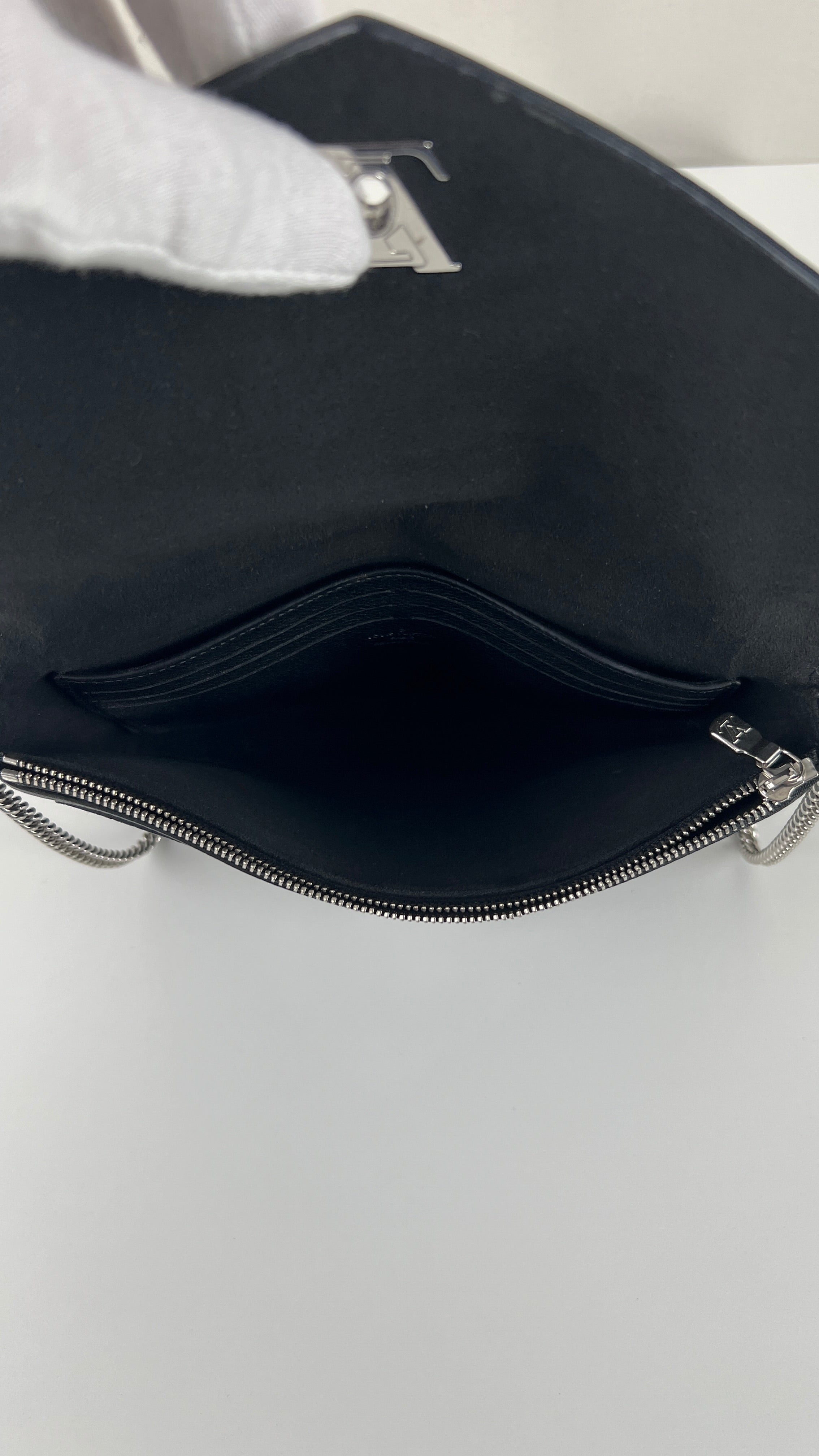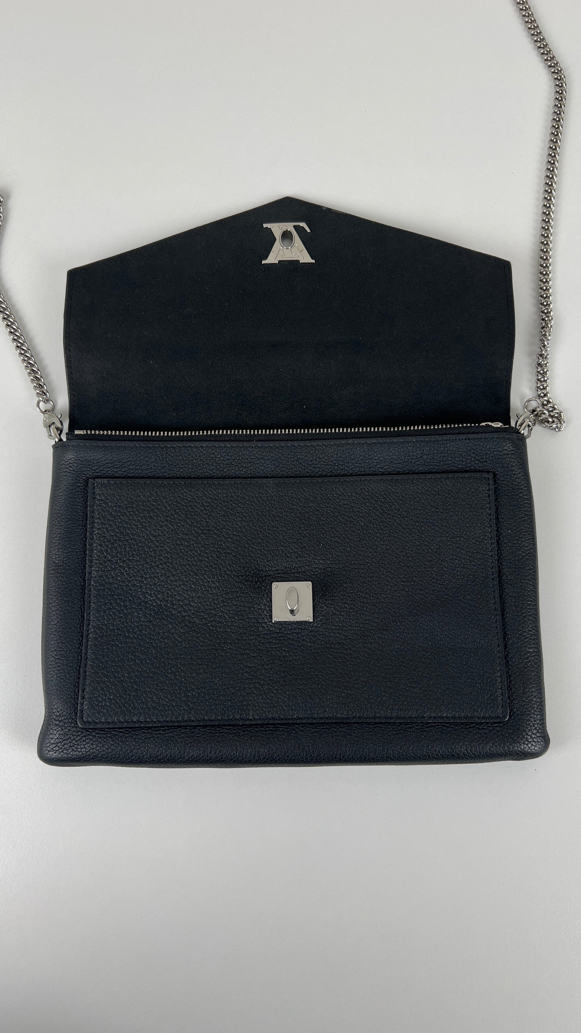 This Louis Vuitton Wallet on Chain Lock Me is in very good condition. The leather is in very good condition. The corners are in very good condition too, almost no trace of wear. The hardware has little scratched. The inside is in very good condition.